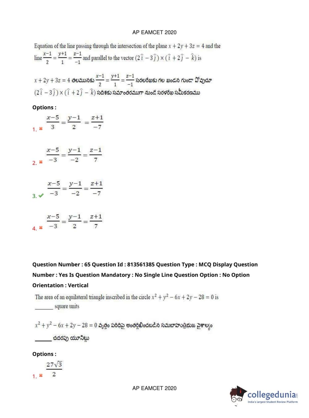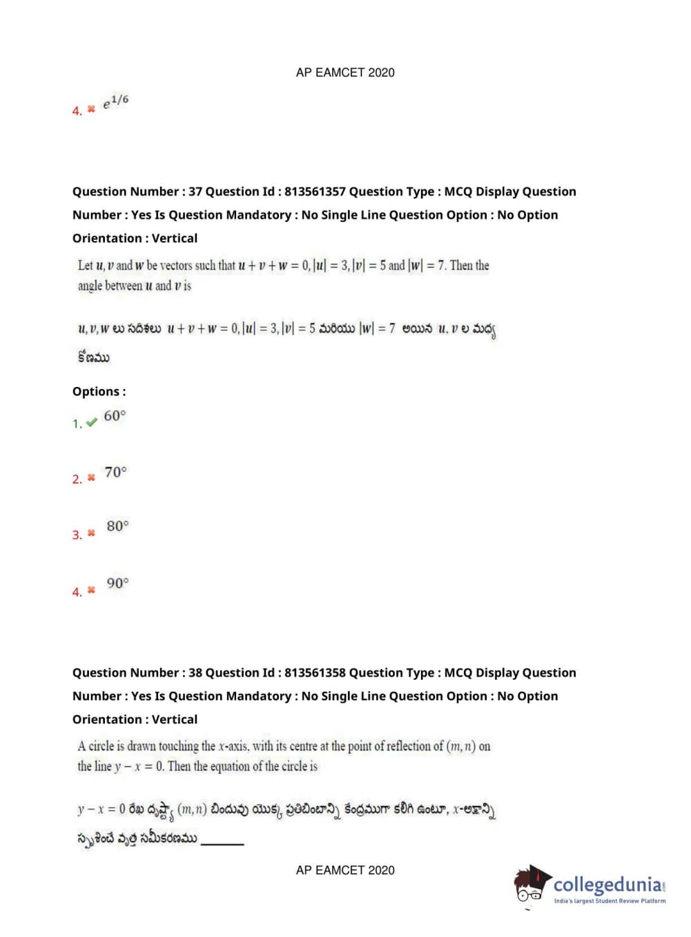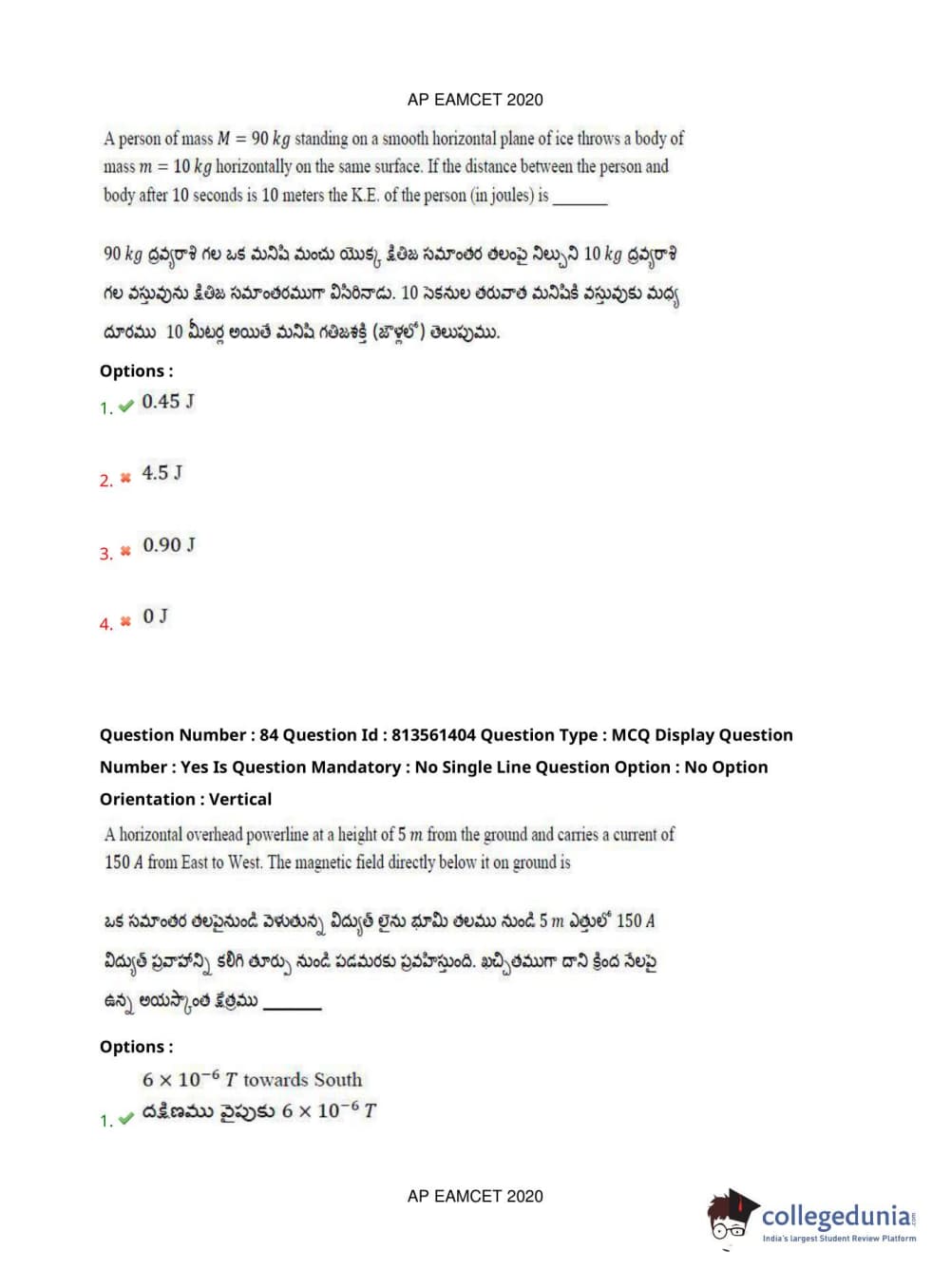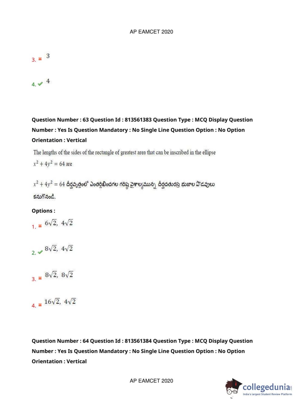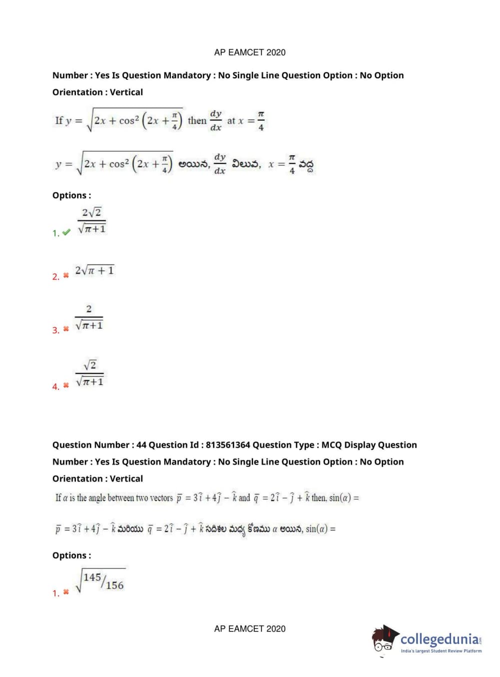 AP EAPCET 2020 Engineering Question Paper with Answer Key PDFs