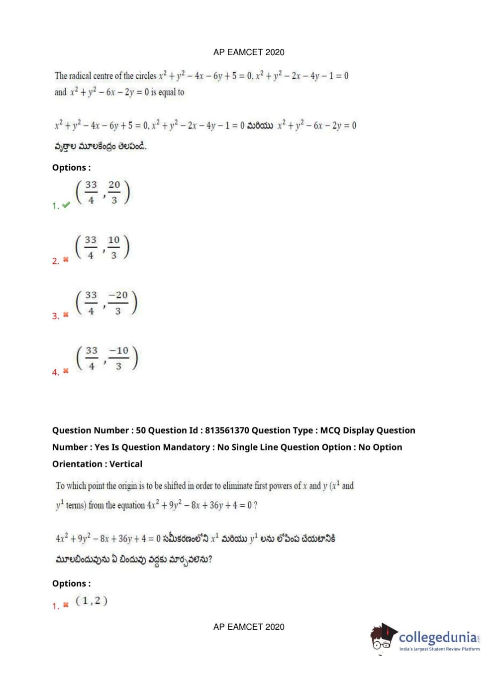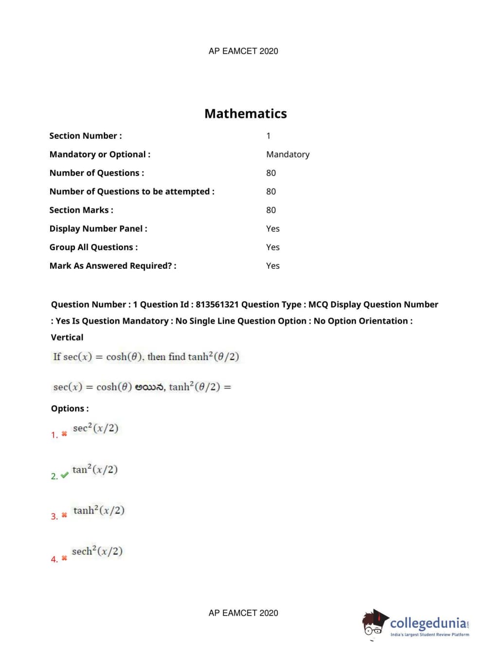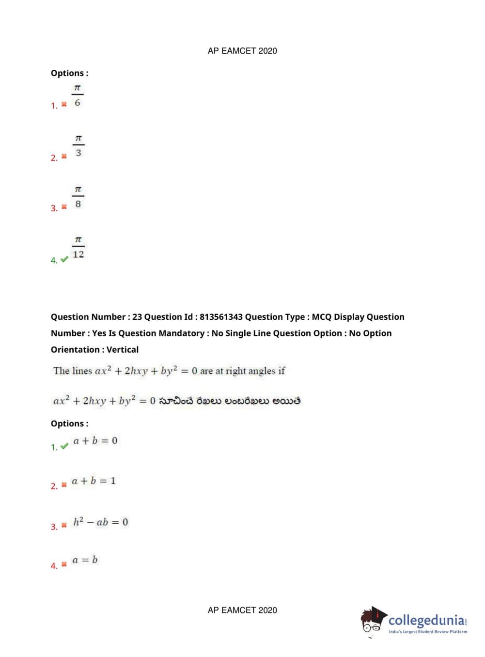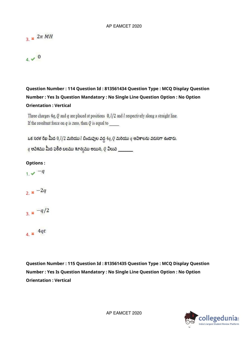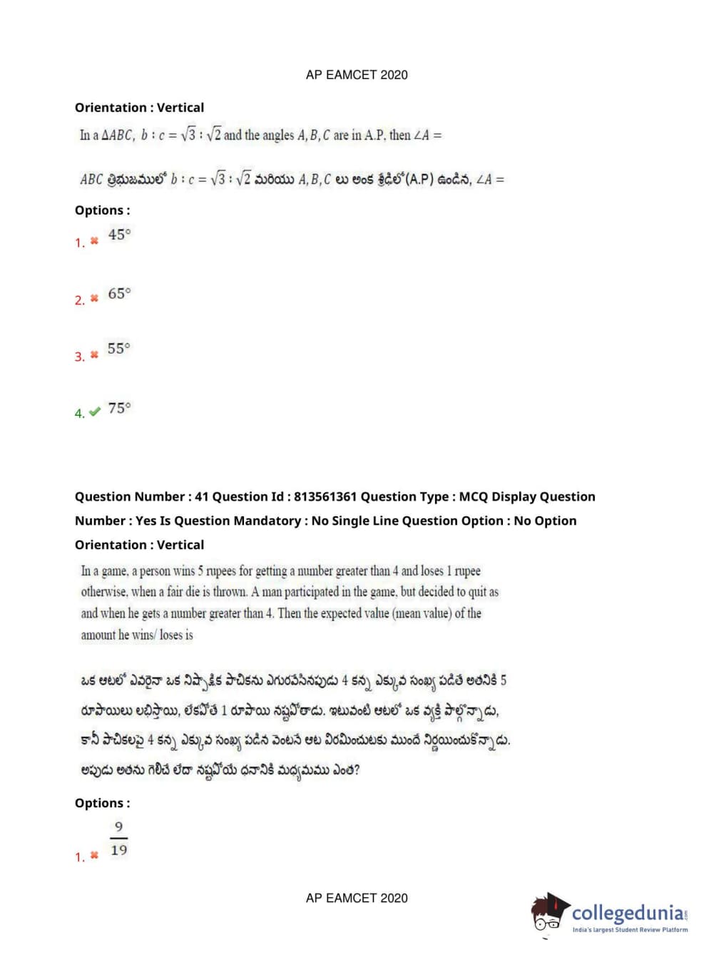 AP EAPCET 2020 Engineering Question Paper with Answer Key PDFs