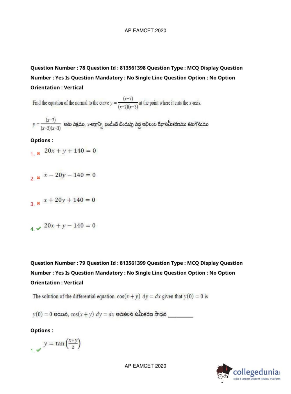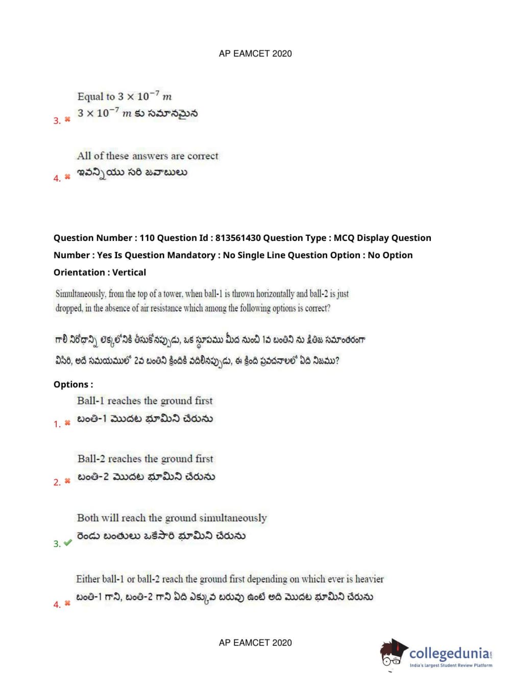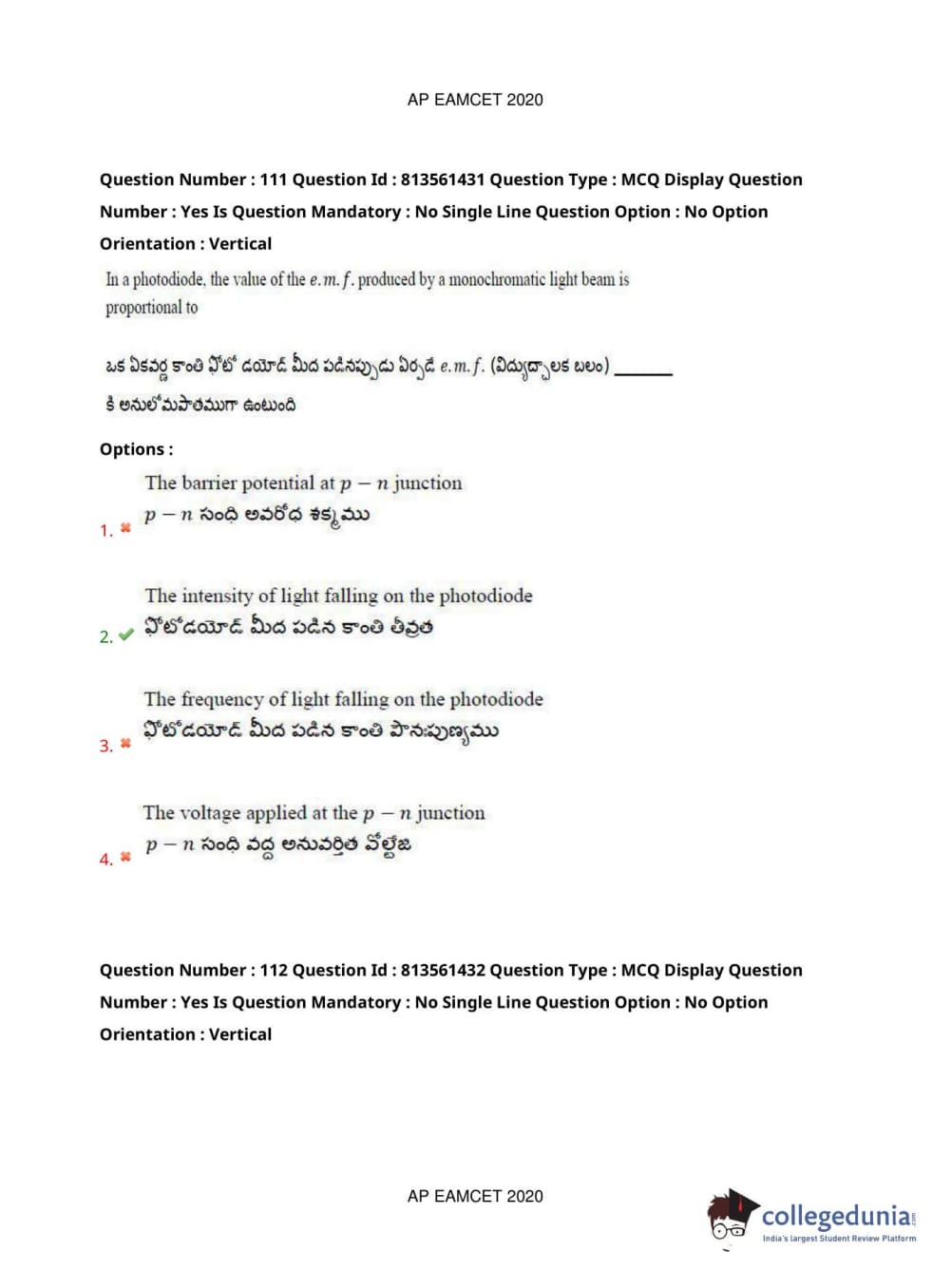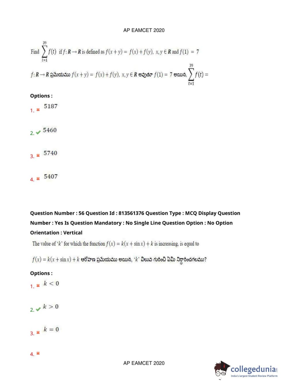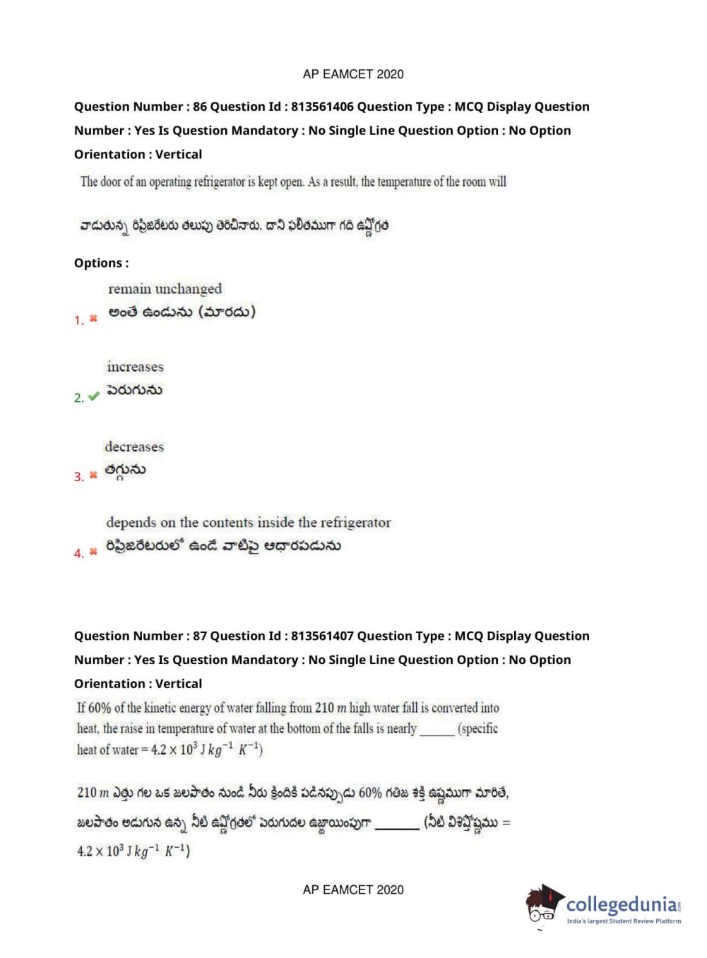 AP EAPCET 2020 Engineering Question Paper with Answer Key PDFs