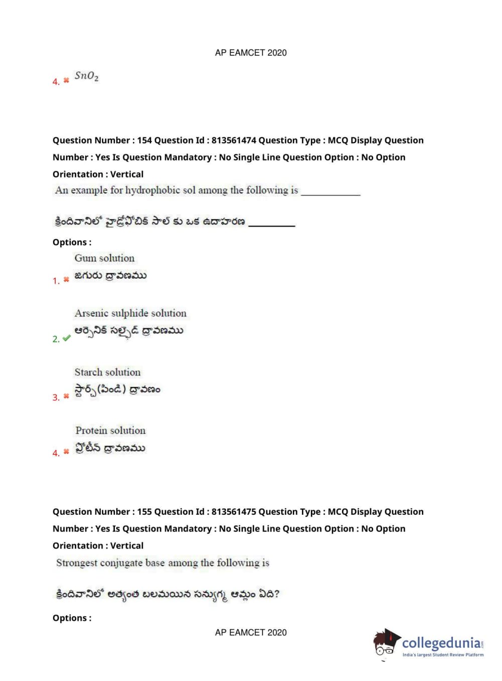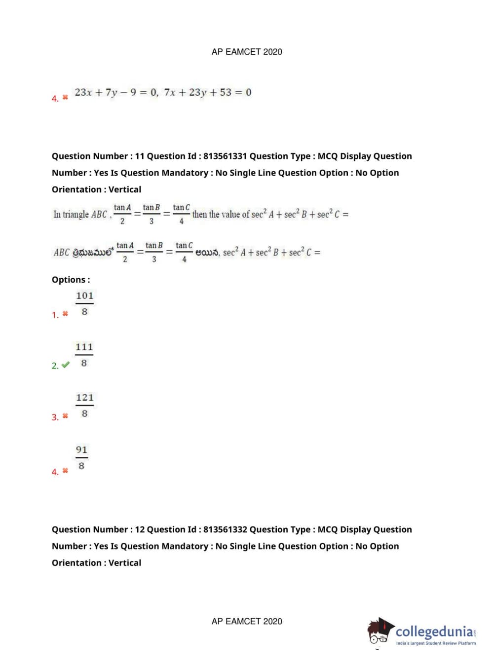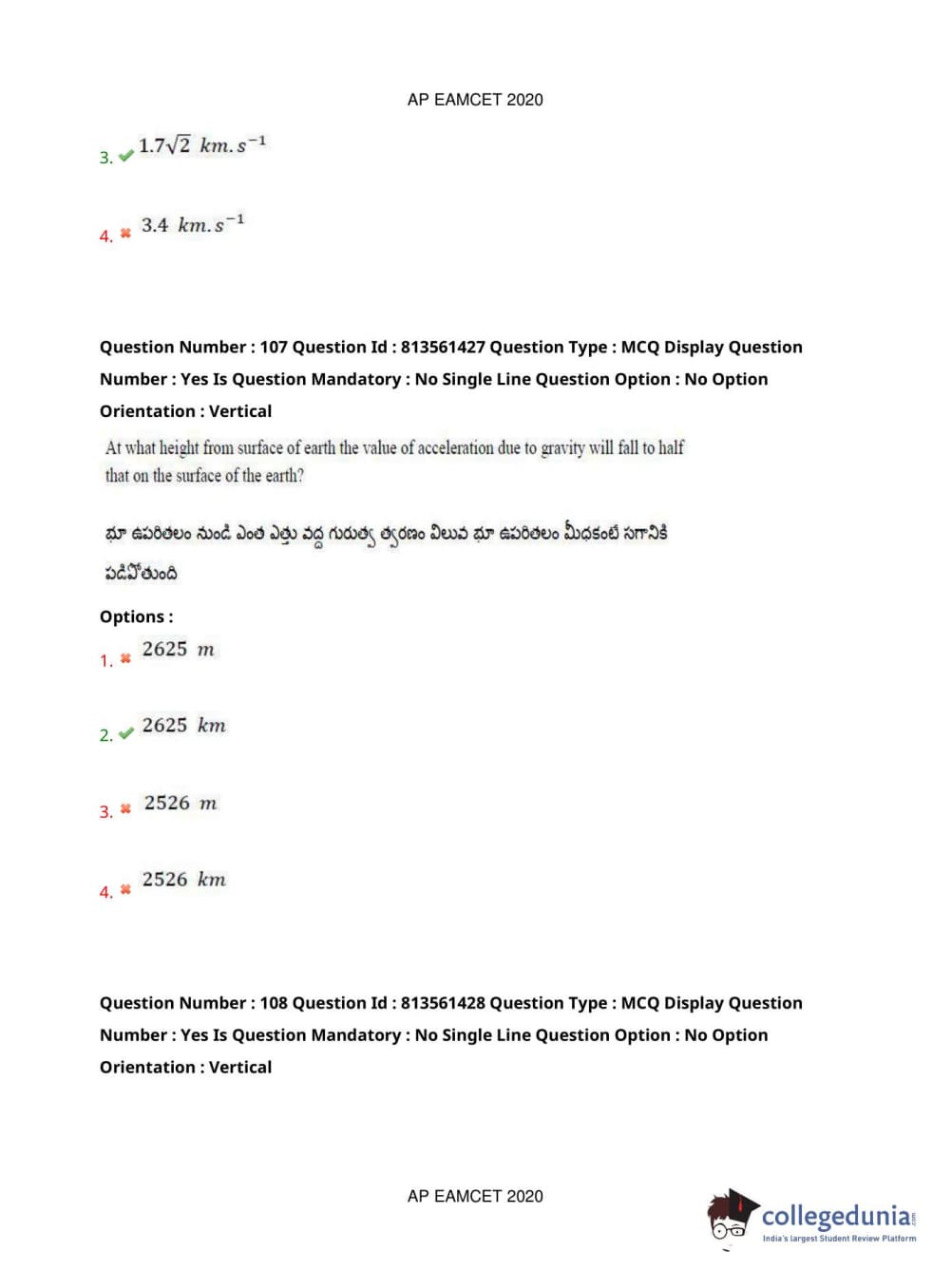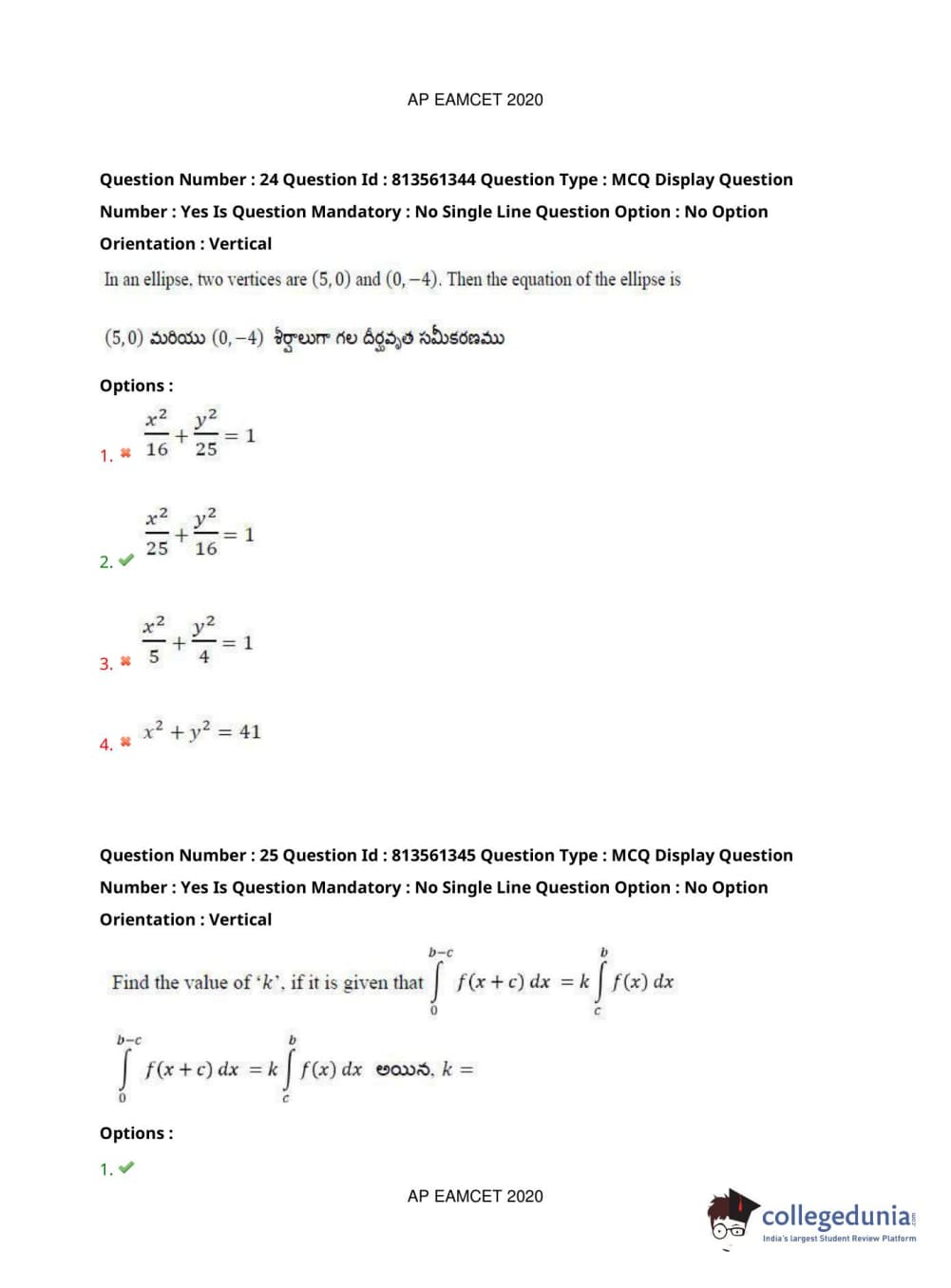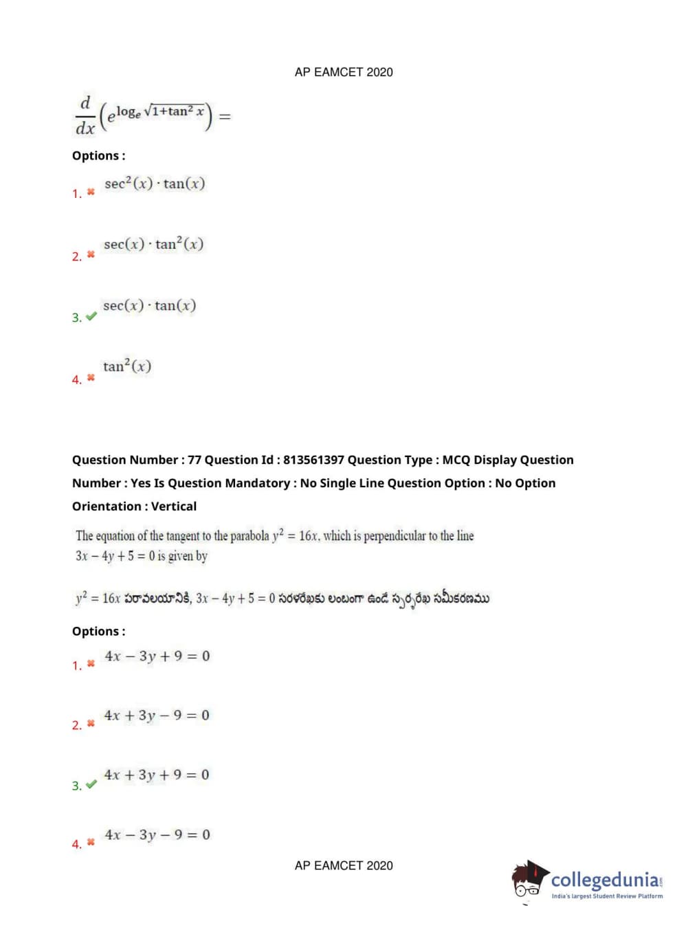 AP EAPCET 2020 Engineering Question Paper with Answer Key PDFs