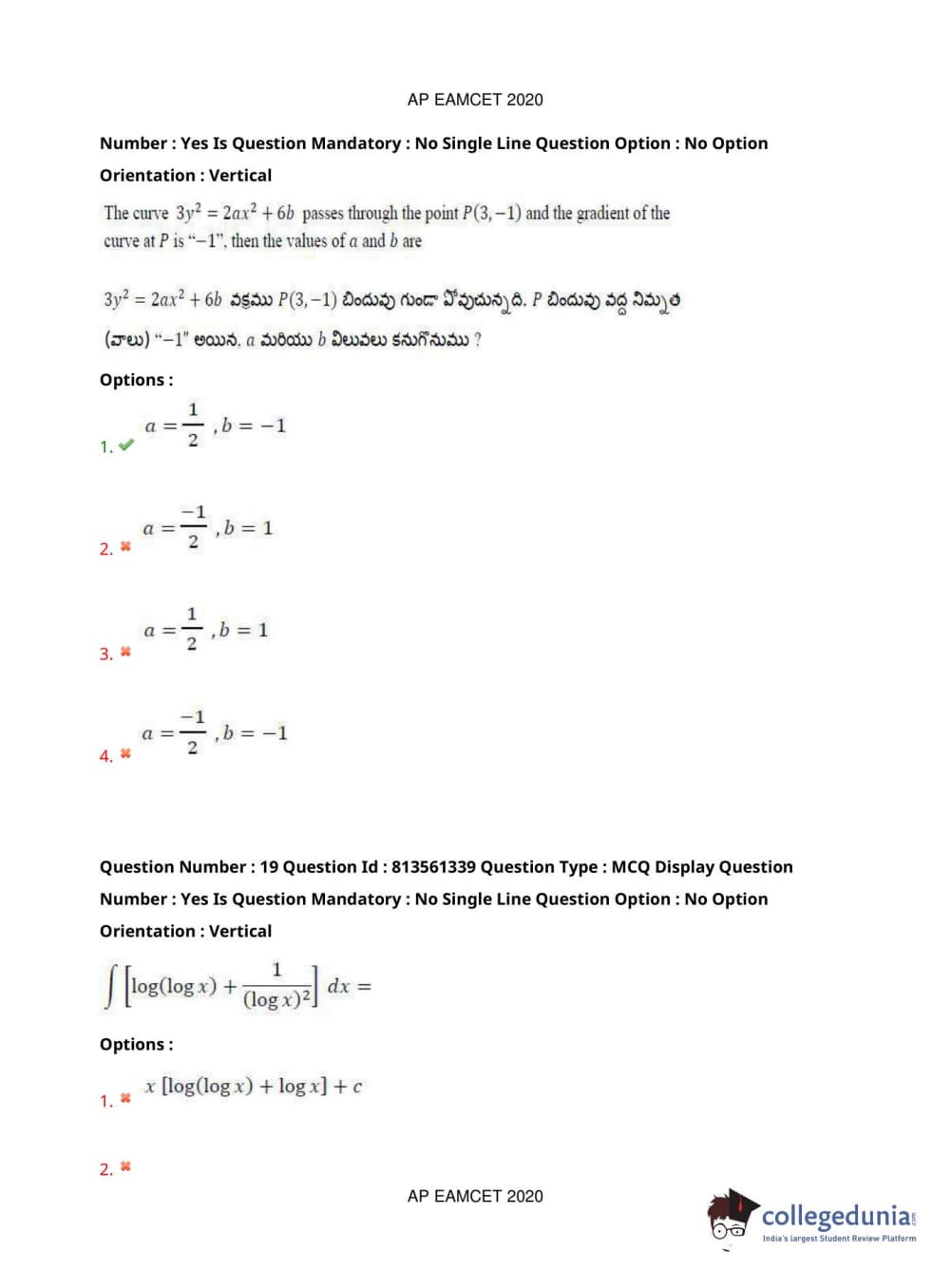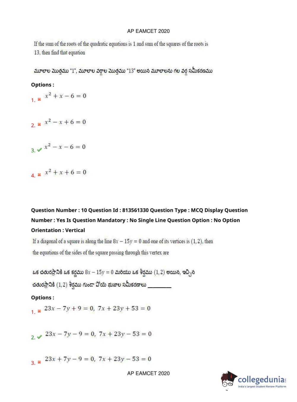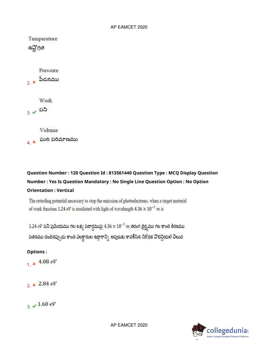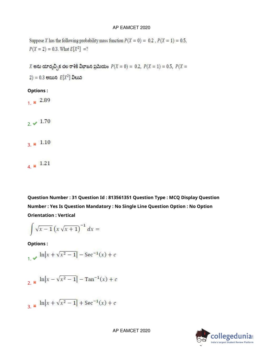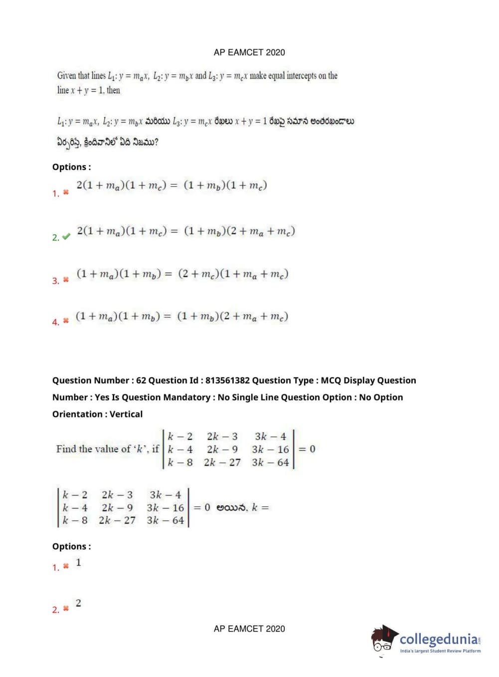 AP EAPCET 2020 Engineering Question Paper with Answer Key PDFs