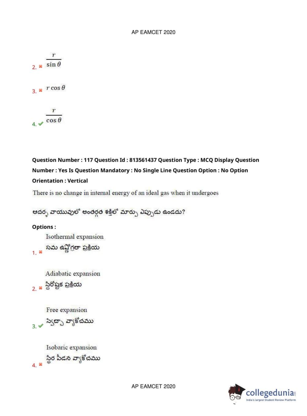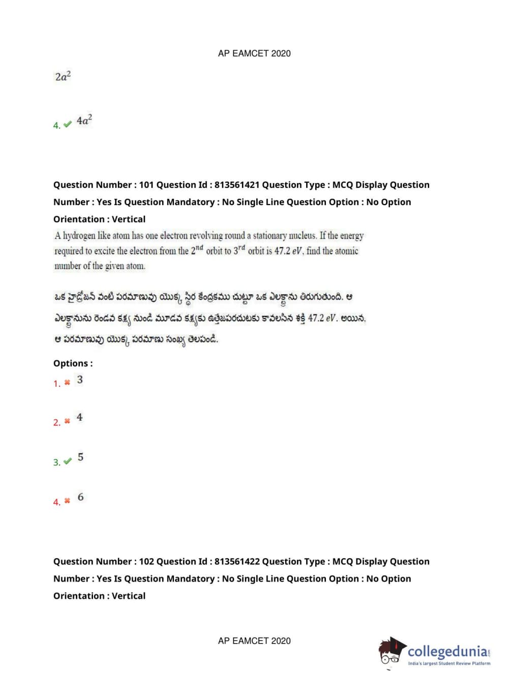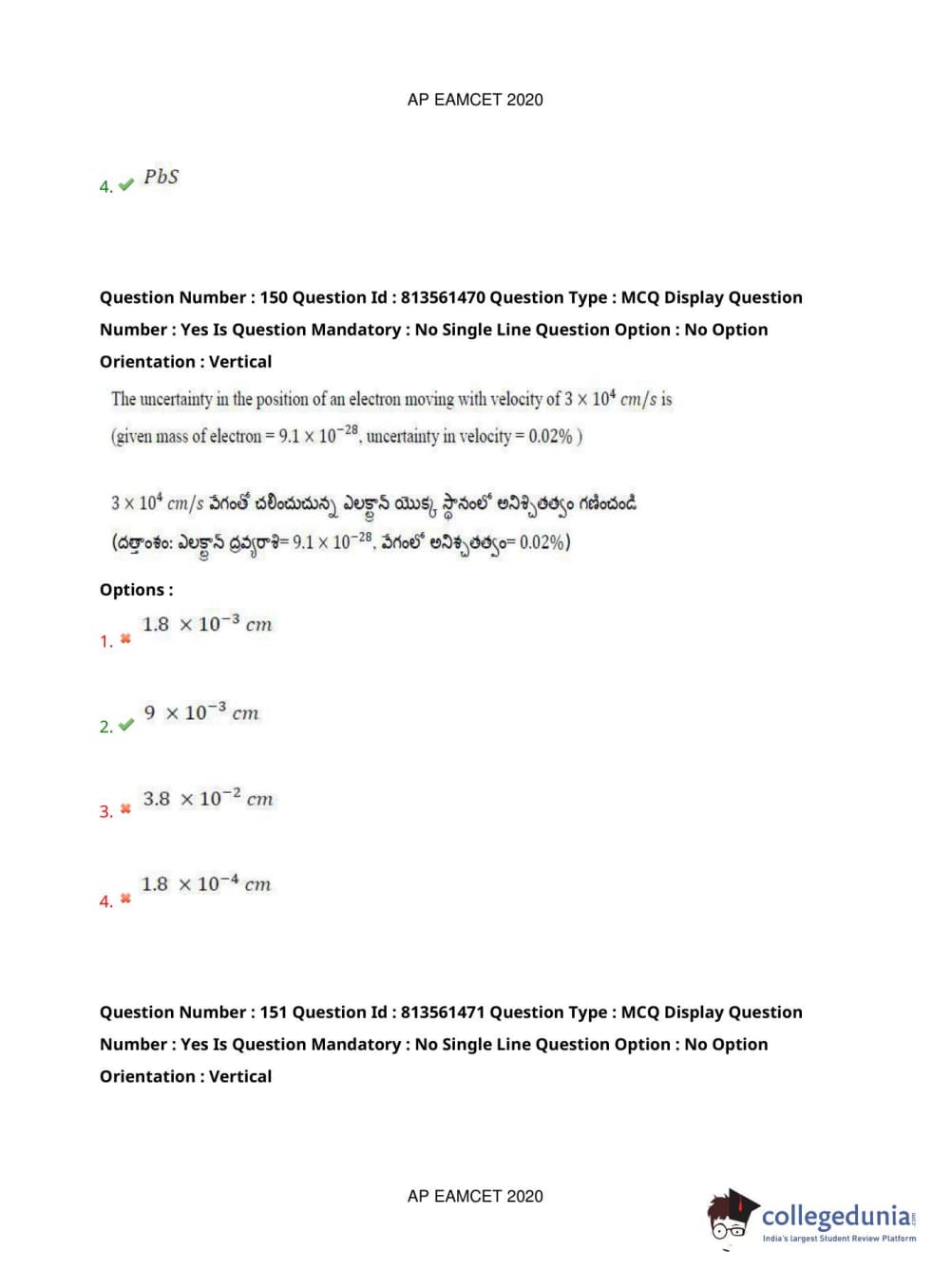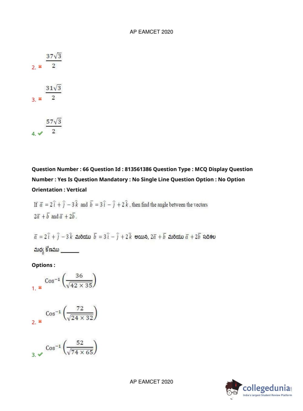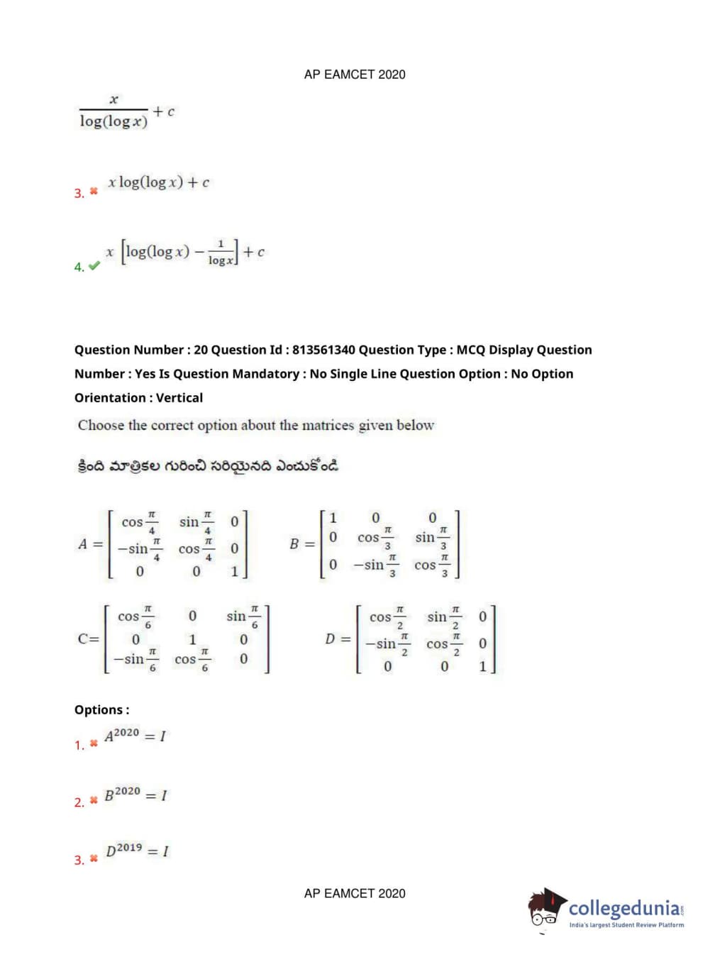 AP EAPCET 2020 Engineering Question Paper with Answer Key PDFs