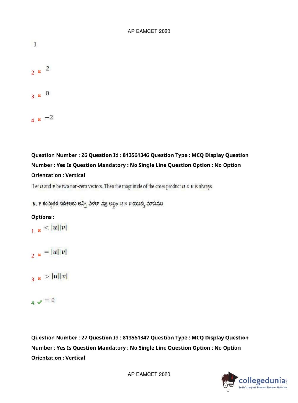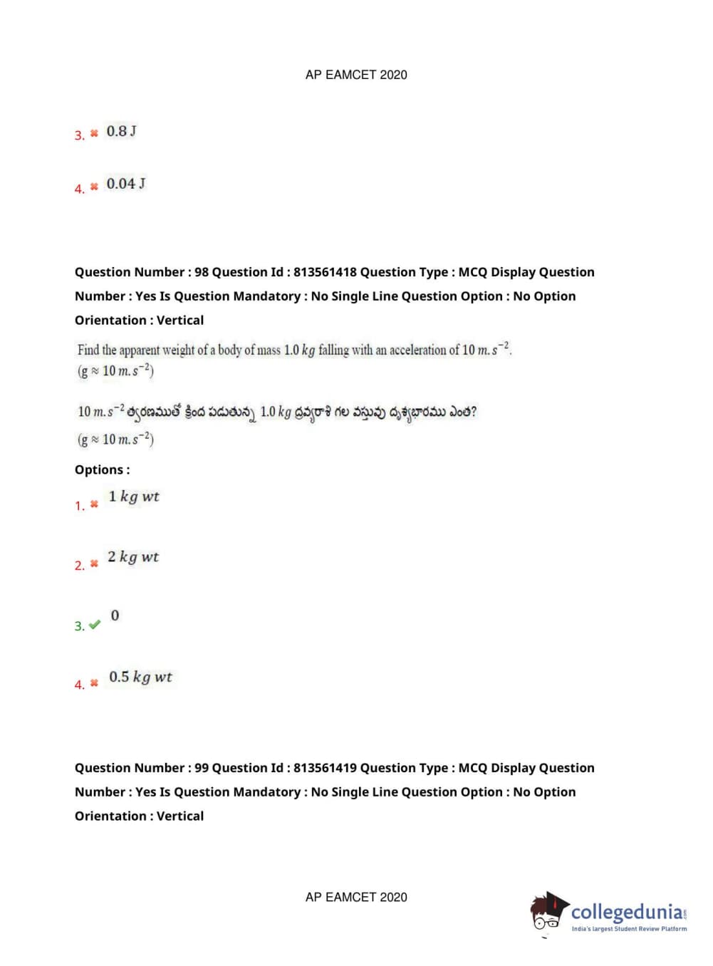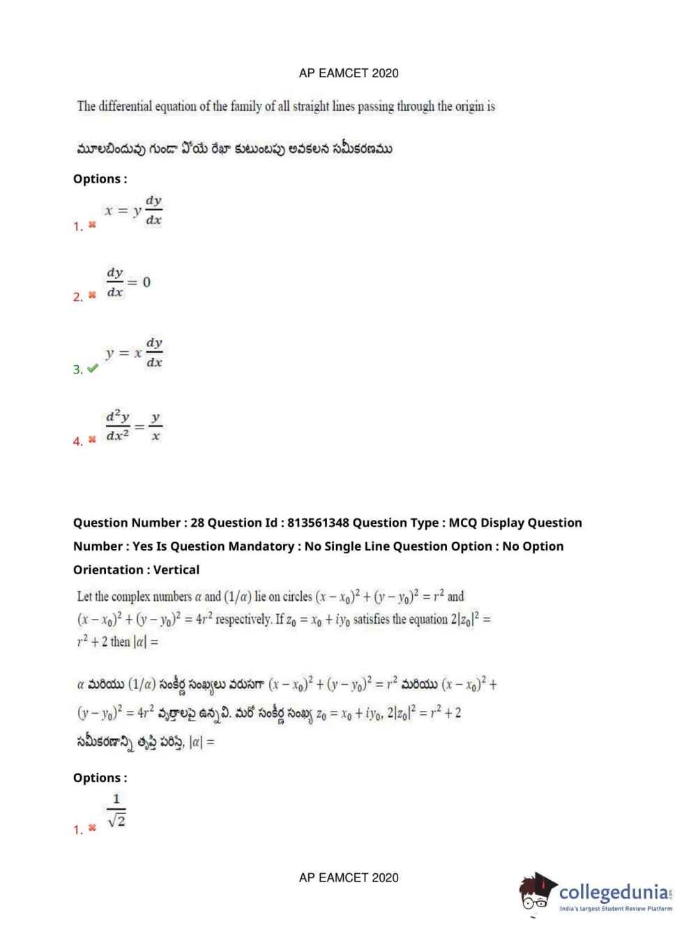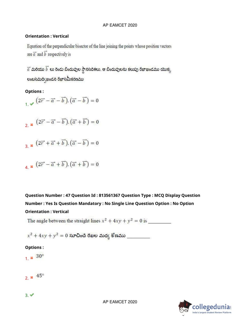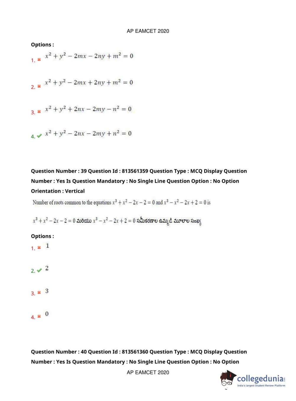 AP EAPCET 2020 Engineering Question Paper with Answer Key PDFs