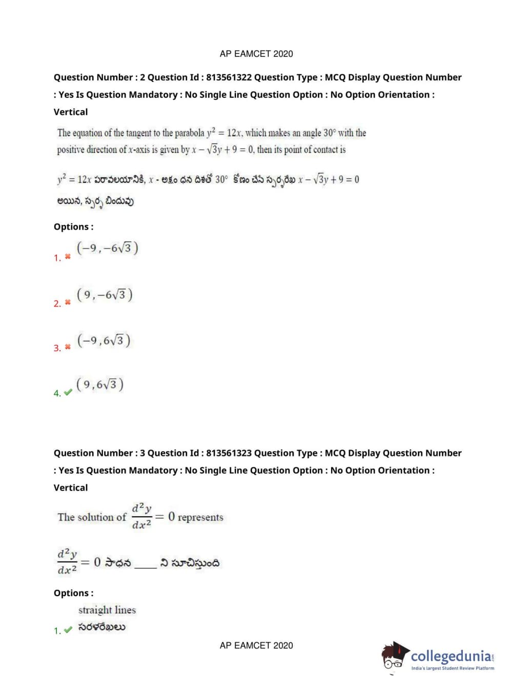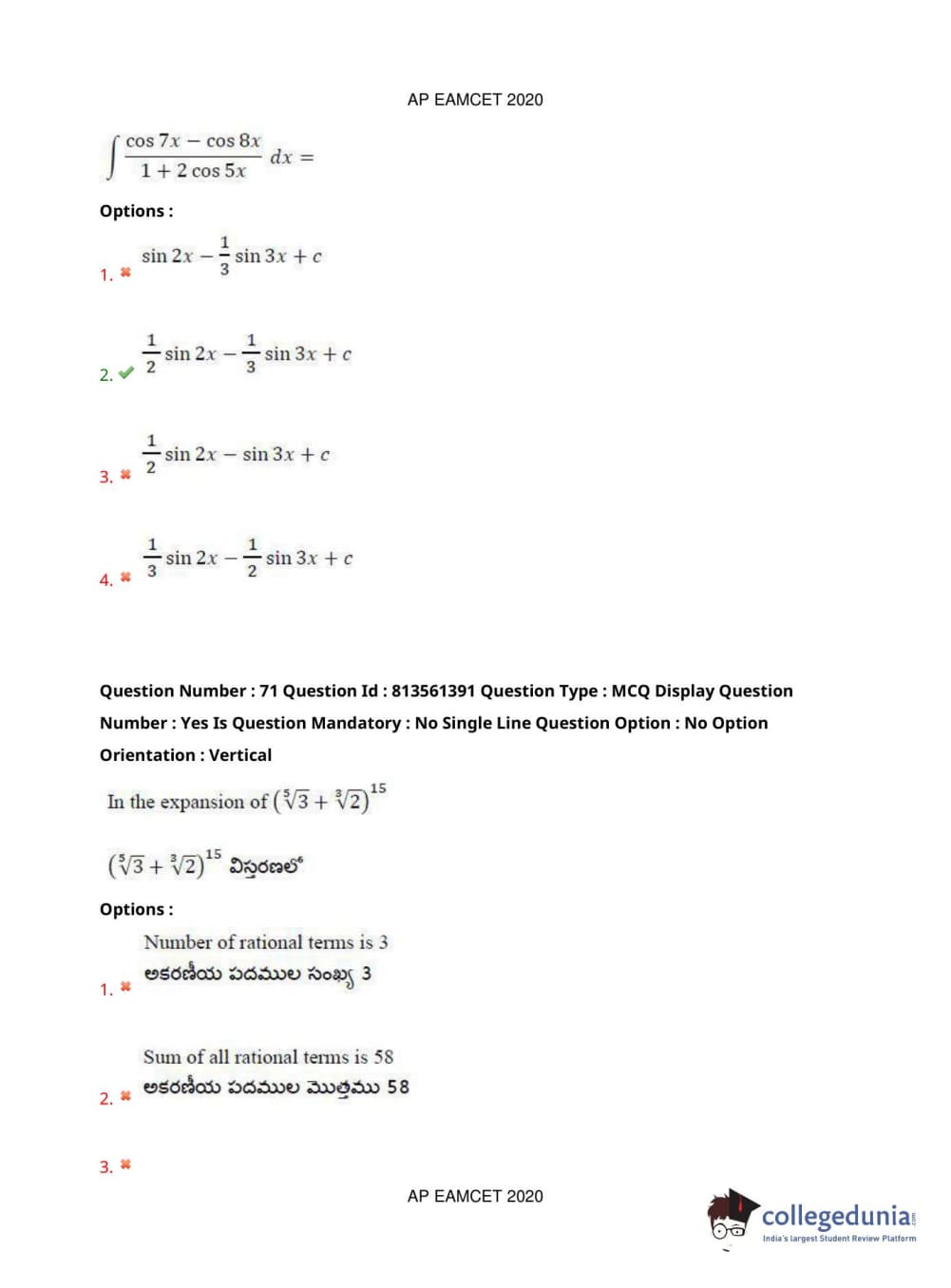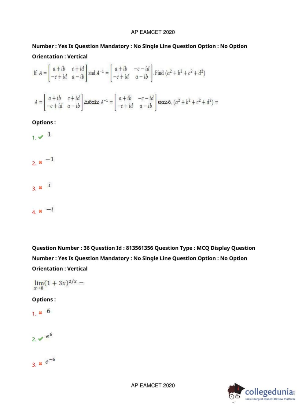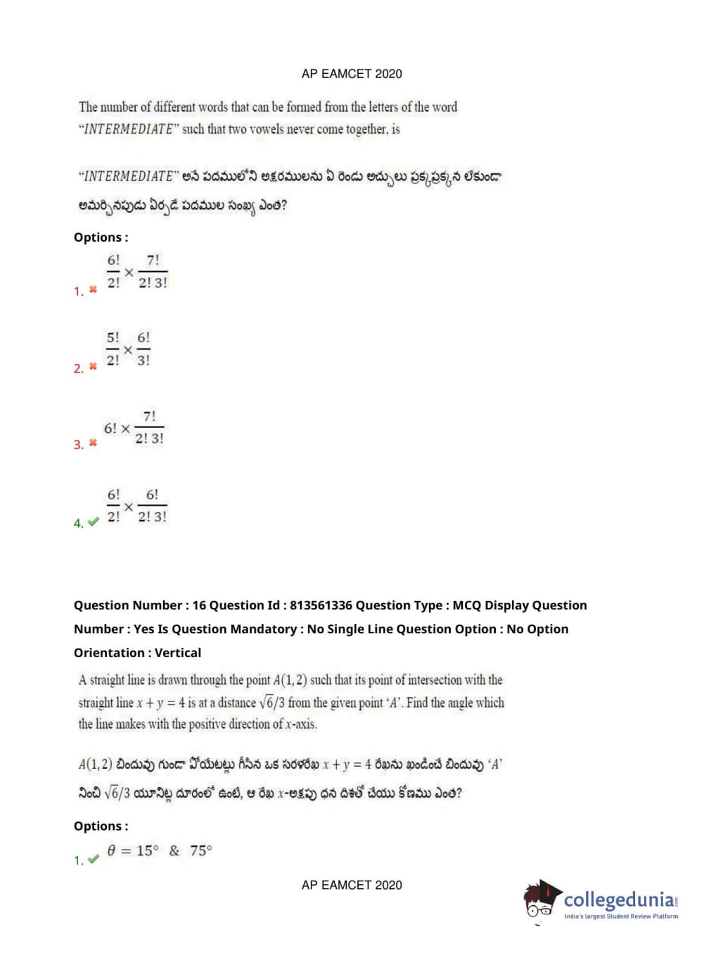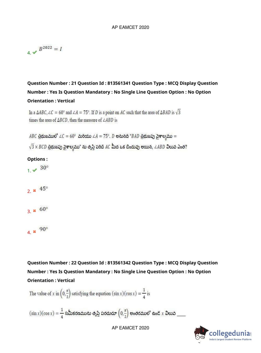 AP EAPCET 2020 Engineering Question Paper with Answer Key PDFs