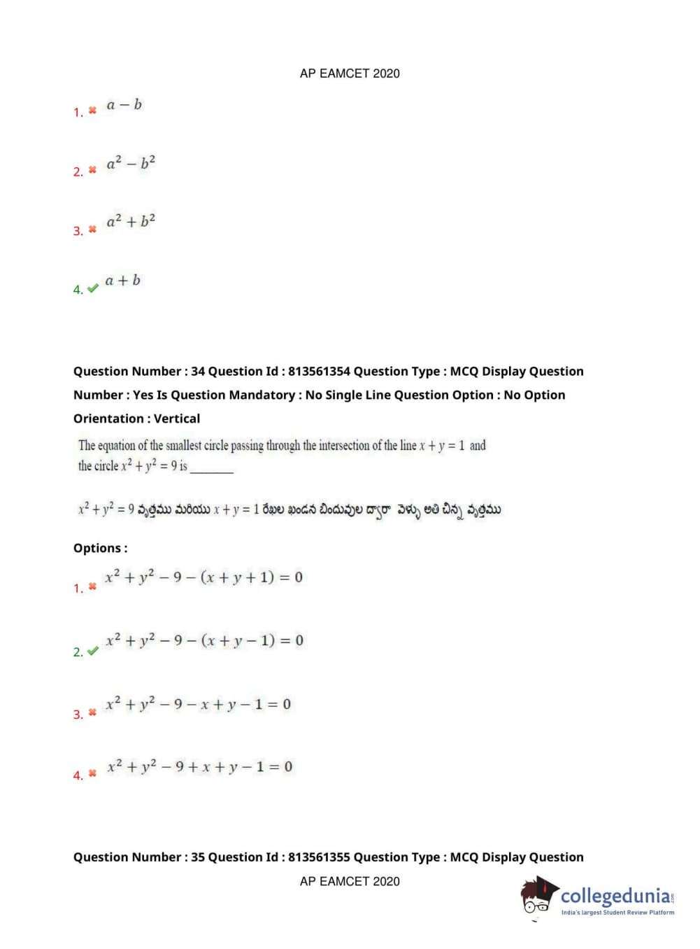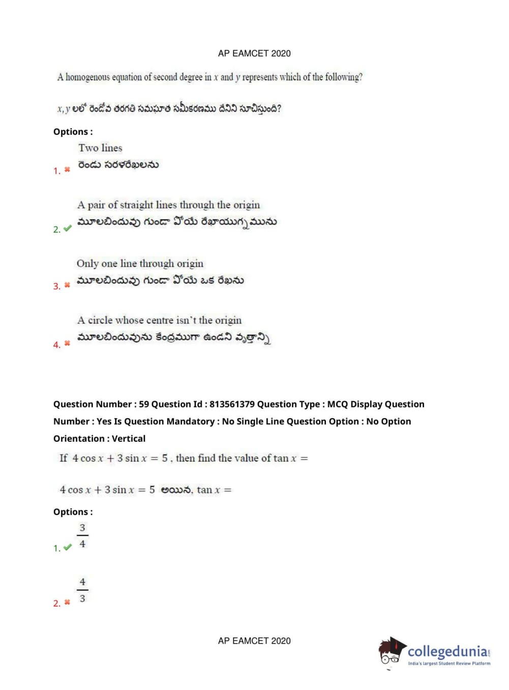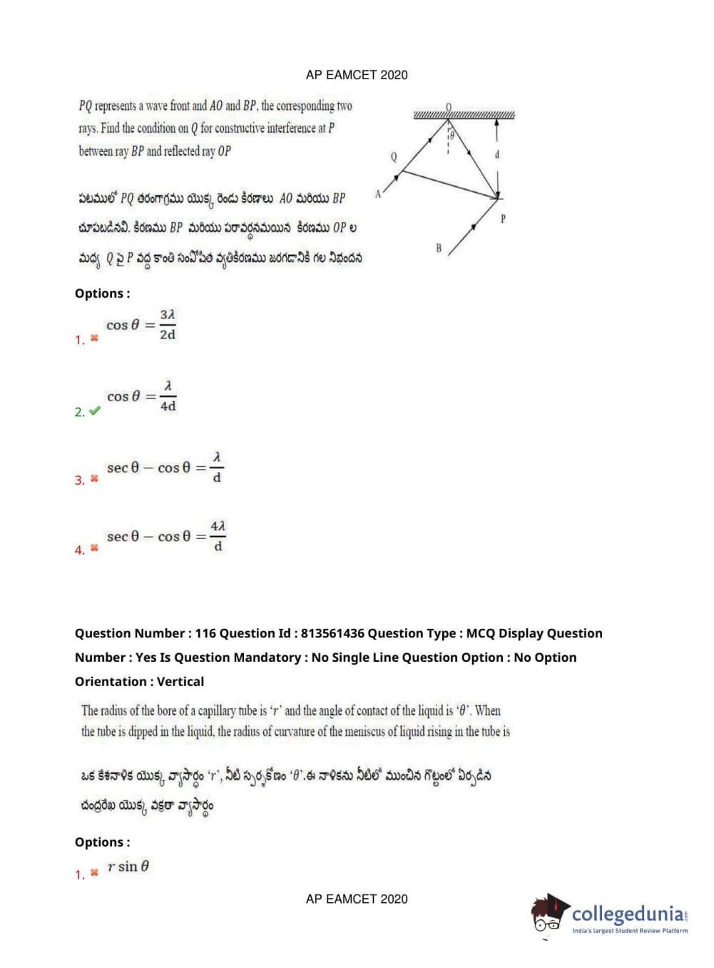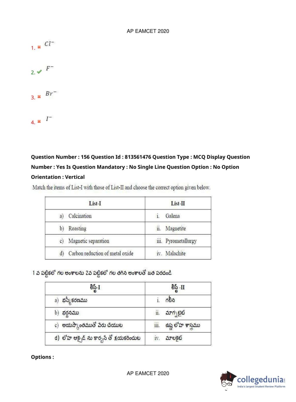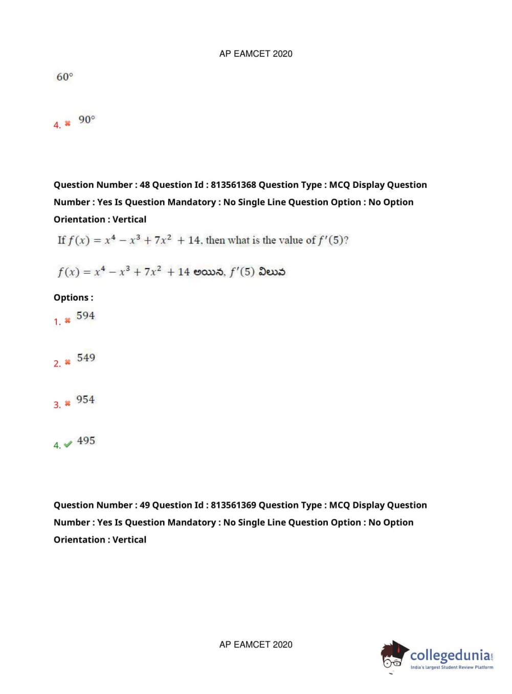 AP EAPCET 2020 Engineering Question Paper with Answer Key PDFs