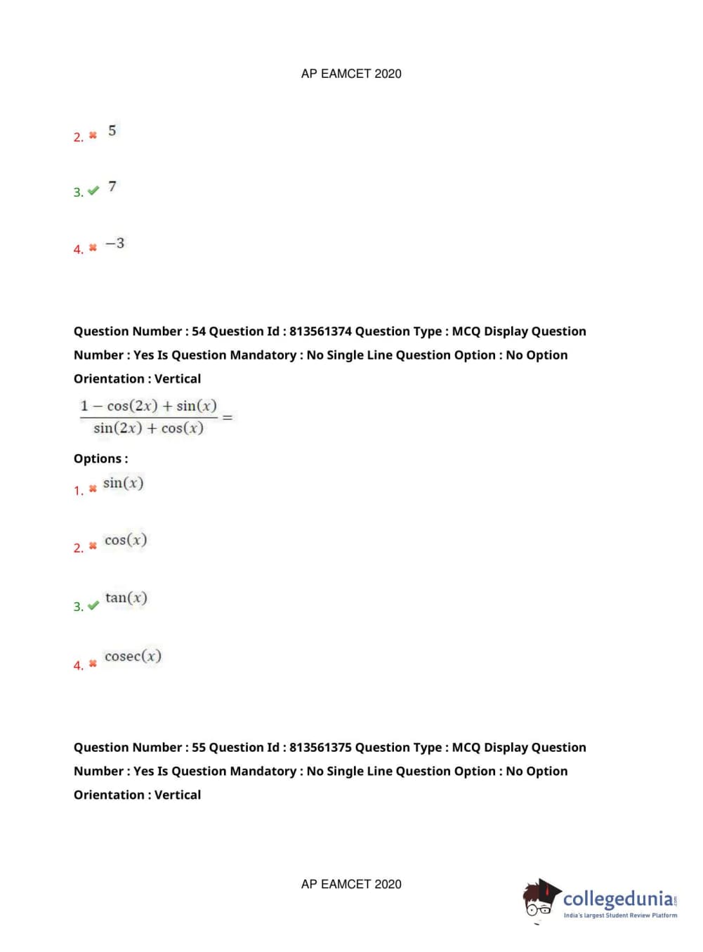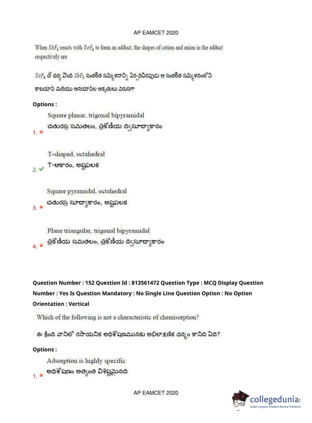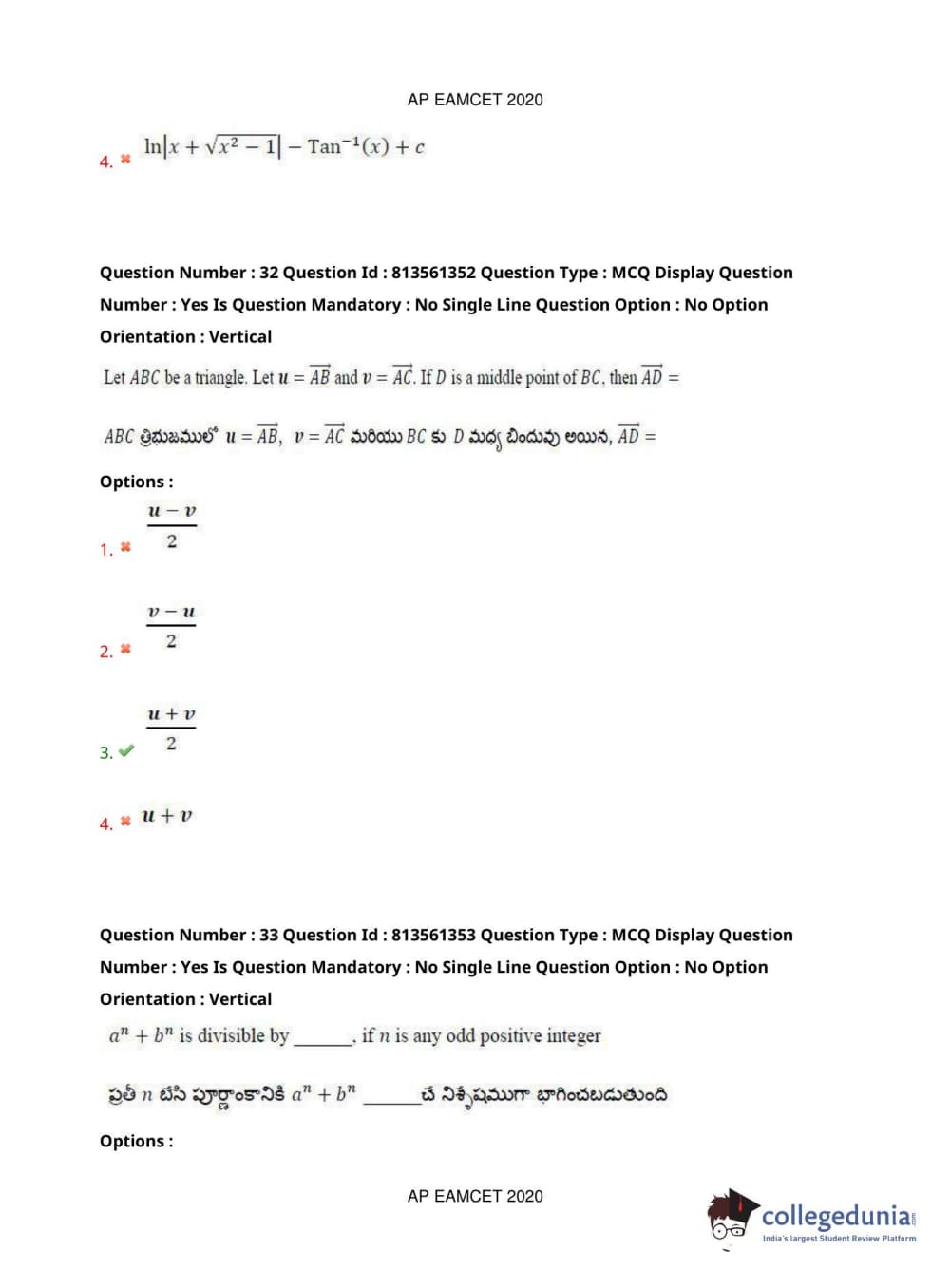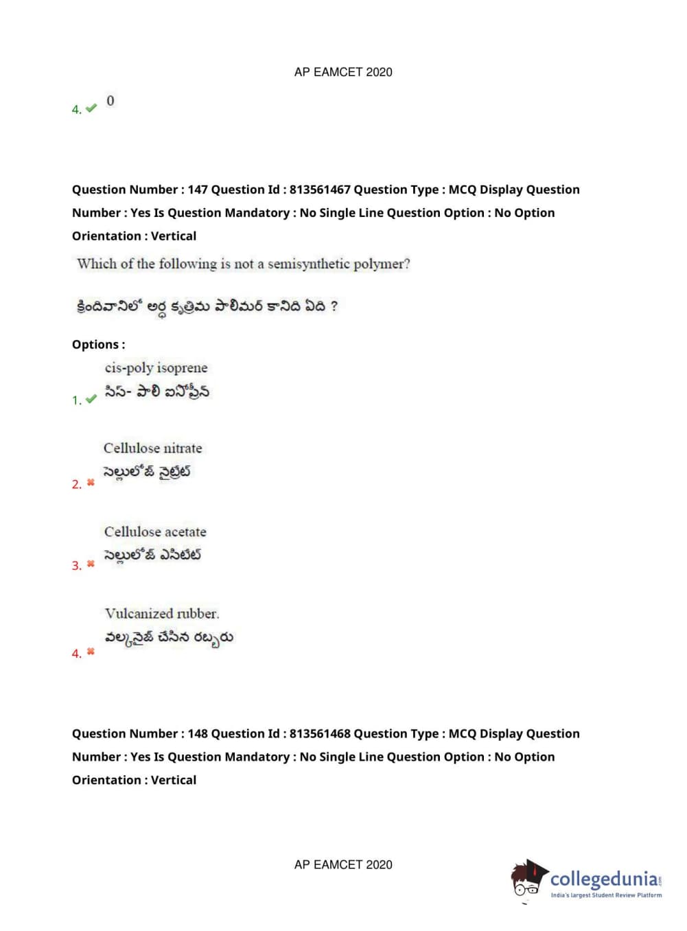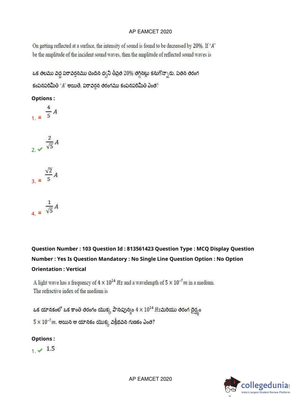 AP EAPCET 2020 Engineering Question Paper with Answer Key PDFs