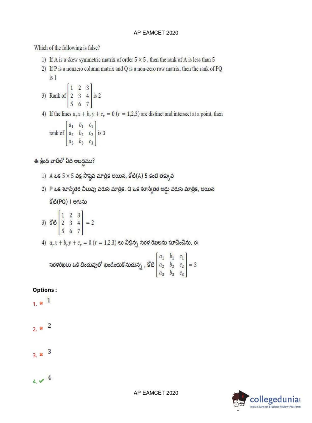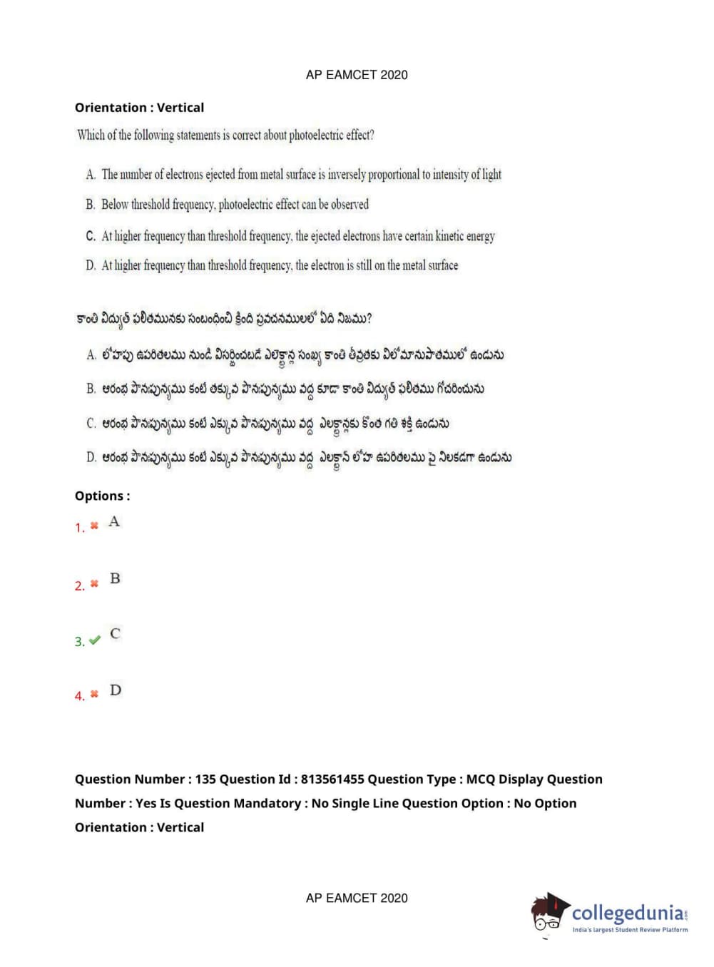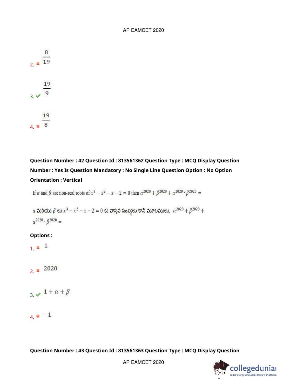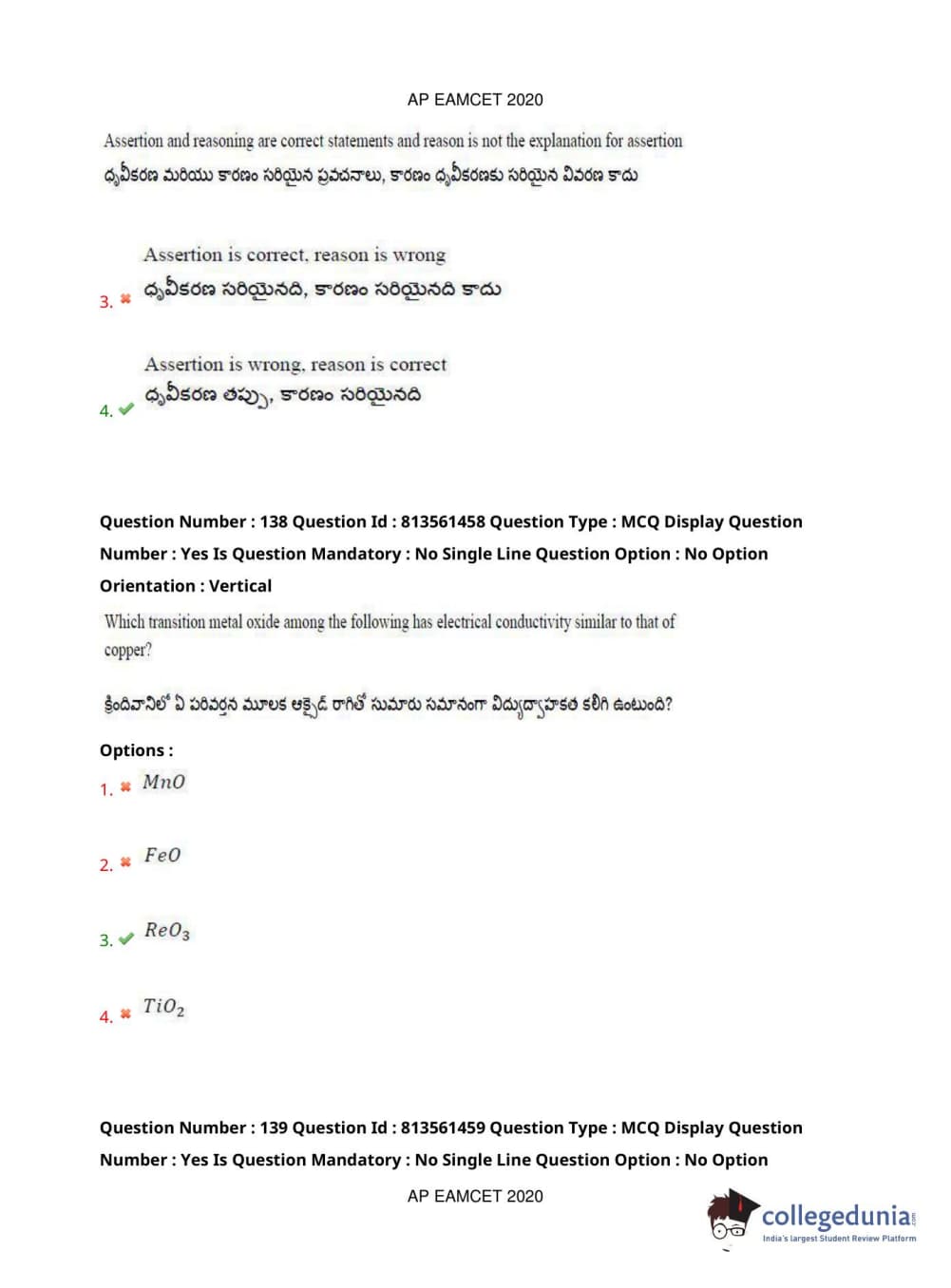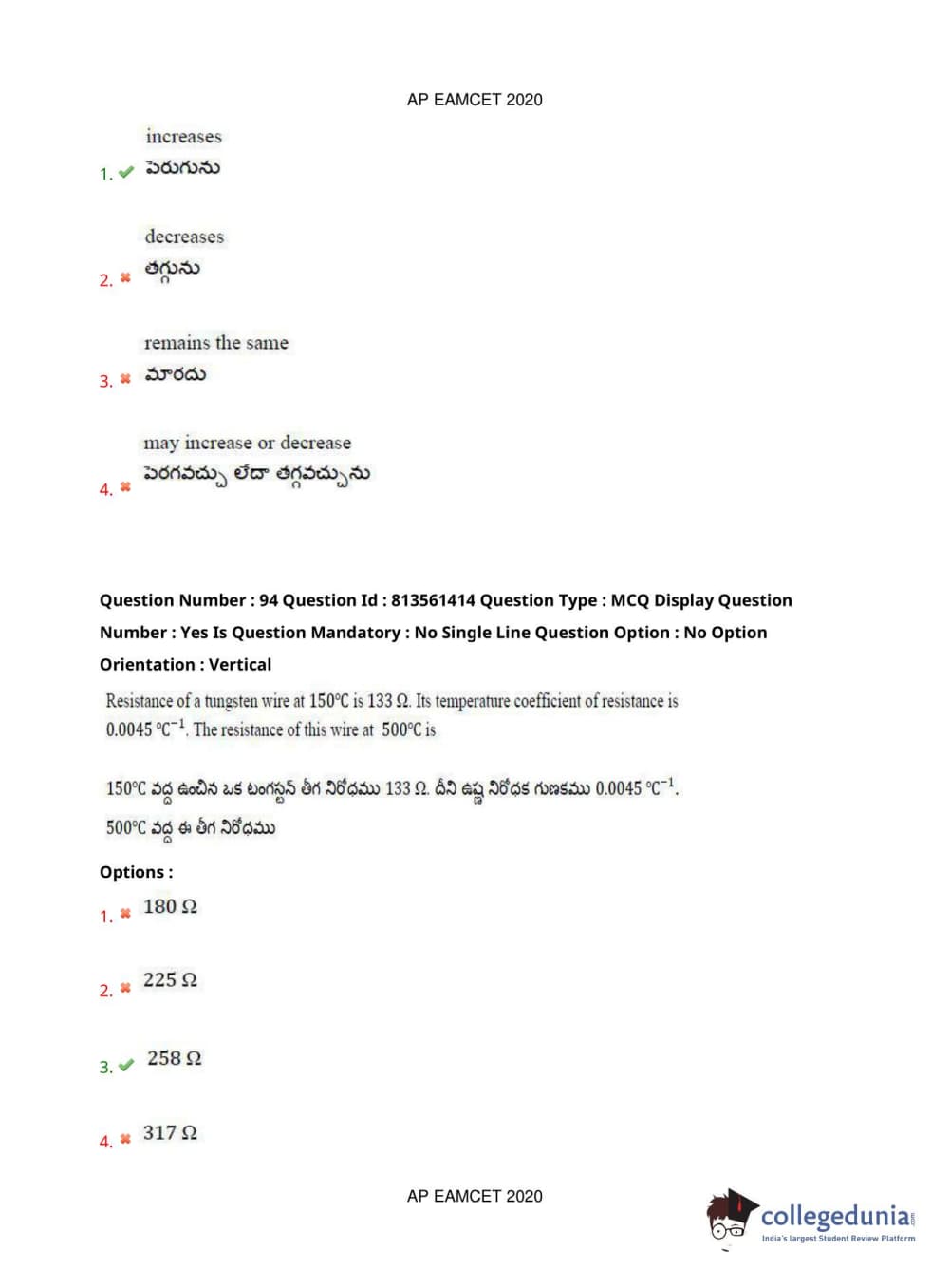 AP EAPCET 2020 Engineering Question Paper with Answer Key PDFs