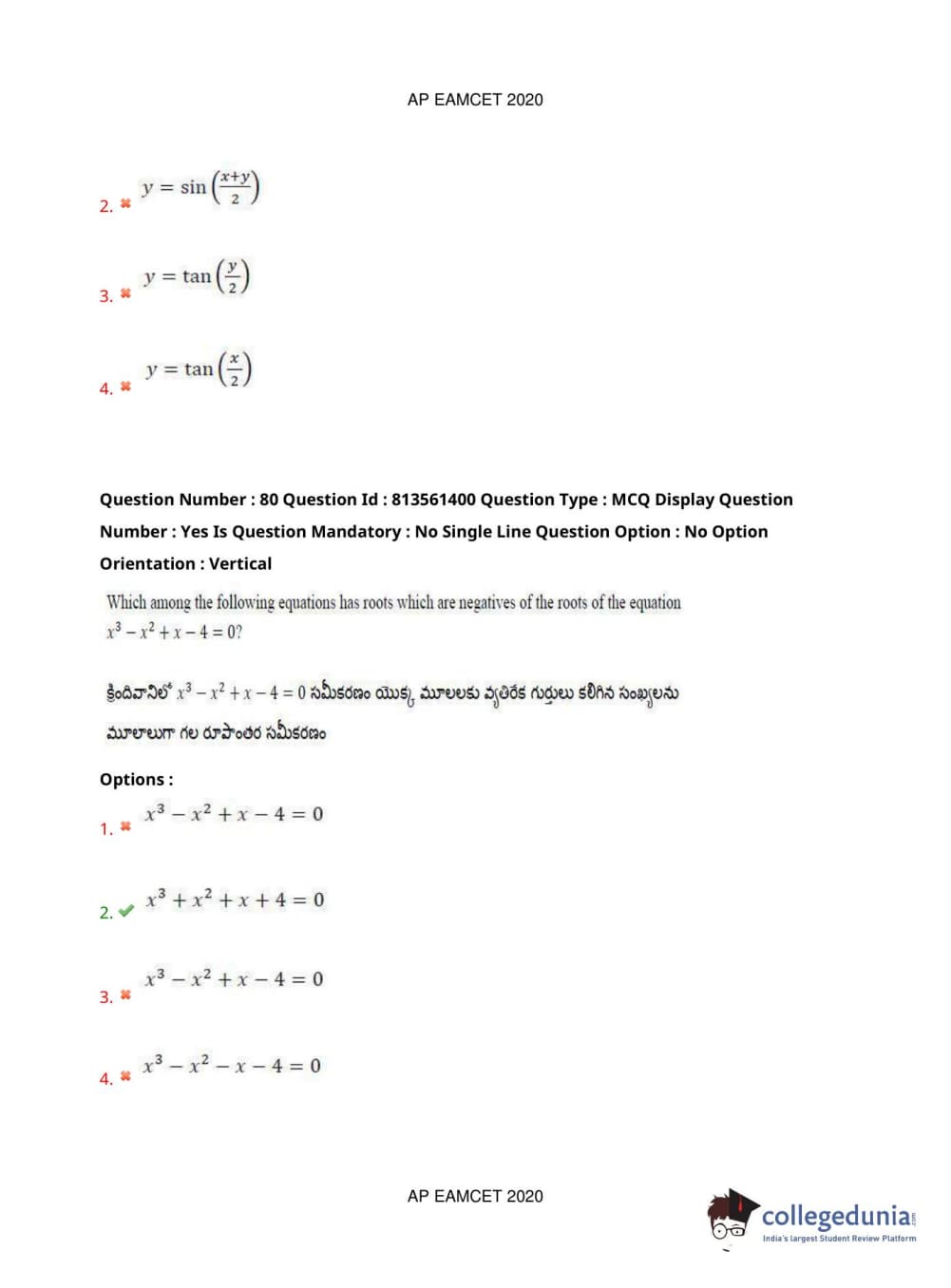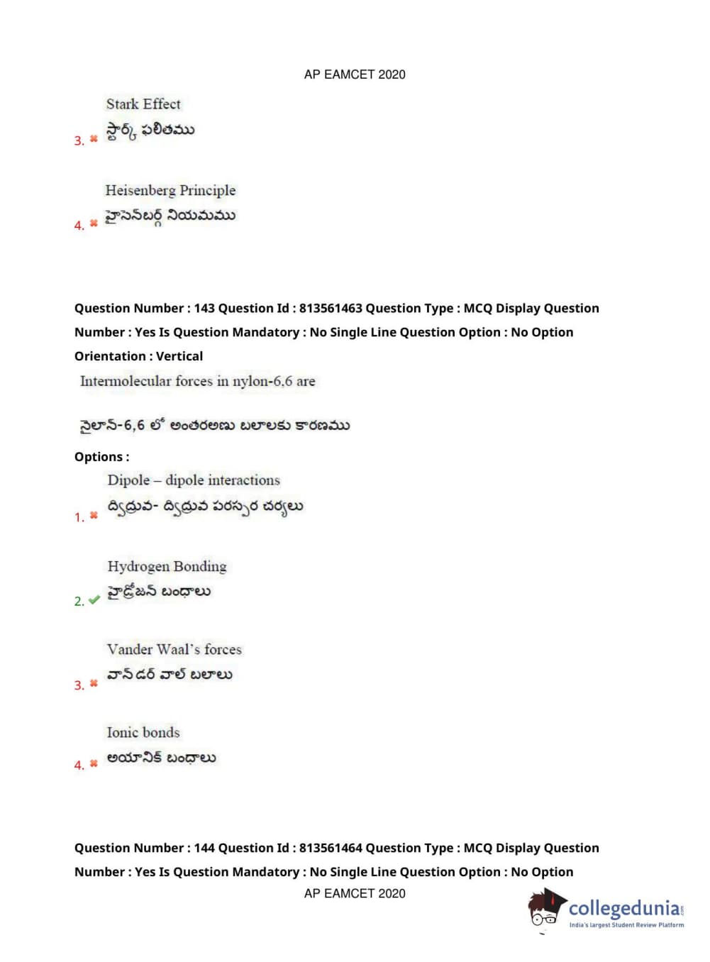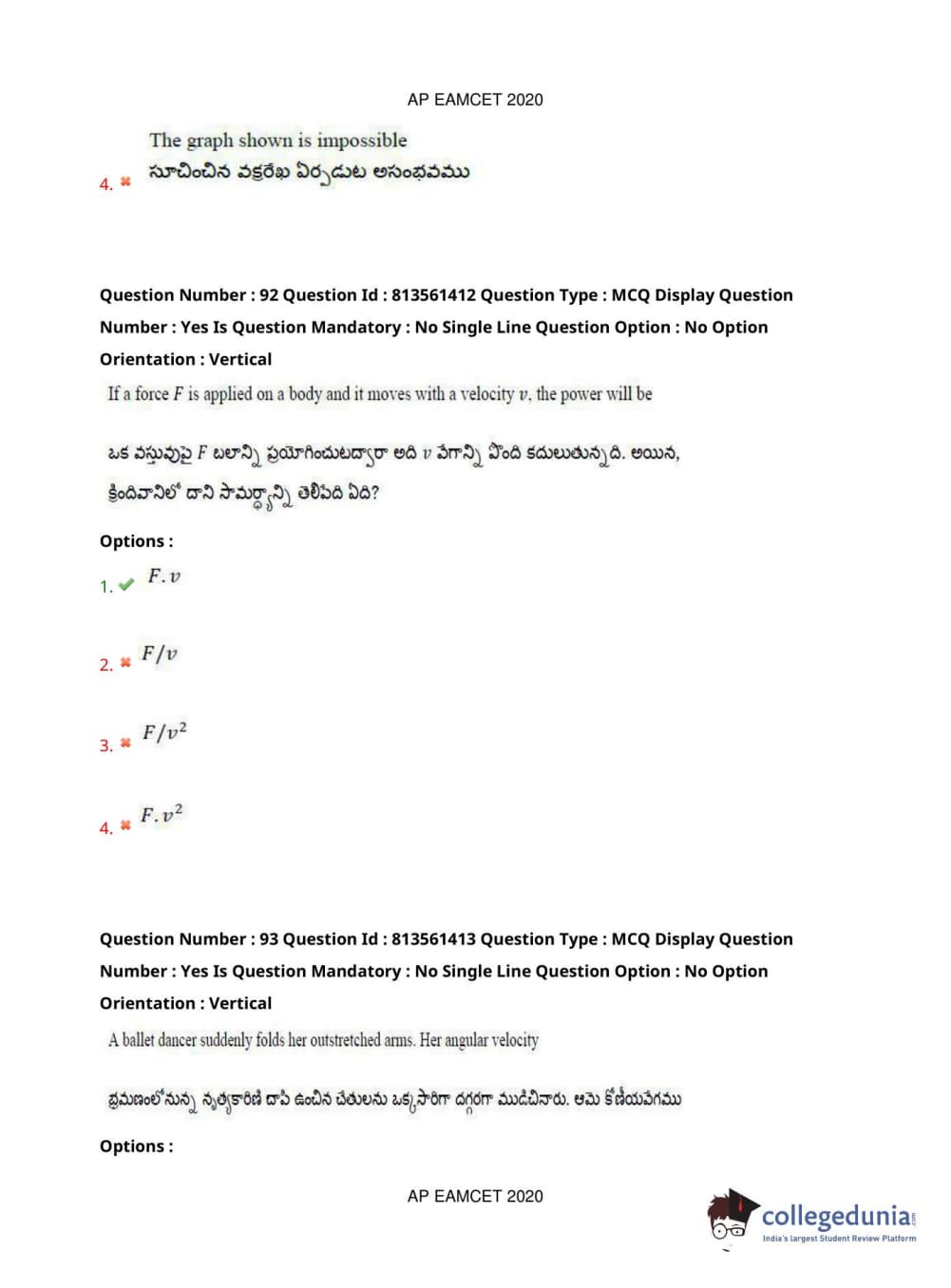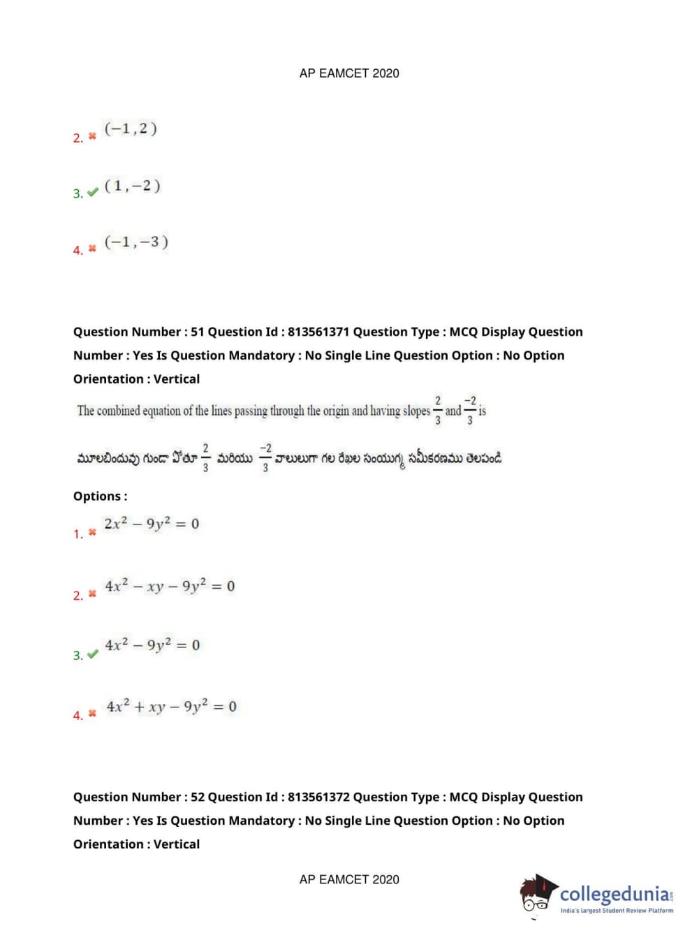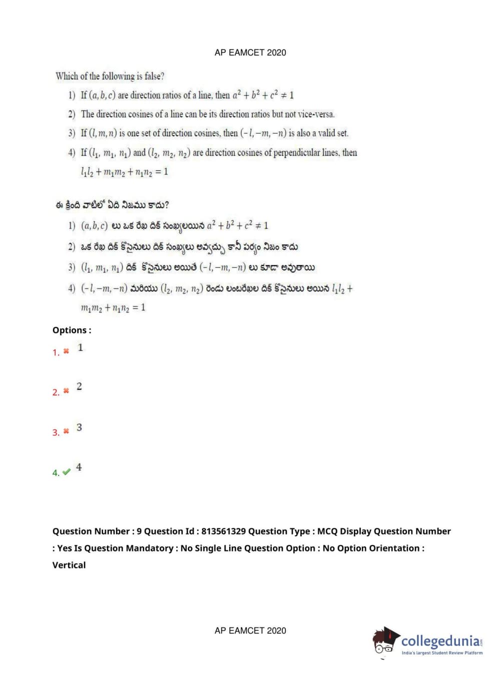 AP EAPCET 2020 Engineering Question Paper with Answer Key PDFs
