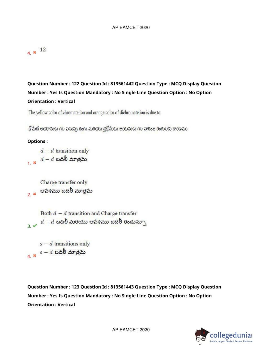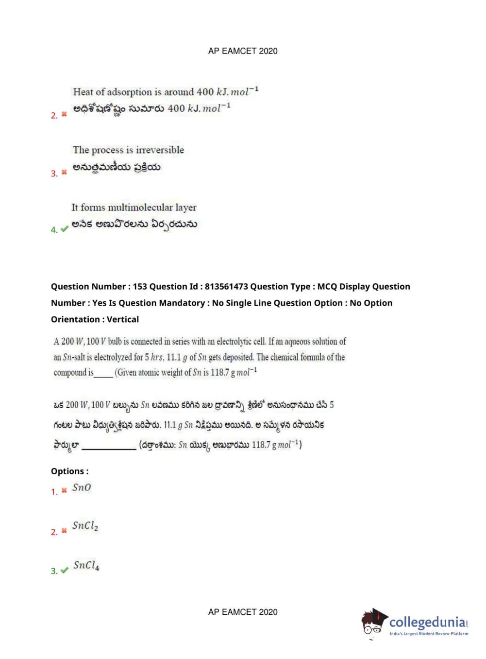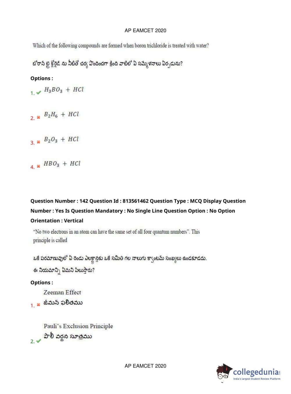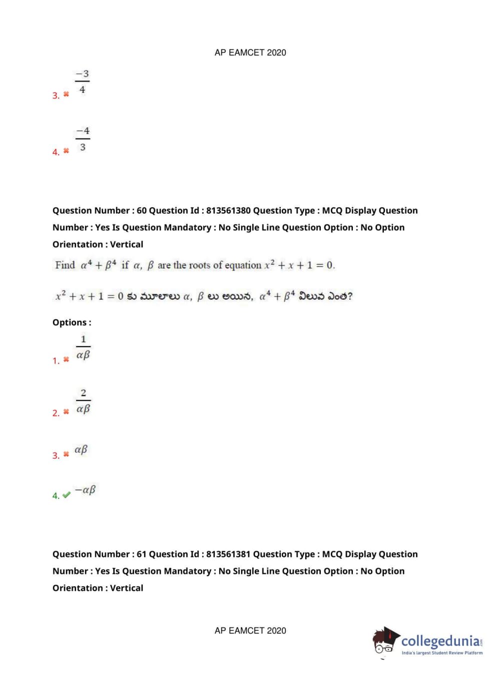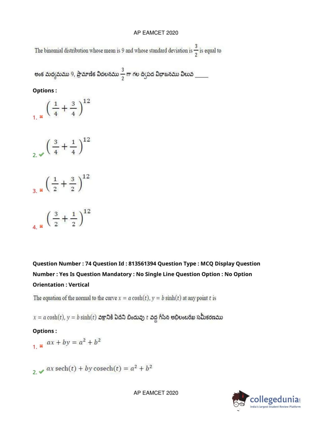 AP EAPCET 2020 Engineering Question Paper with Answer Key PDFs