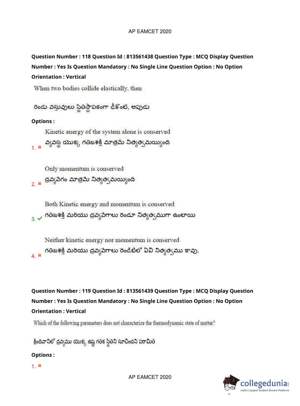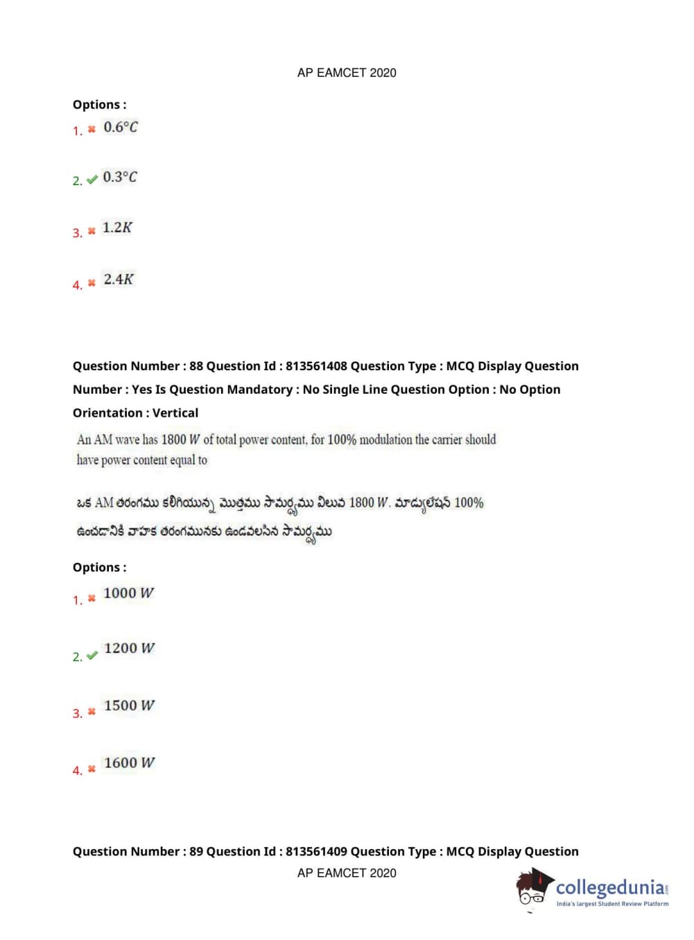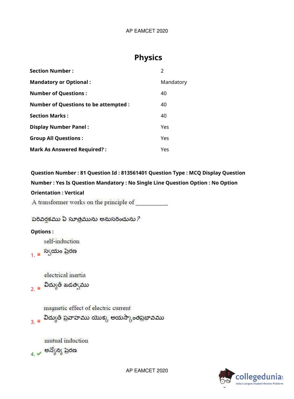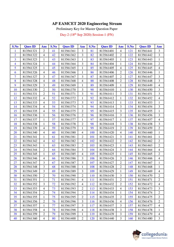 | AP EAPCET 2020 Engineering Question Paper PDF | AP EAPCET 2020 Engineering Answer Key PDF |