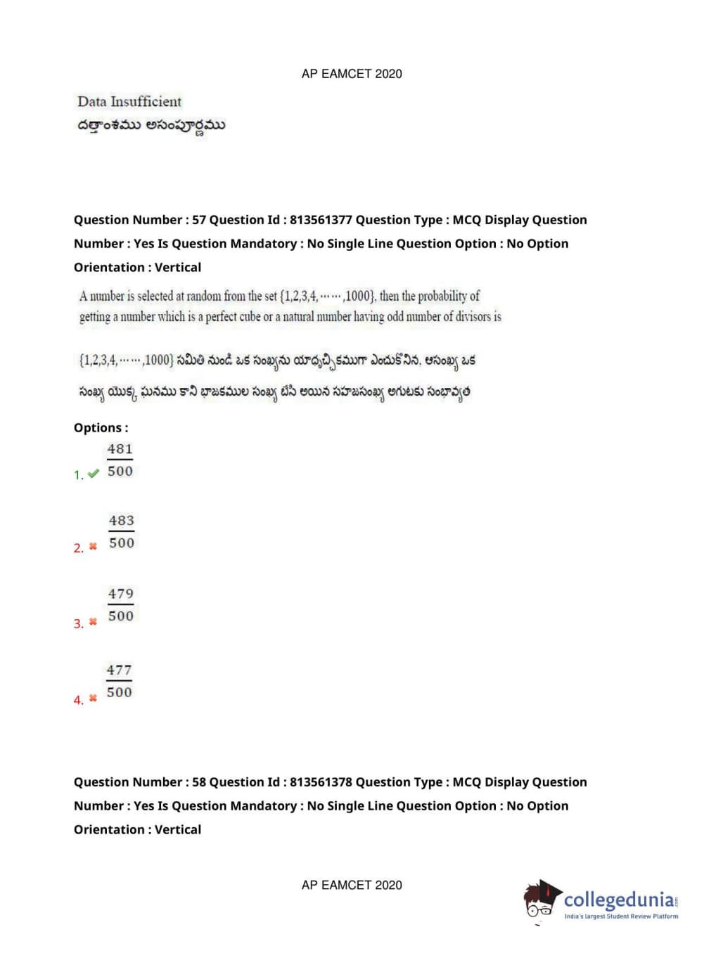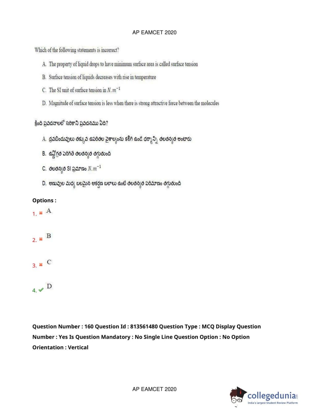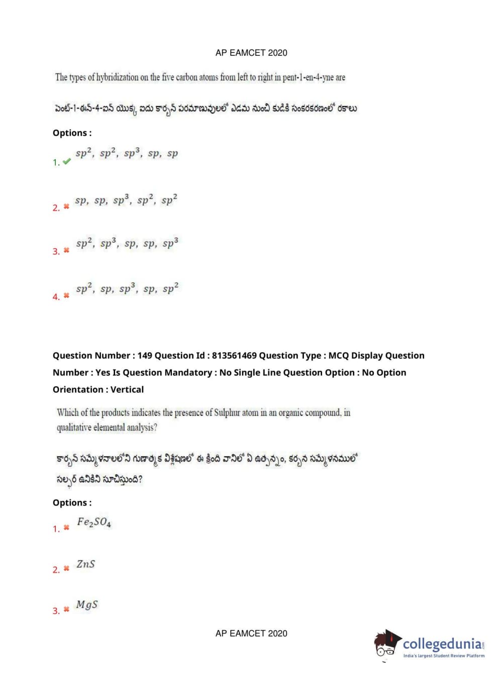 | AP EAPCET 2020 Engineering Question Paper PDF | AP EAPCET 2020 Engineering Answer Key PDF |