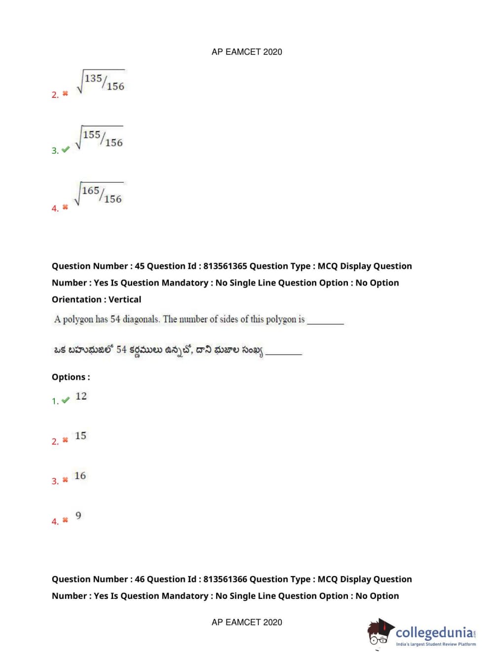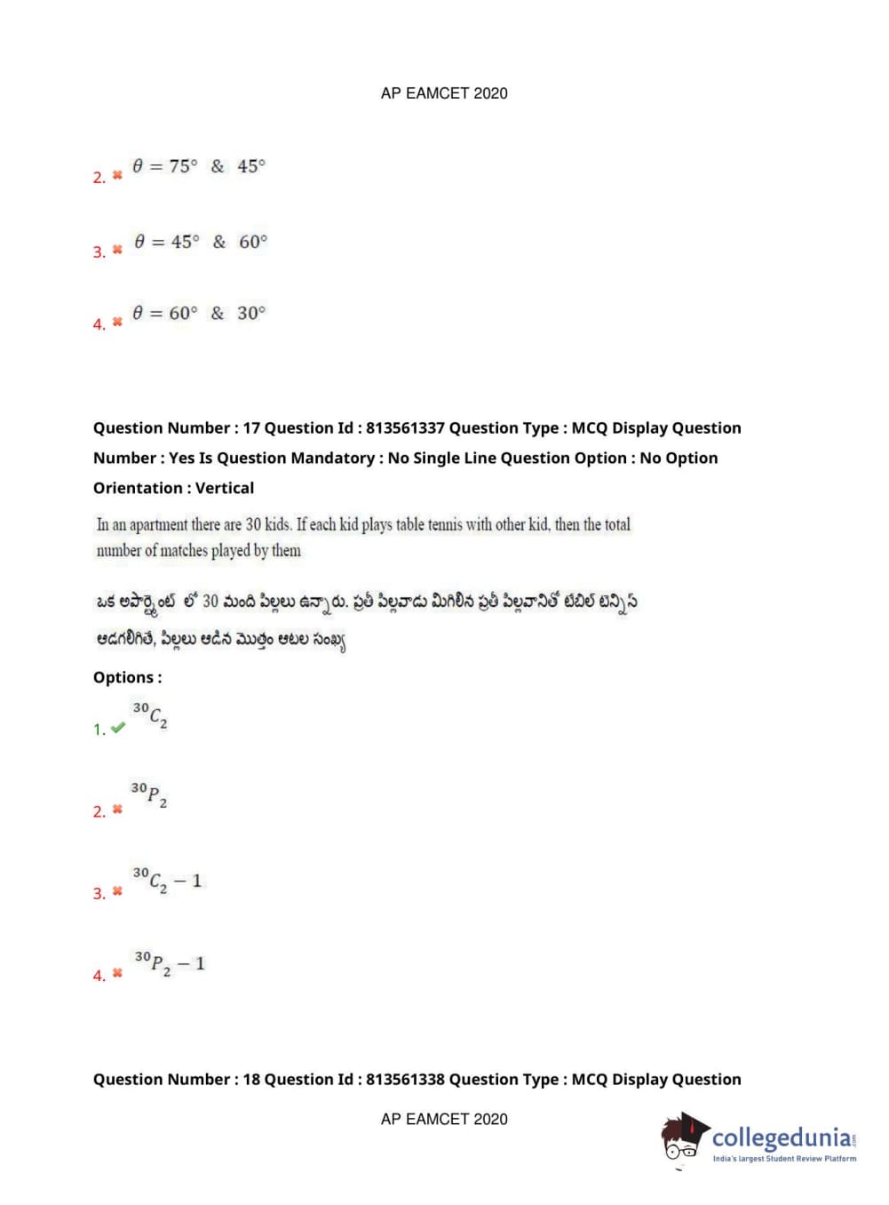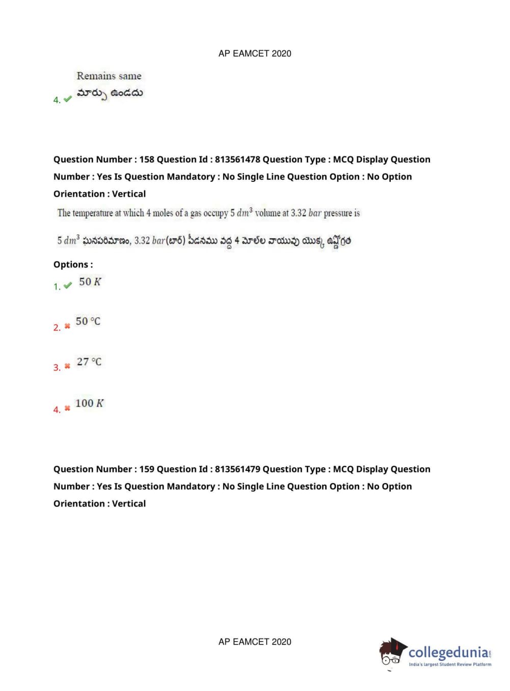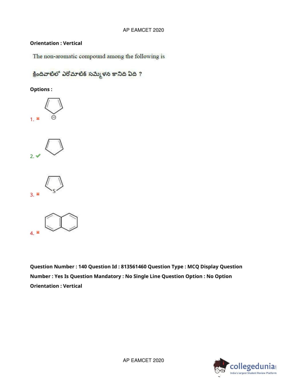AP EAPCET 2020 Engineering Question paper with answer key pdf conducted on September 18, 2020 is available for download. The exam was successfully organized by Jawaharlal Nehru Technological University, Kakinada (JNTUK). In terms of difficulty level, AP EAPCET was of Moderate level. The question paper comprised a total of 160 questions divided among 3 sections.