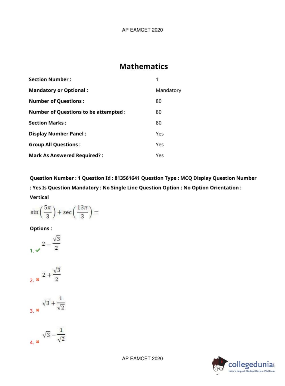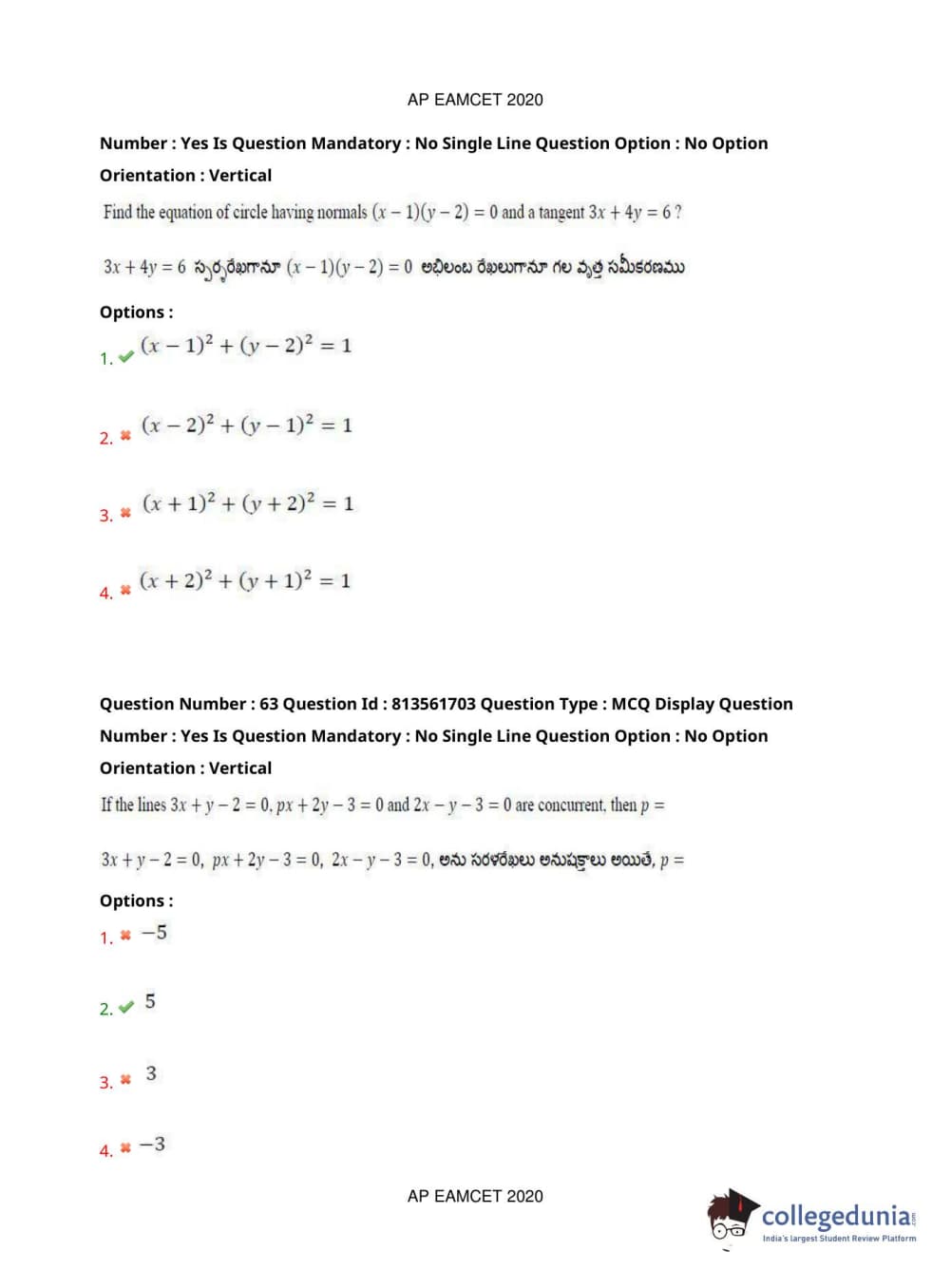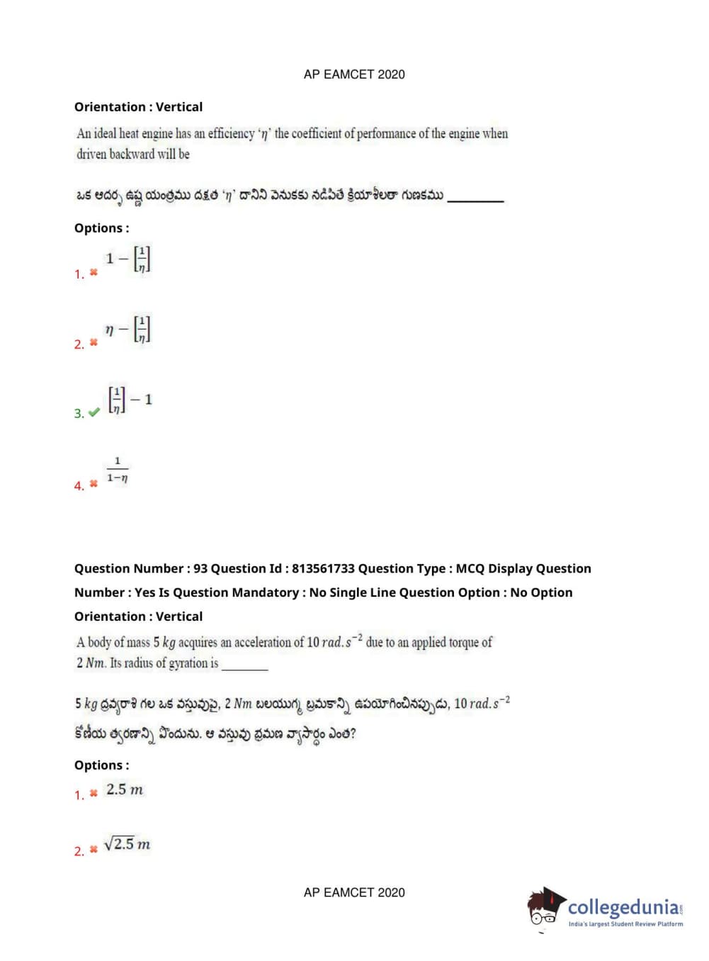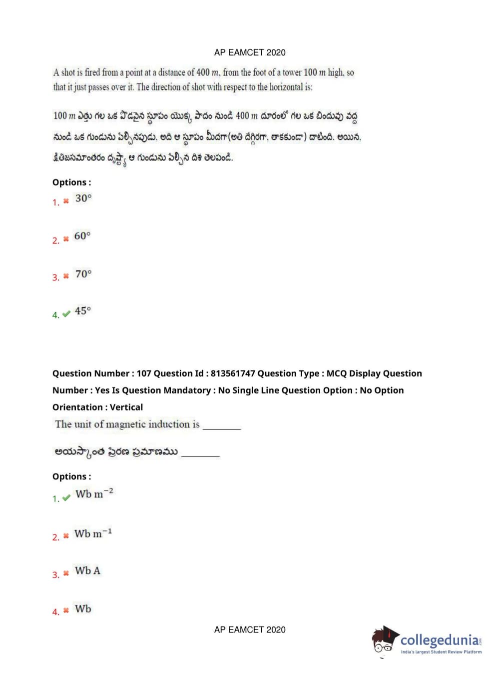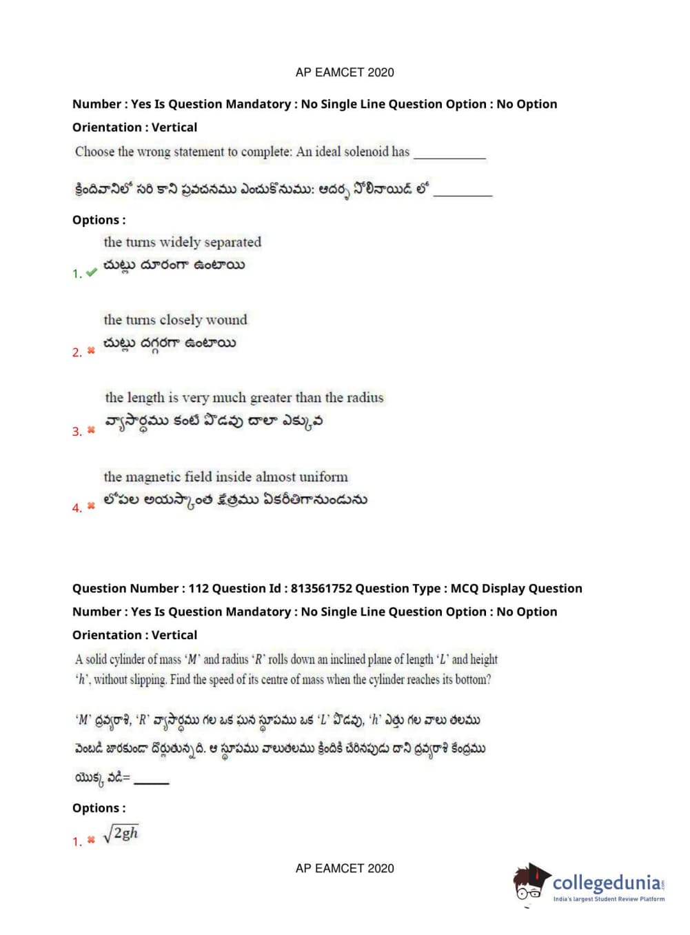 AP EAPCET 2020 Engineering Question Paper with Answer Key PDFs