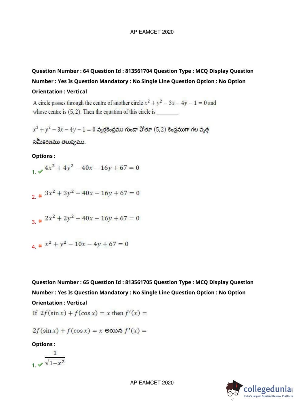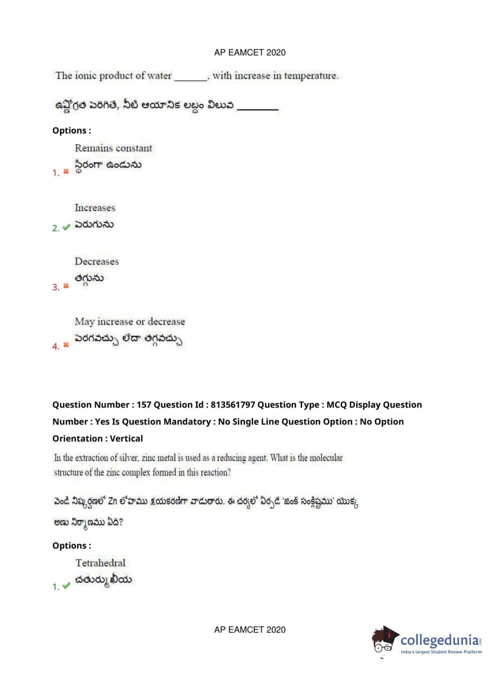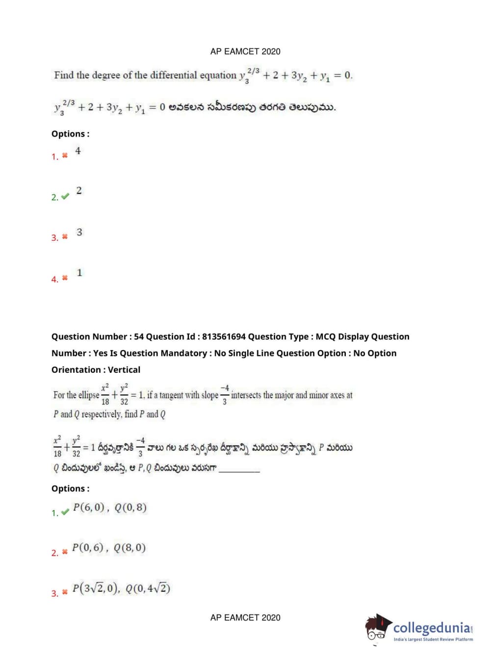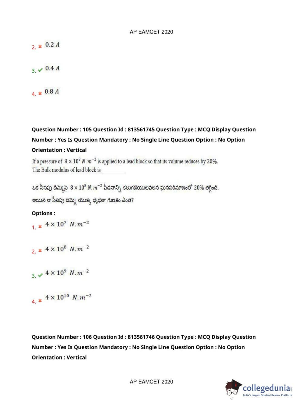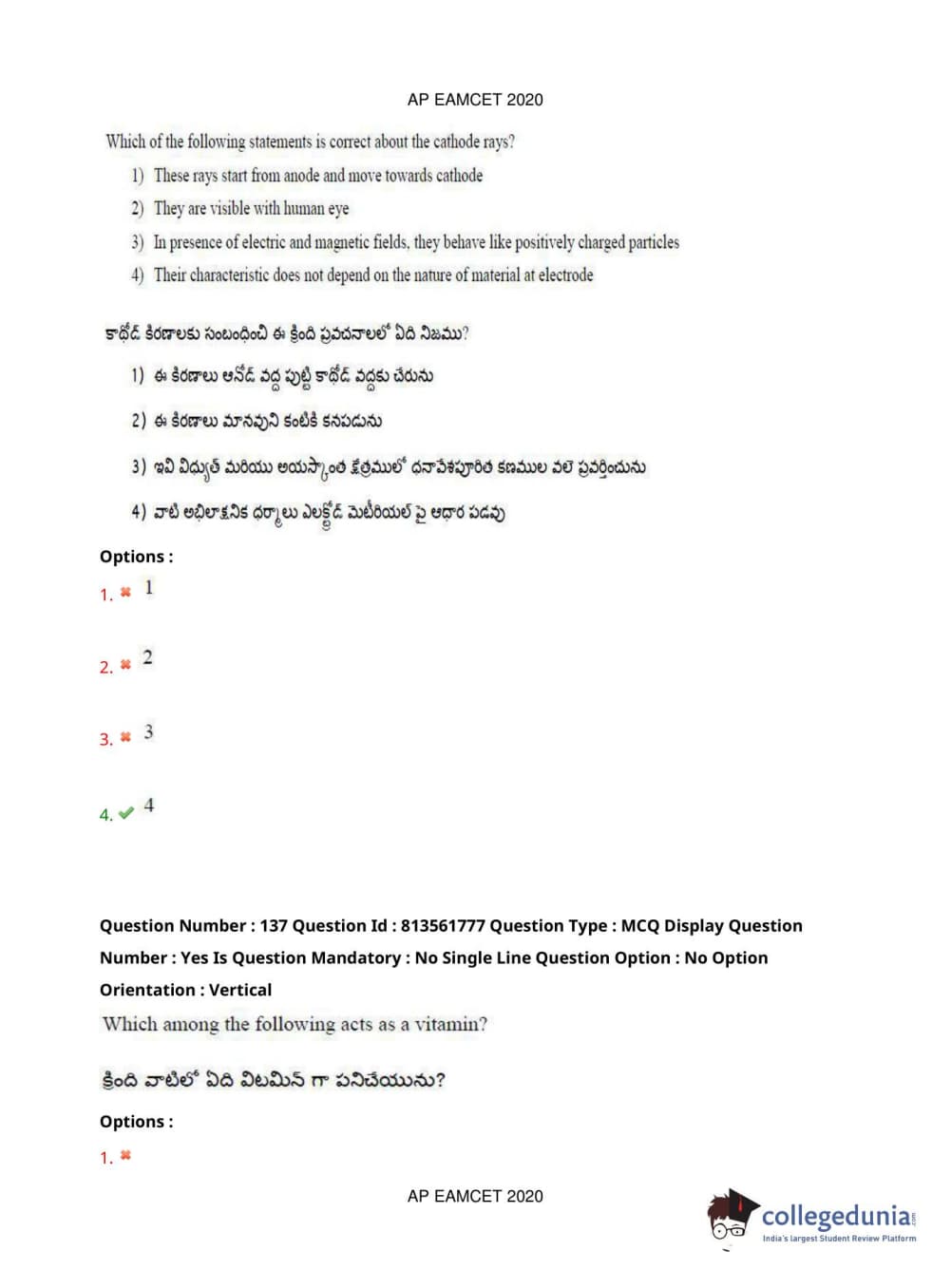 AP EAPCET 2020 Engineering Question Paper with Answer Key PDFs