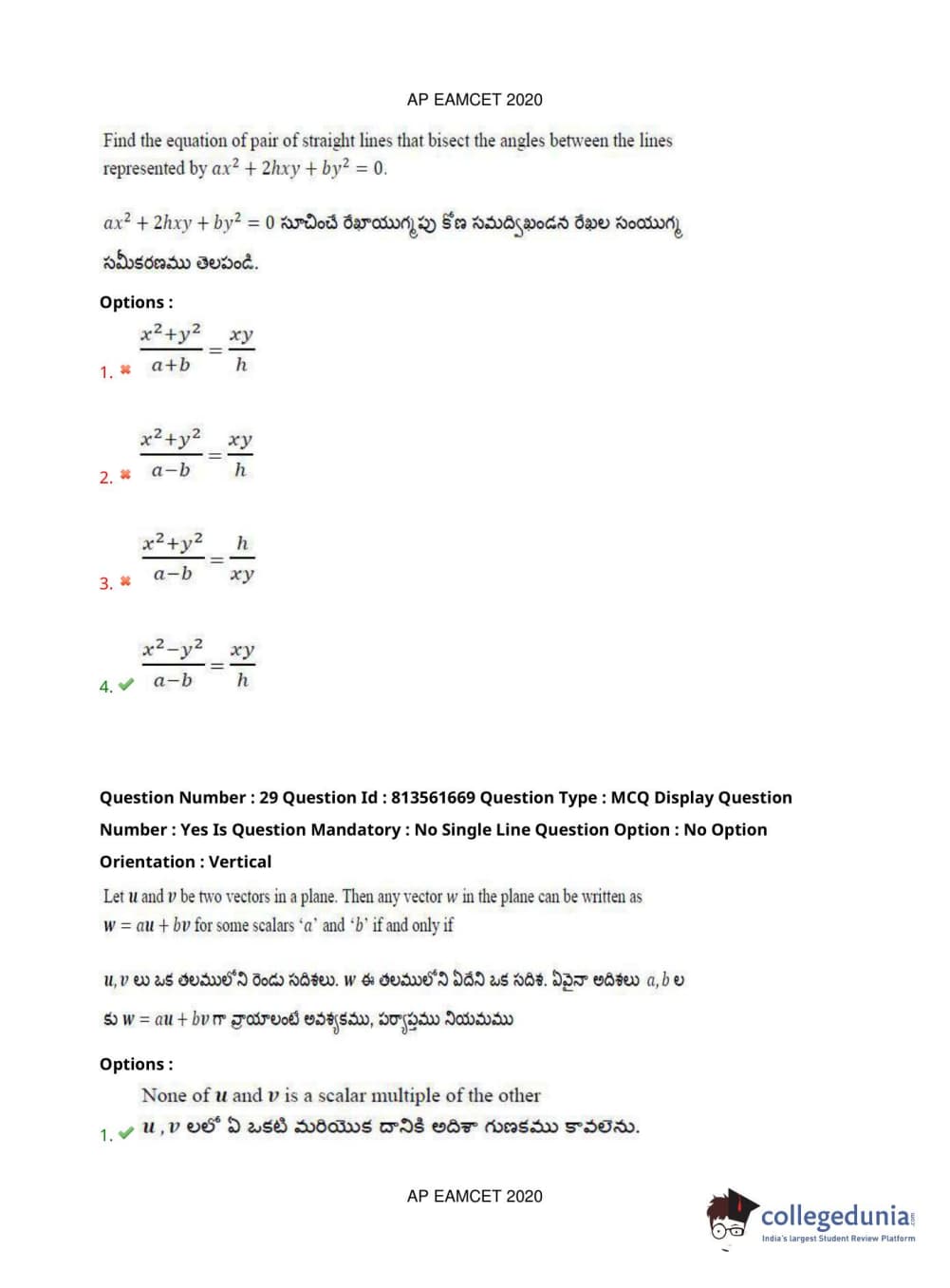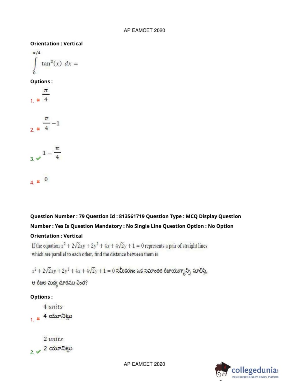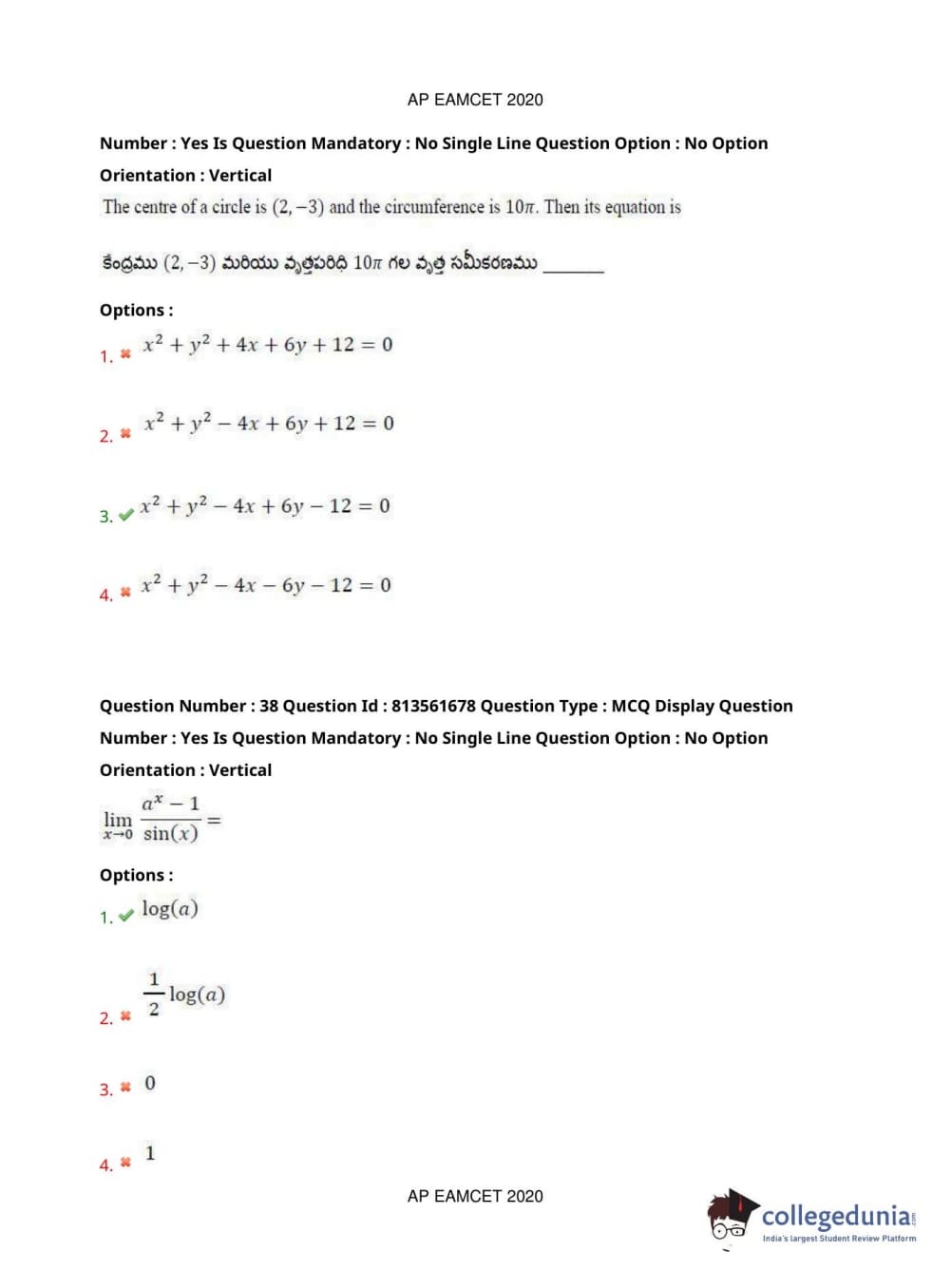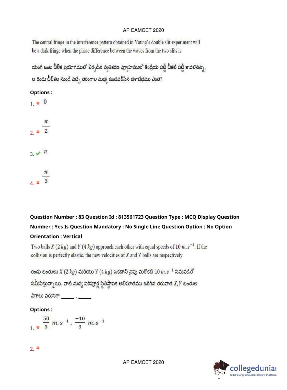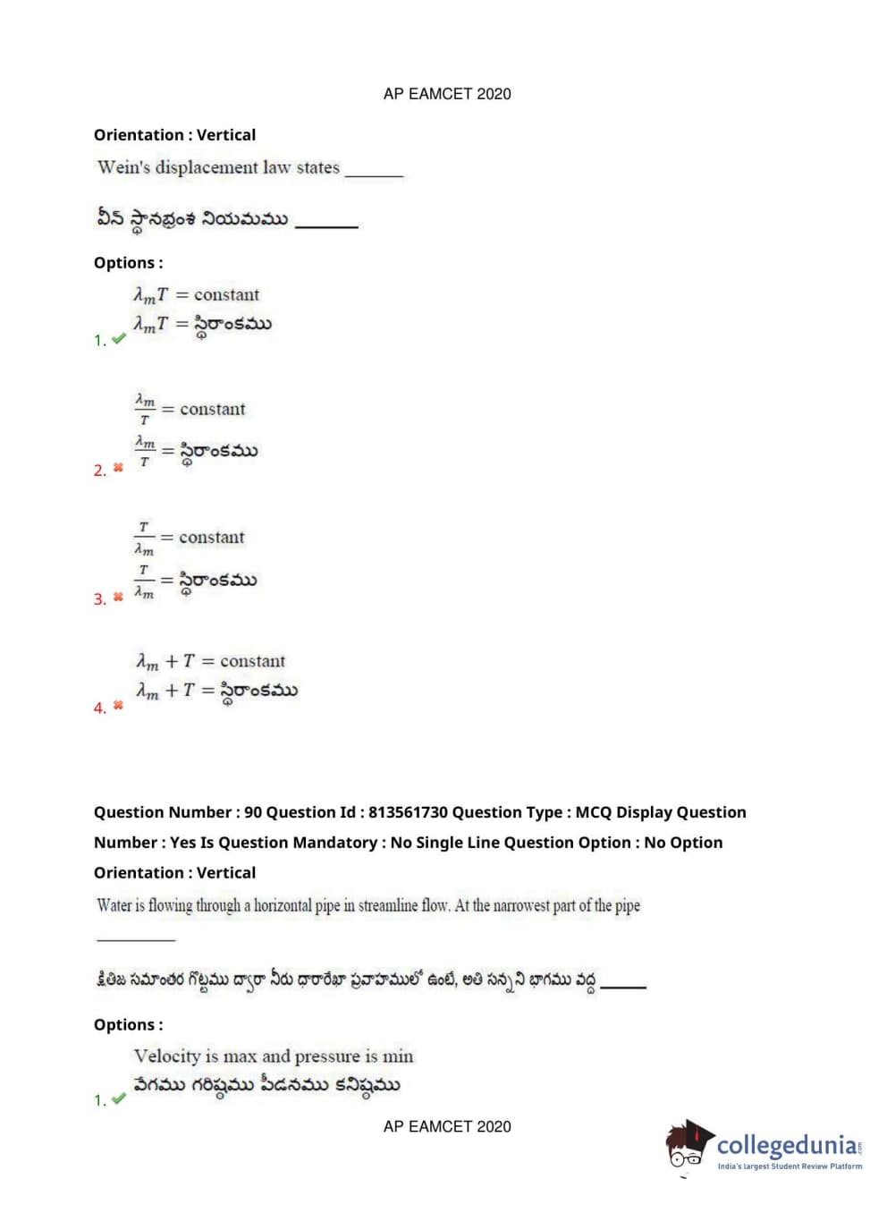 AP EAPCET 2020 Engineering Question Paper with Answer Key PDFs