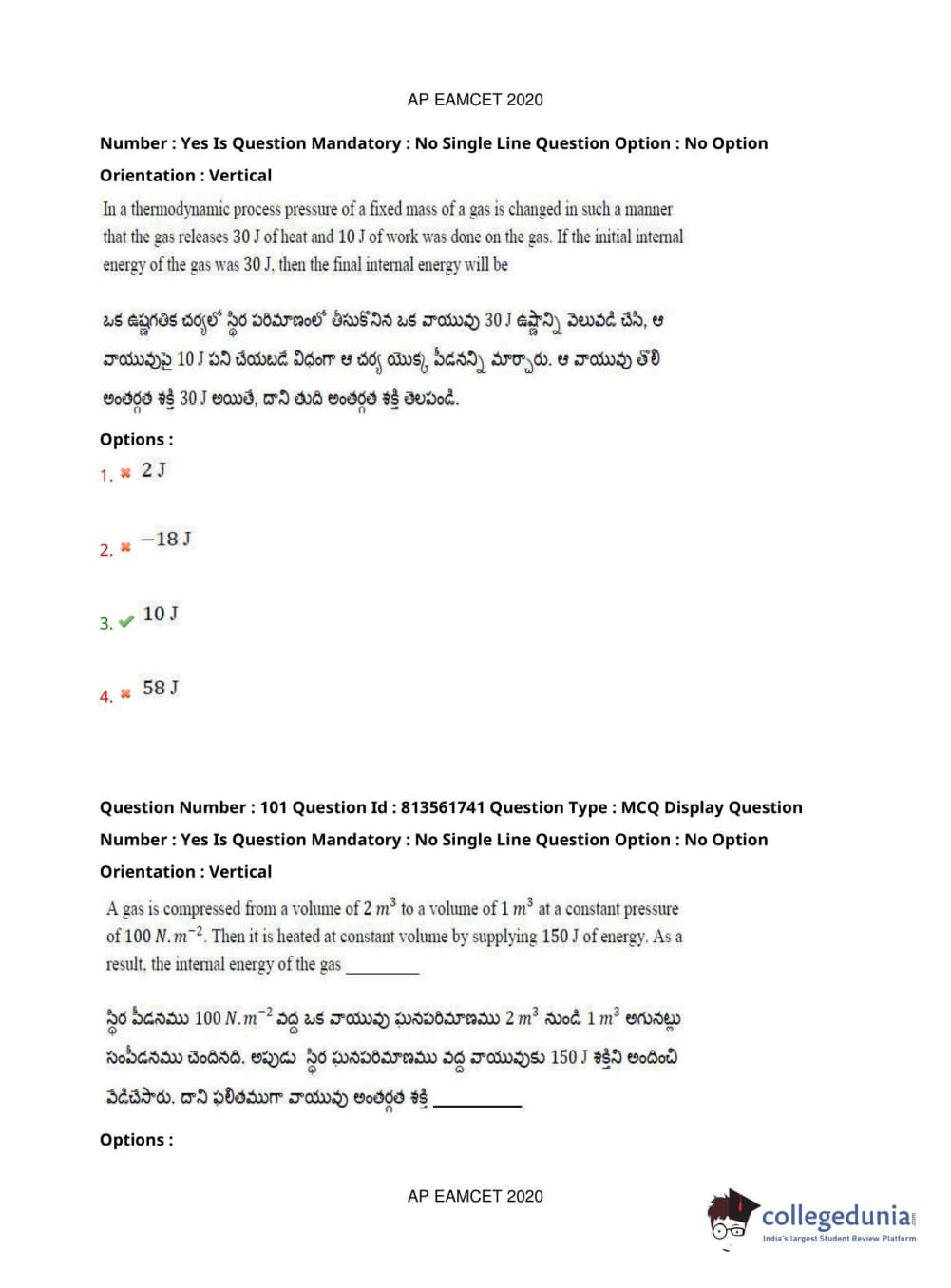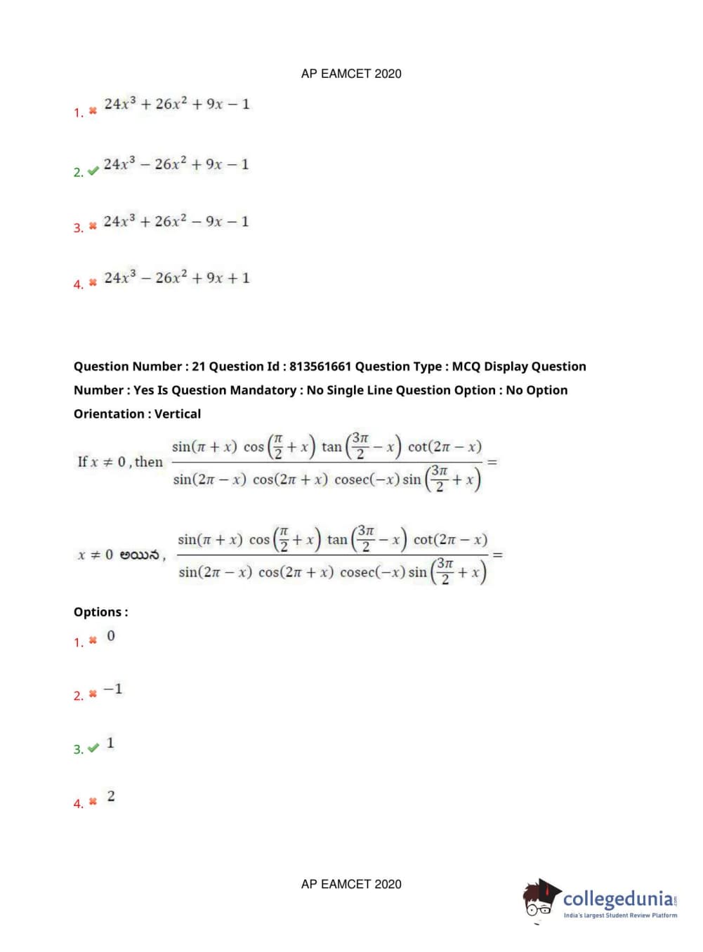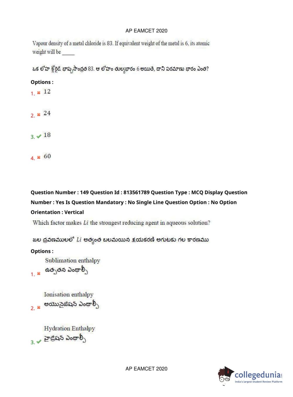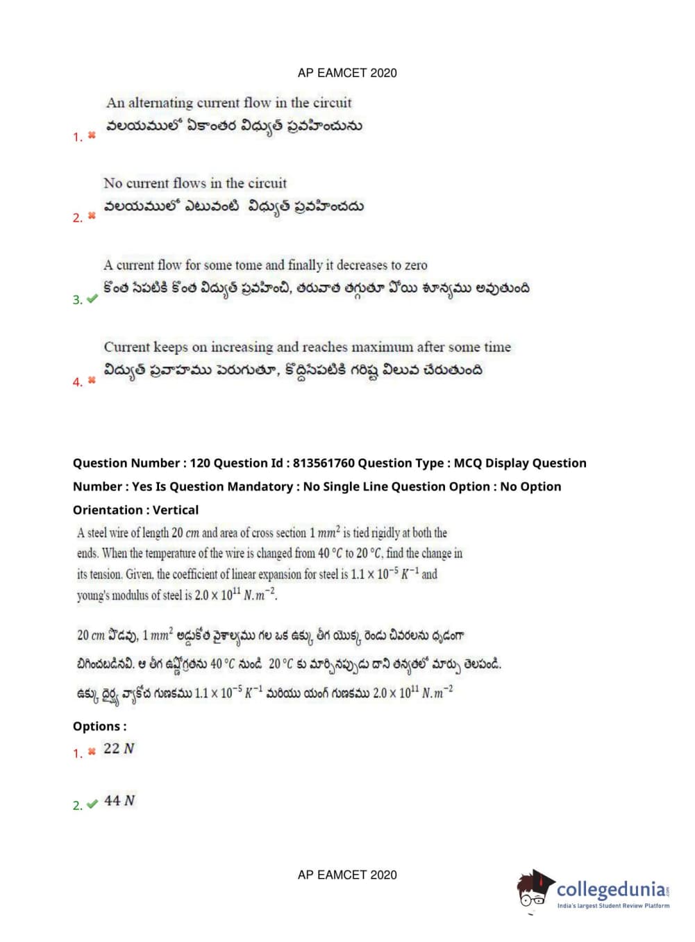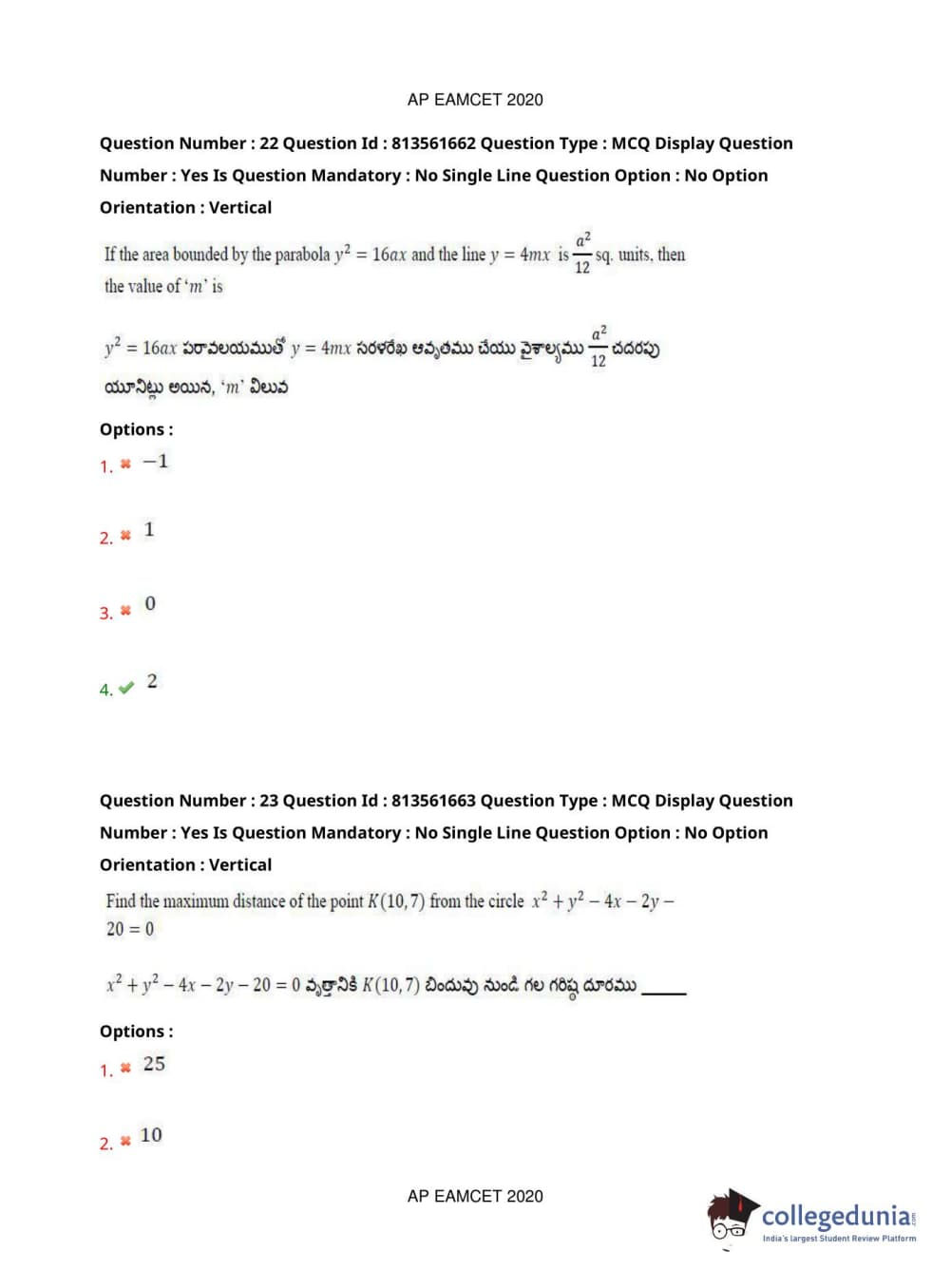 AP EAPCET 2020 Engineering Question Paper with Answer Key PDFs