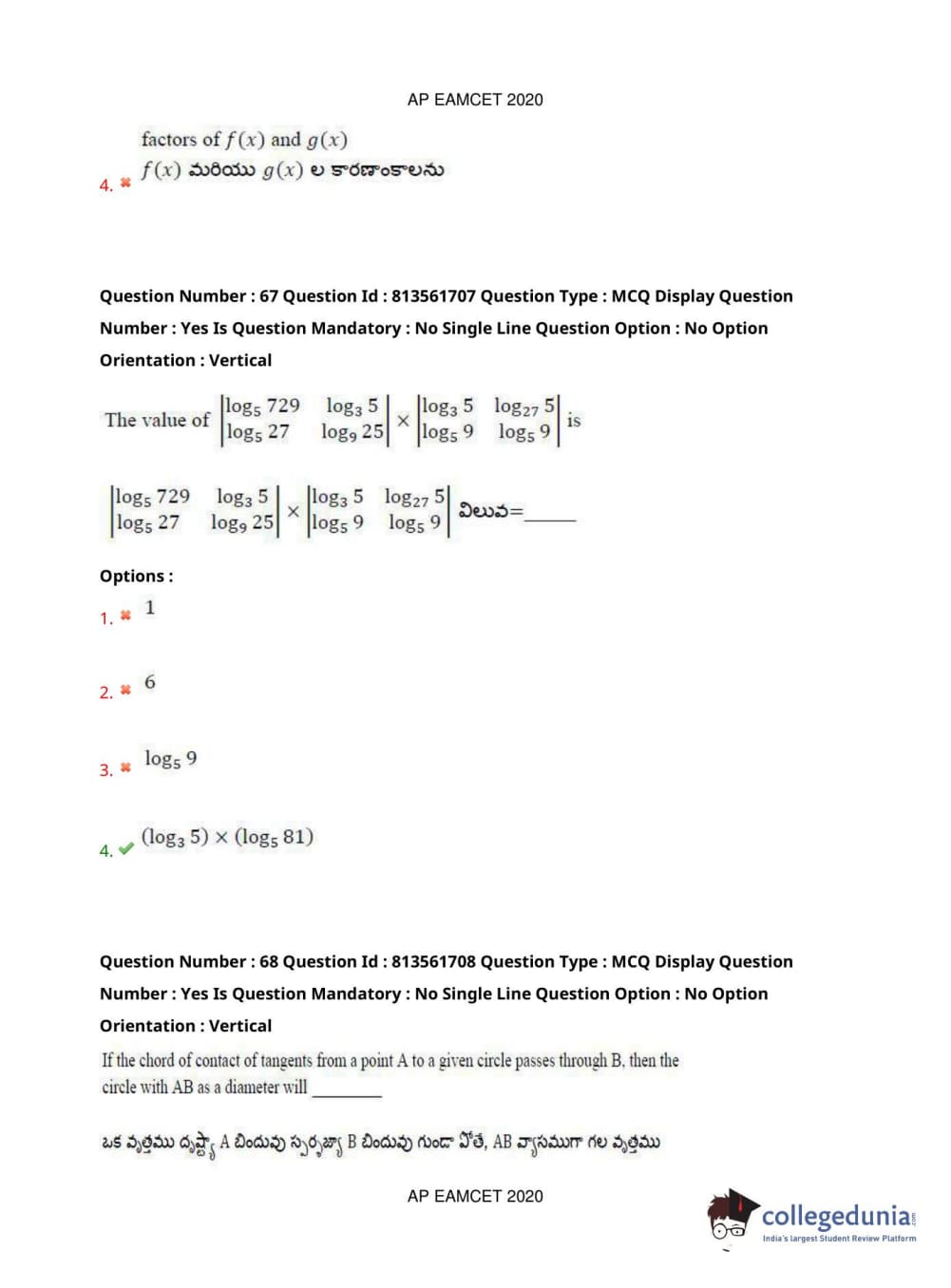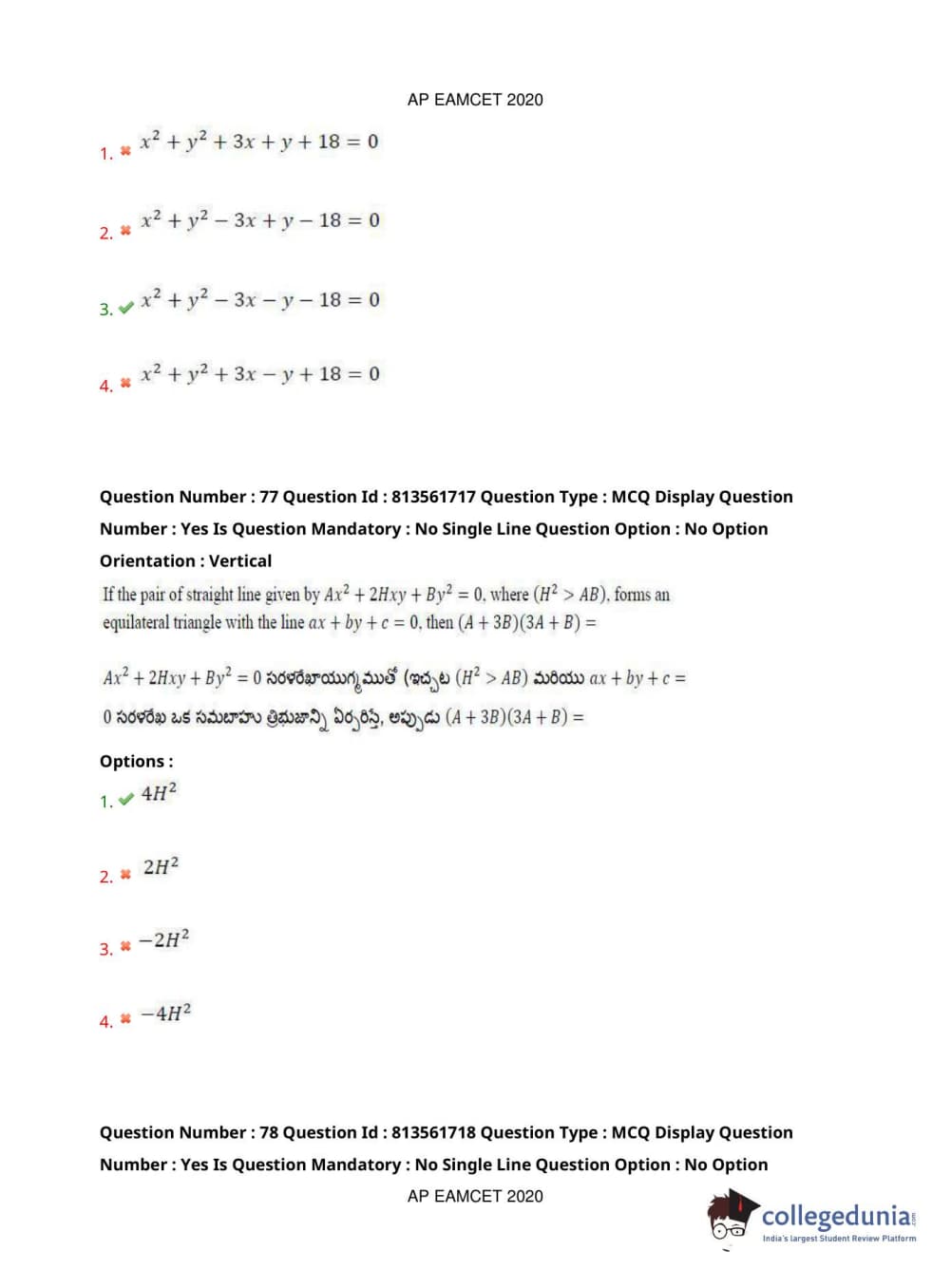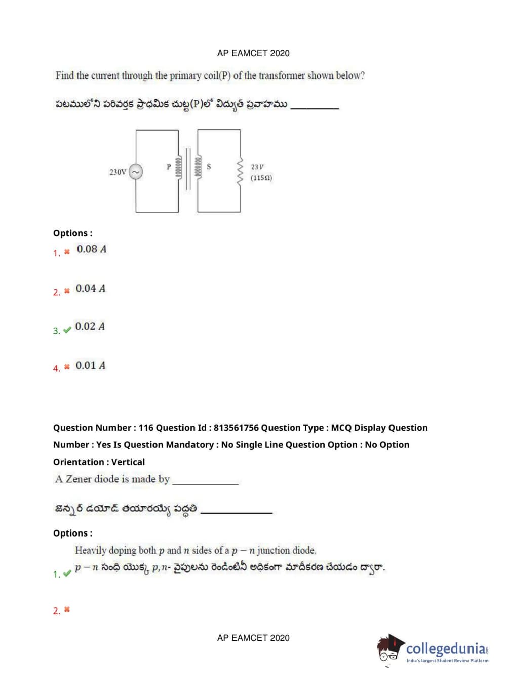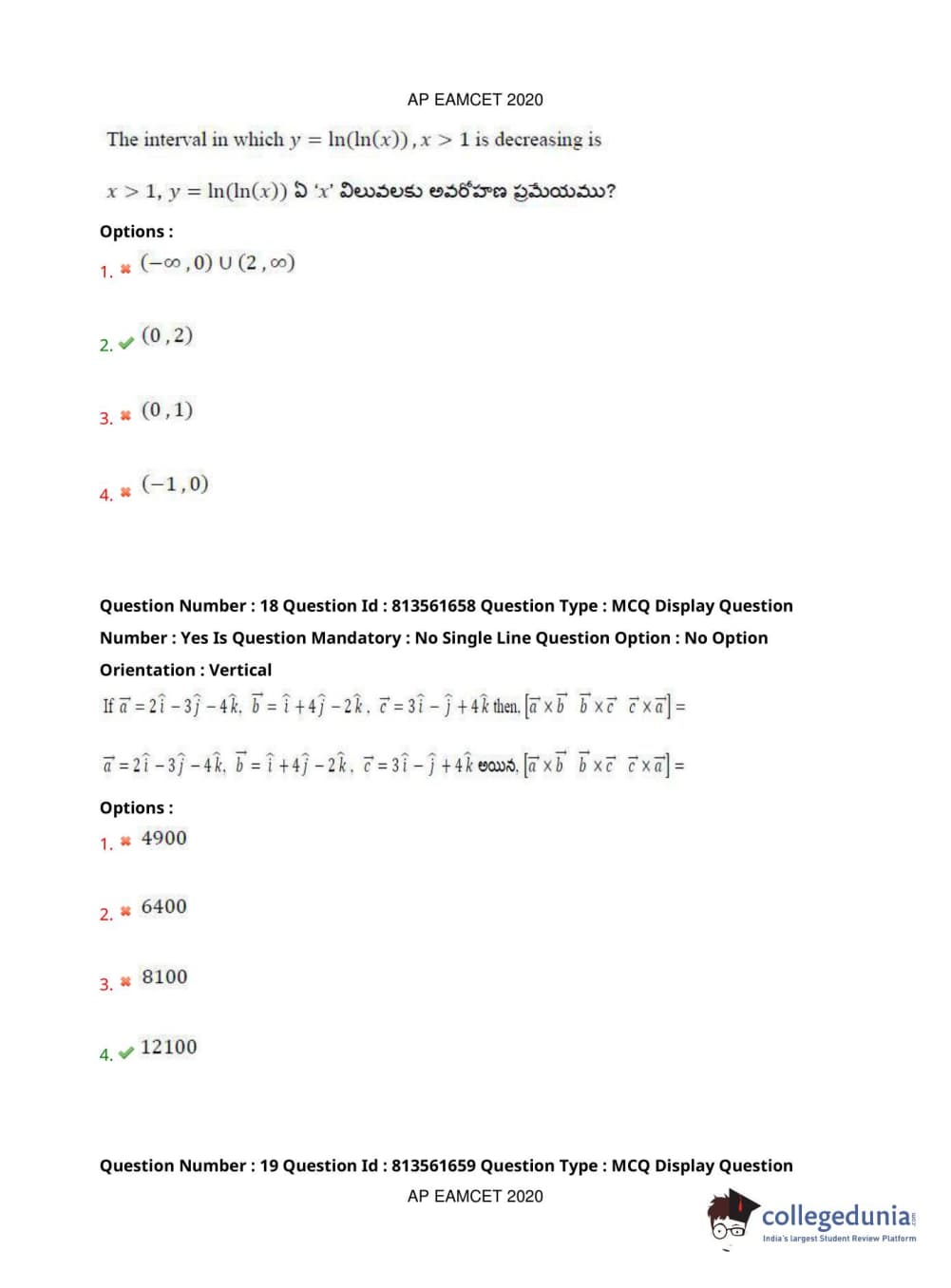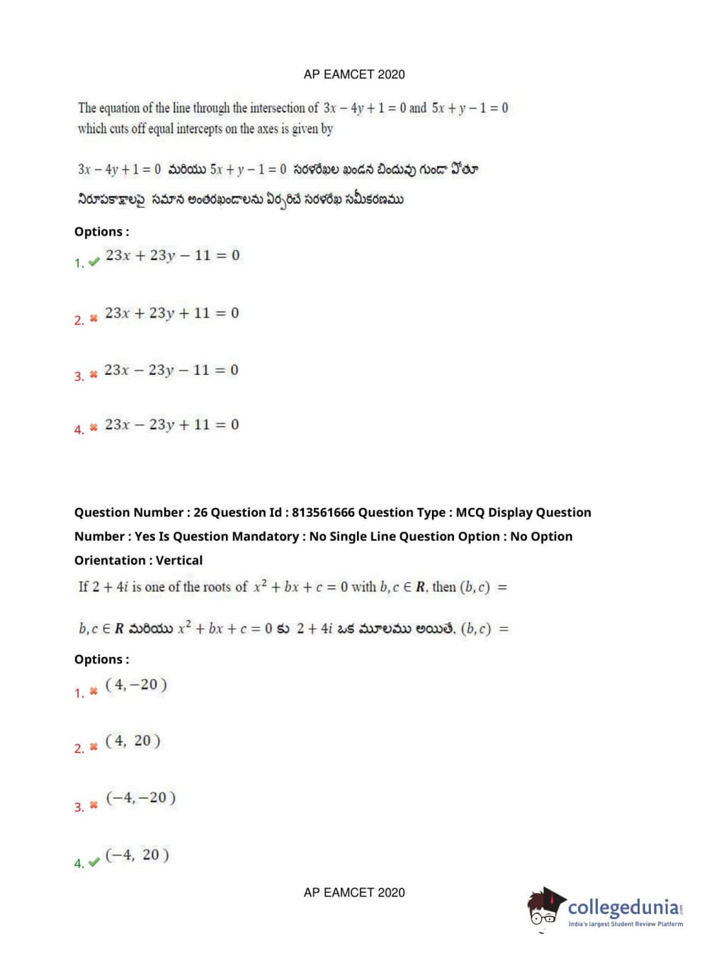 AP EAPCET 2020 Engineering Question Paper with Answer Key PDFs