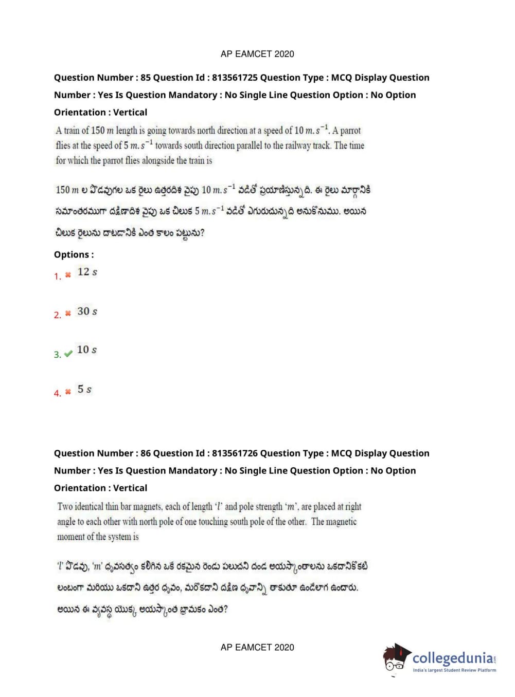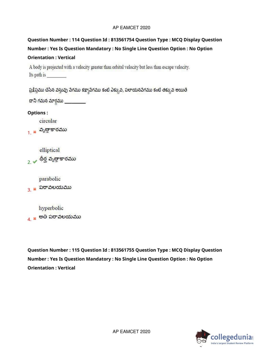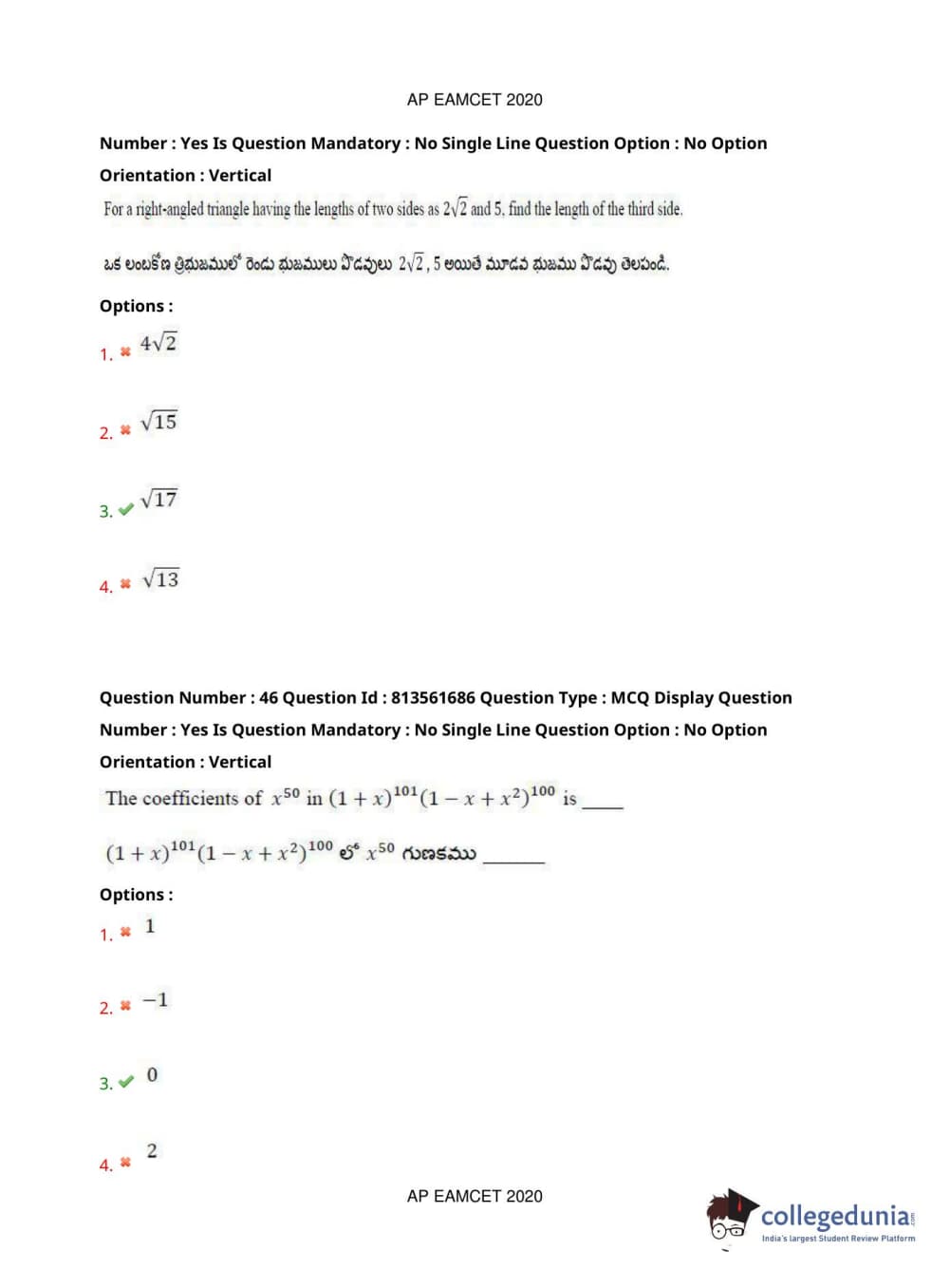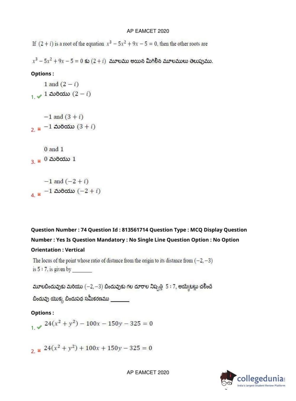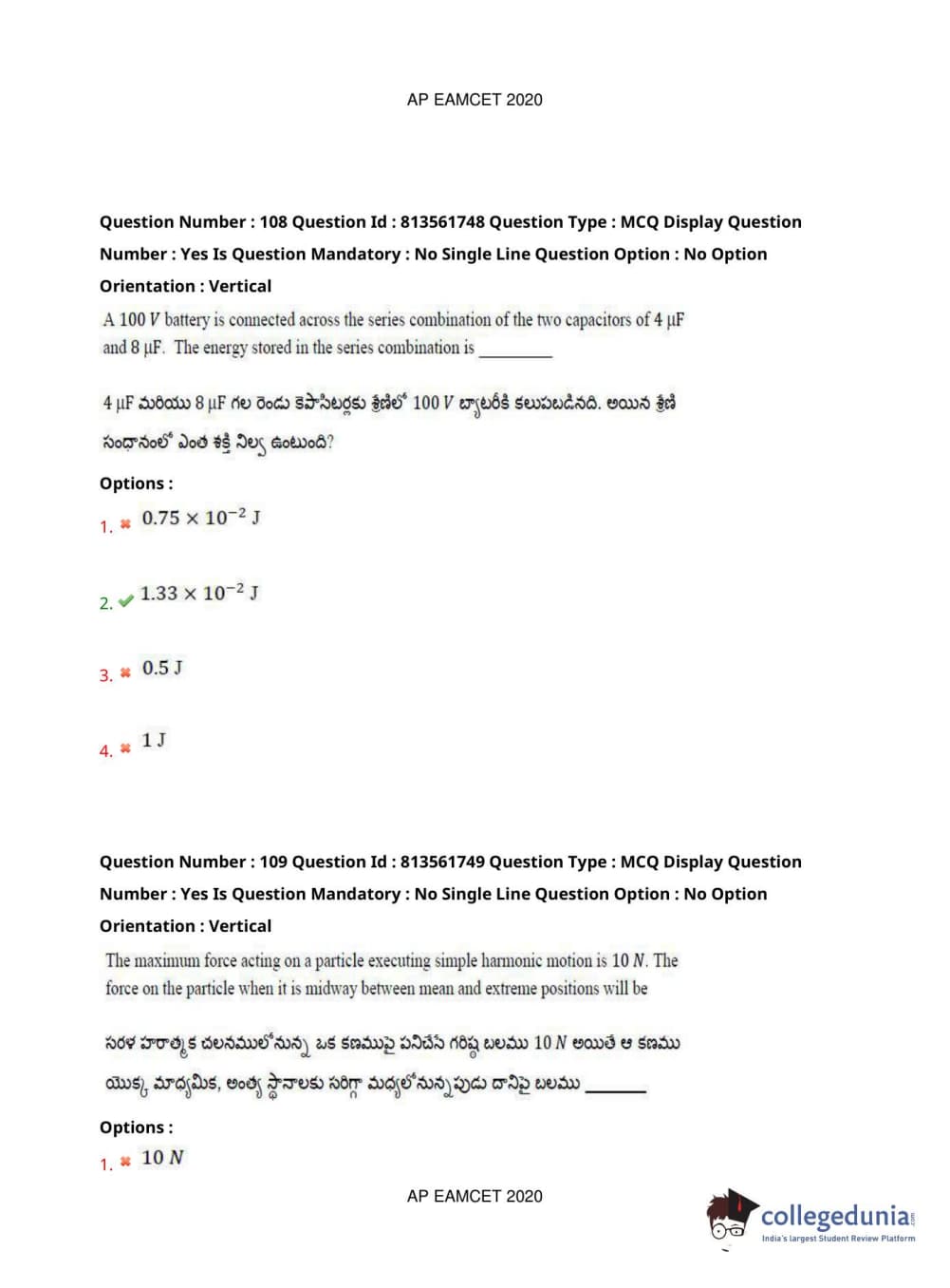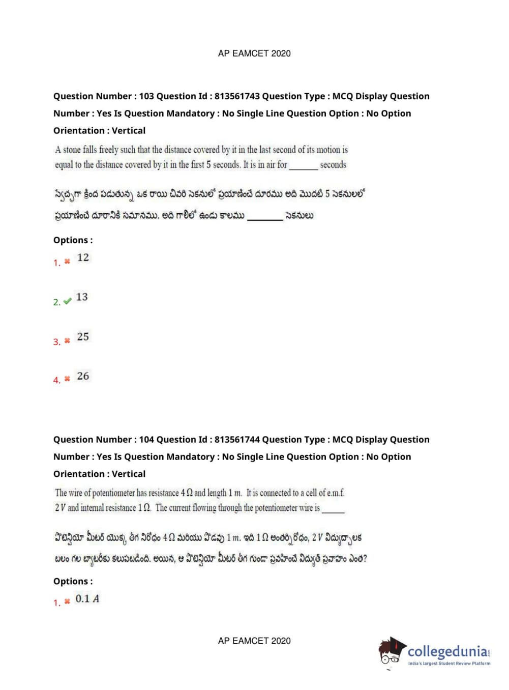AP EAPCET 2020 Engineering Question Paper with Answer Key PDFs
