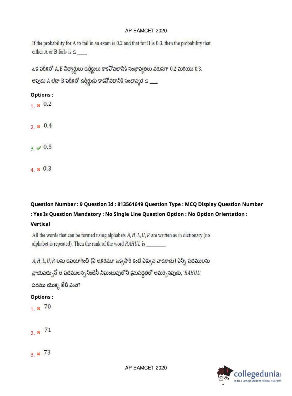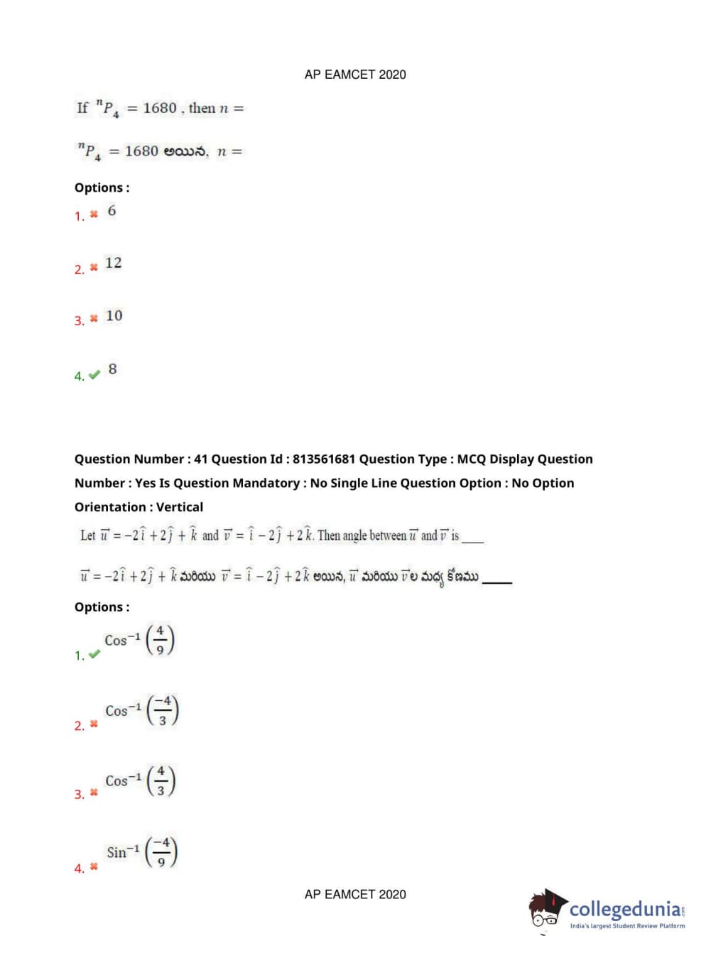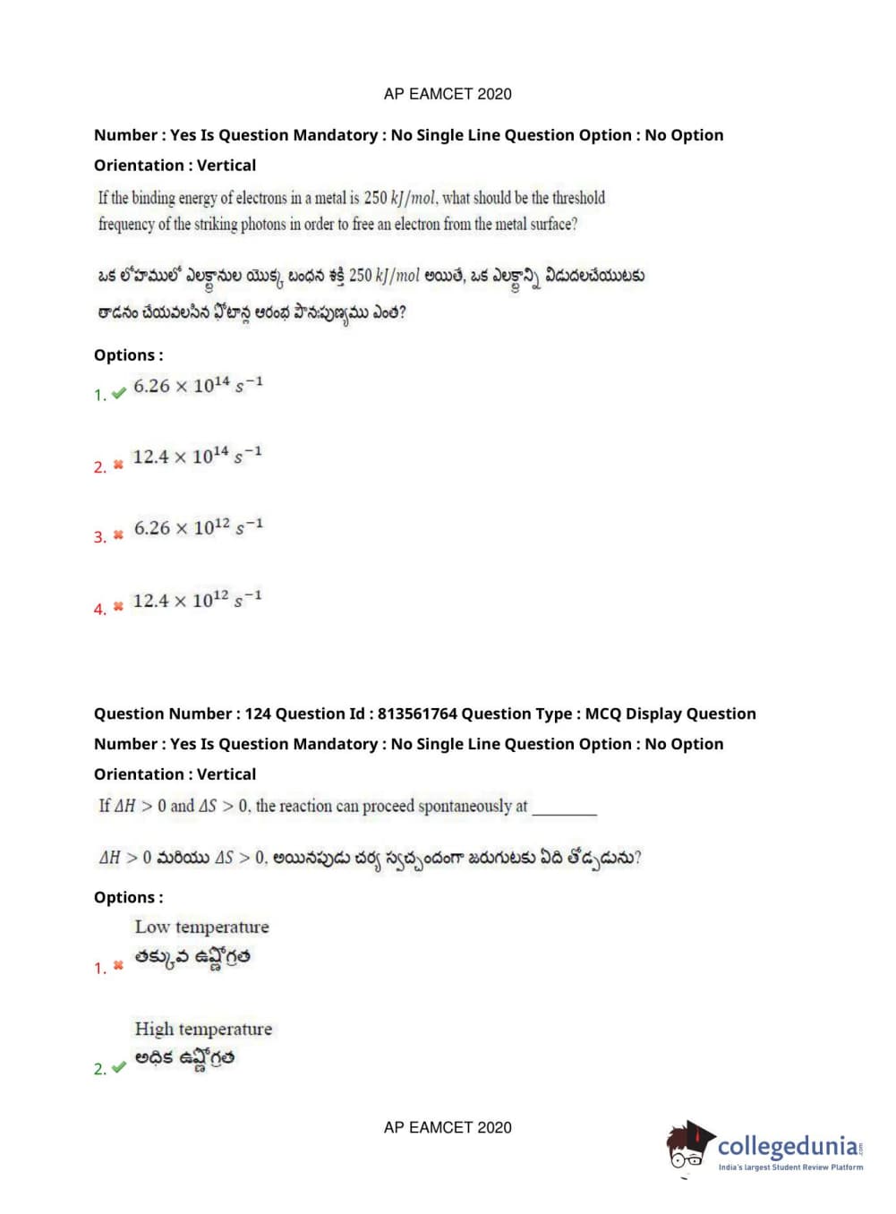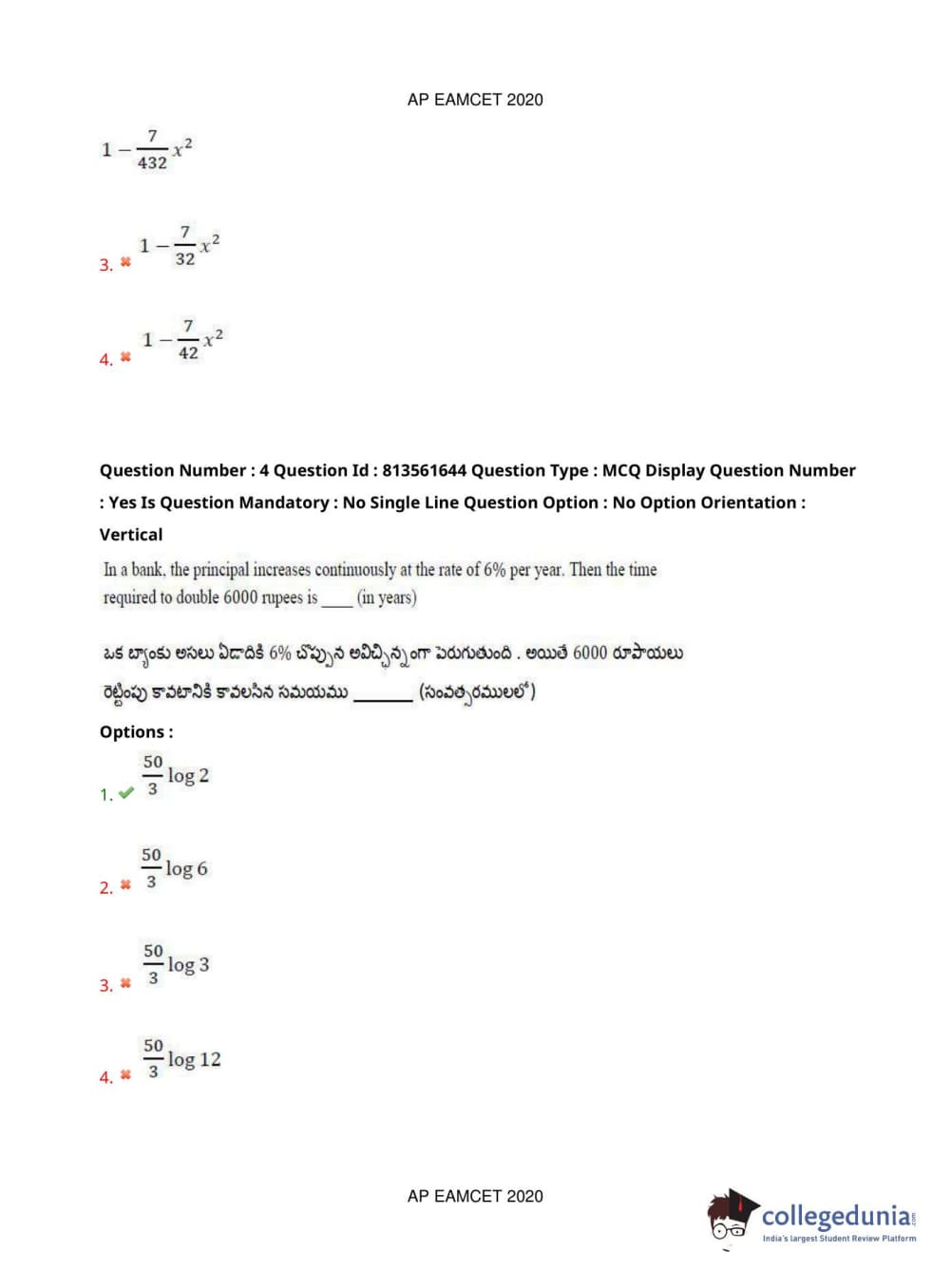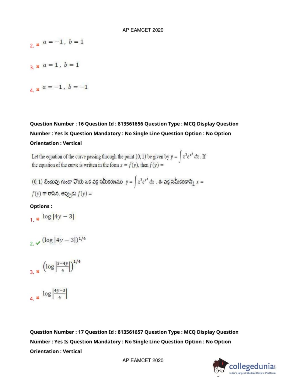 AP EAPCET 2020 Engineering Question Paper with Answer Key PDFs