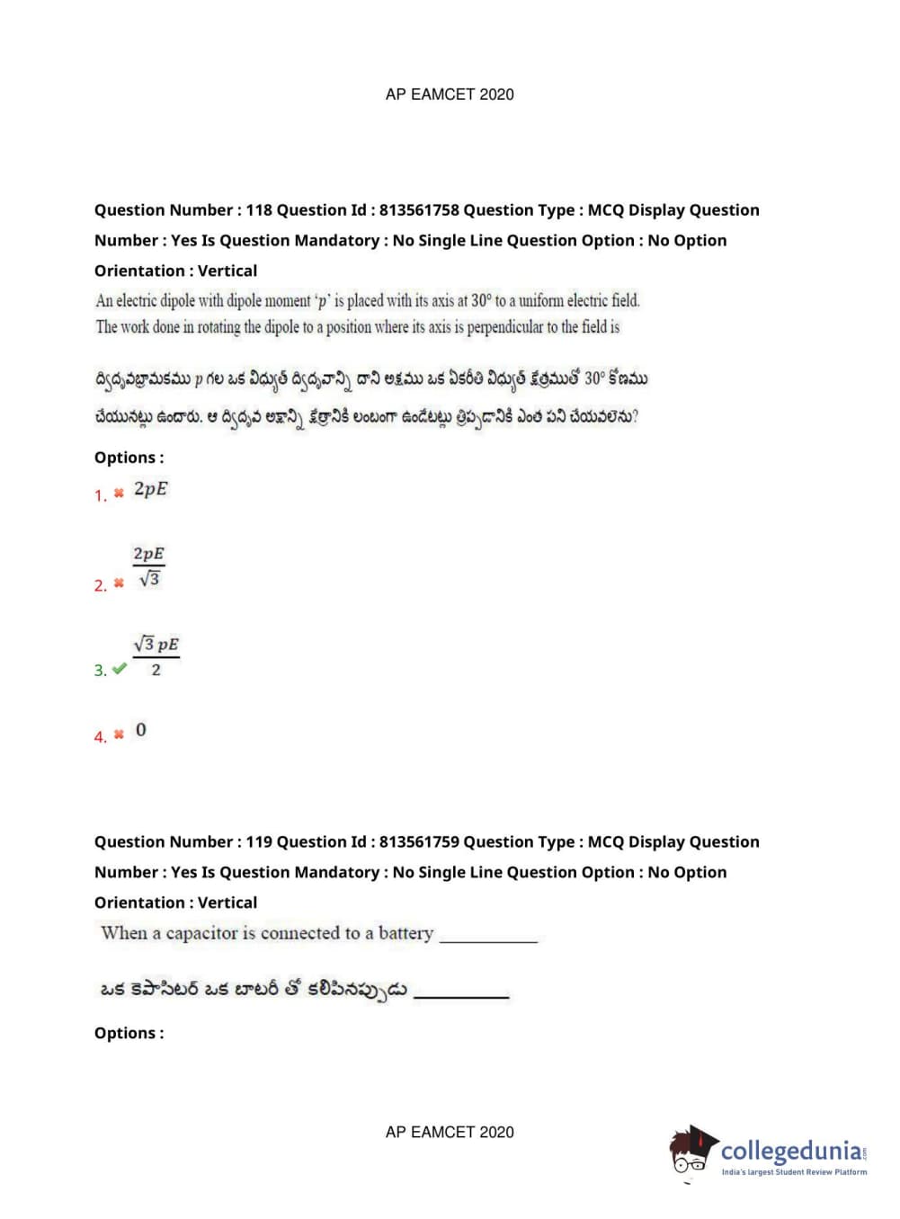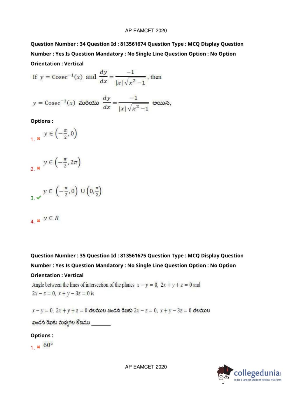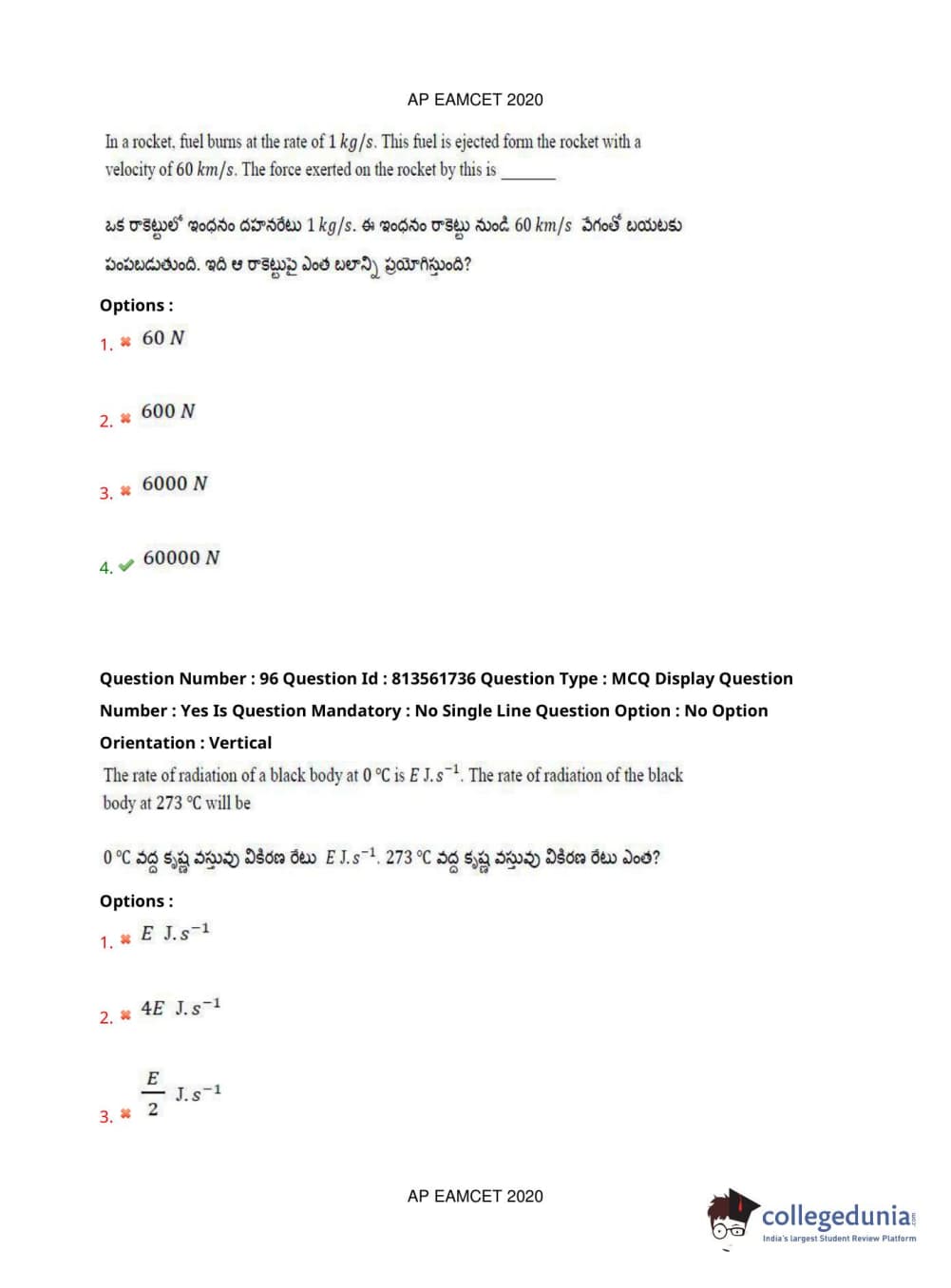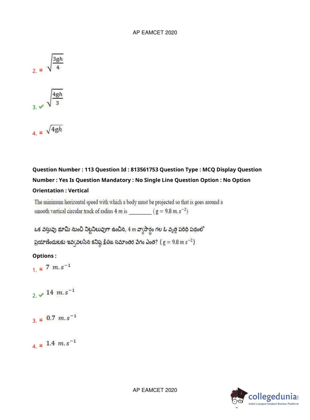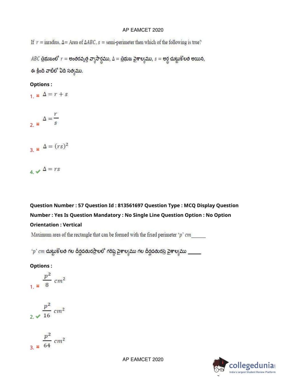 AP EAPCET 2020 Engineering Question Paper with Answer Key PDFs