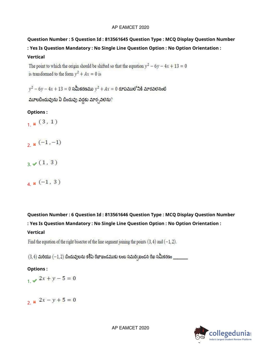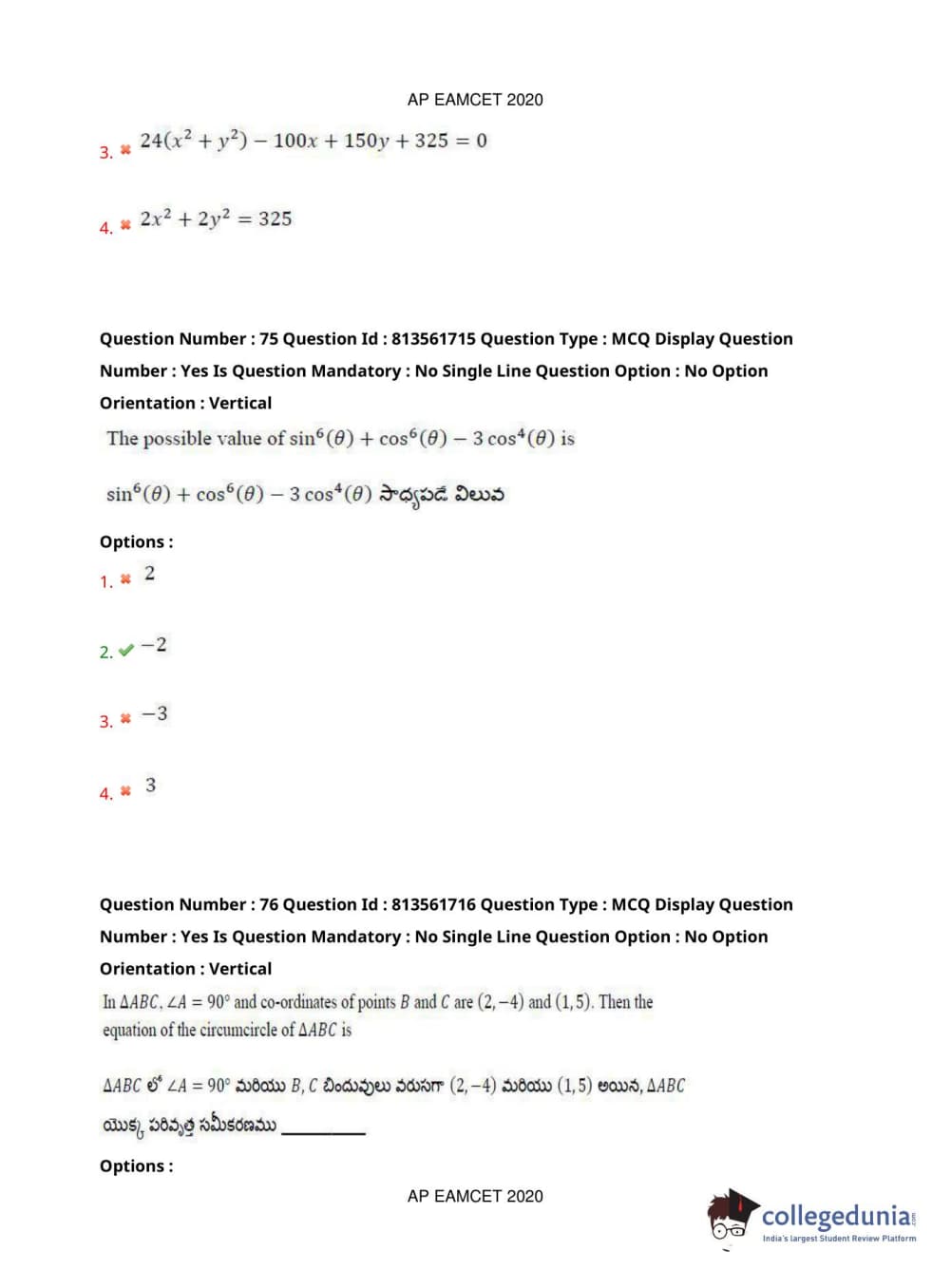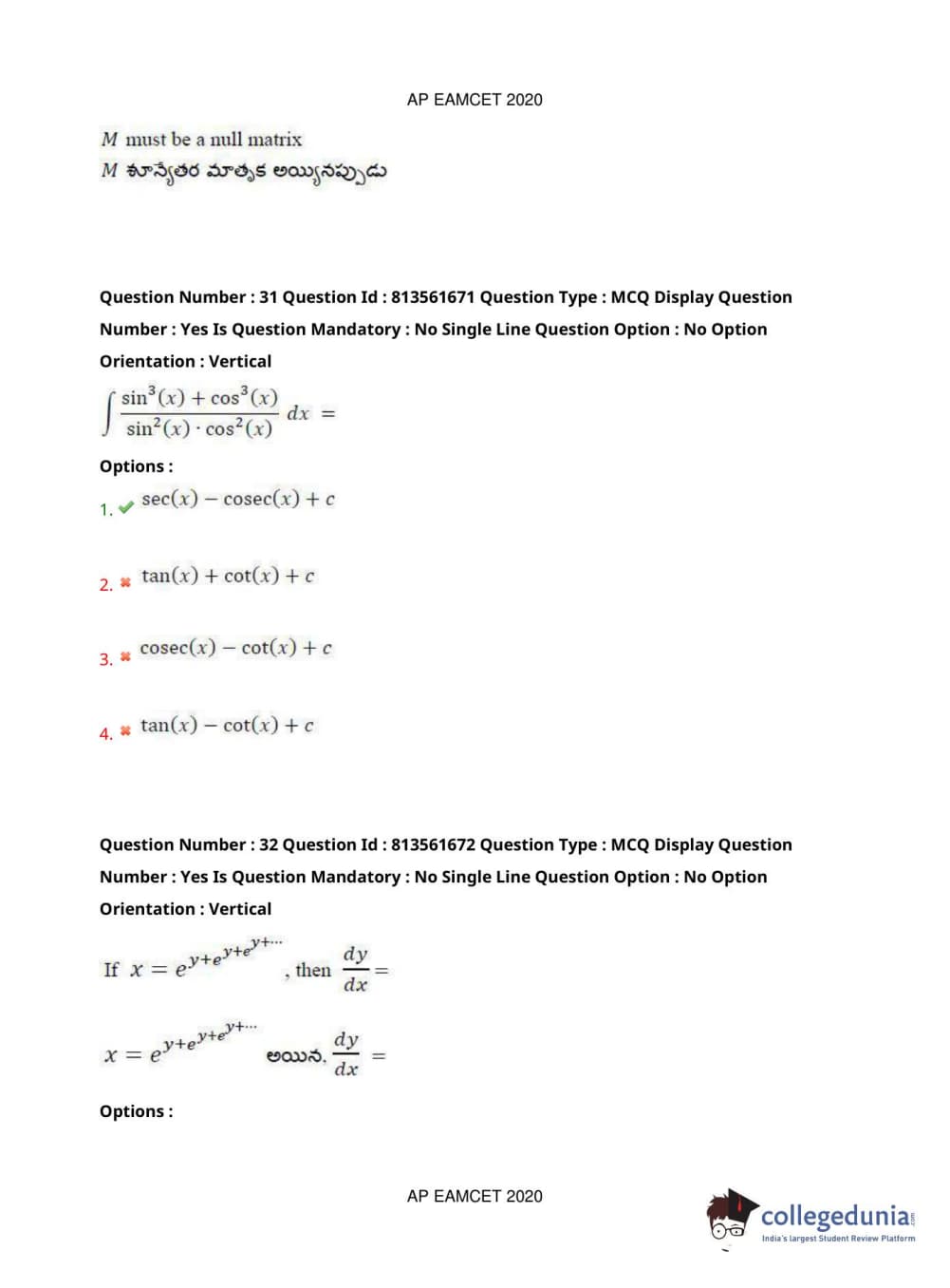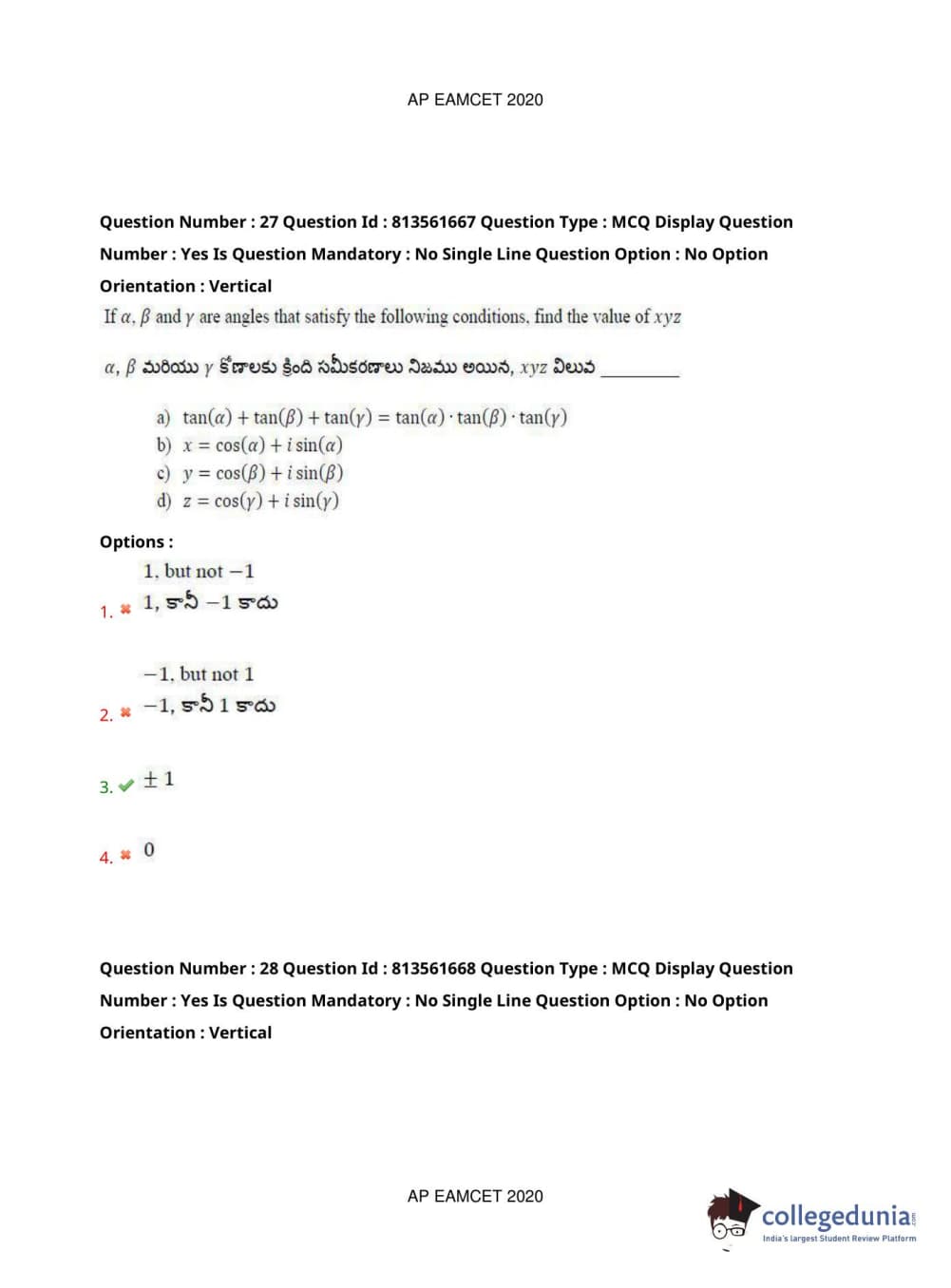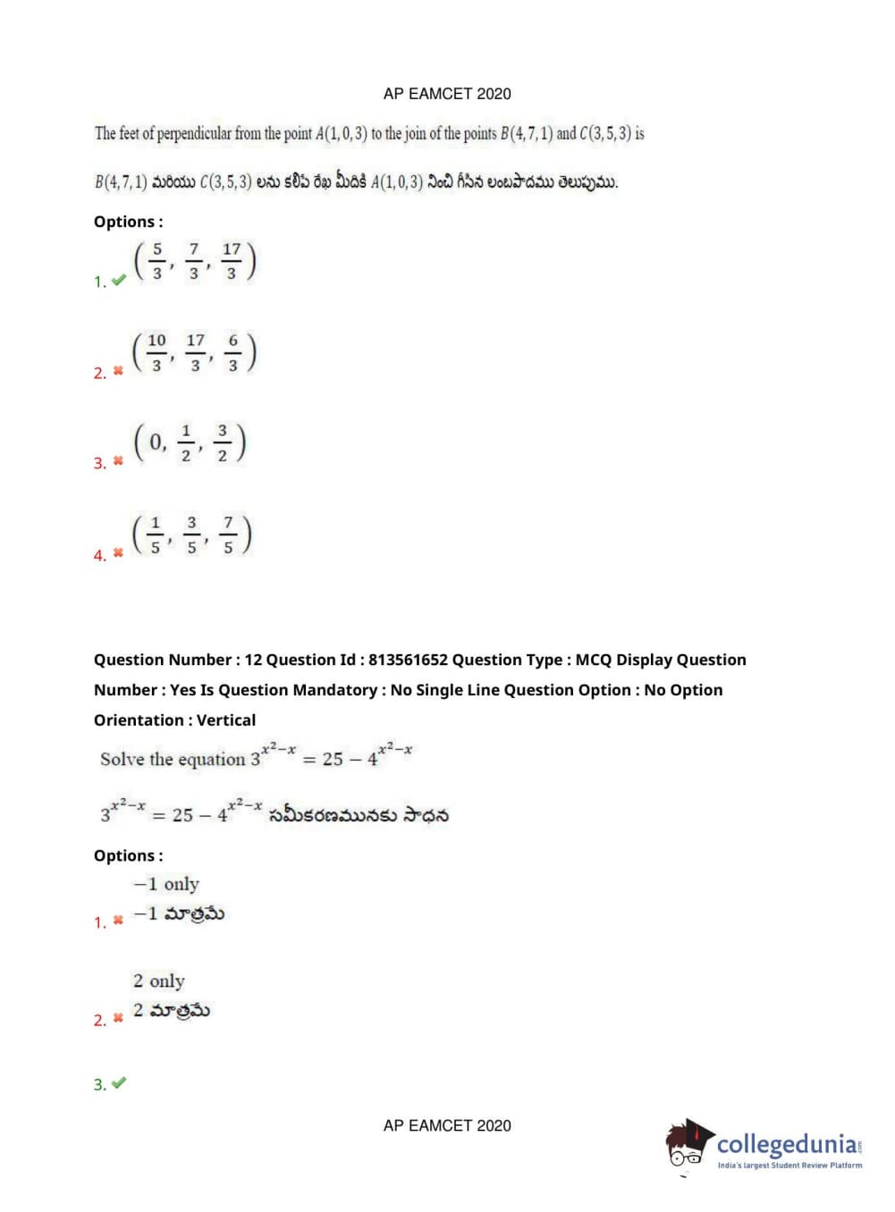 AP EAPCET 2020 Engineering Question Paper with Answer Key PDFs