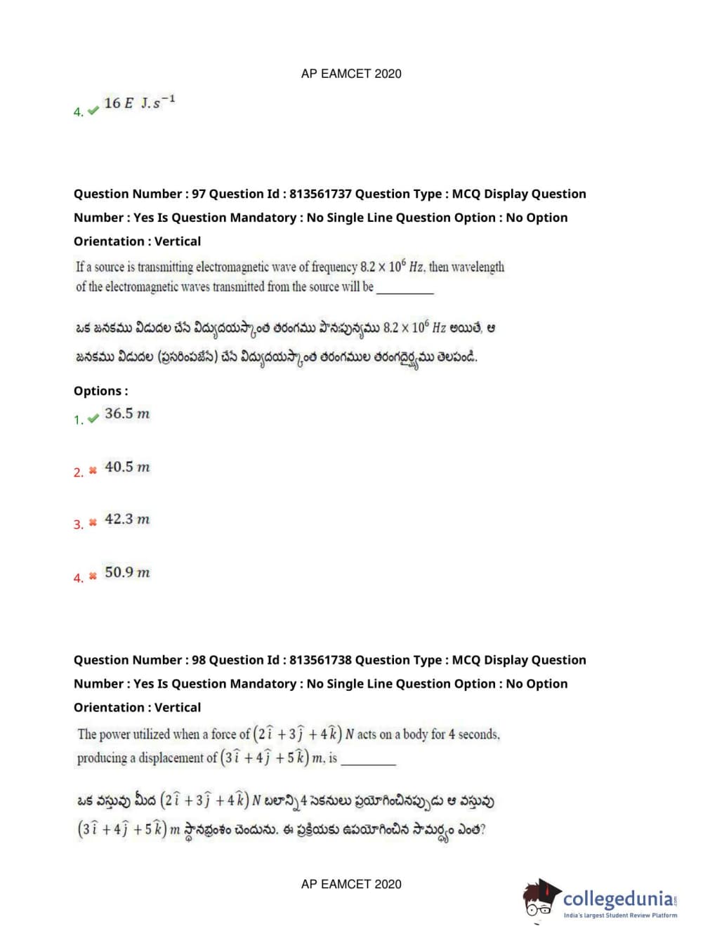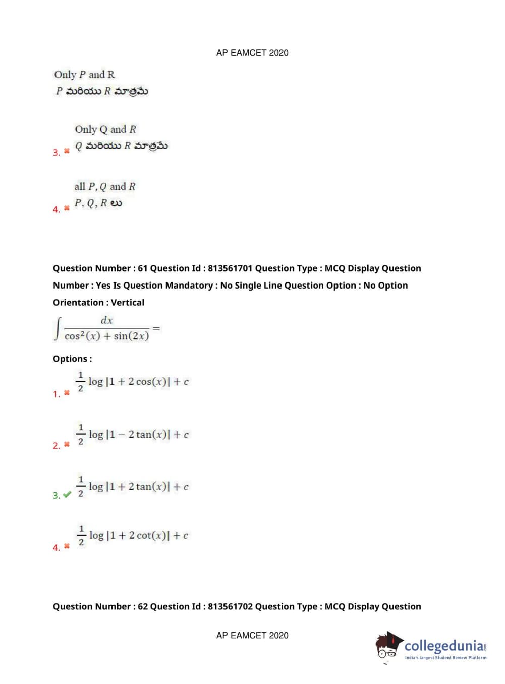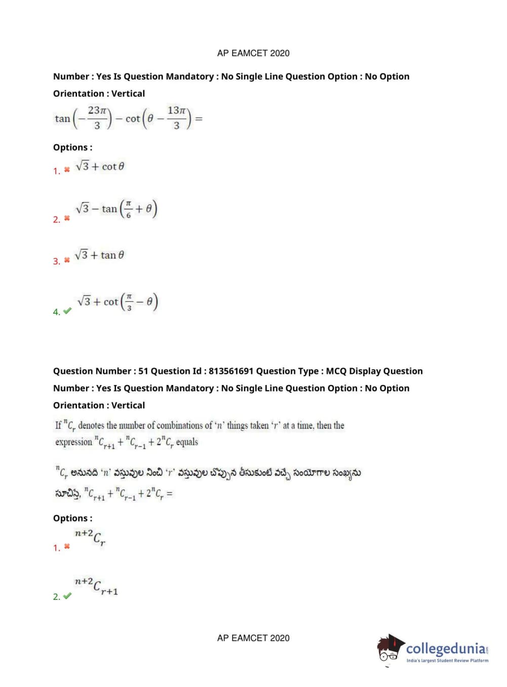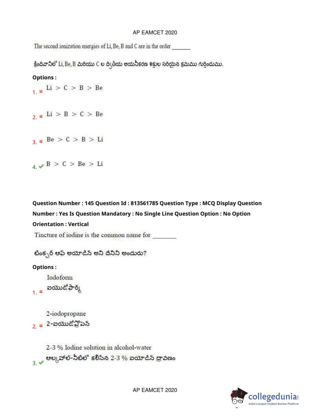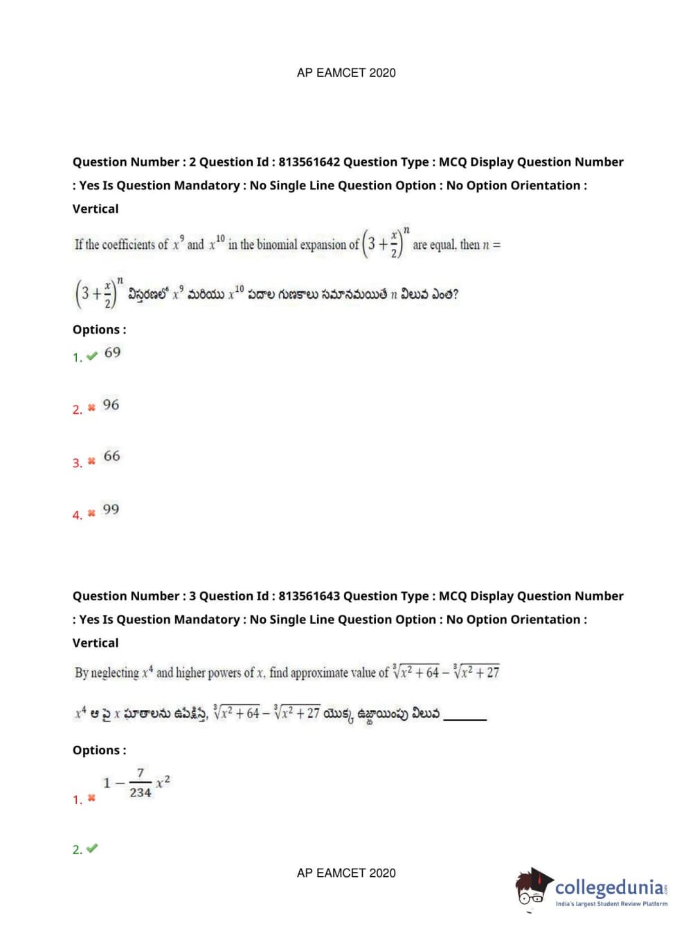 AP EAPCET 2020 Engineering Question Paper with Answer Key PDFs