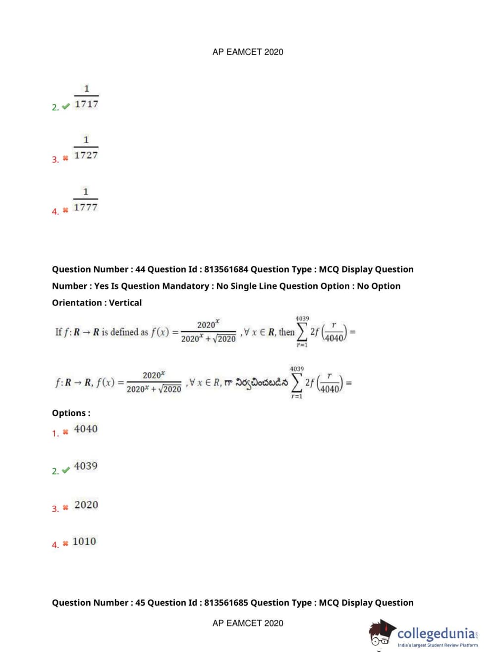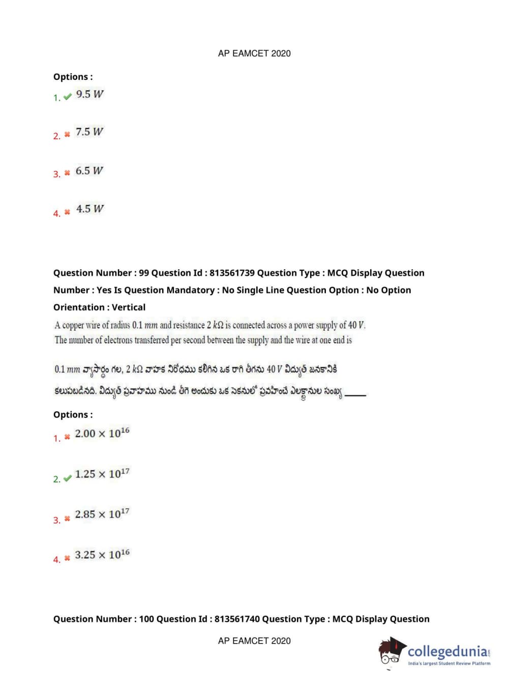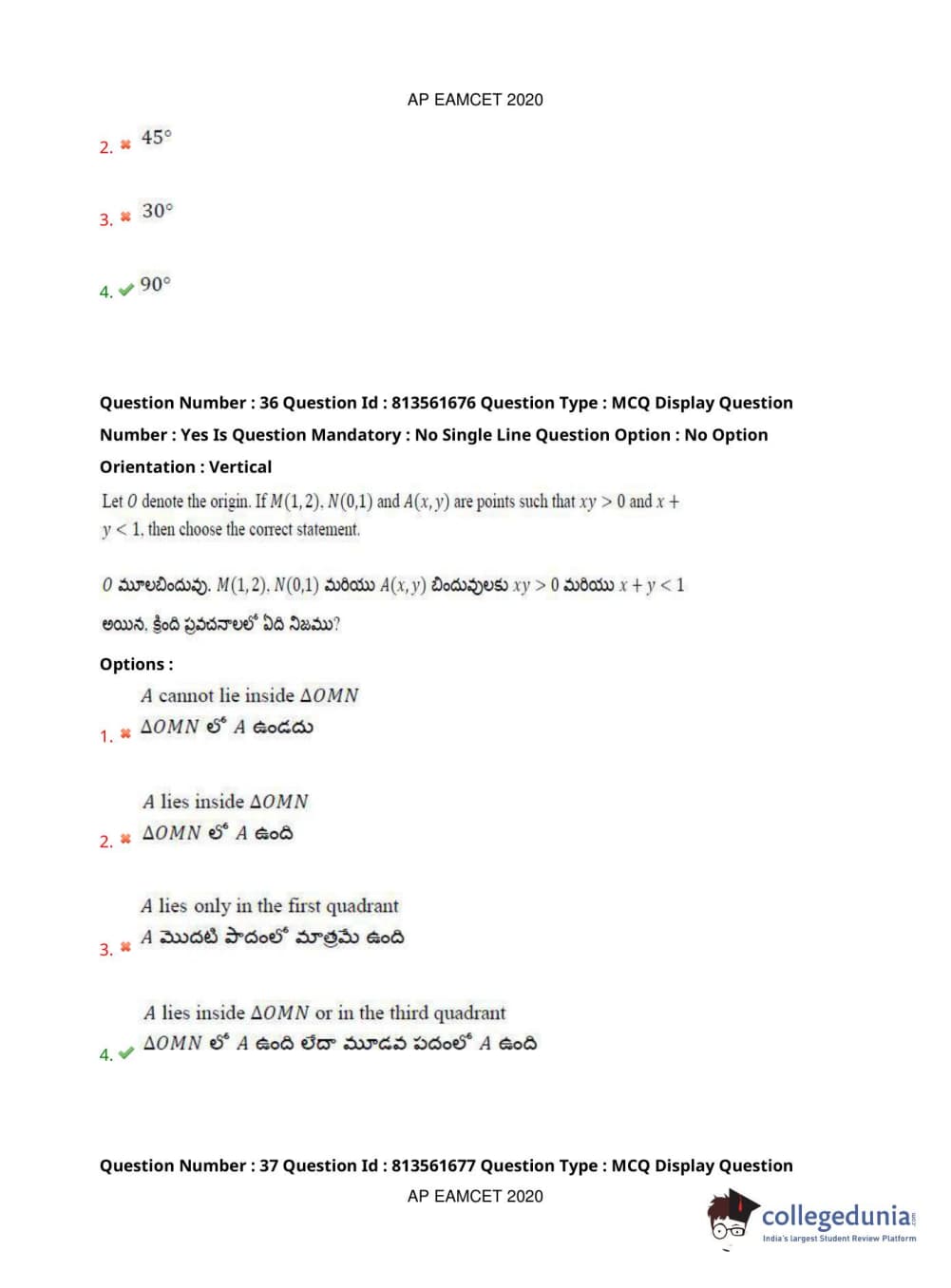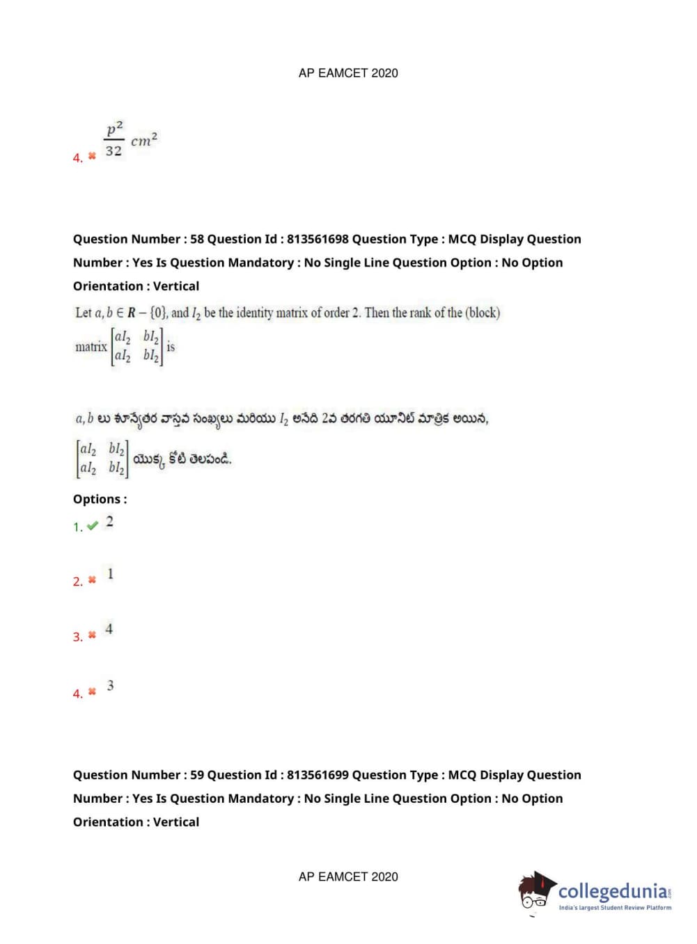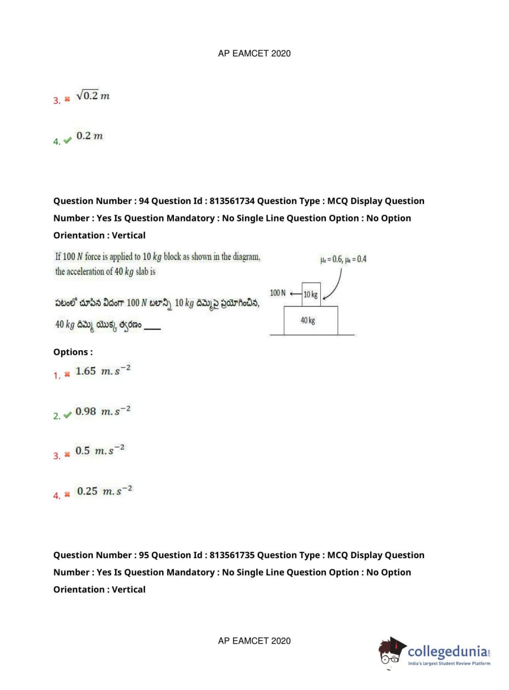 AP EAPCET 2020 Engineering Question Paper with Answer Key PDFs
