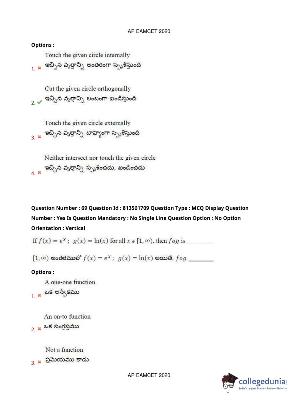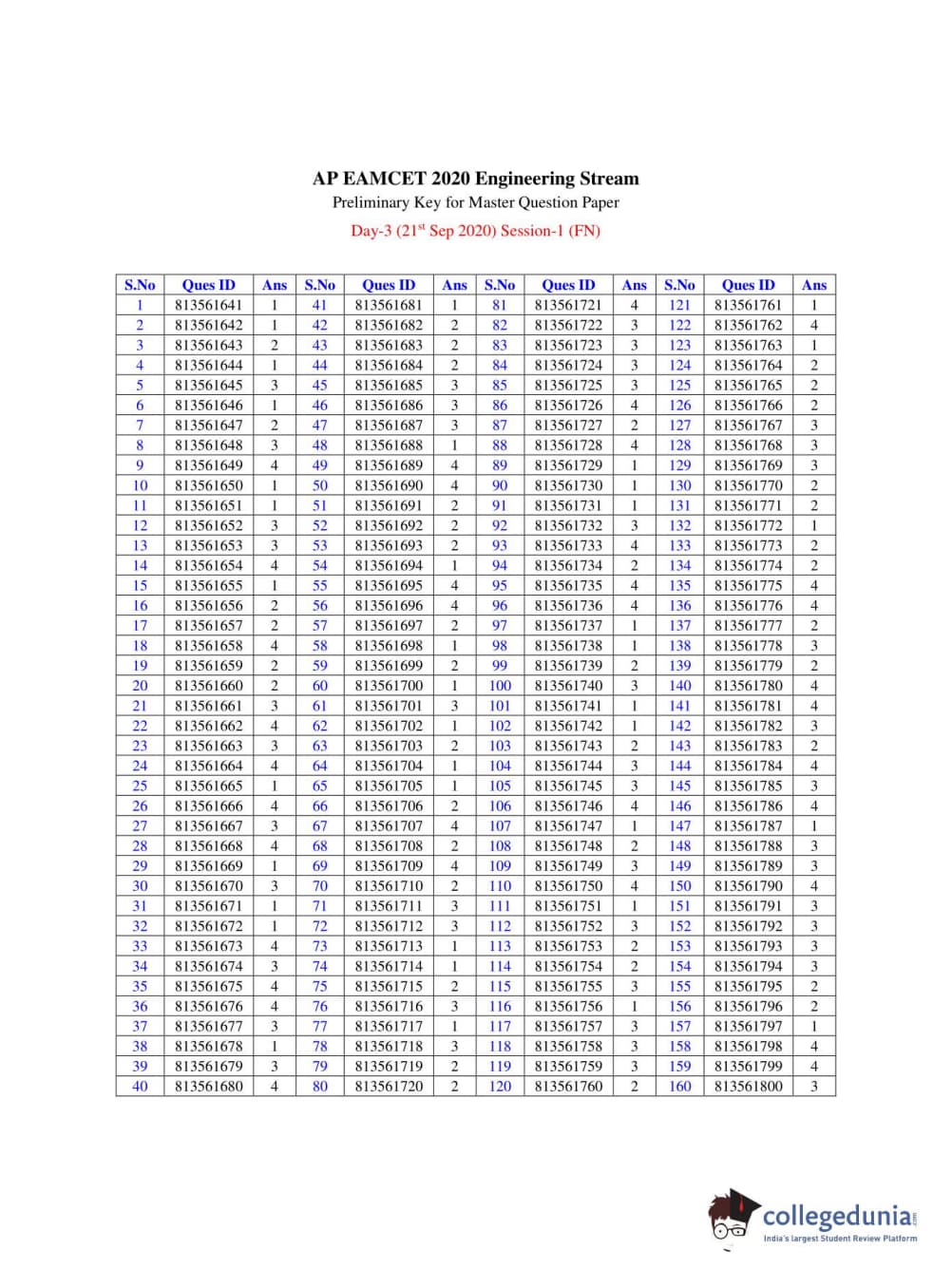 | AP EAPCET 2020 Engineering Question Paper PDF | AP EAPCET 2020 Engineering Answer Key PDF |