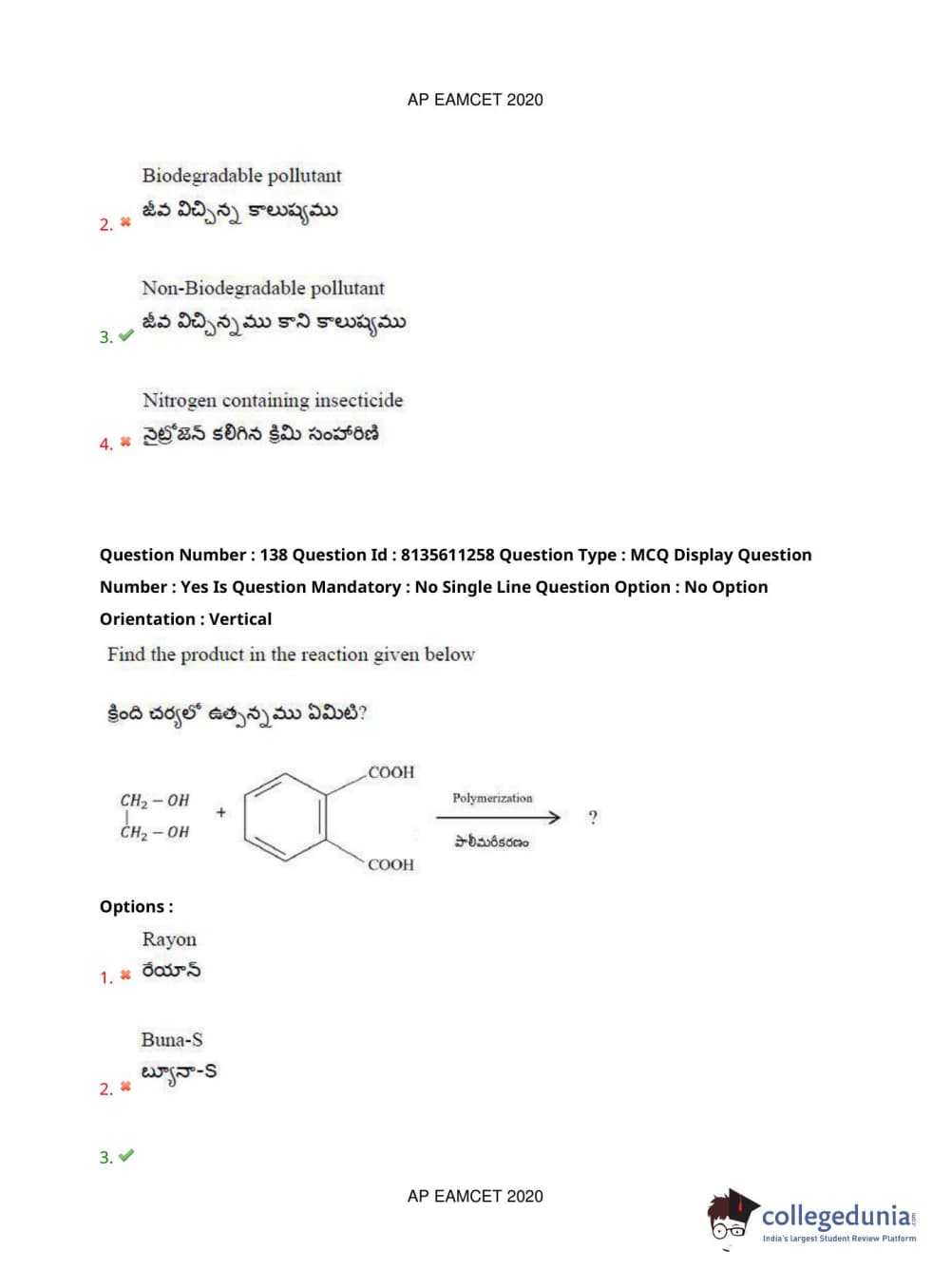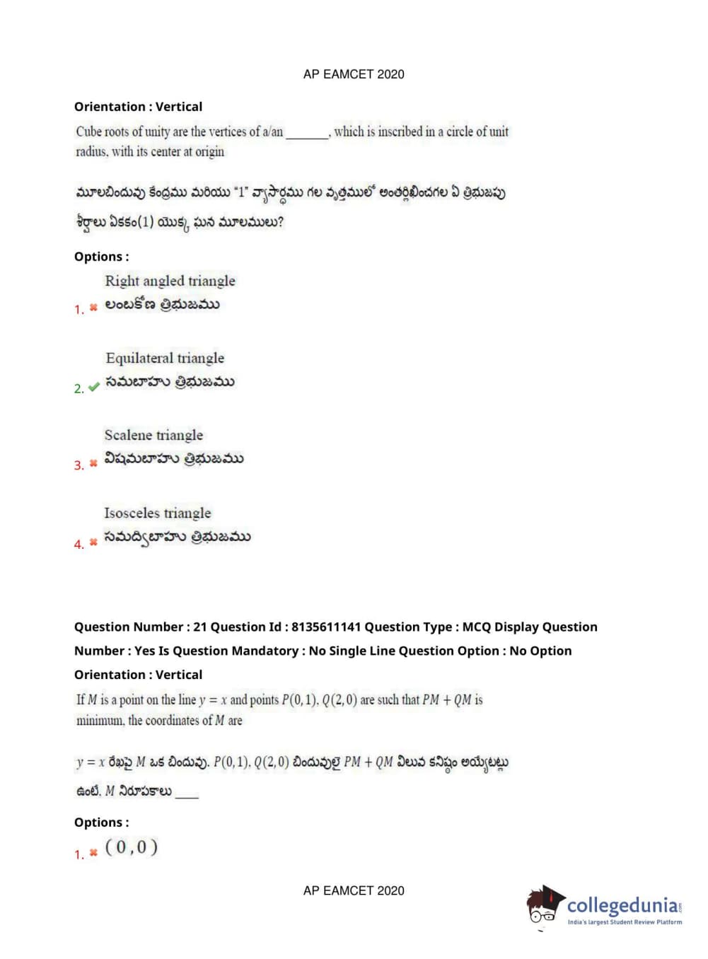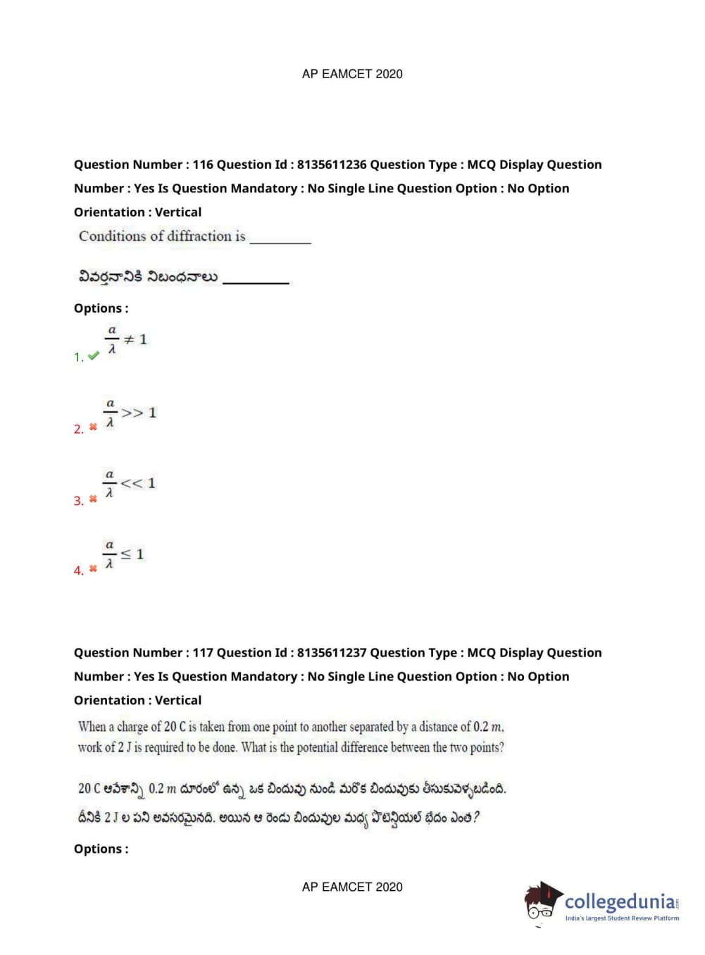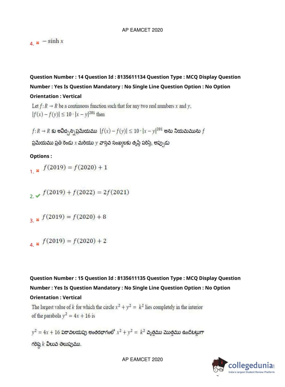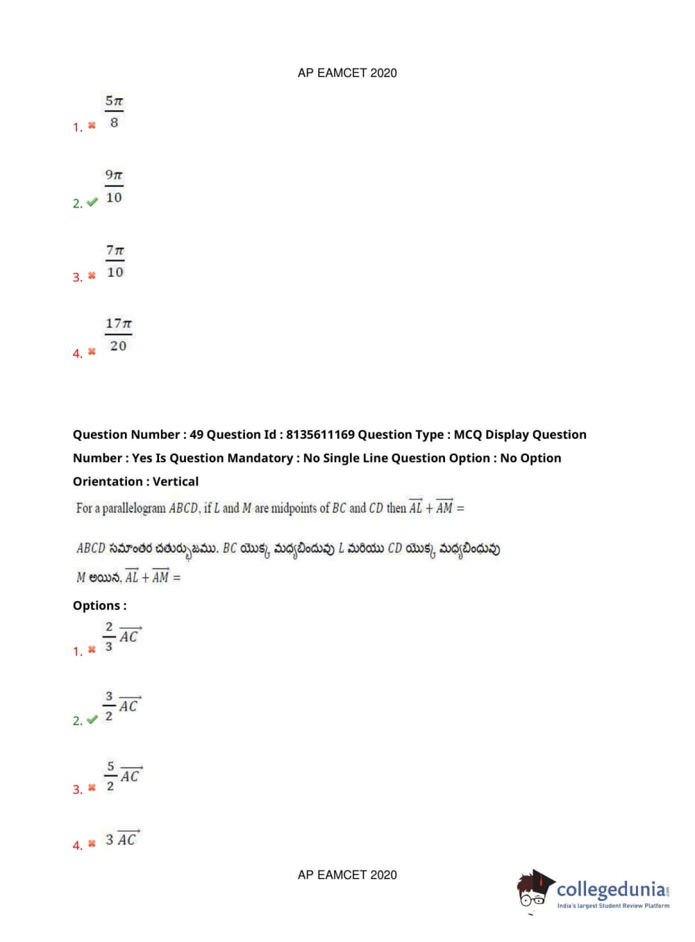 AP EAPCET 2020 Engineering Question Paper with Answer Key PDFs Afternoon Session