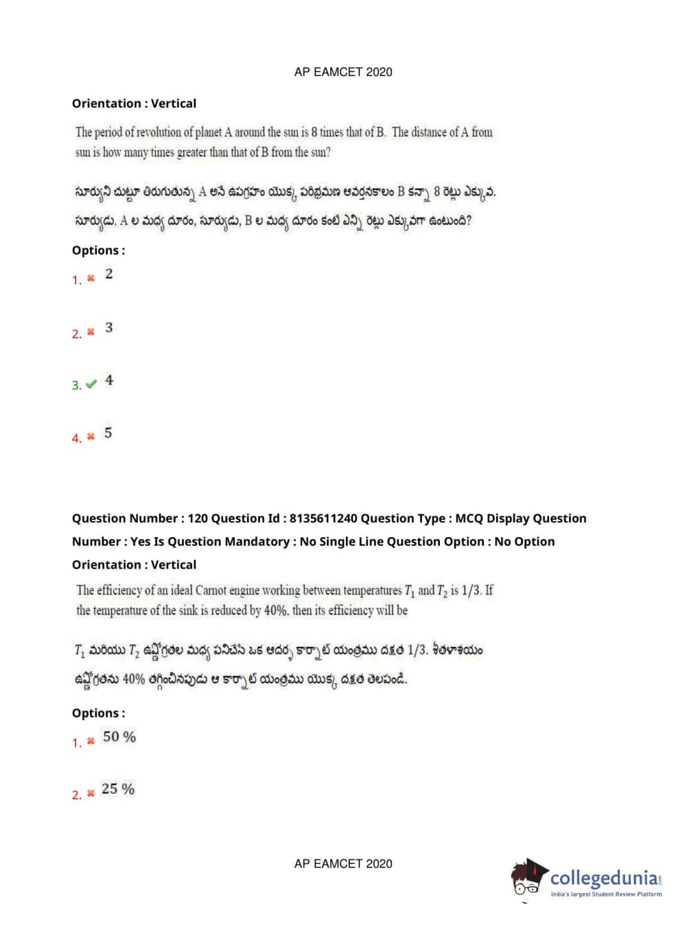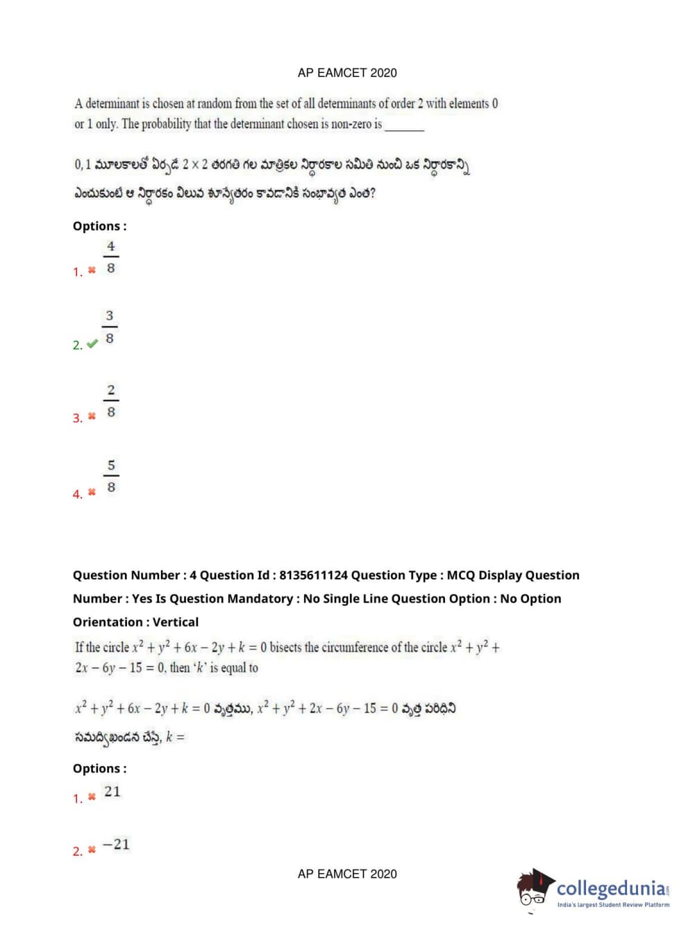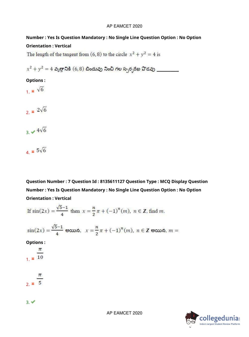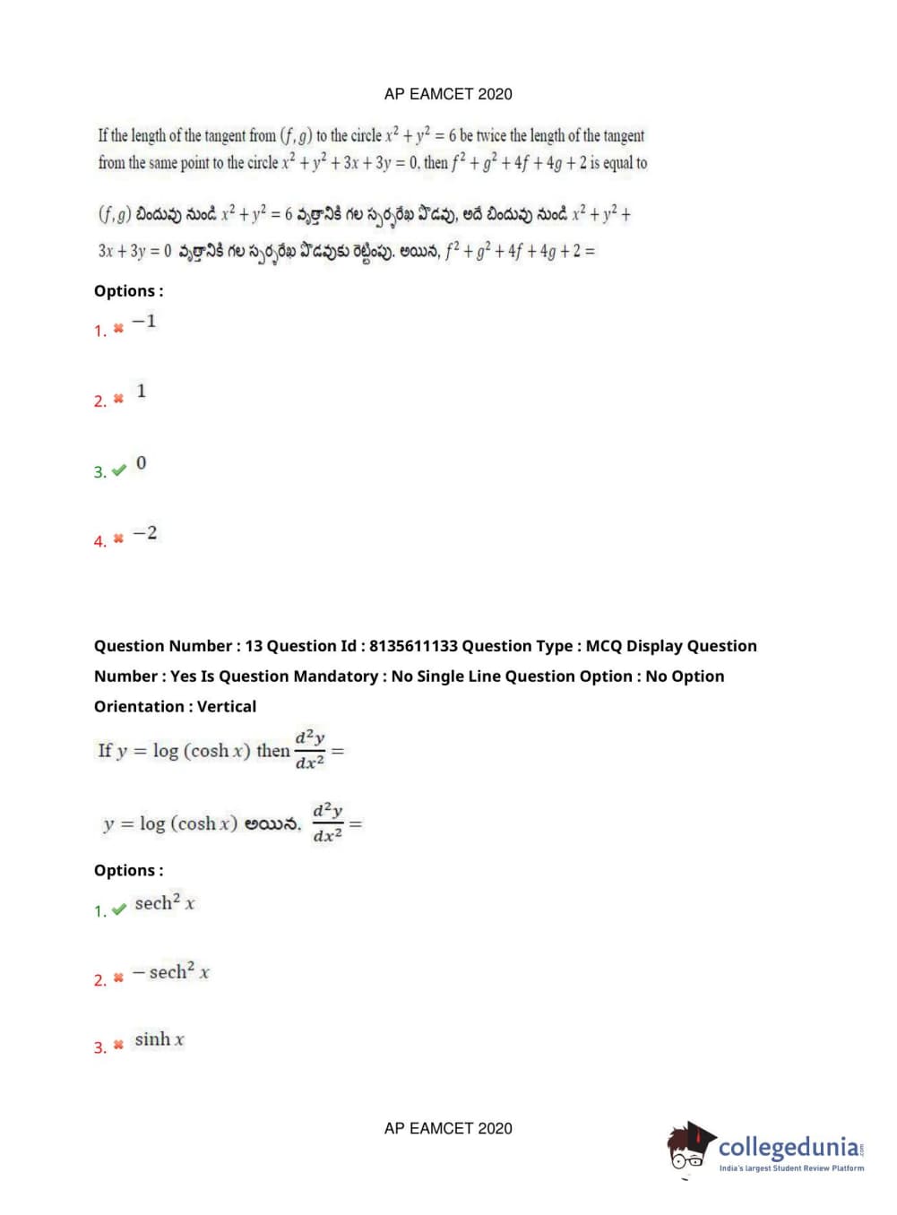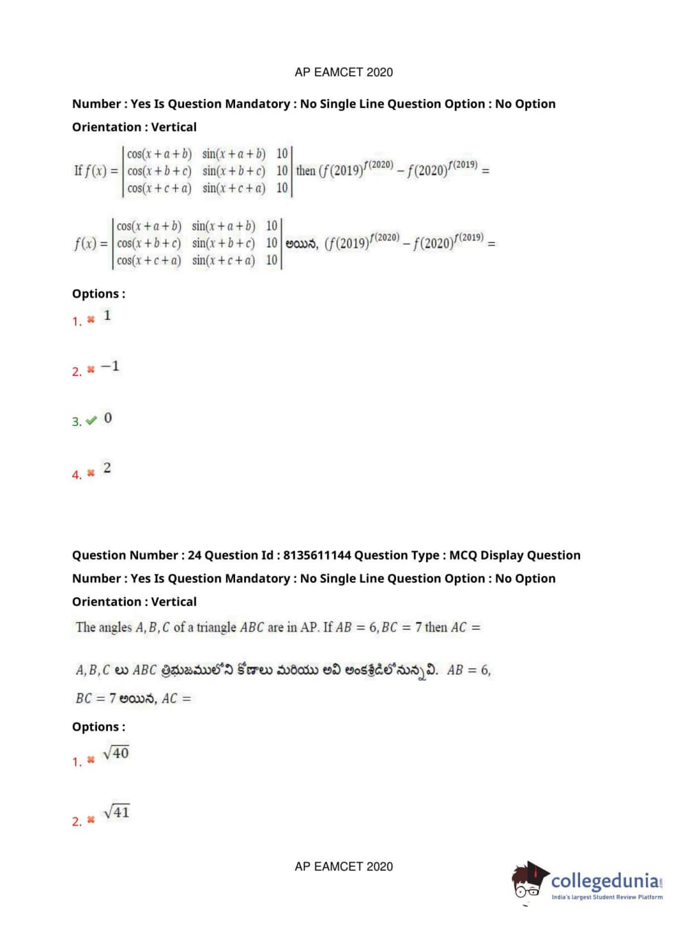 AP EAPCET 2020 Engineering Question Paper with Answer Key PDFs Afternoon Session