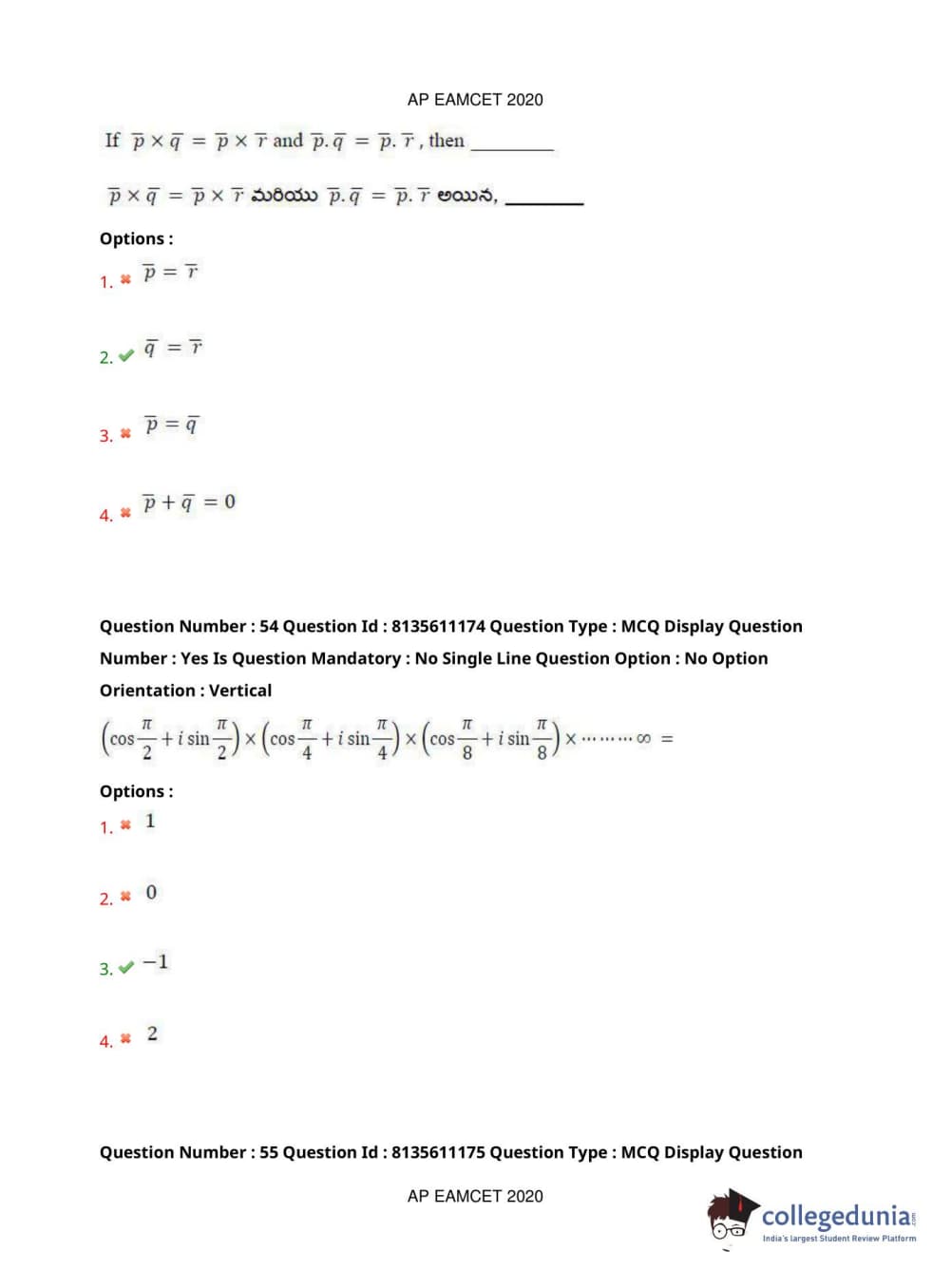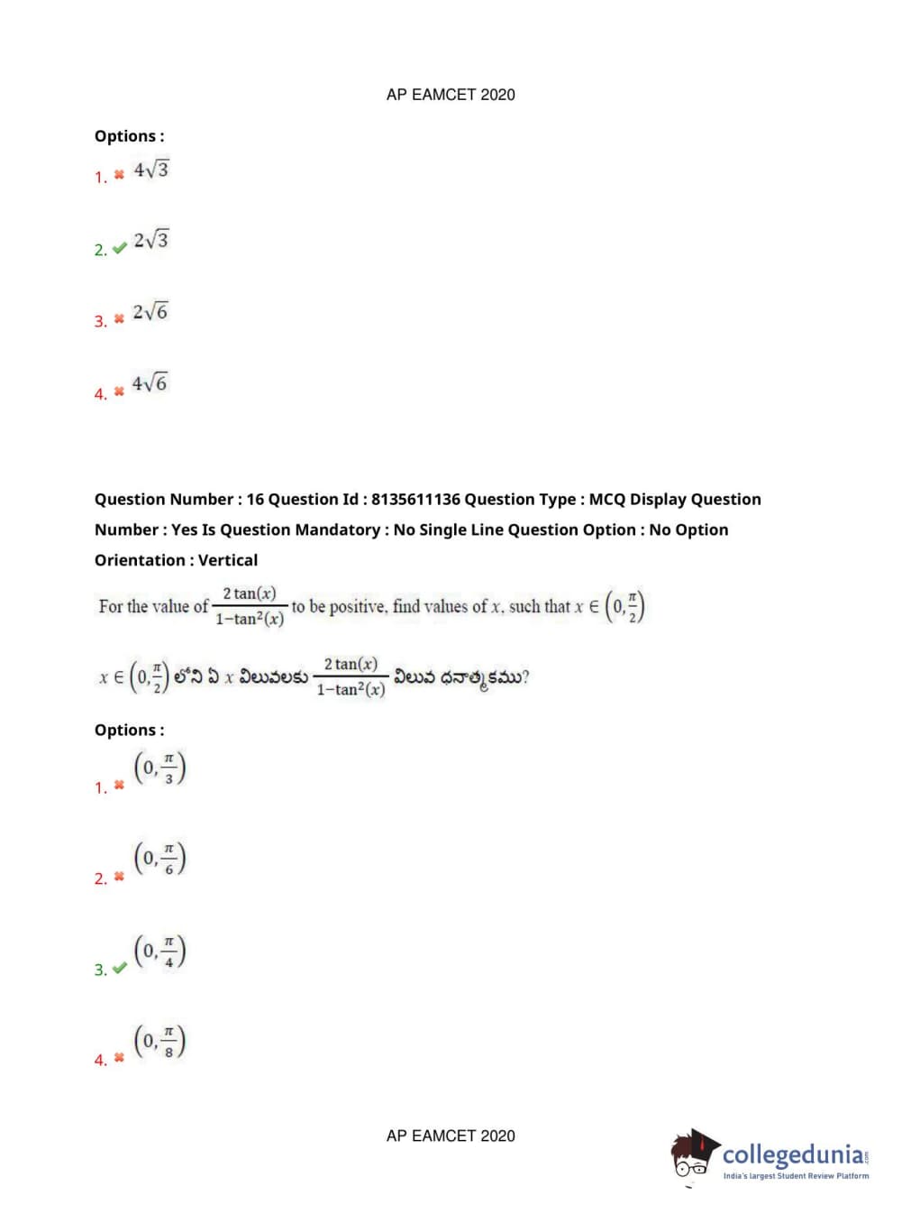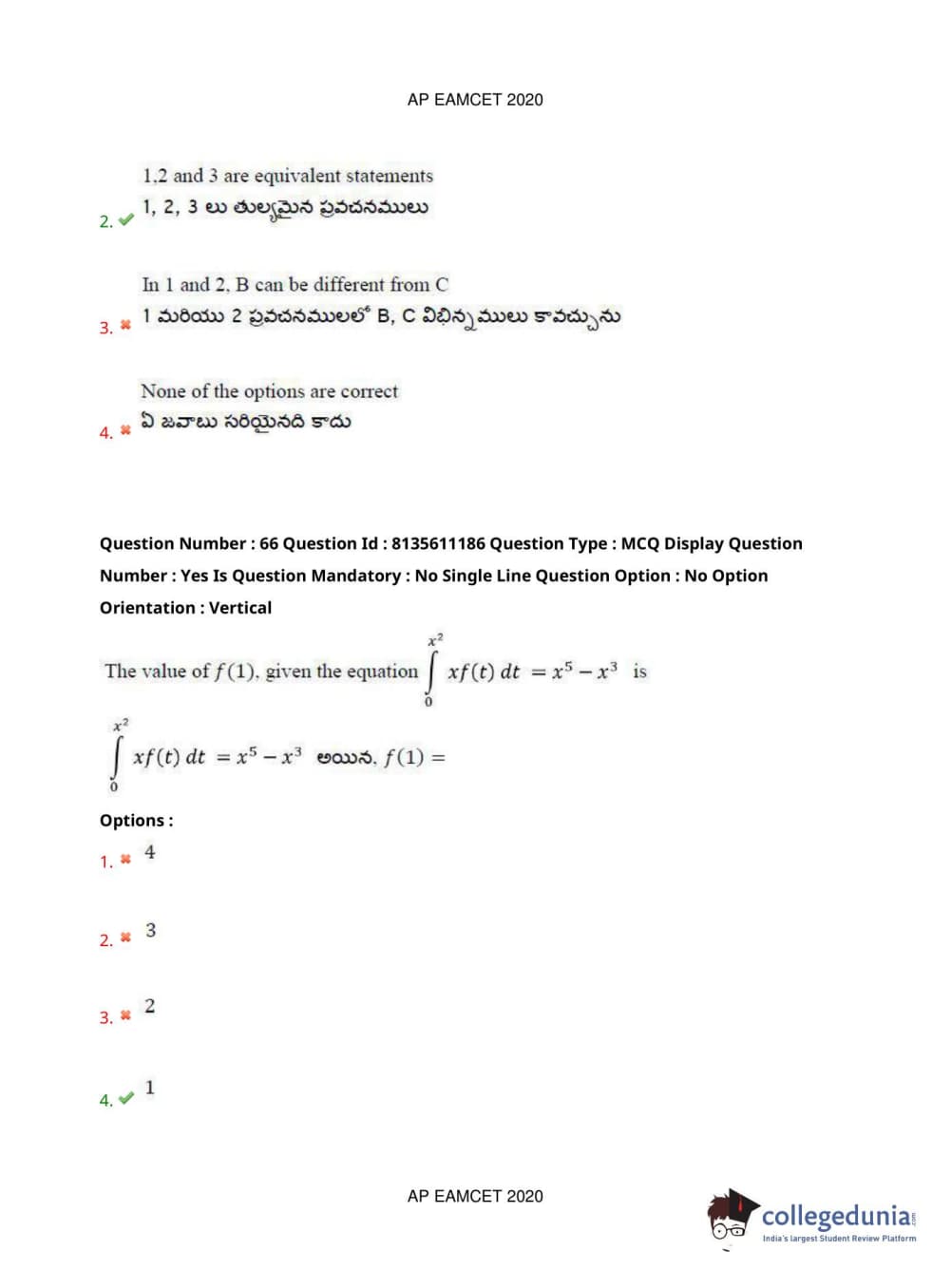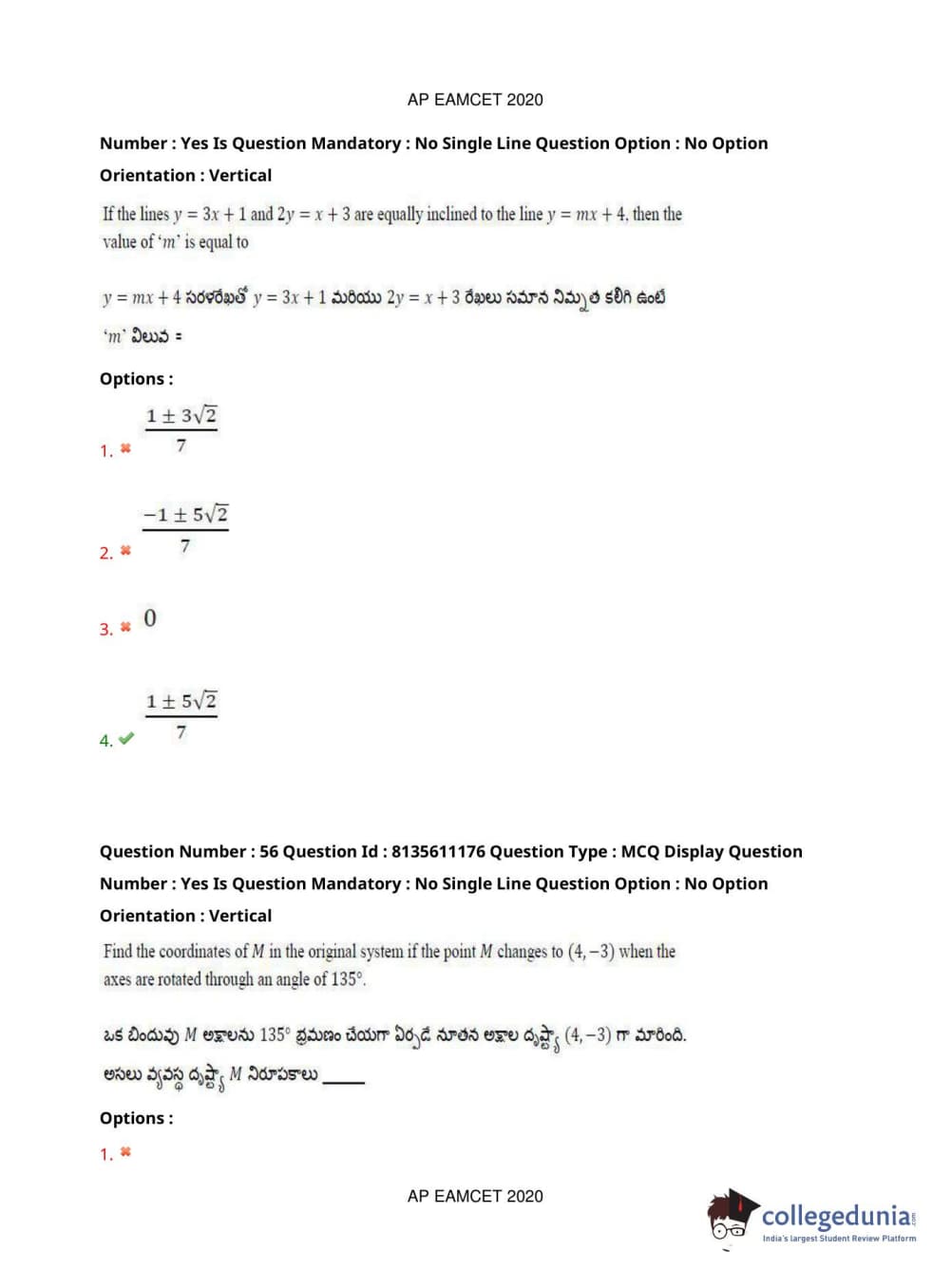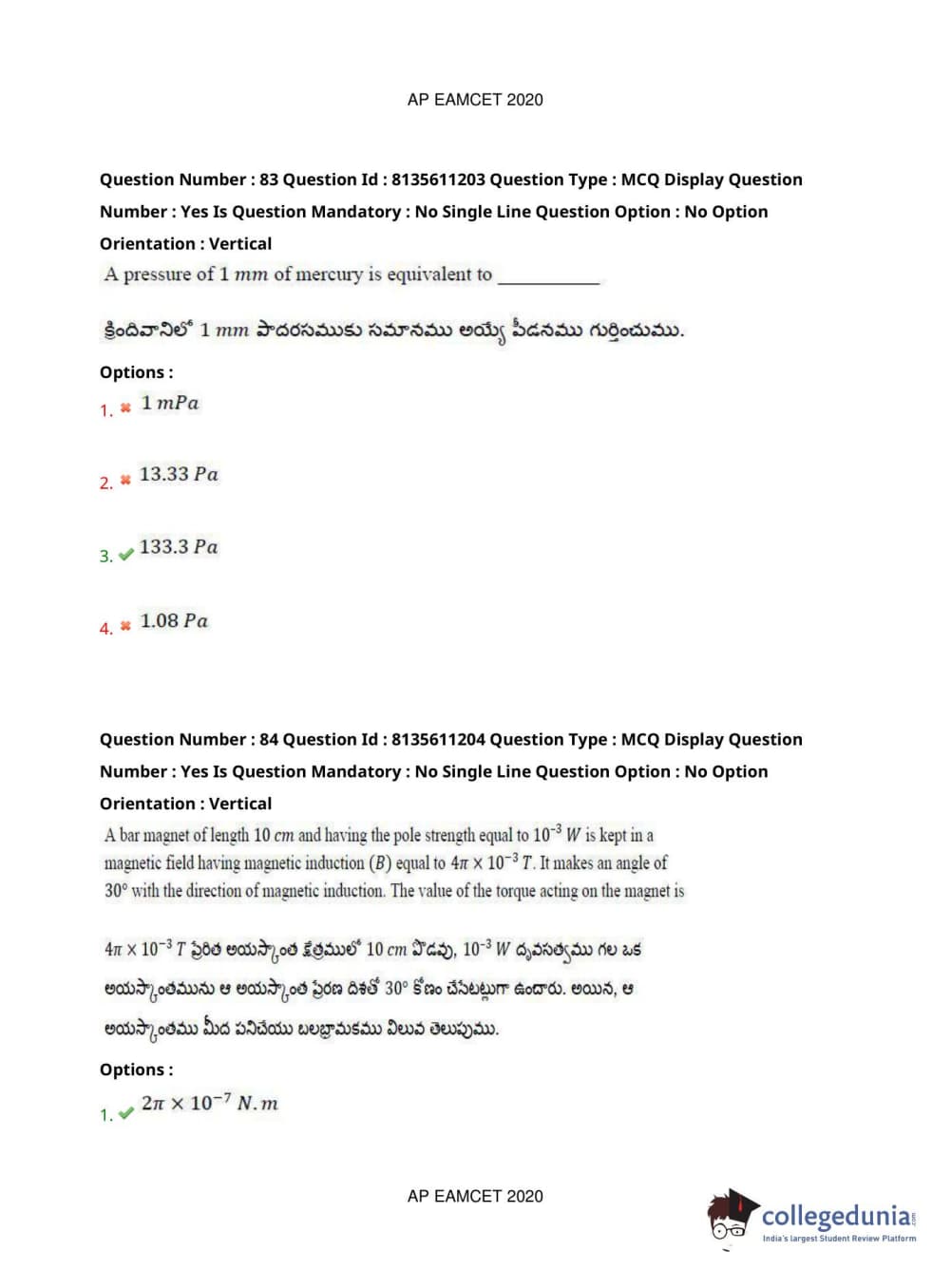 AP EAPCET 2020 Engineering Question Paper with Answer Key PDFs Afternoon Session