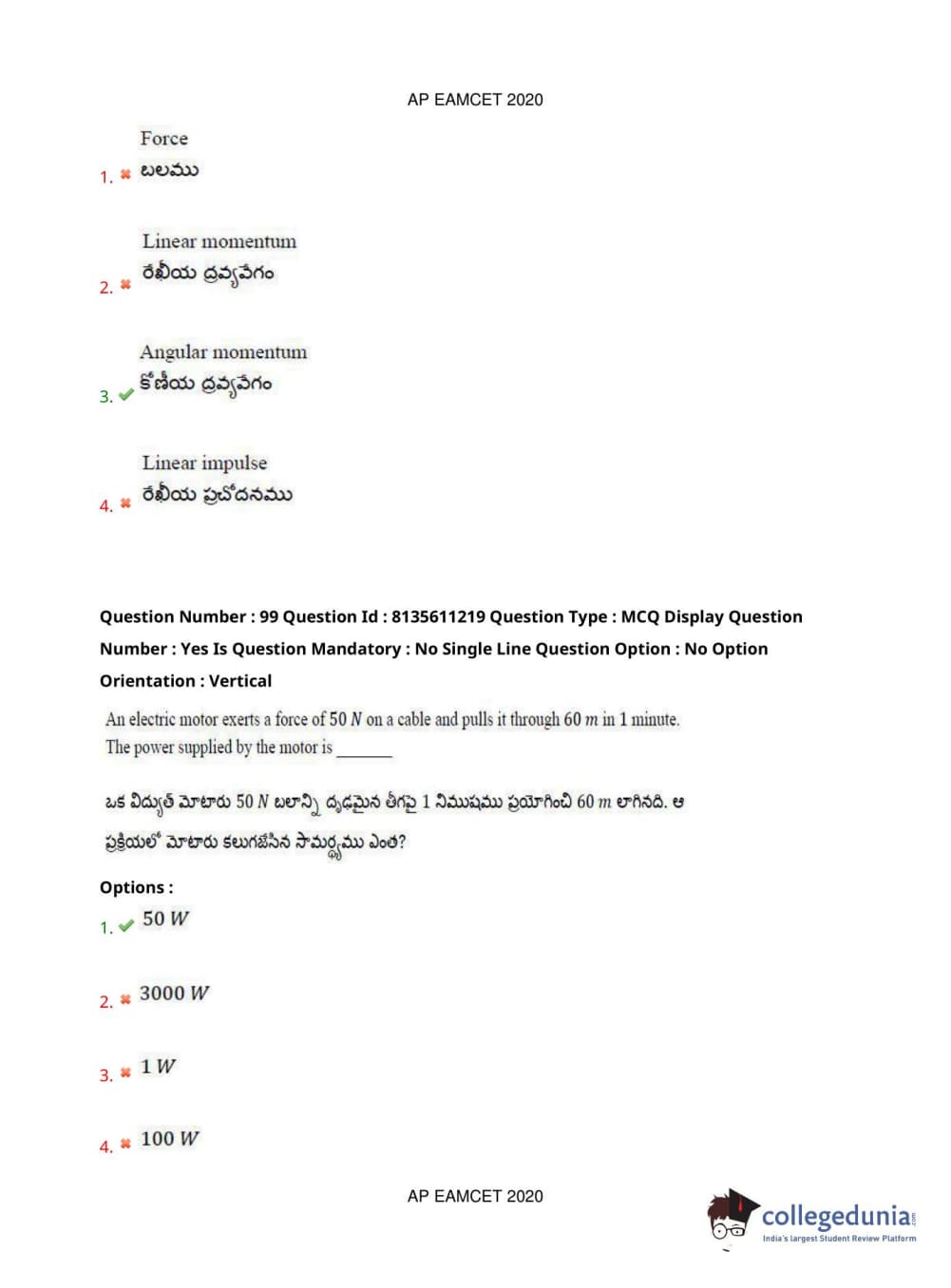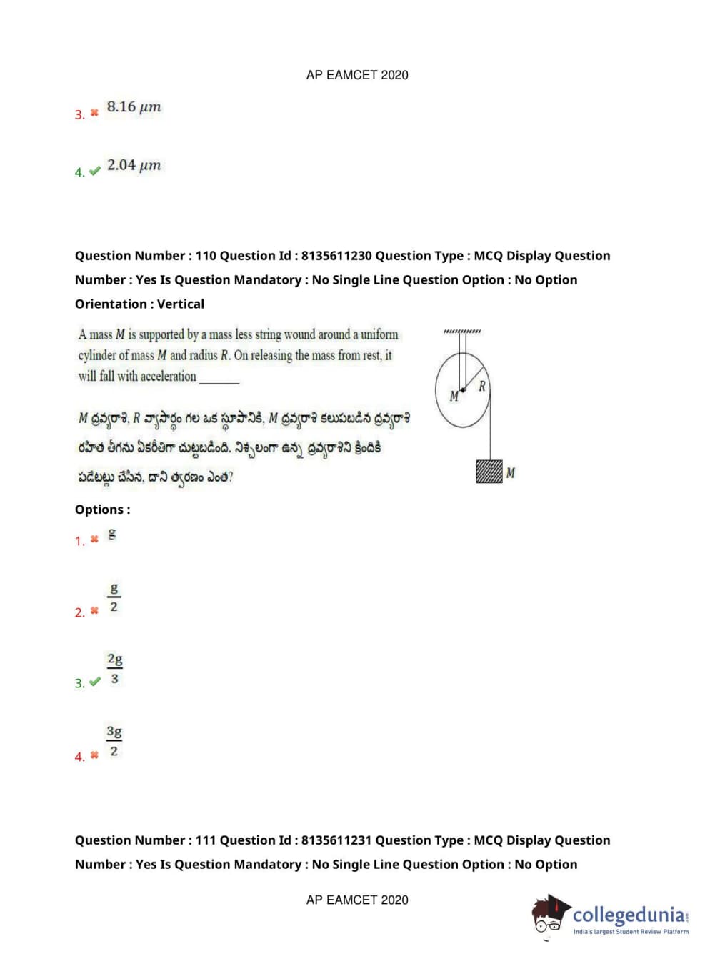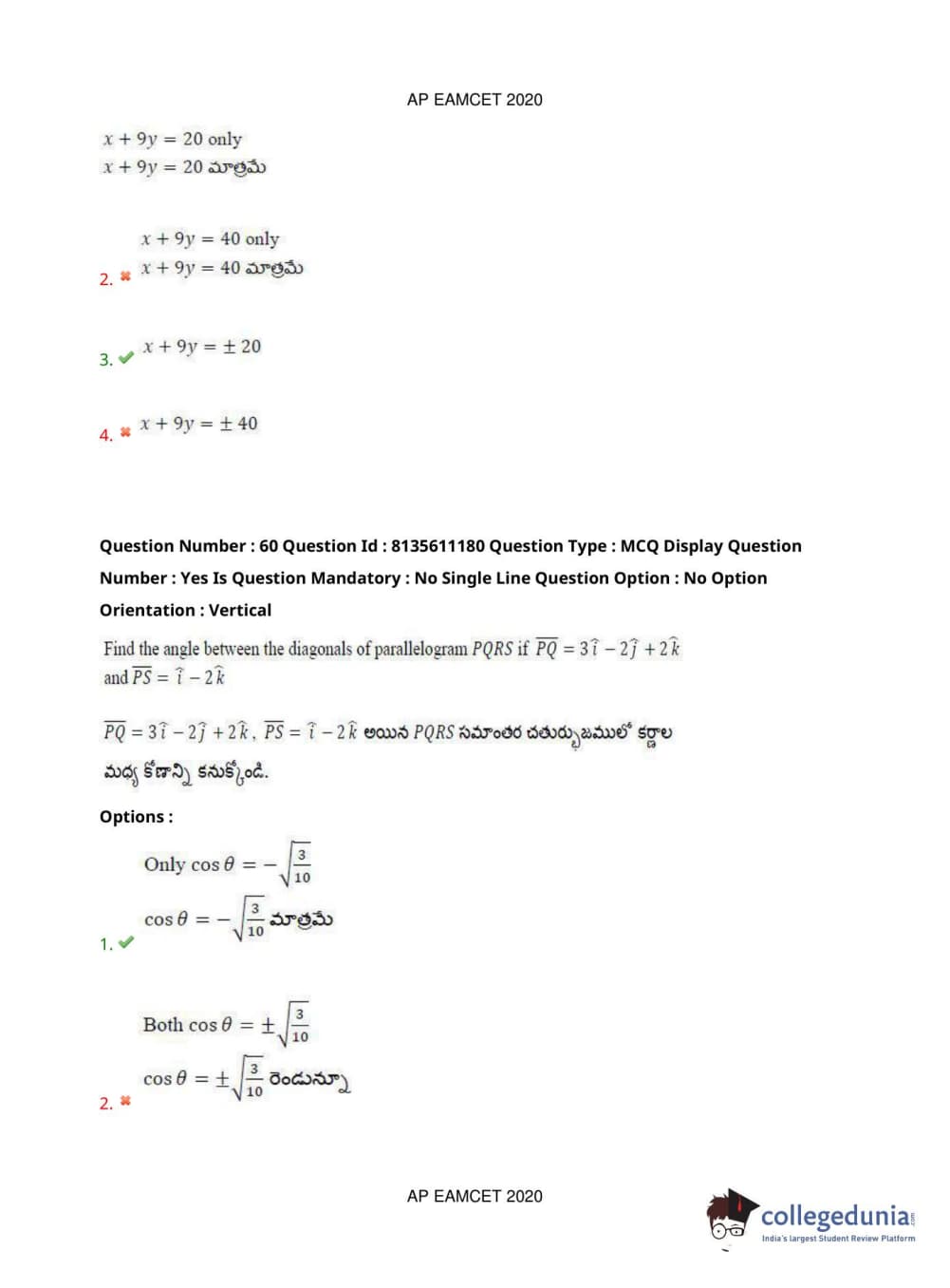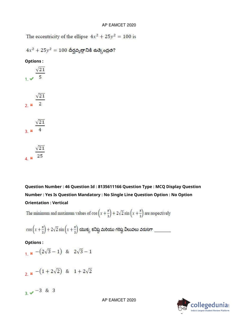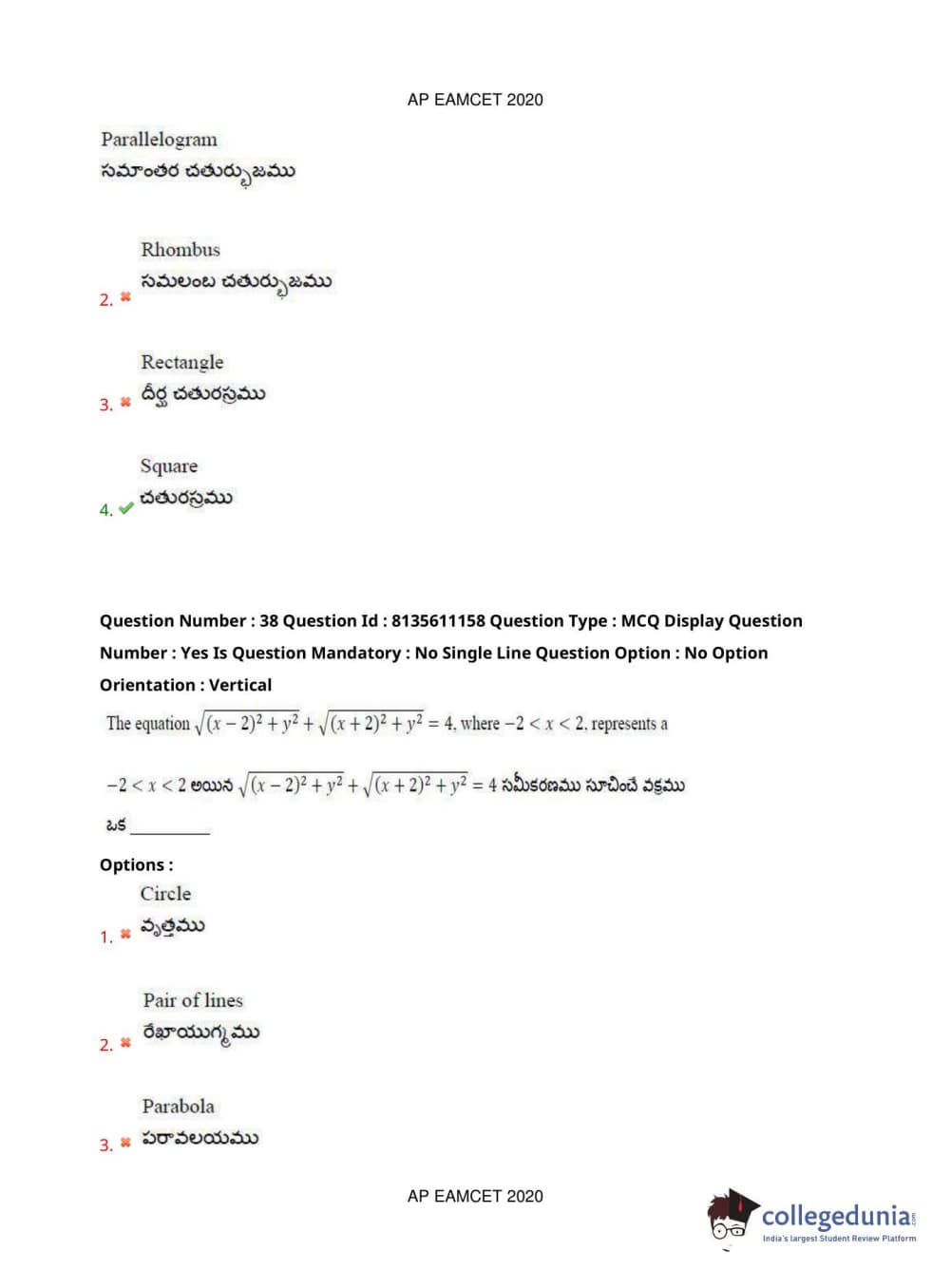 AP EAPCET 2020 Engineering Question Paper with Answer Key PDFs Afternoon Session
