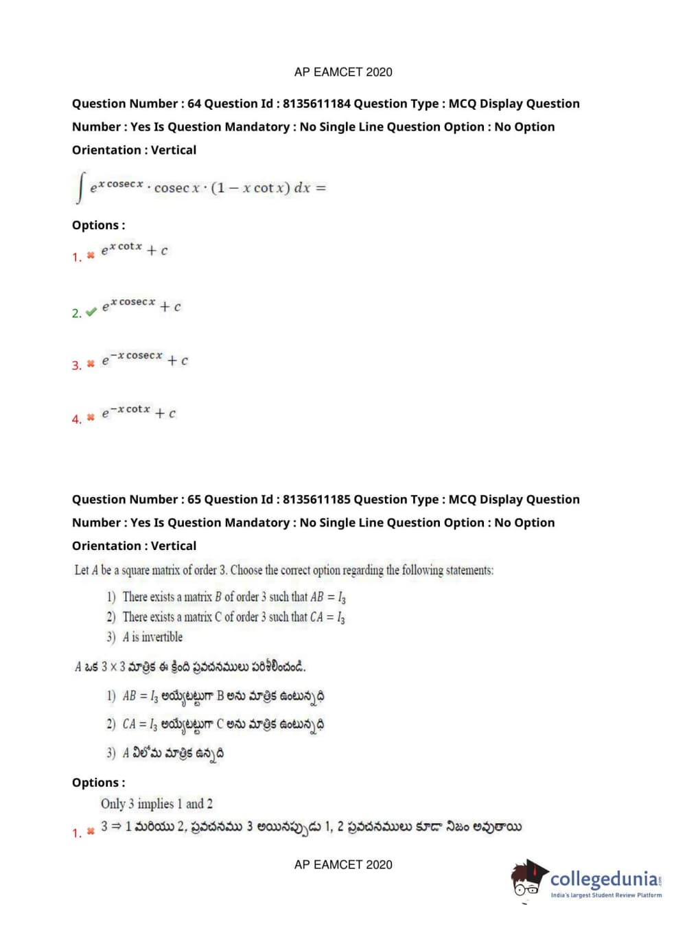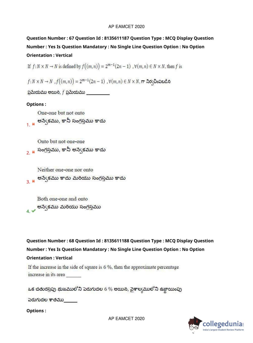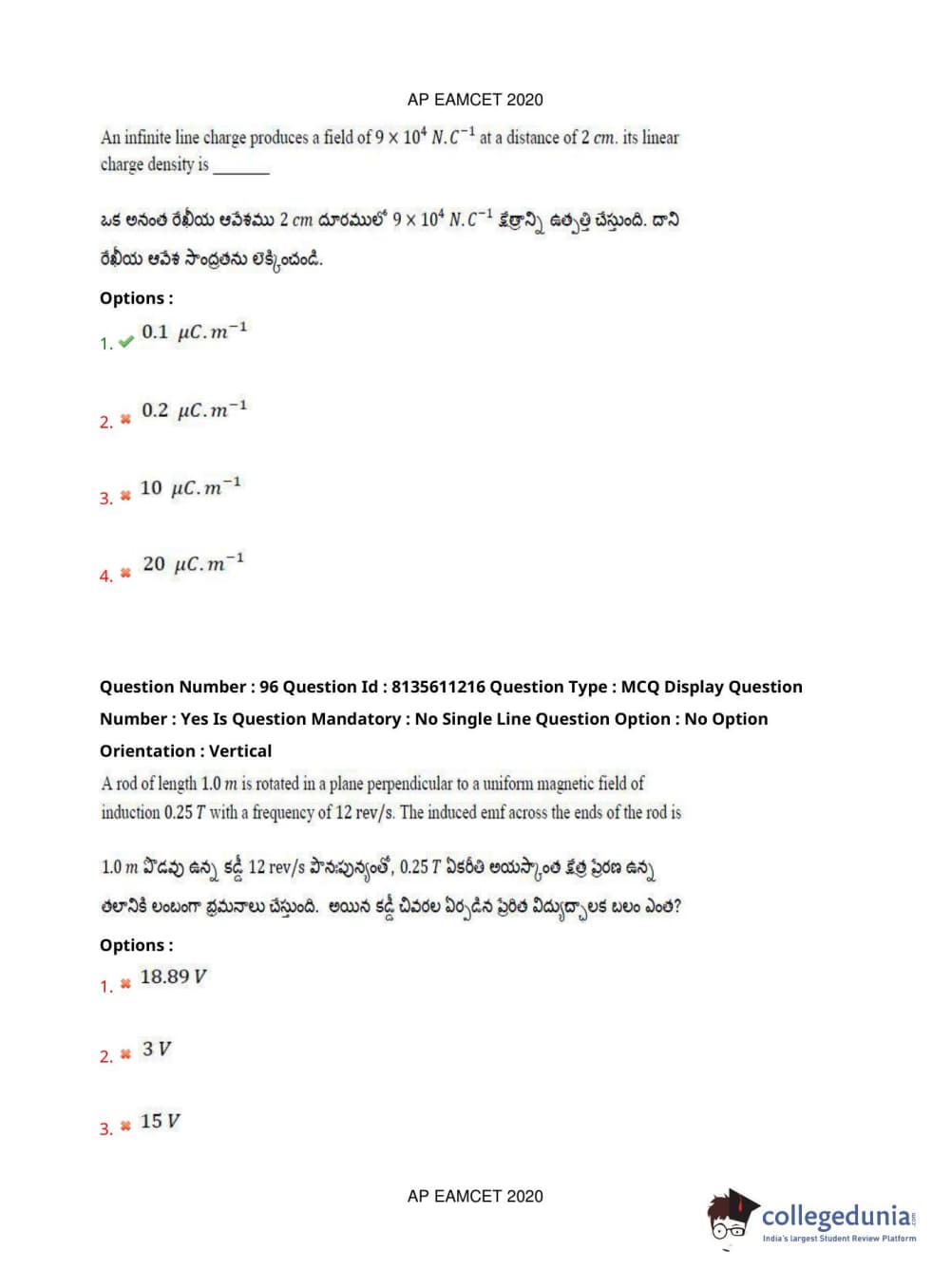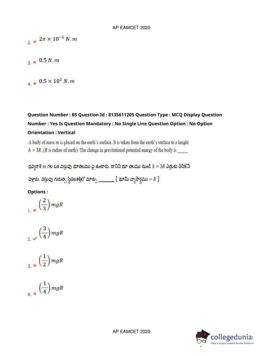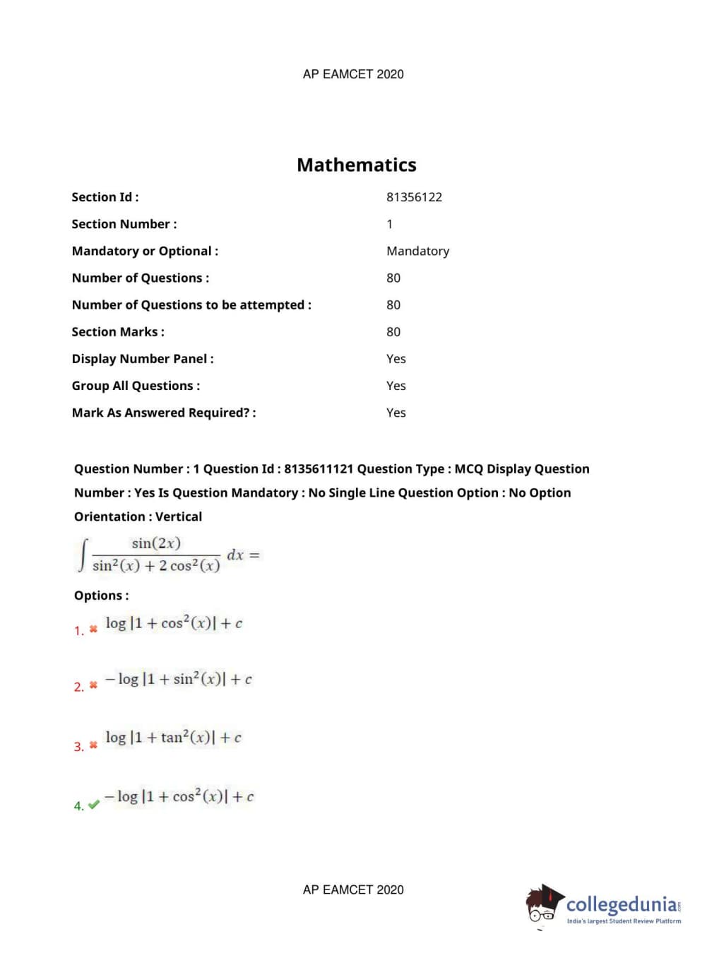 AP EAPCET 2020 Engineering Question Paper with Answer Key PDFs Afternoon Session