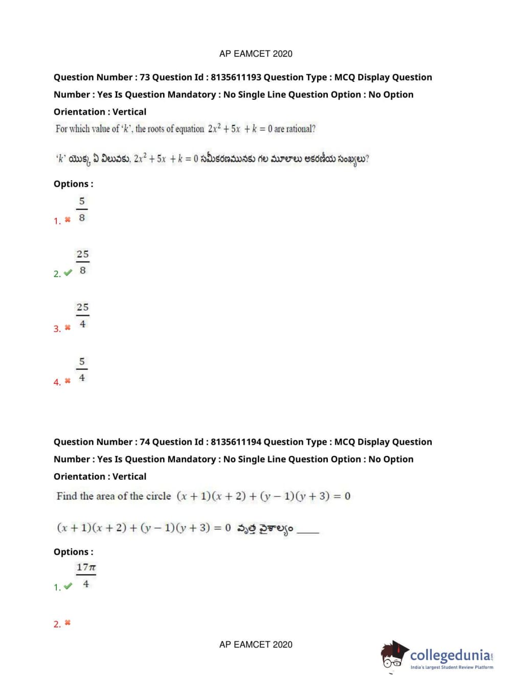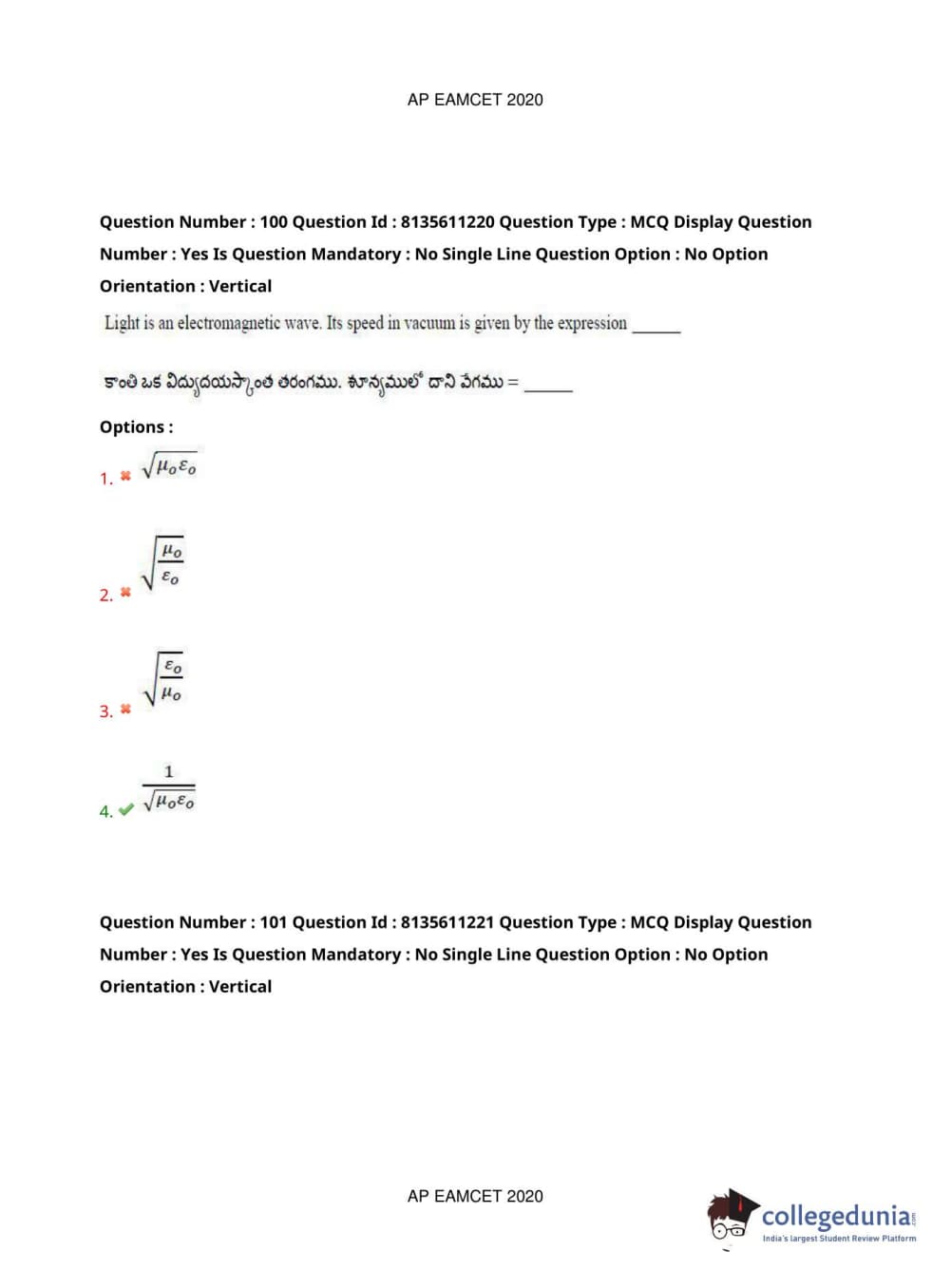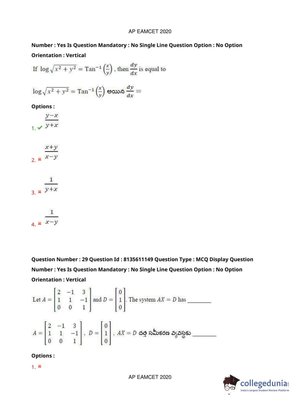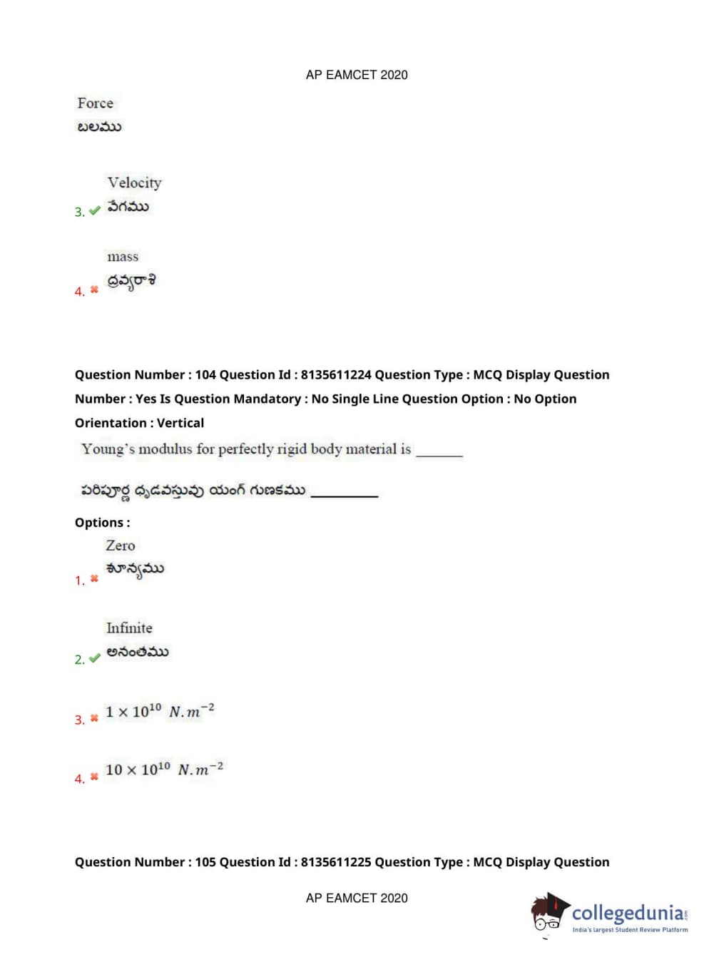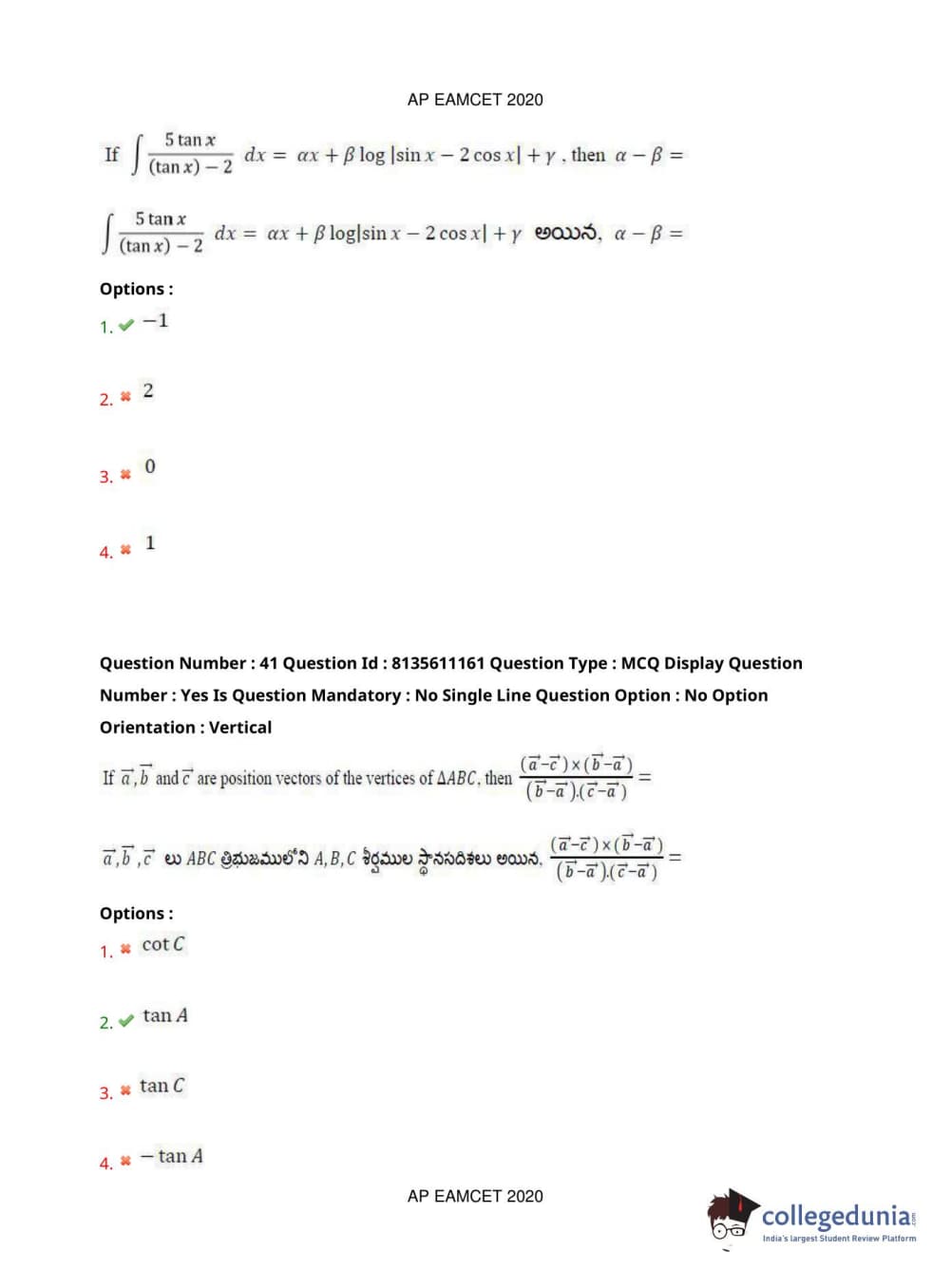 AP EAPCET 2020 Engineering Question Paper with Answer Key PDFs Afternoon Session