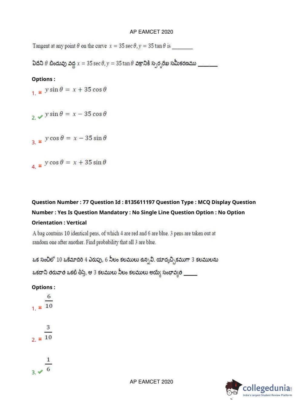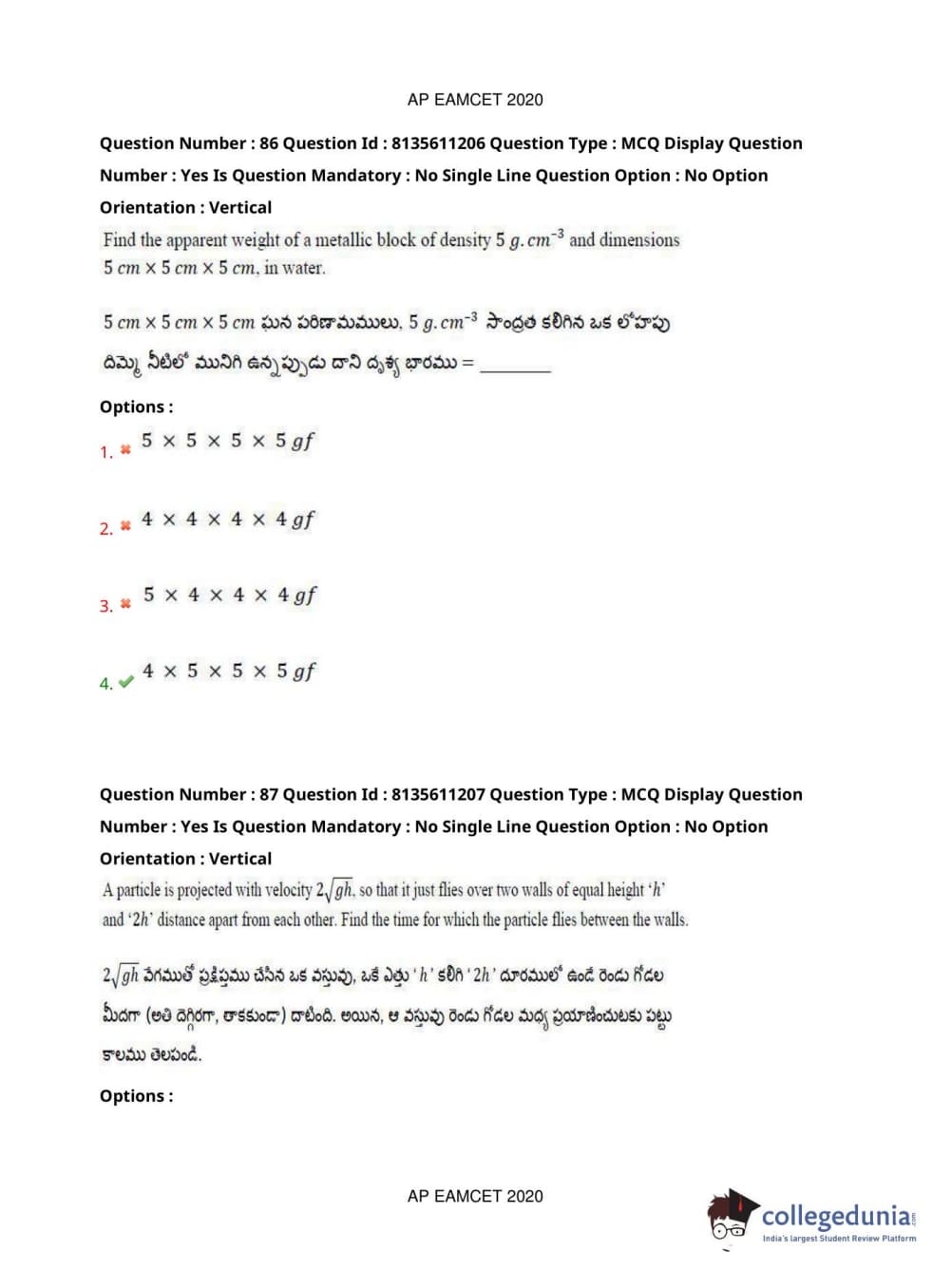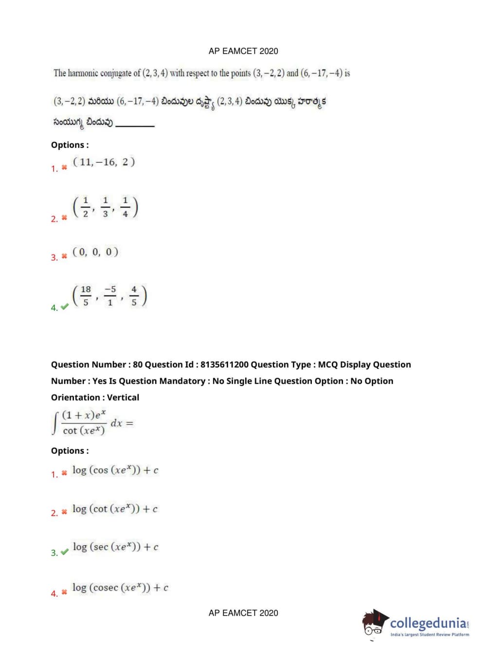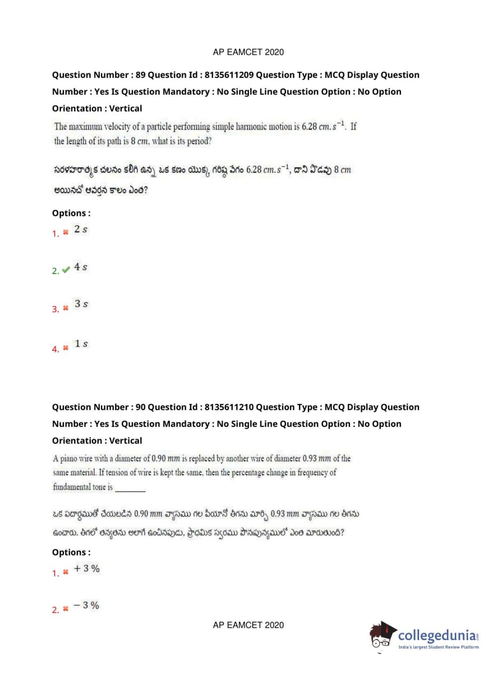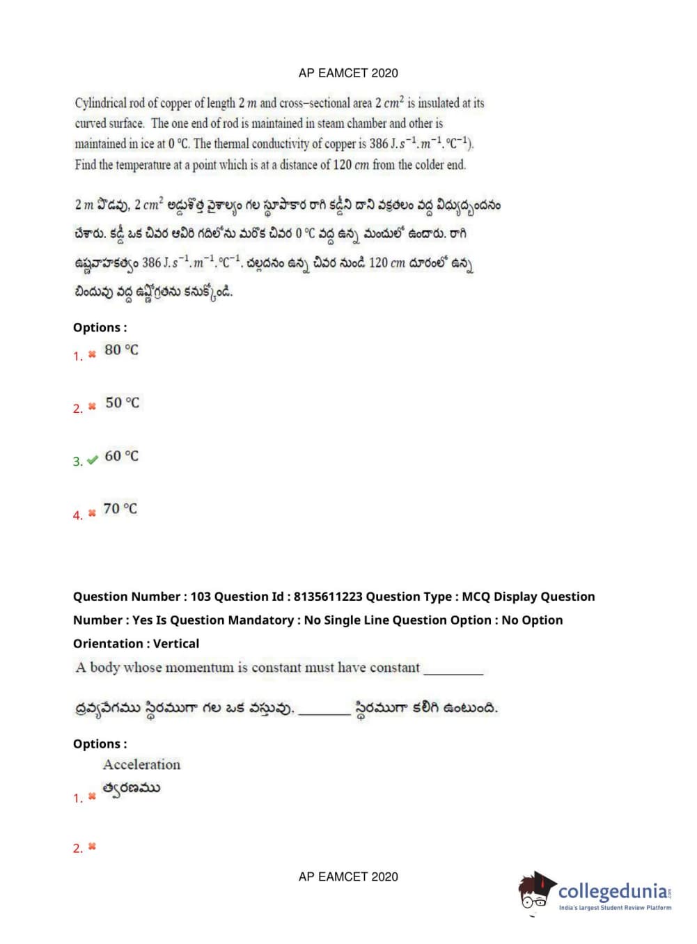 AP EAPCET 2020 Engineering Question Paper with Answer Key PDFs Afternoon Session