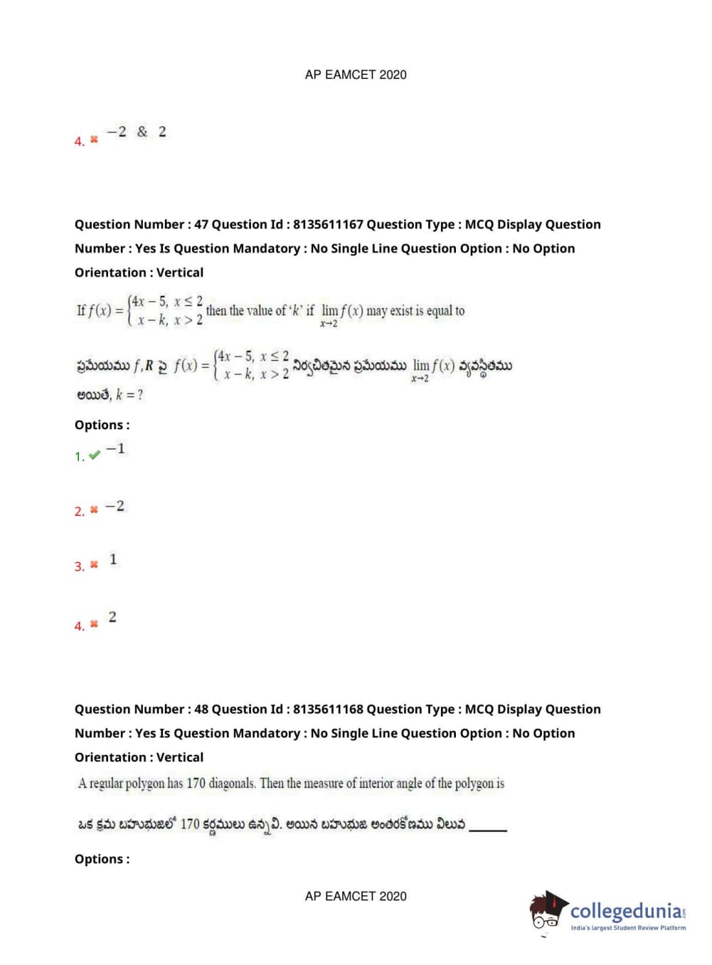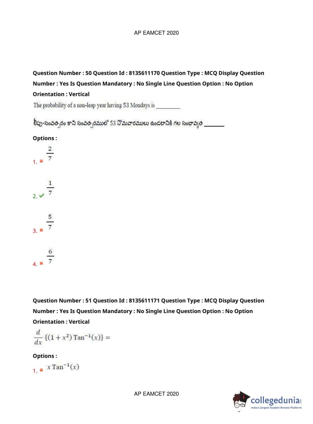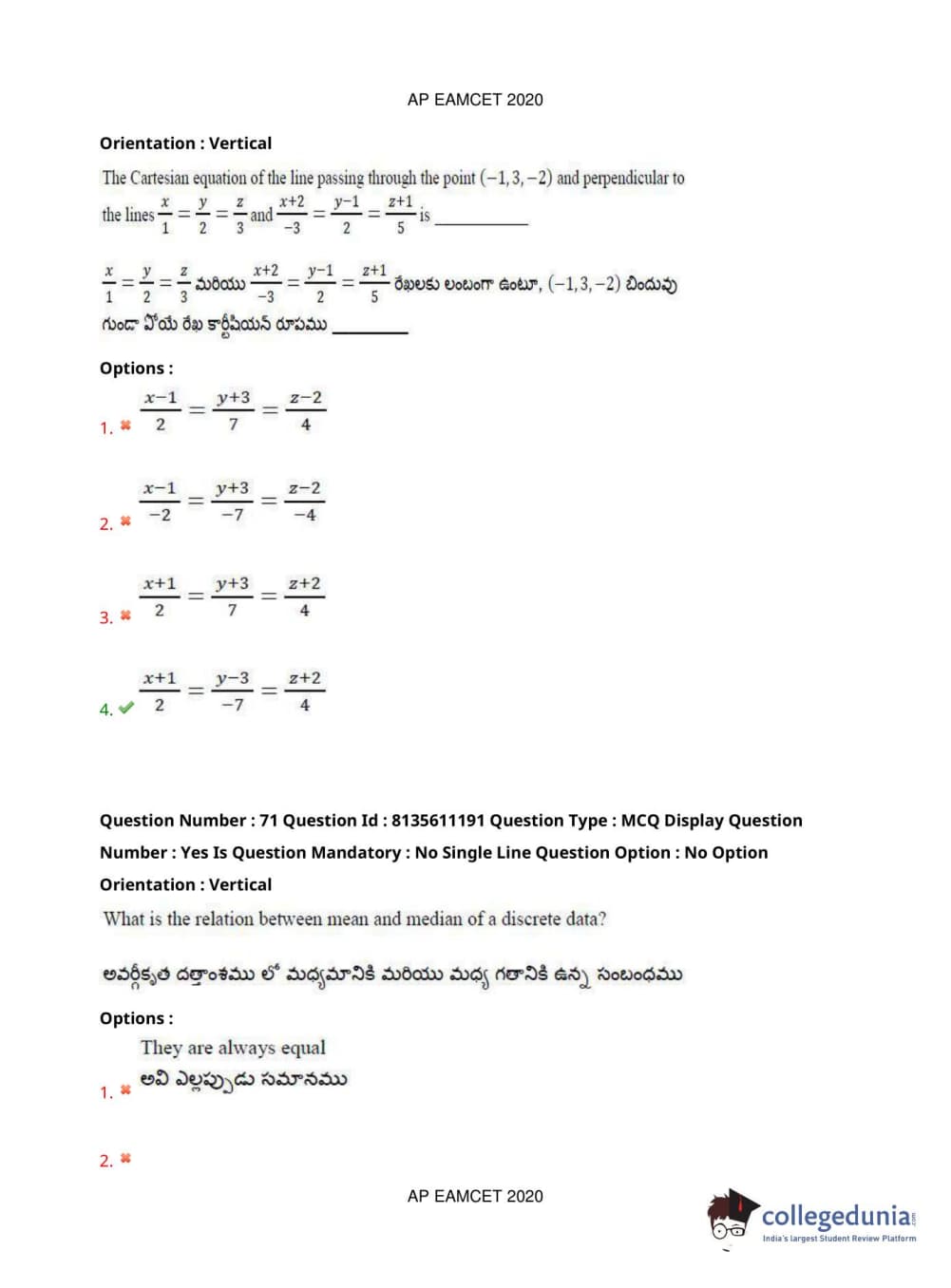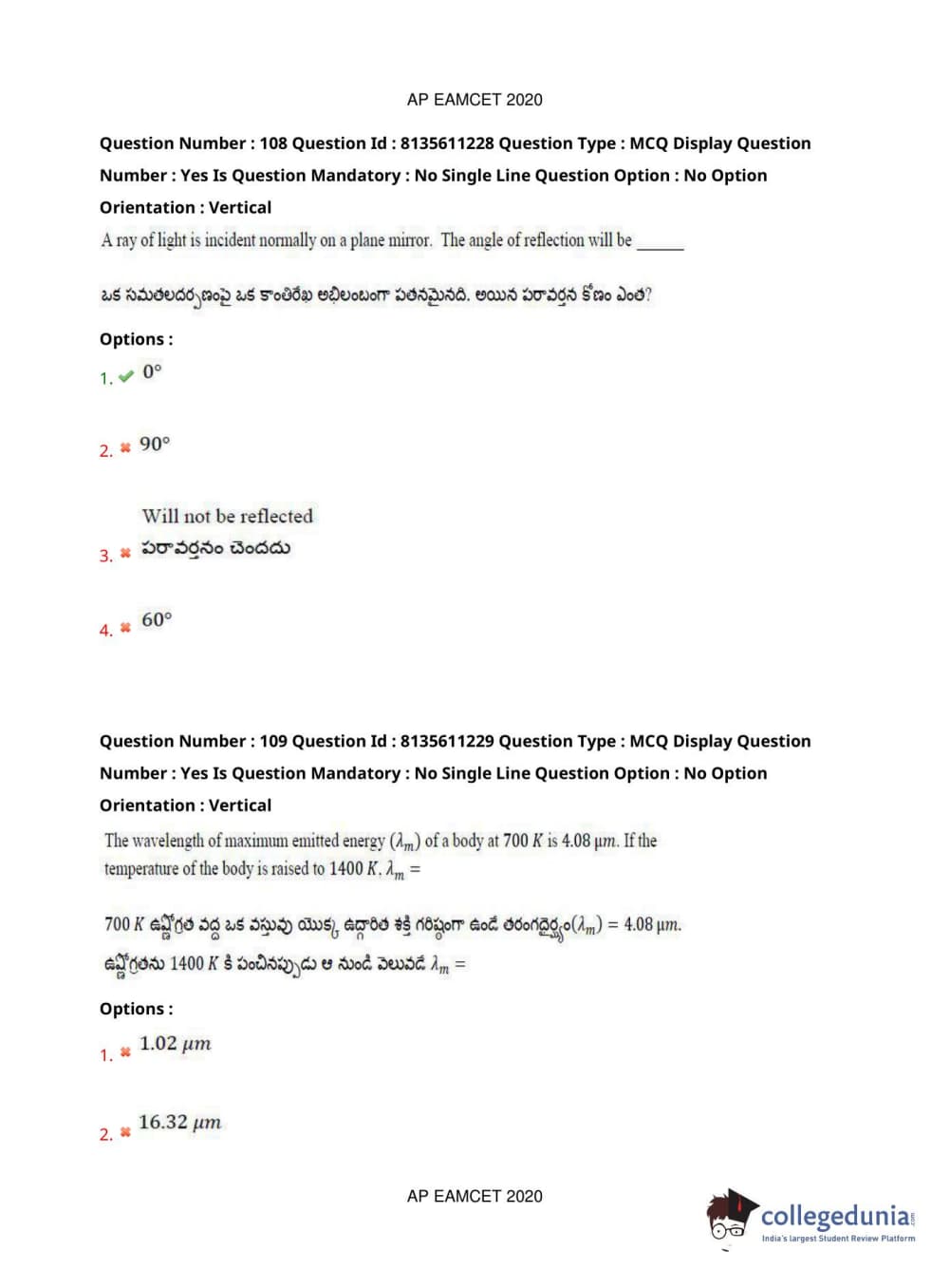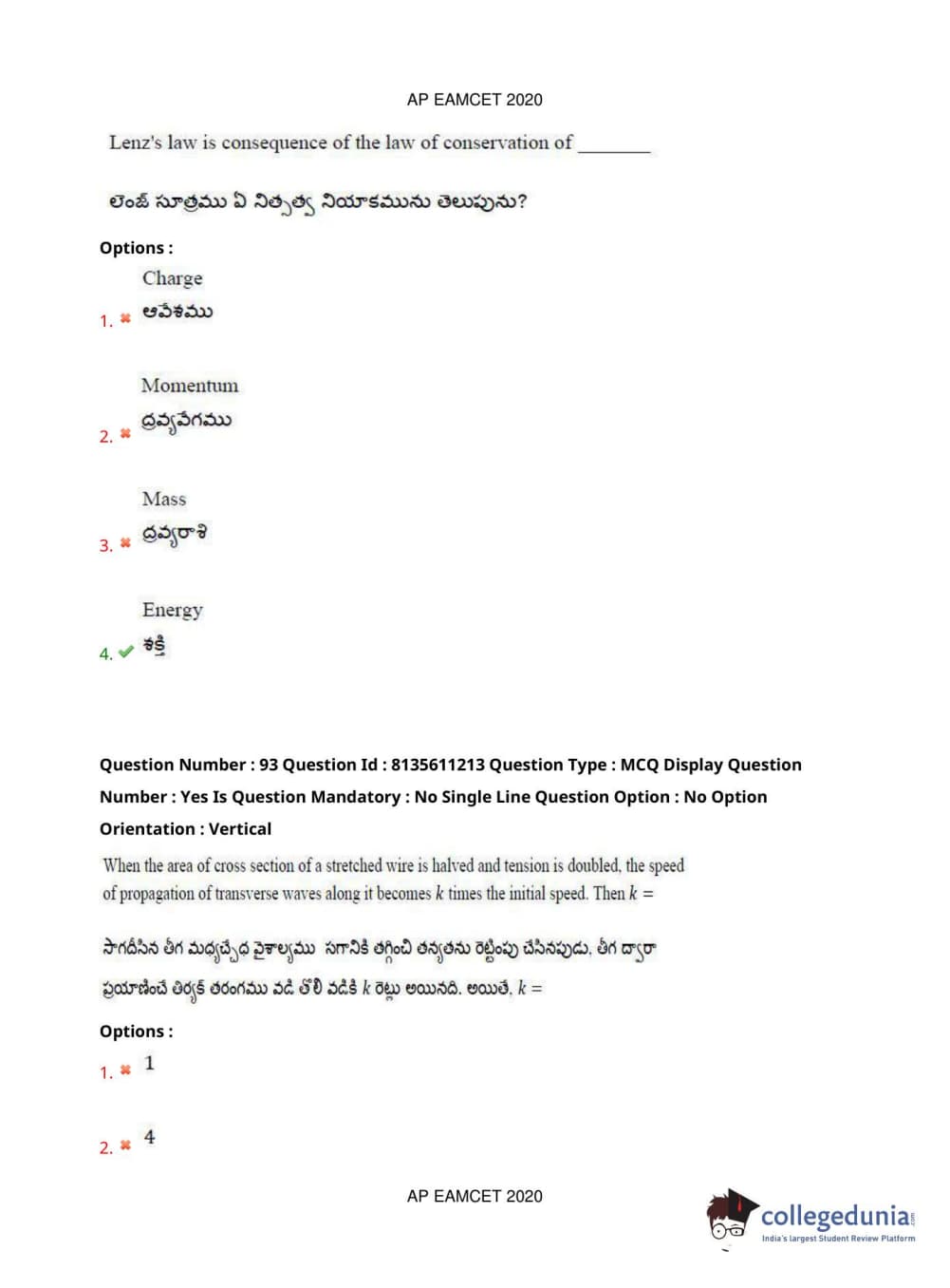 AP EAPCET 2020 Engineering Question Paper with Answer Key PDFs Afternoon Session