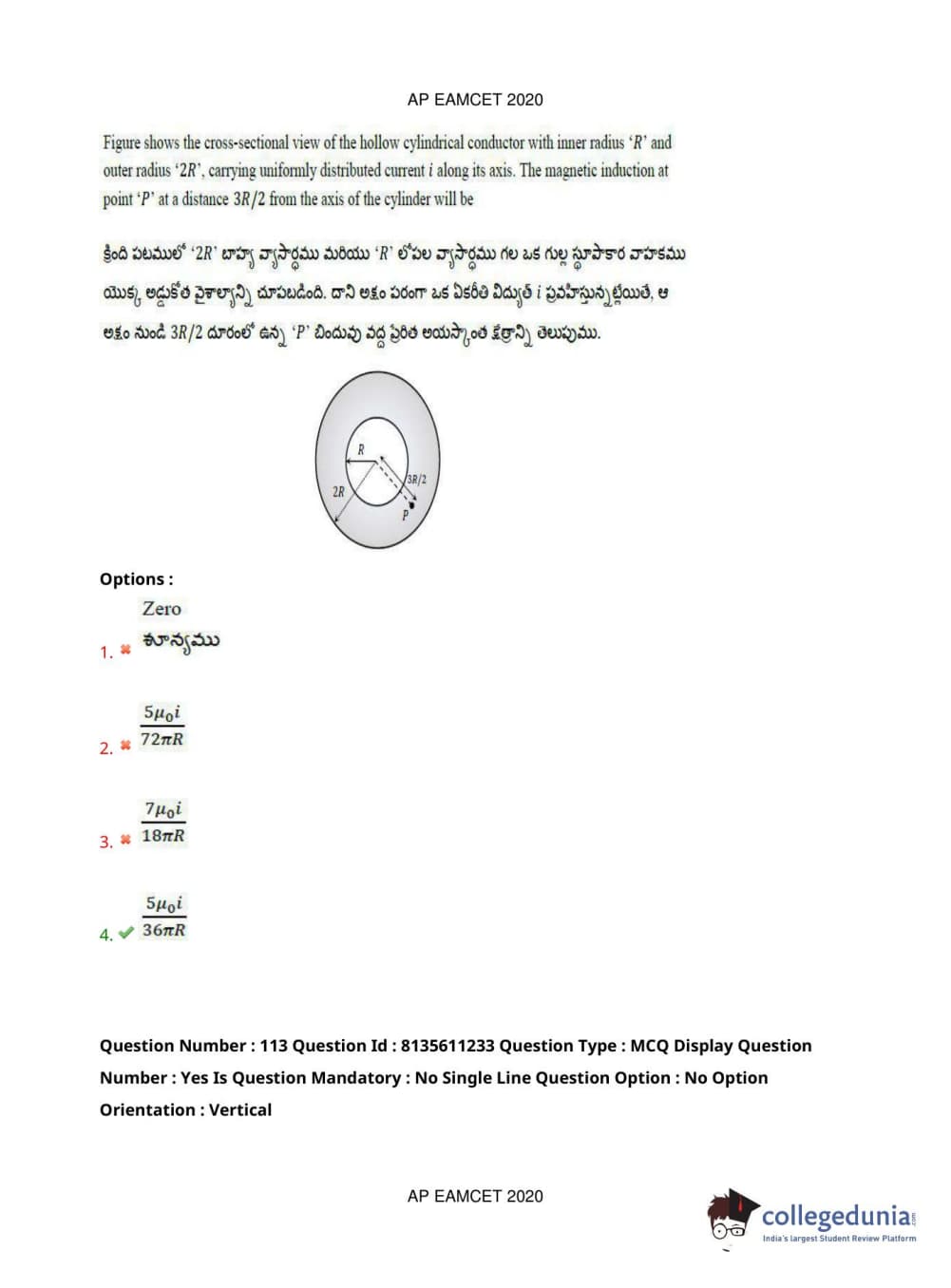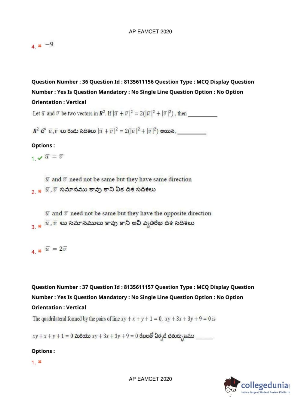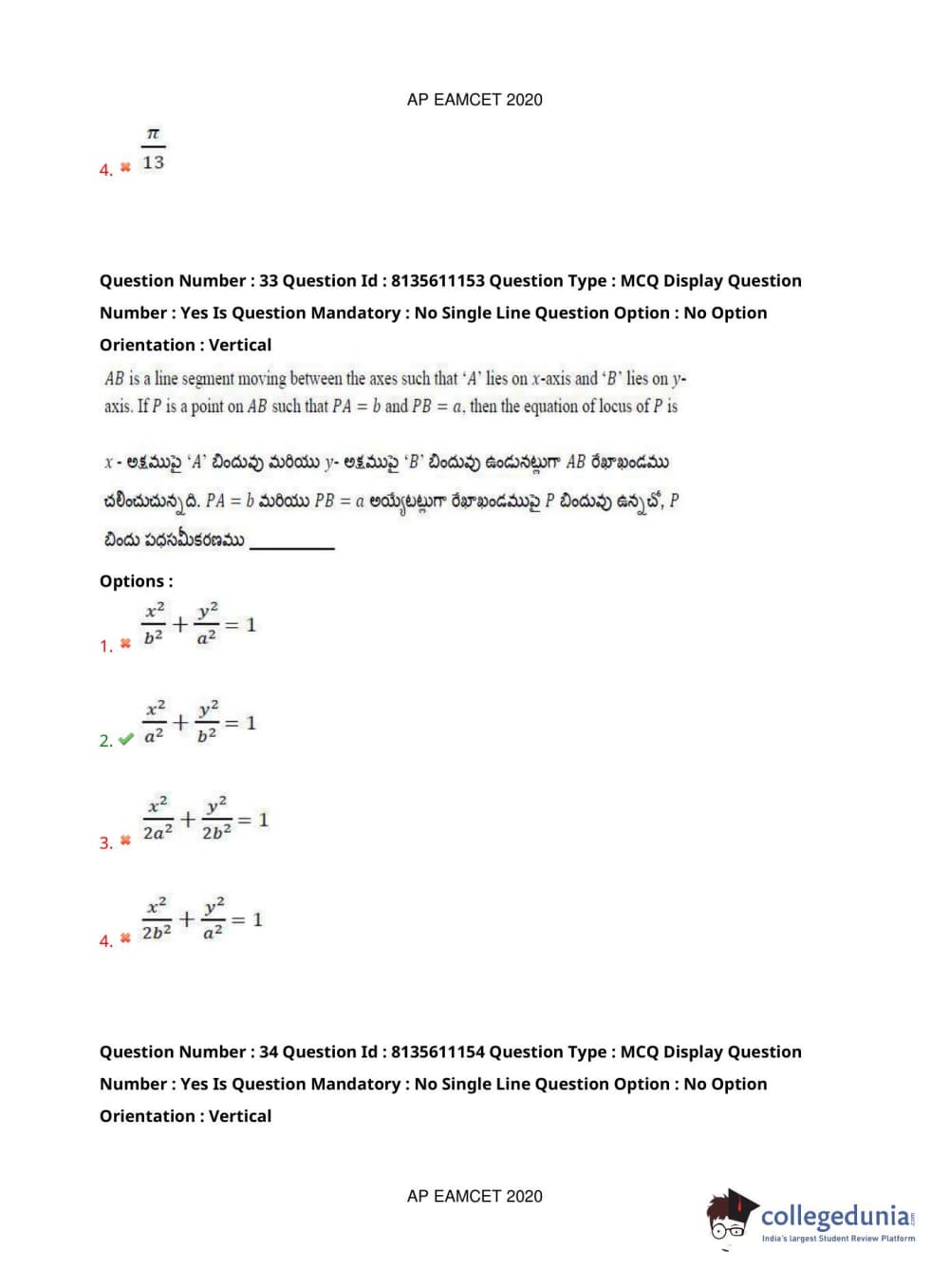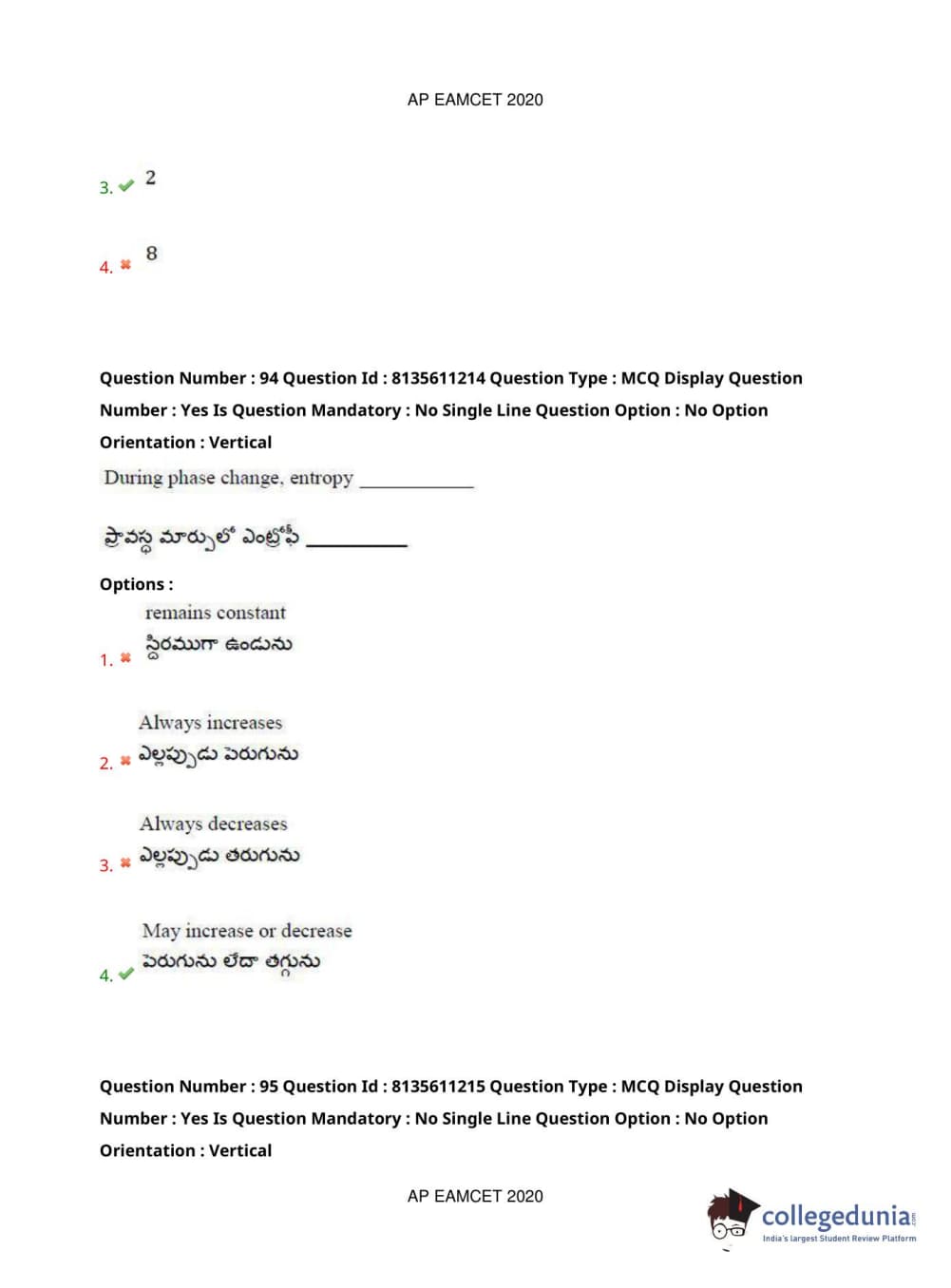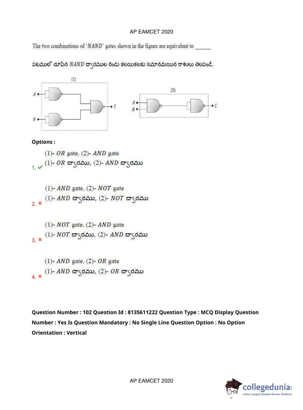 AP EAPCET 2020 Engineering Question Paper with Answer Key PDFs Afternoon Session