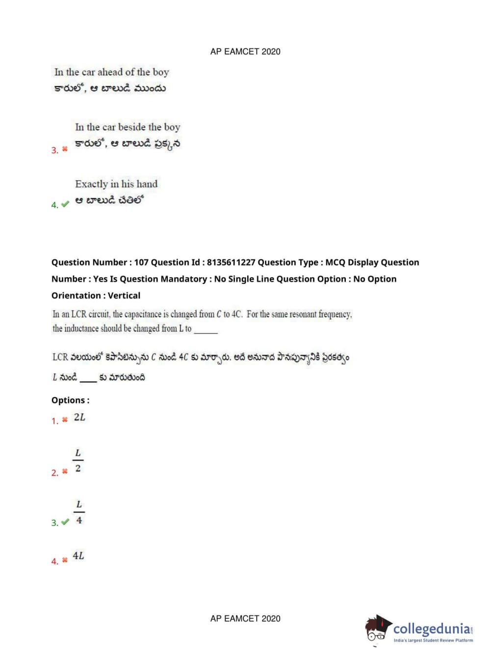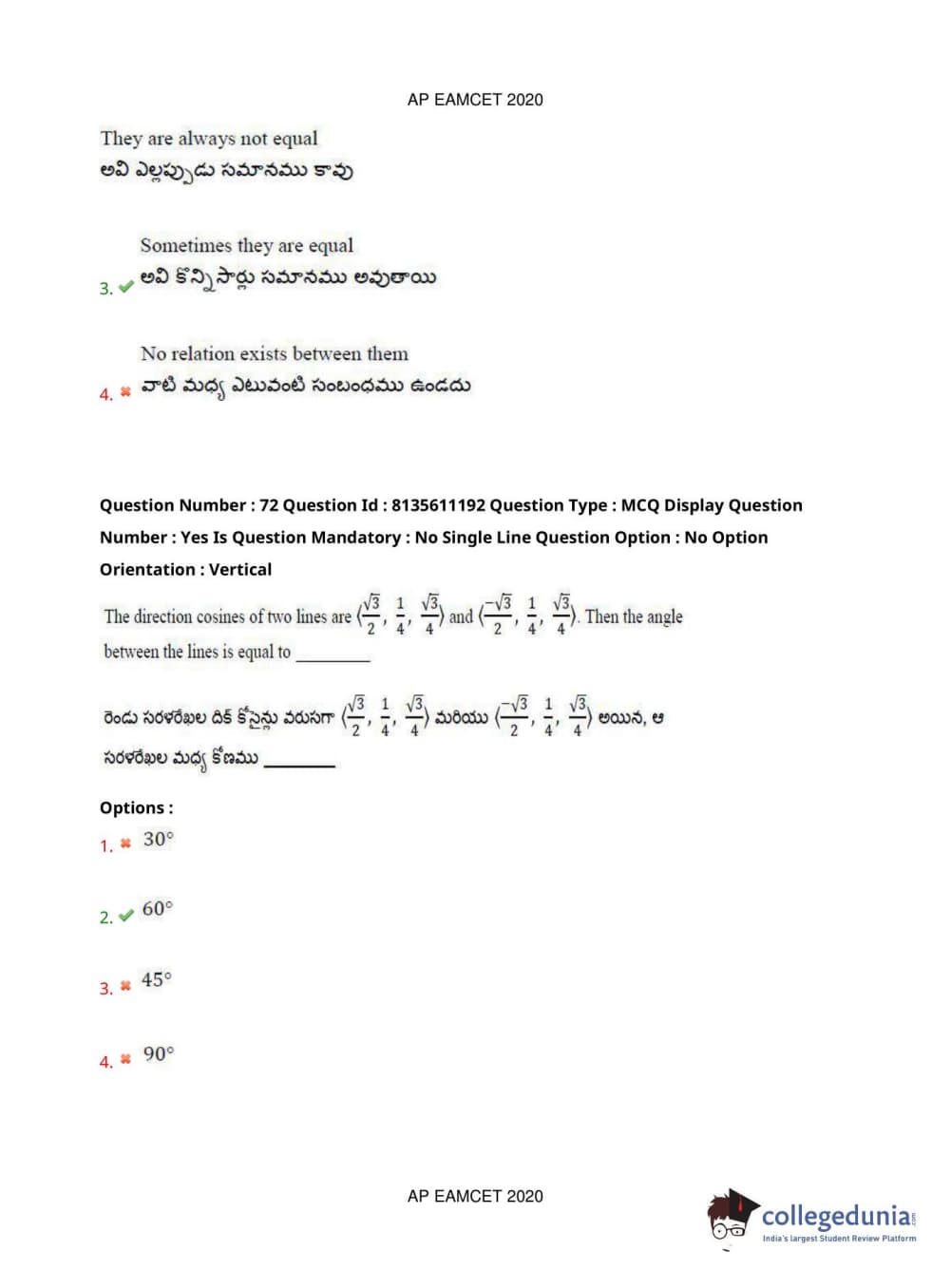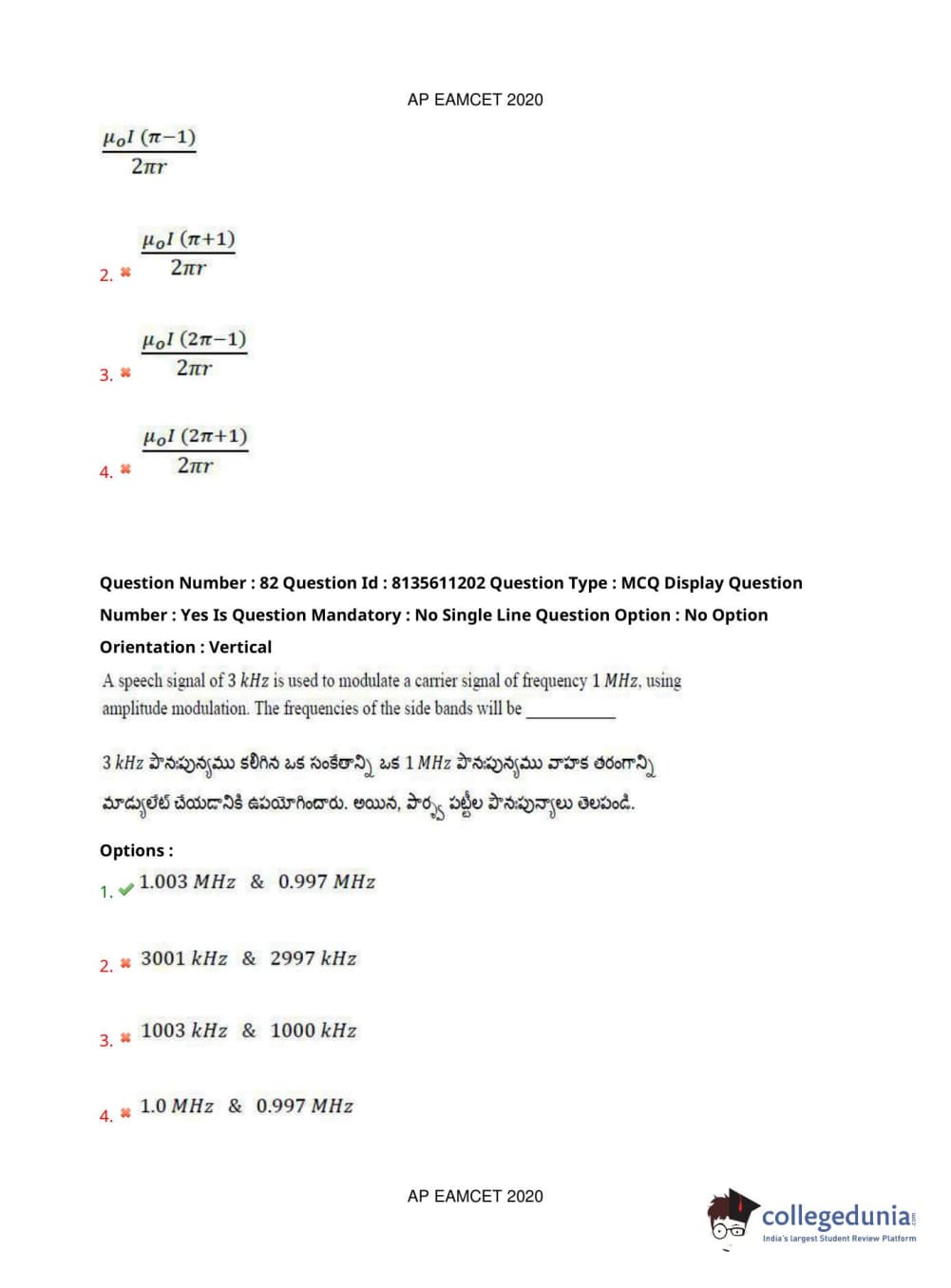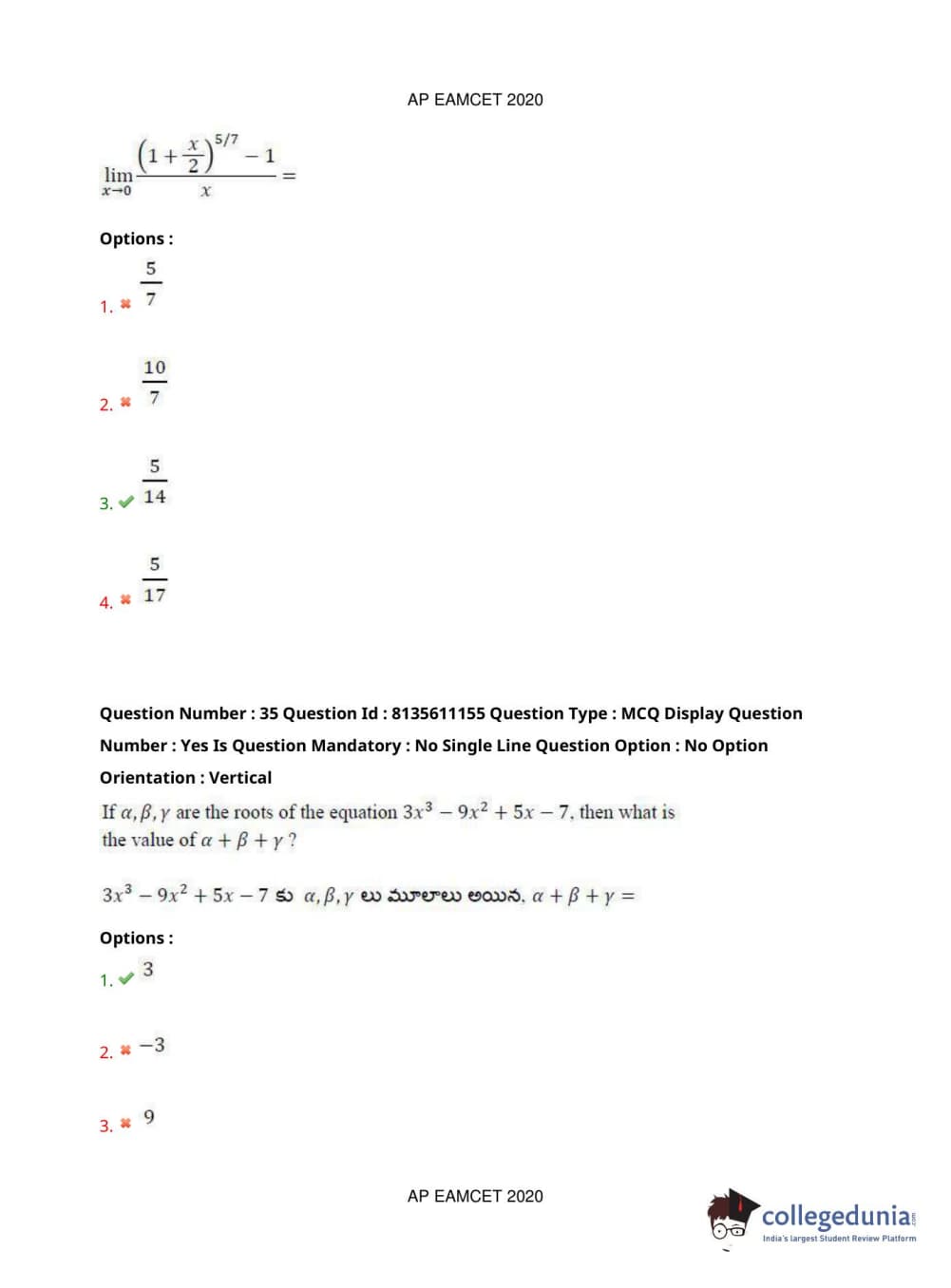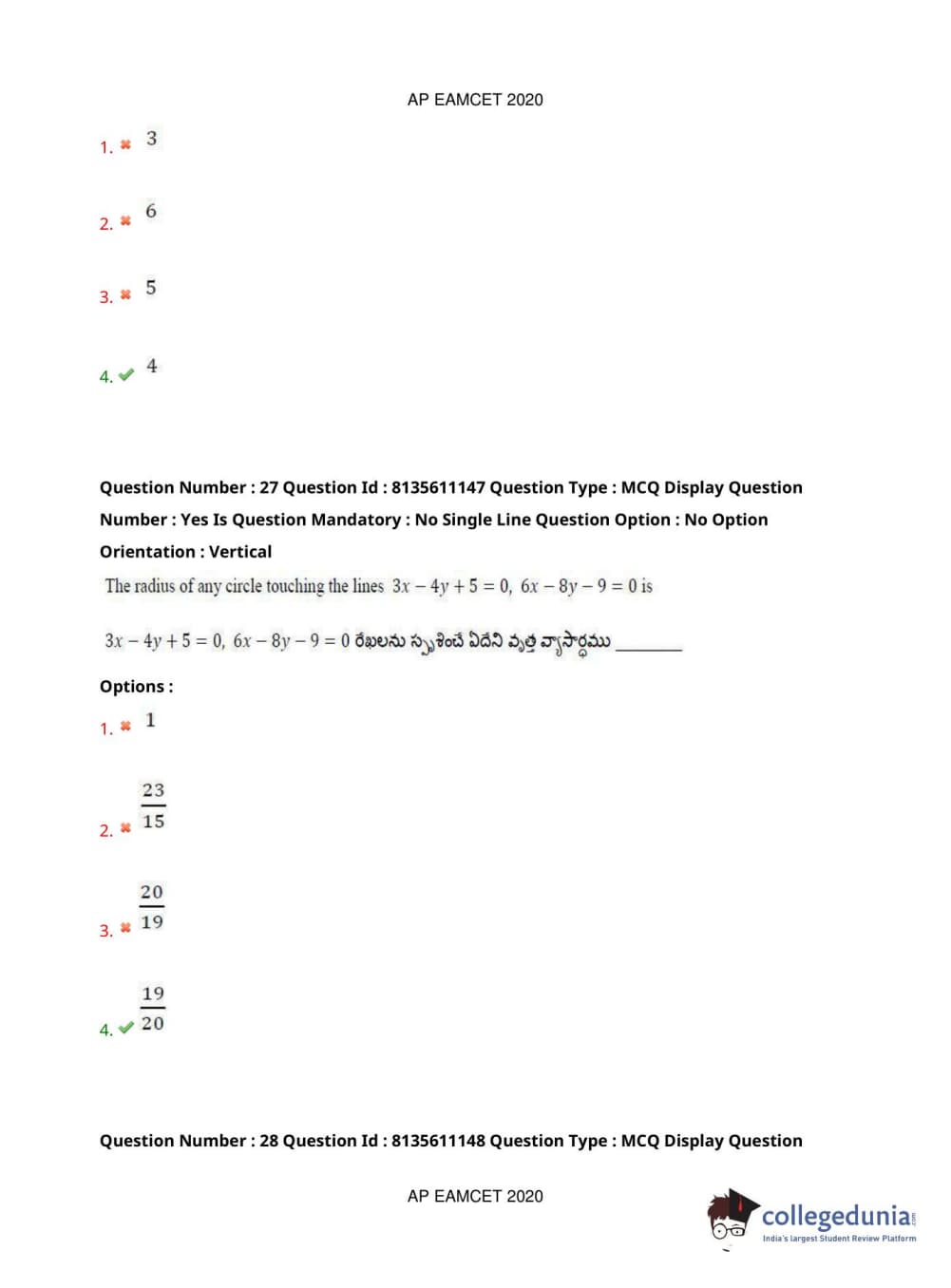 AP EAPCET 2020 Engineering Question Paper with Answer Key PDFs Afternoon Session