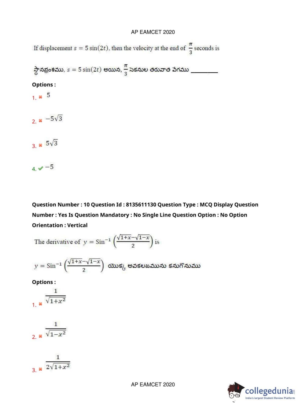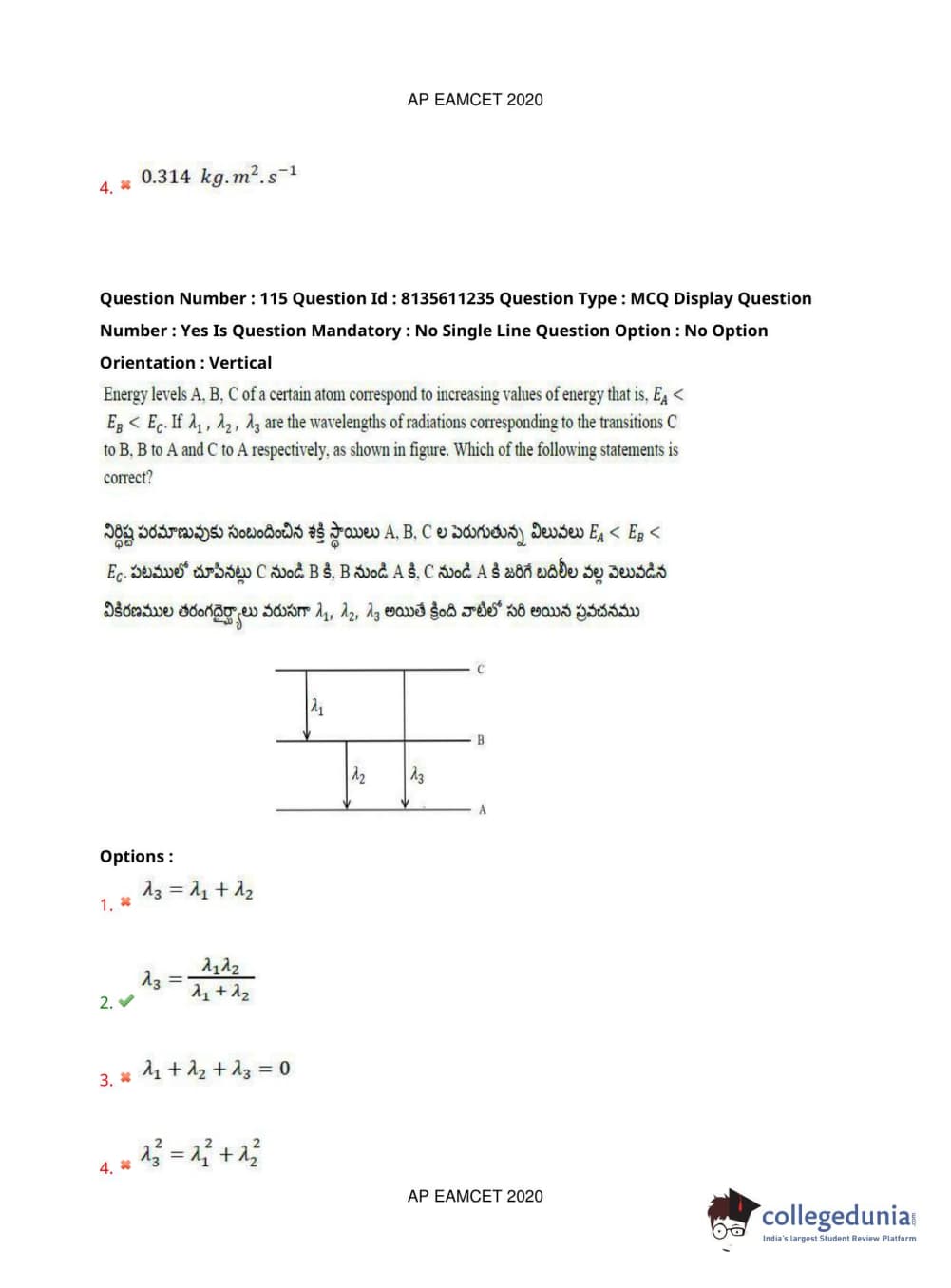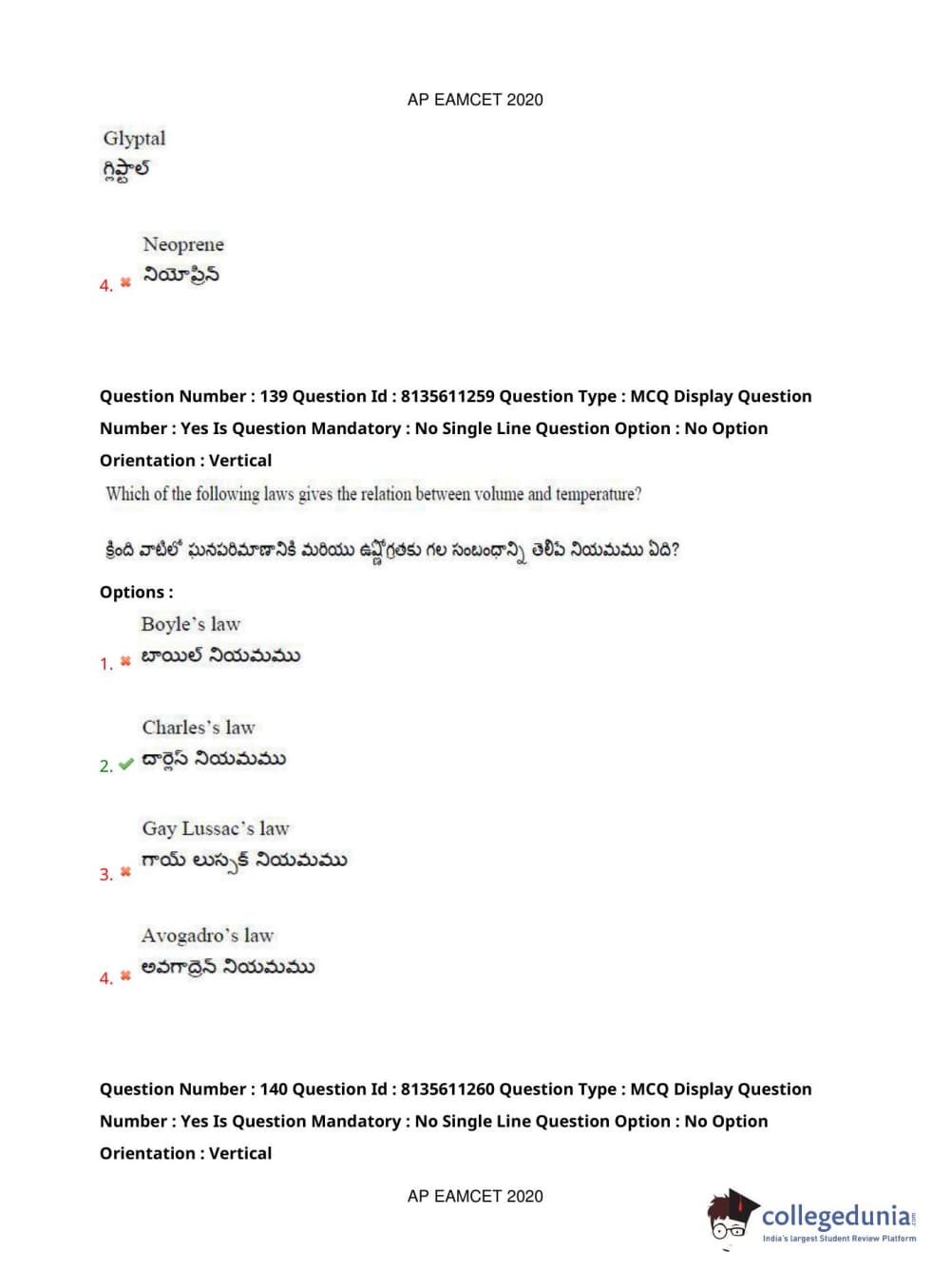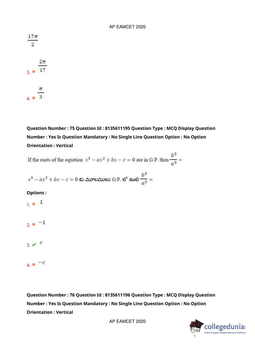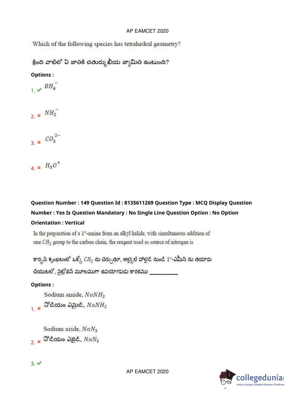 AP EAPCET 2020 Engineering Question Paper with Answer Key PDFs Afternoon Session