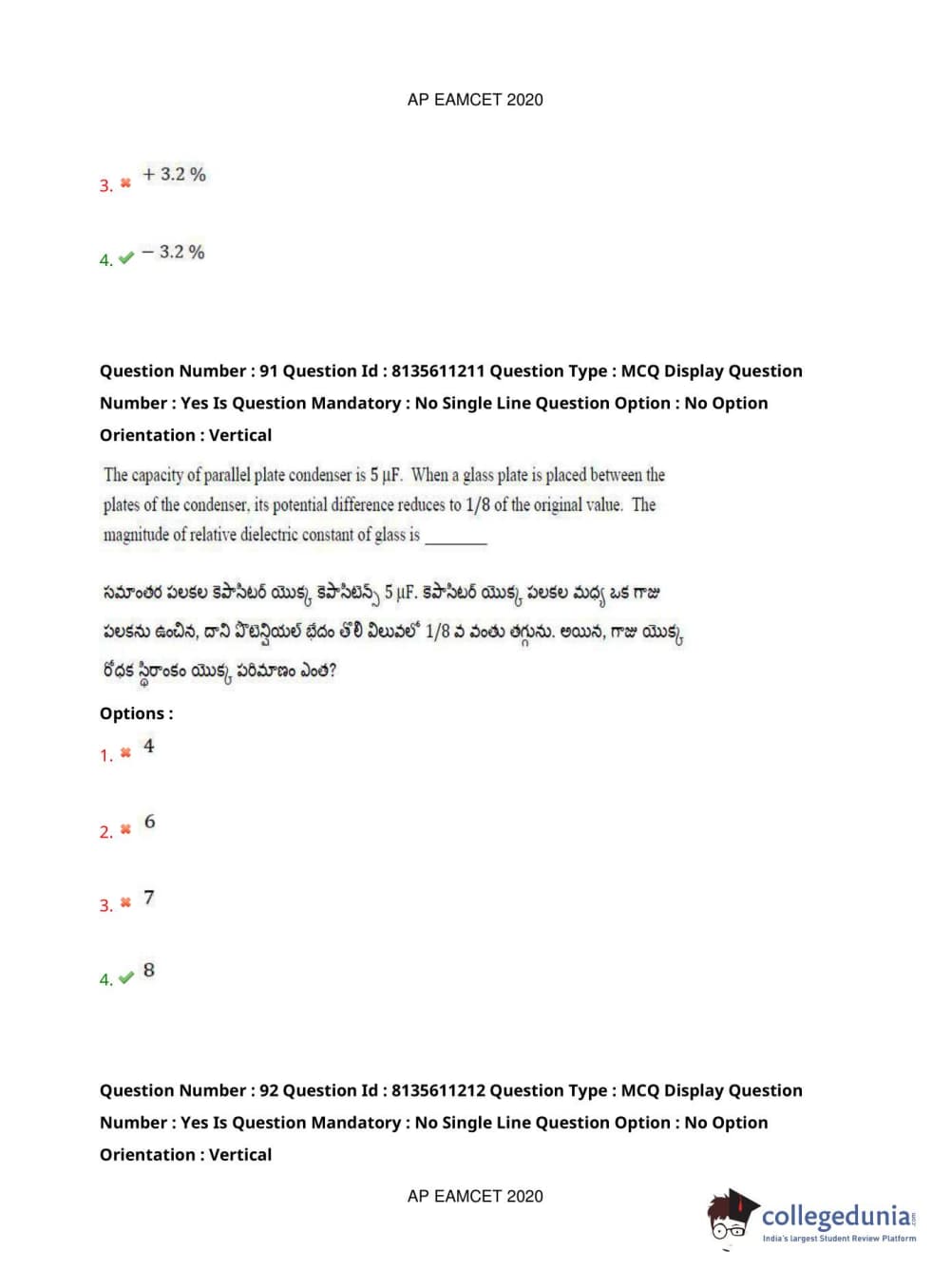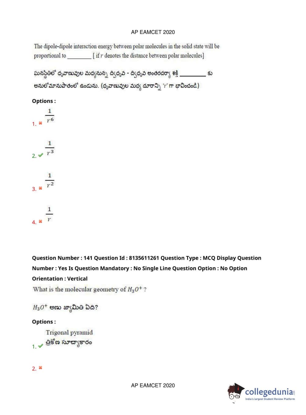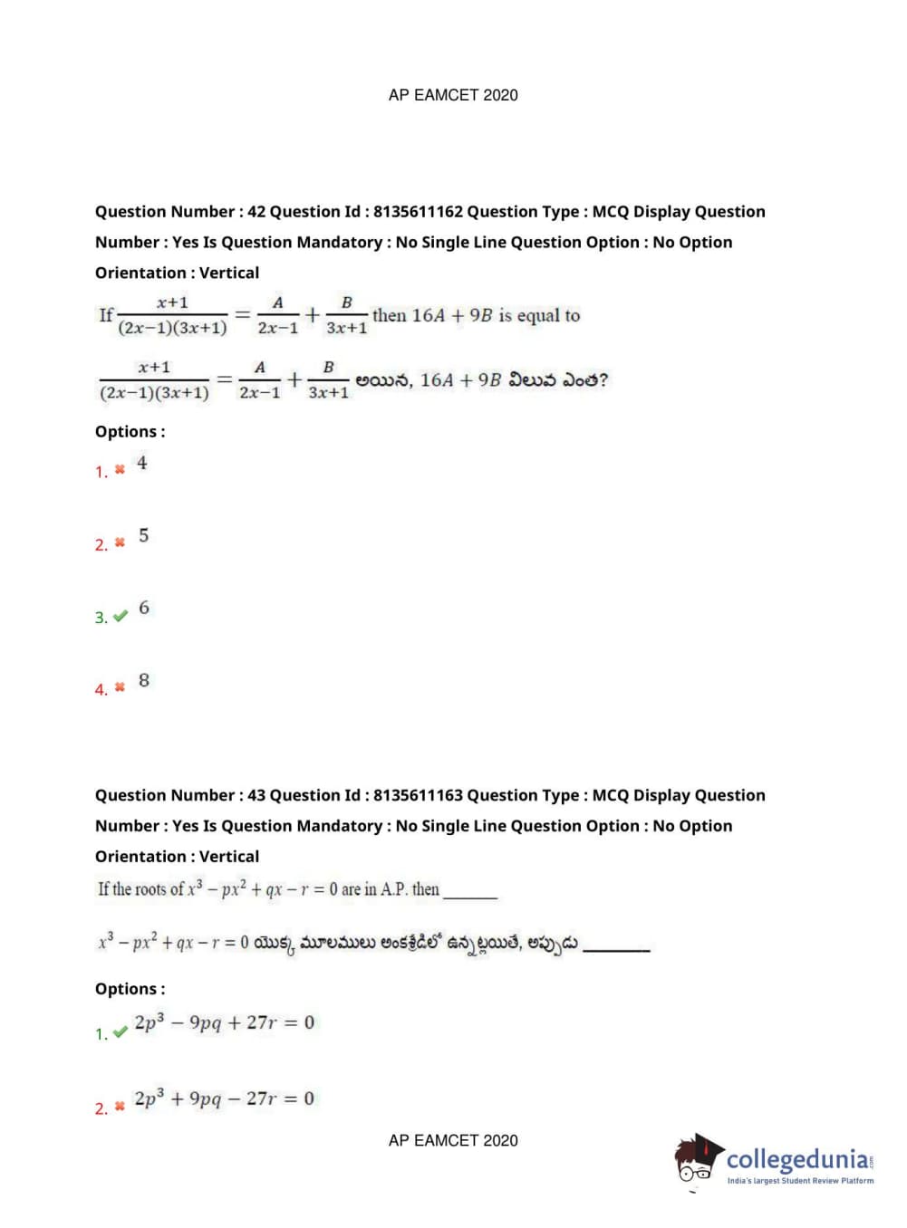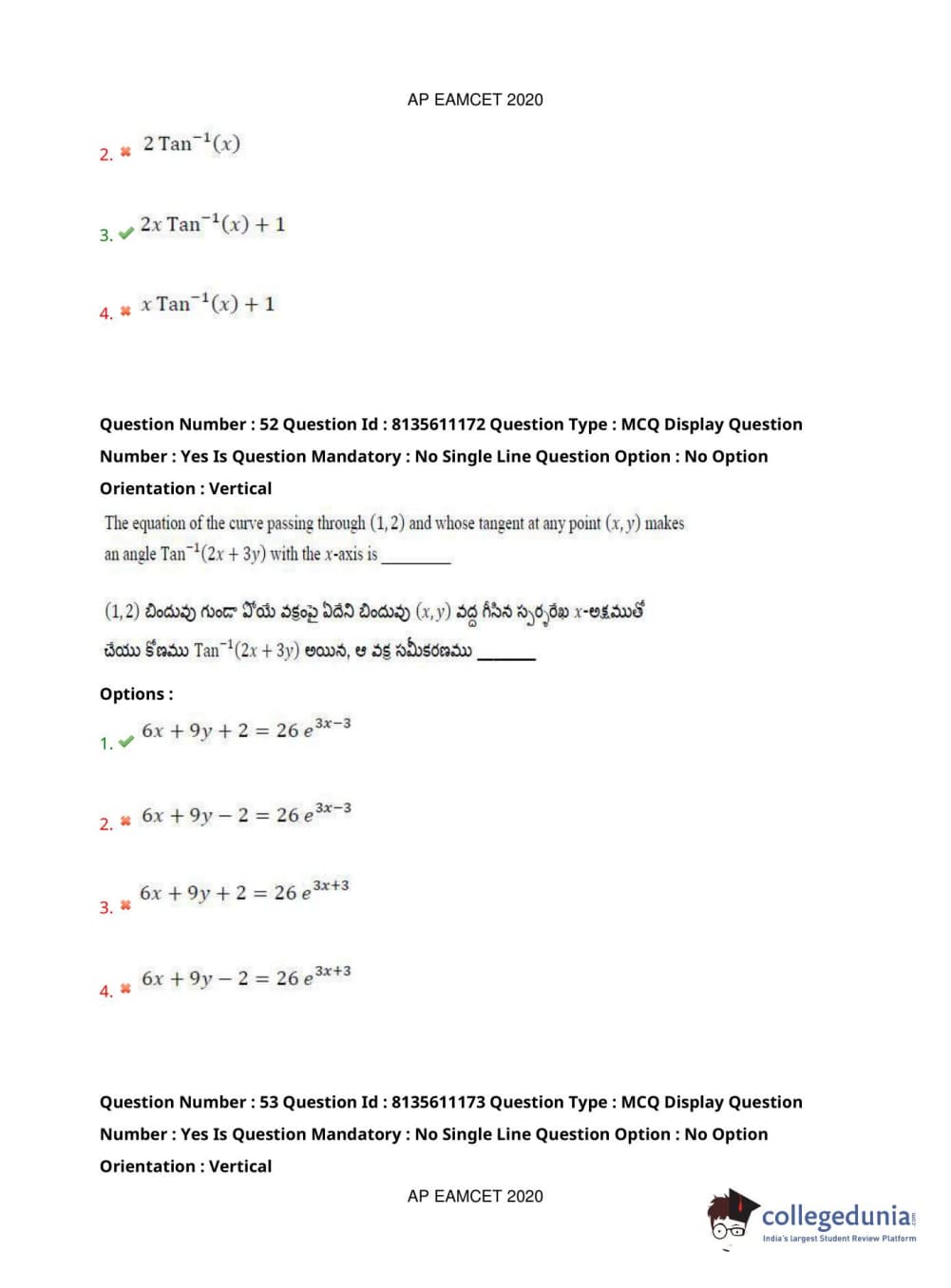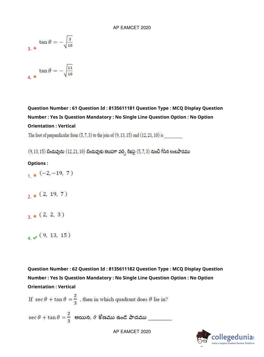AP EAPCET 2020 Engineering Question Paper with Answer Key PDFs Afternoon Session
