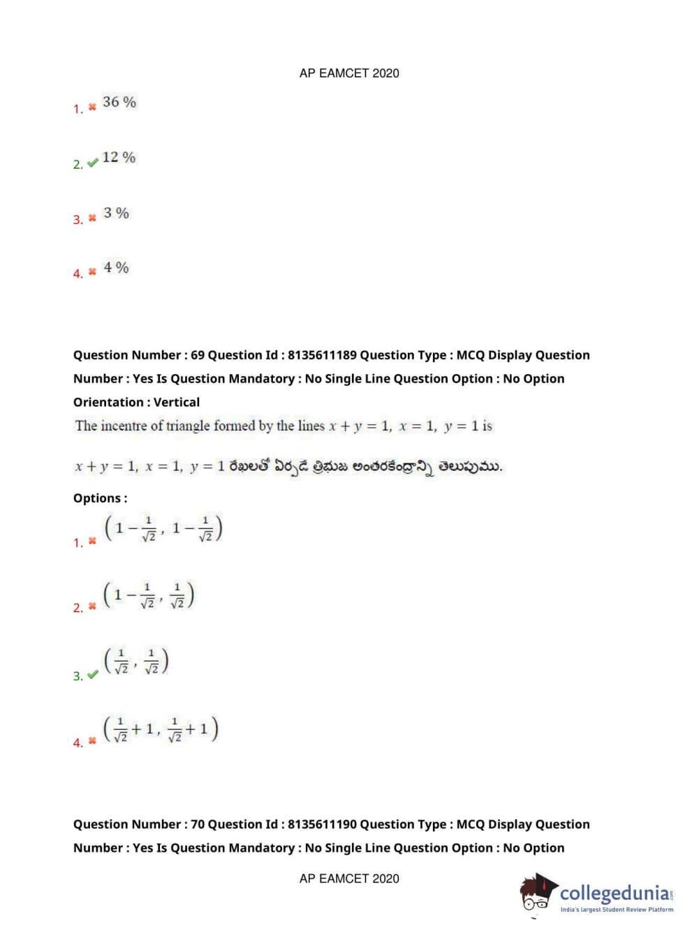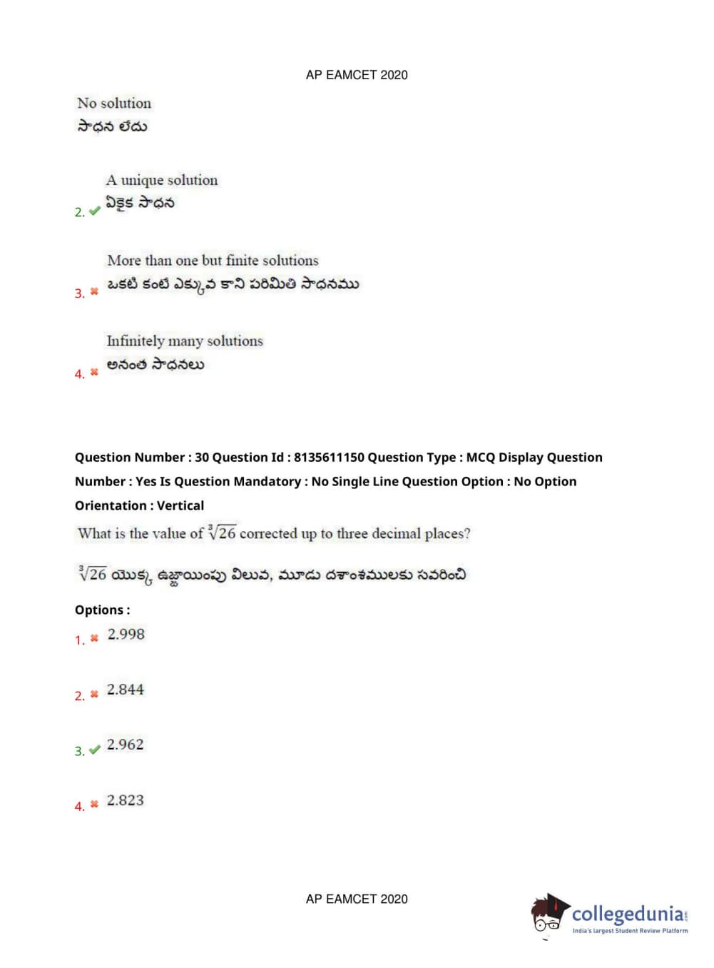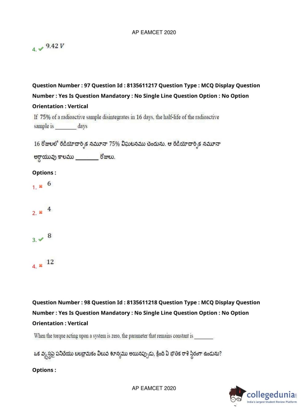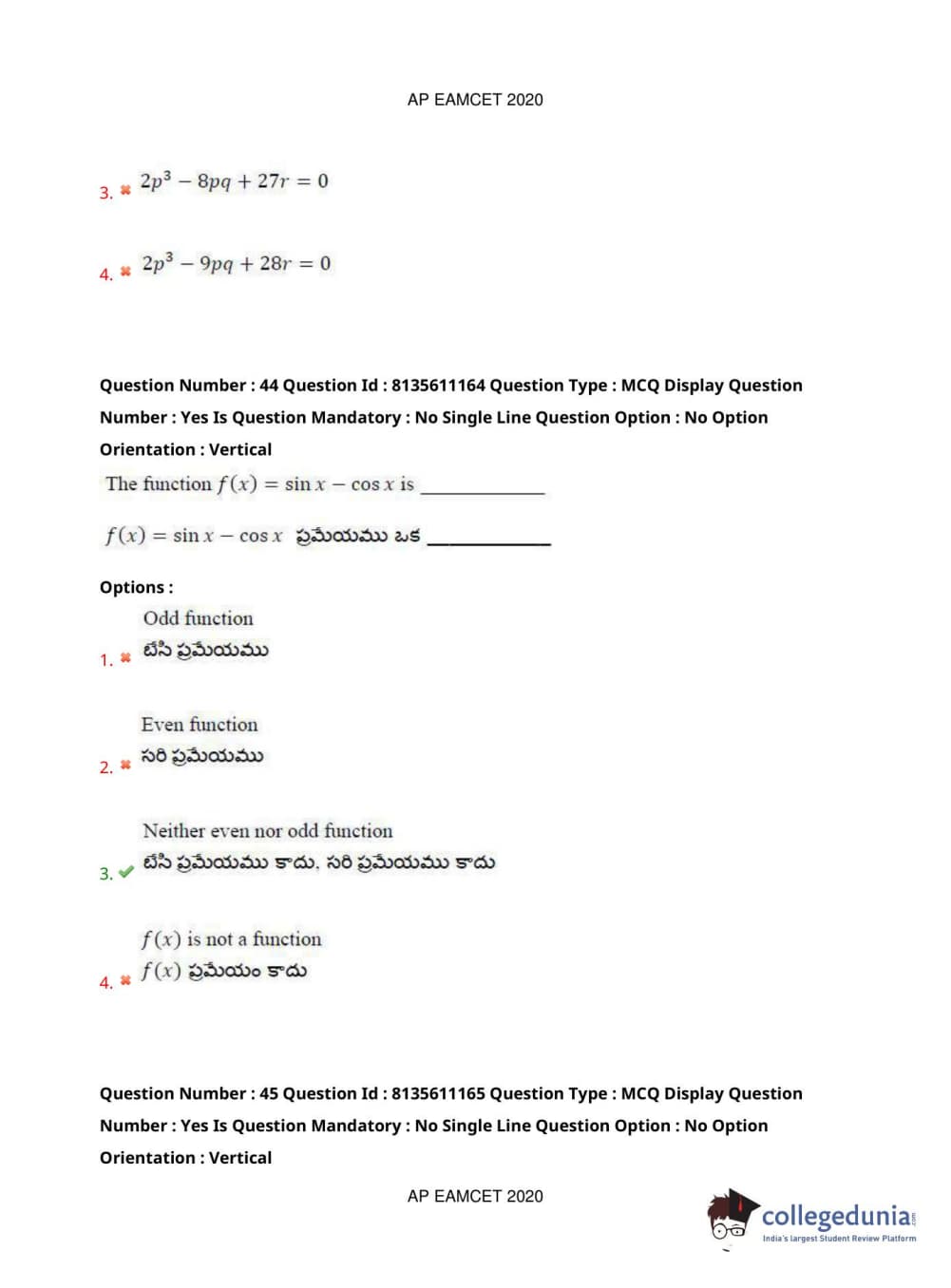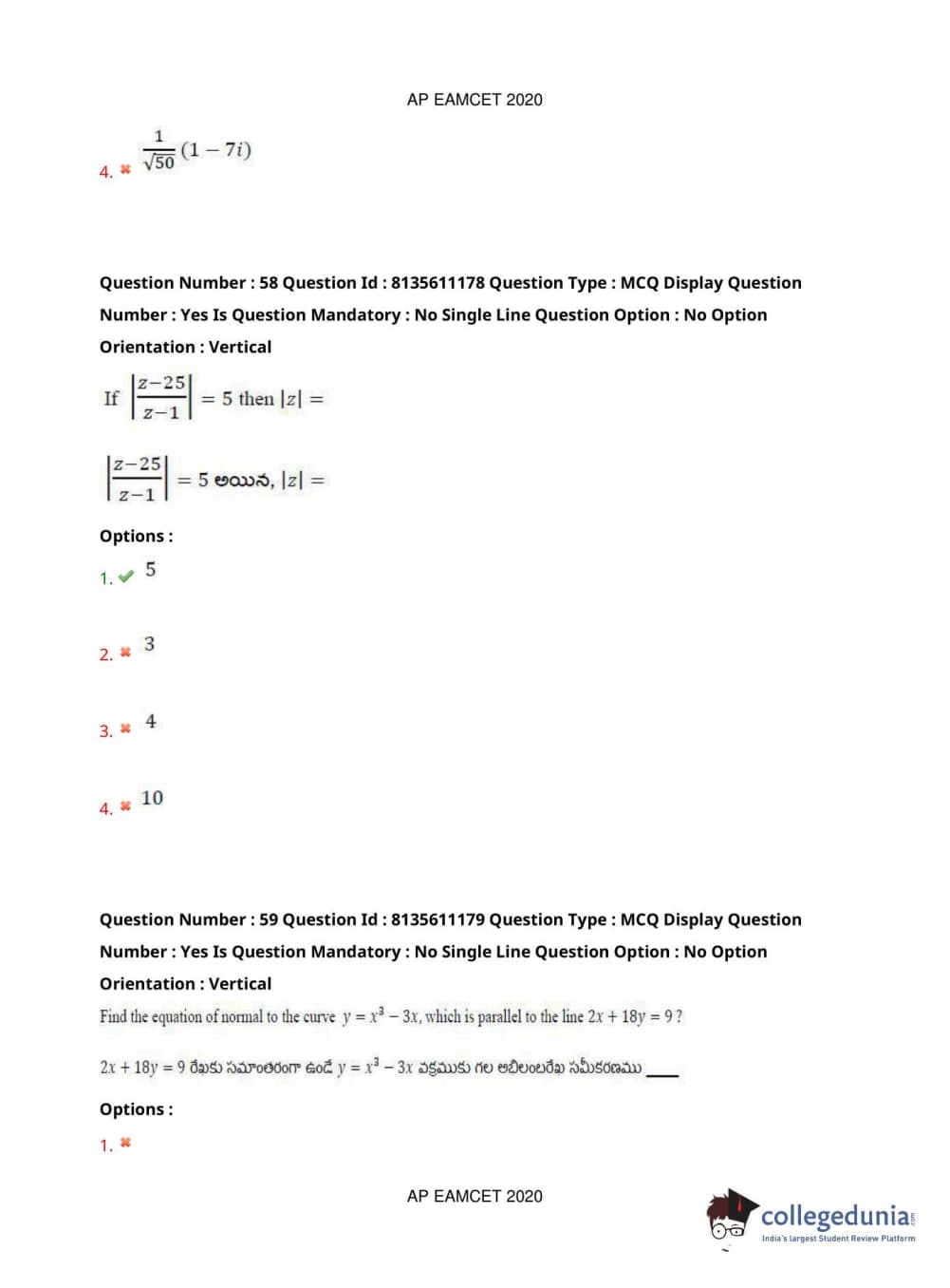 AP EAPCET 2020 Engineering Question Paper with Answer Key PDFs Afternoon Session