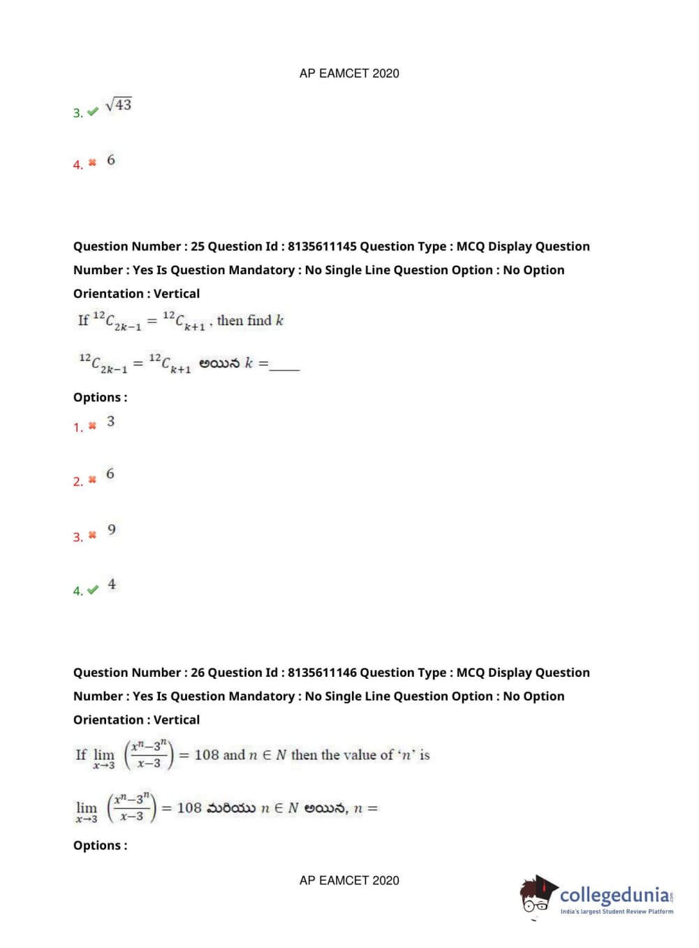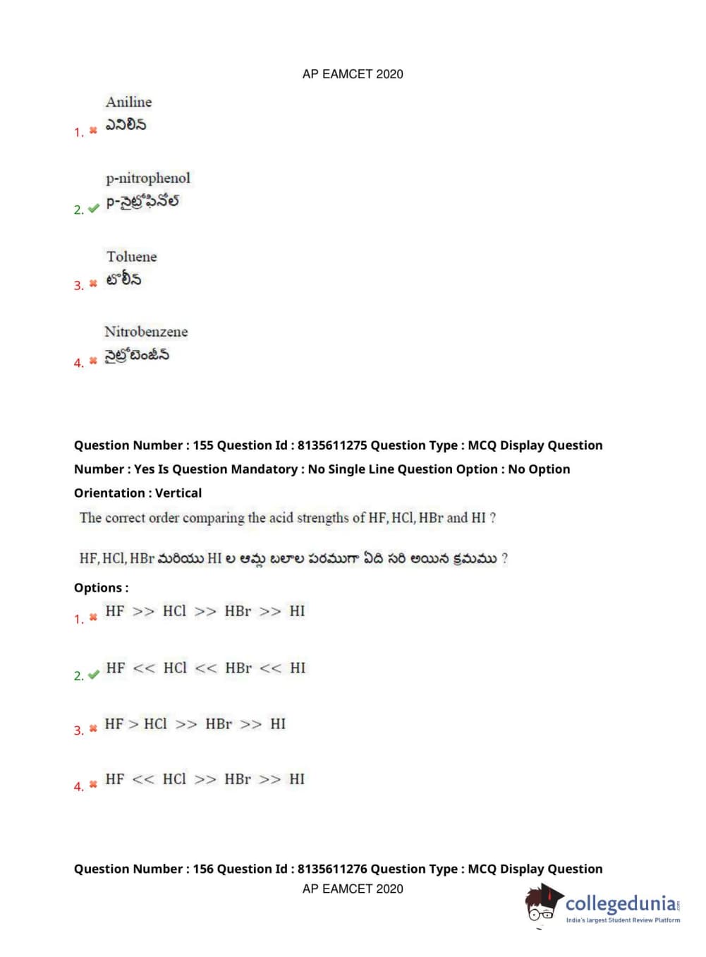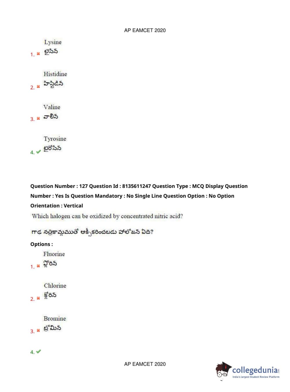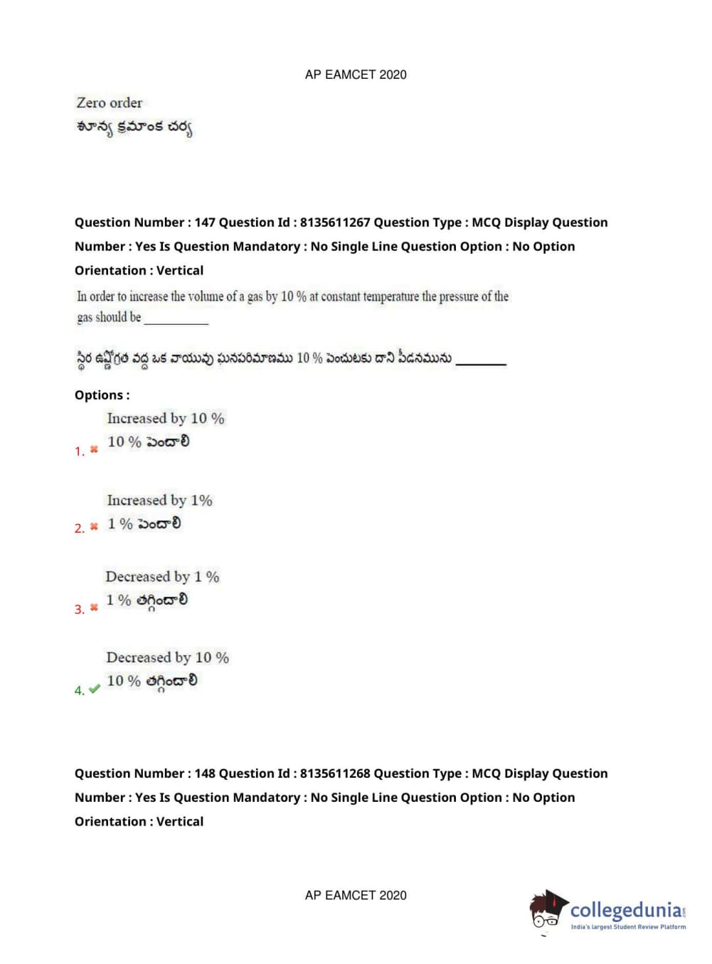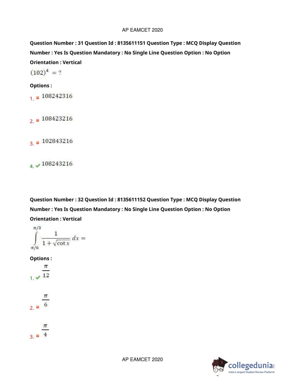AP EAPCET 2020 Engineering Question Paper with Answer Key PDFs Afternoon Session