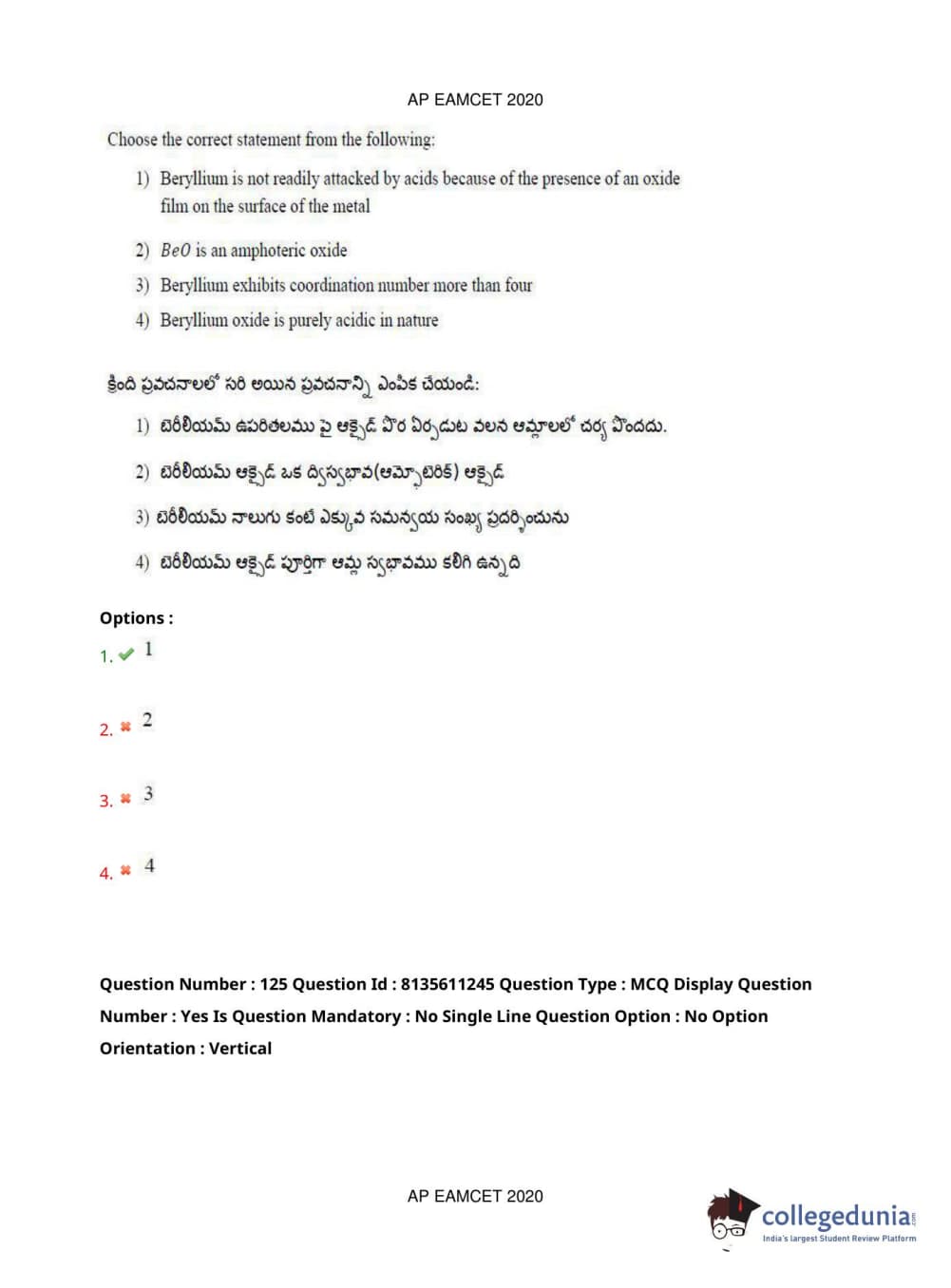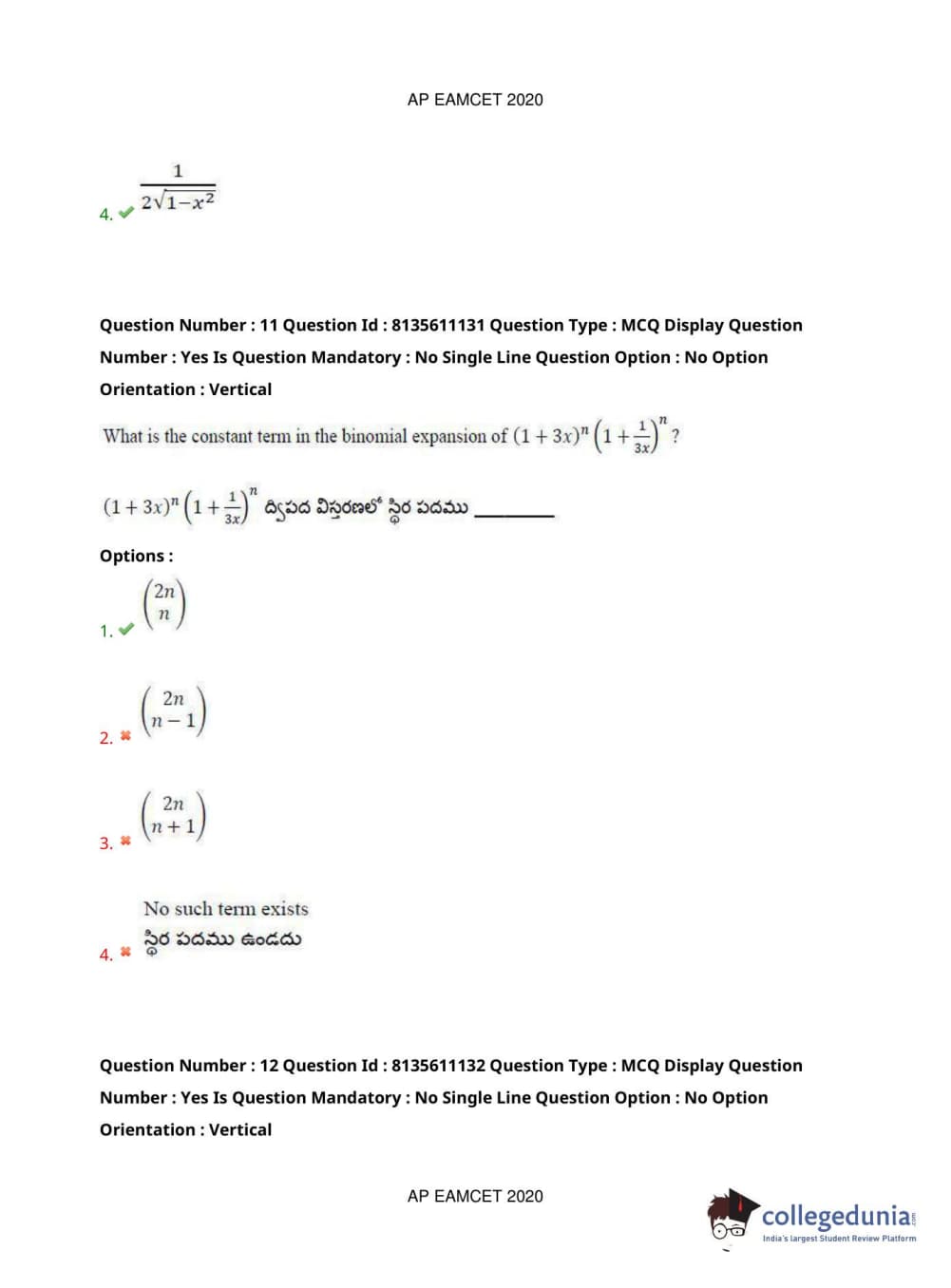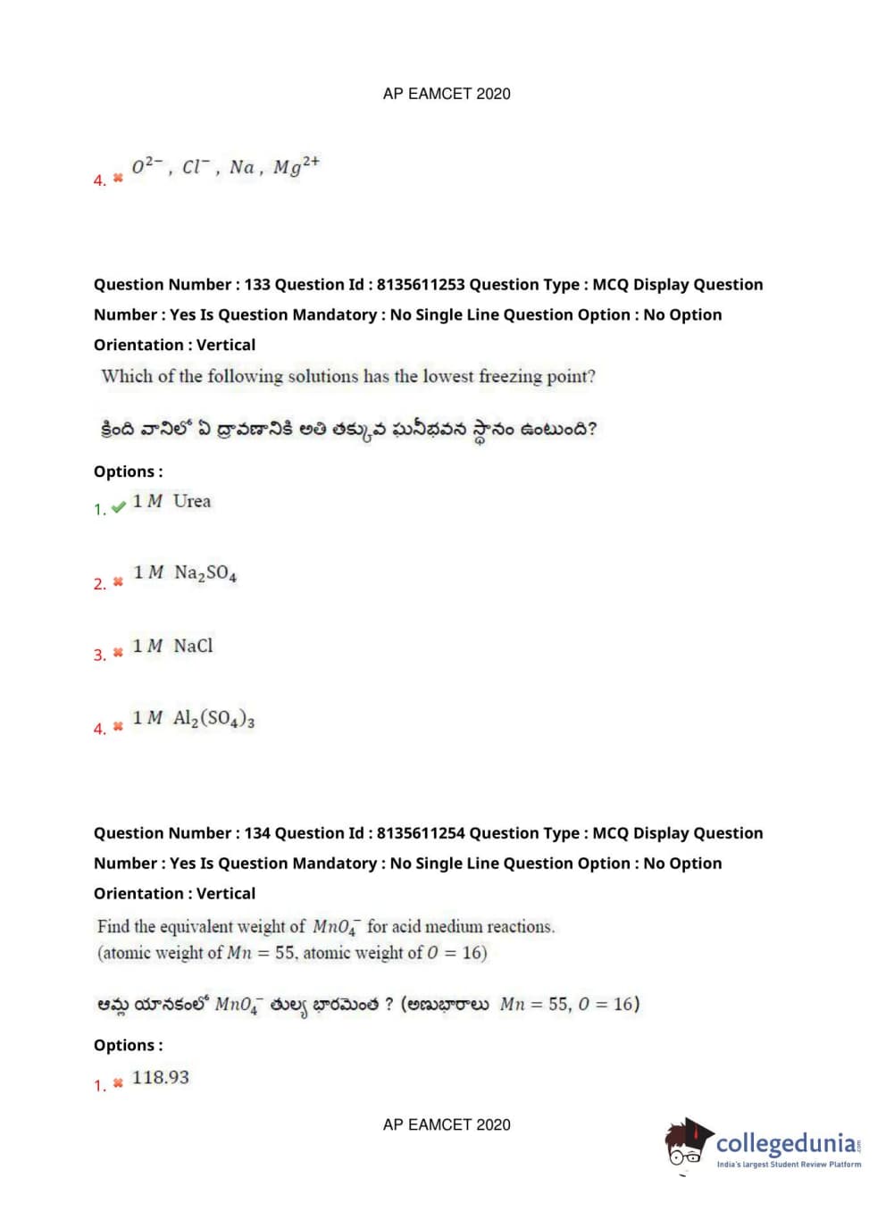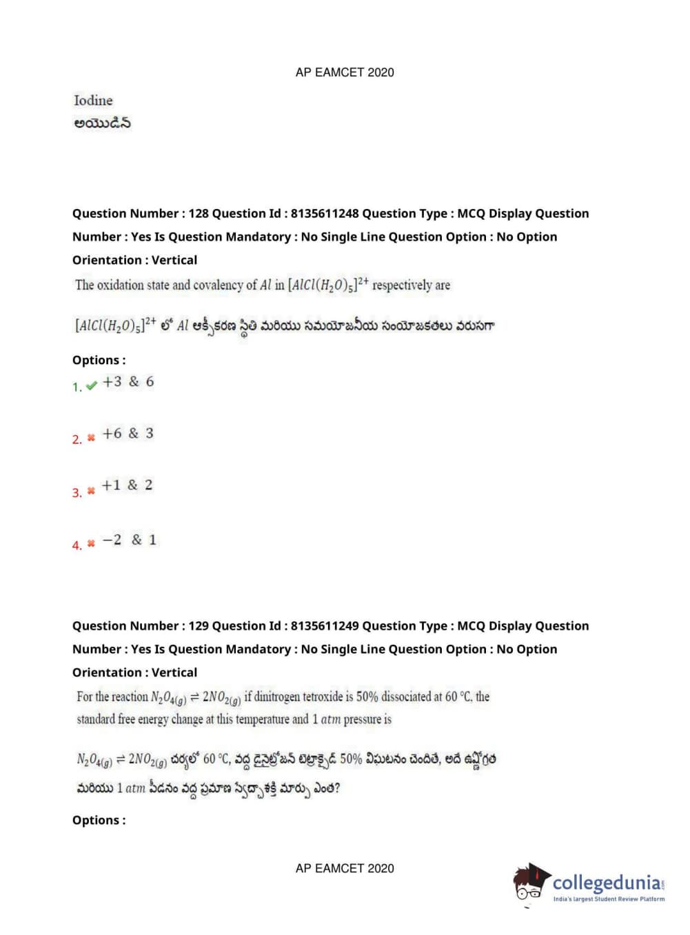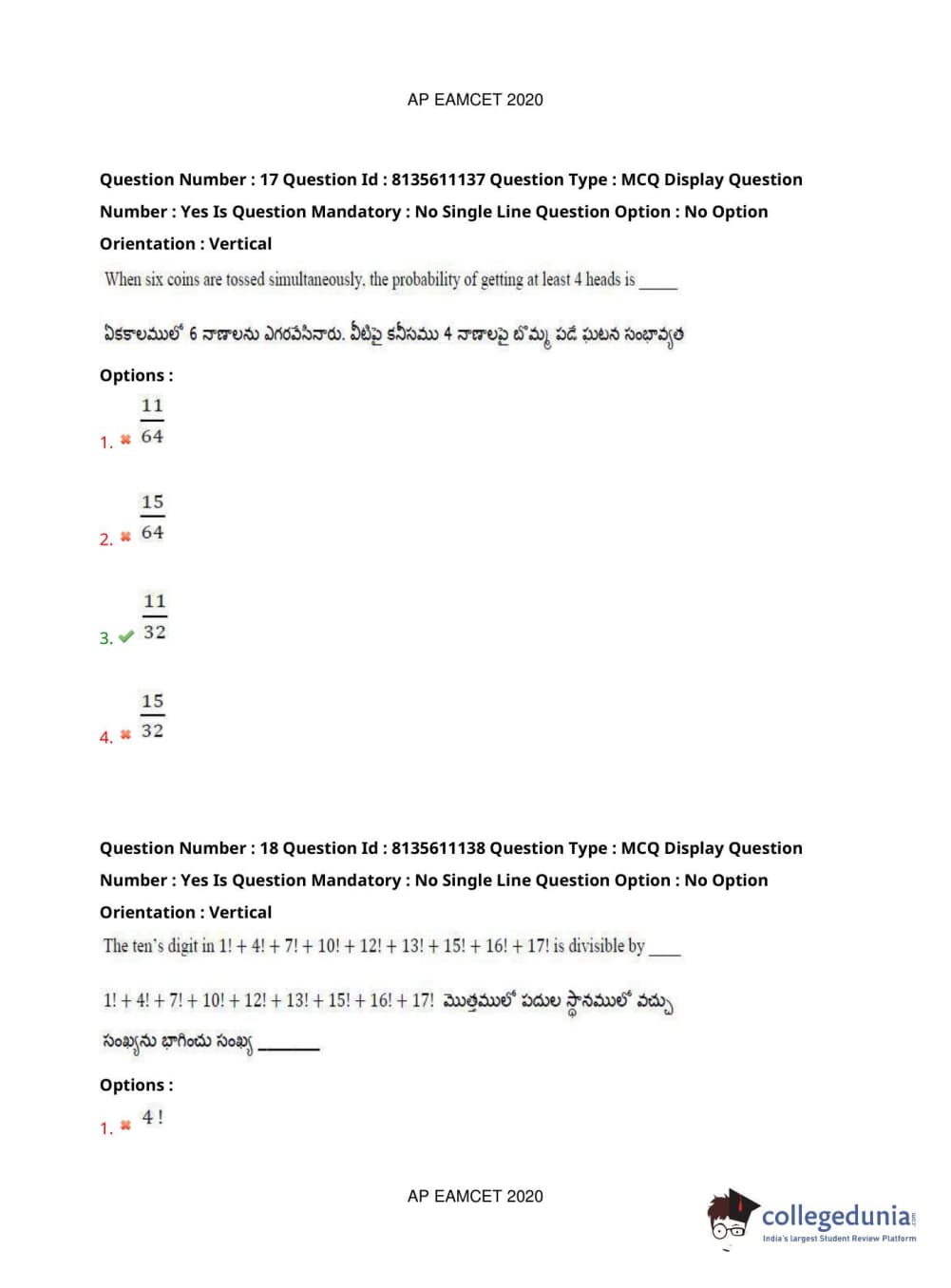 AP EAPCET 2020 Engineering Question Paper with Answer Key PDFs Afternoon Session
