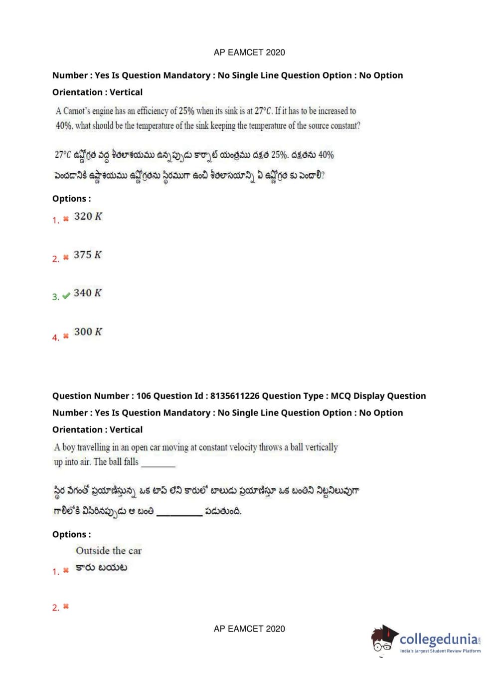 | AP EAPCET 2020 Engineering Question Paper PDF | AP EAPCET 2020 Engineering Answer Key PDF |