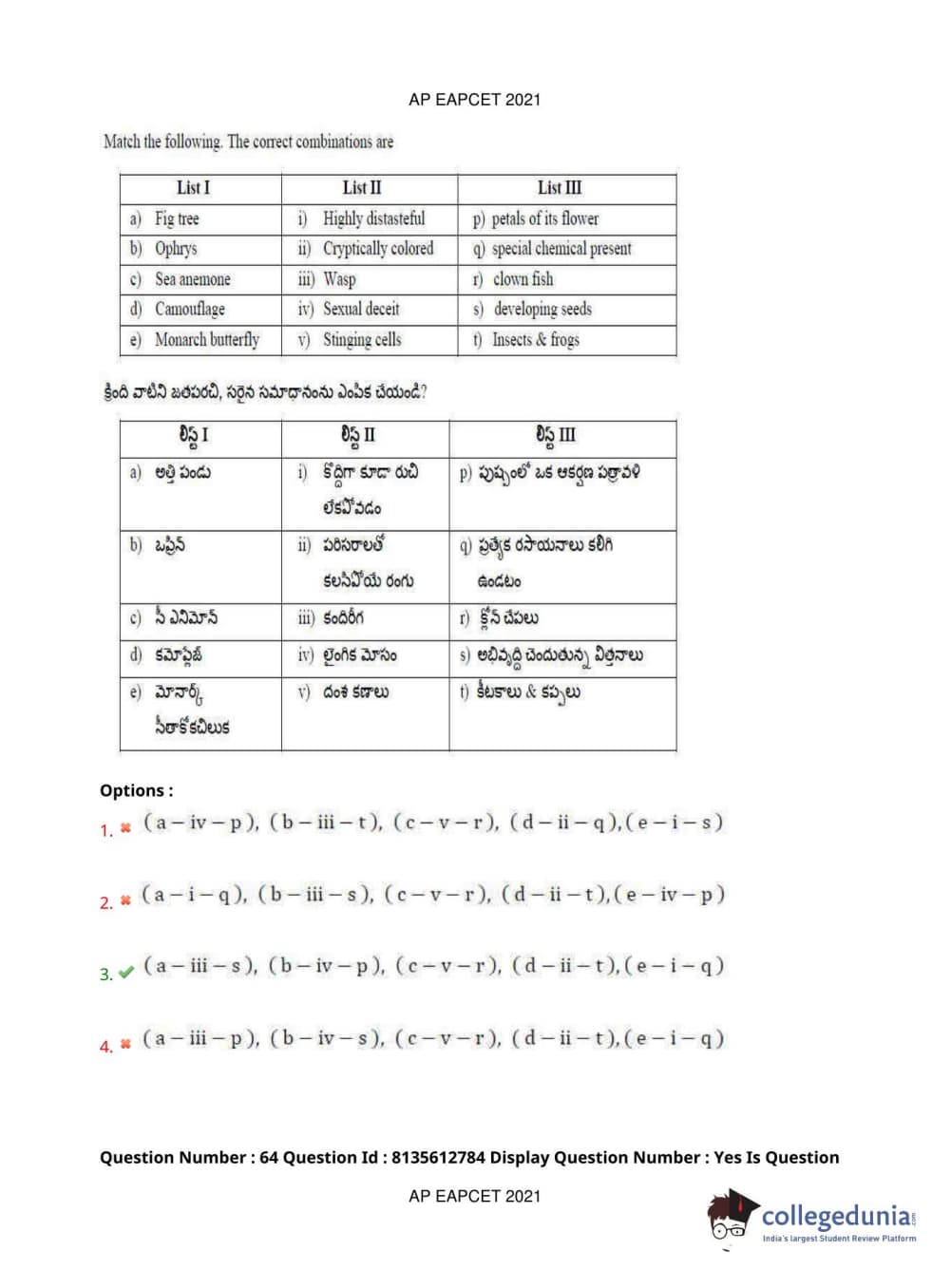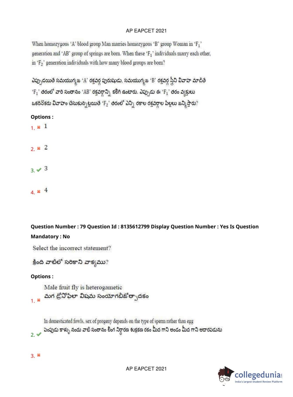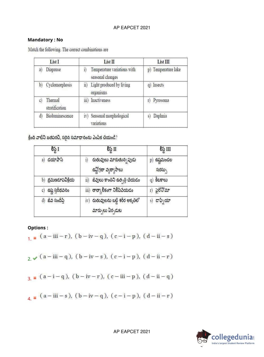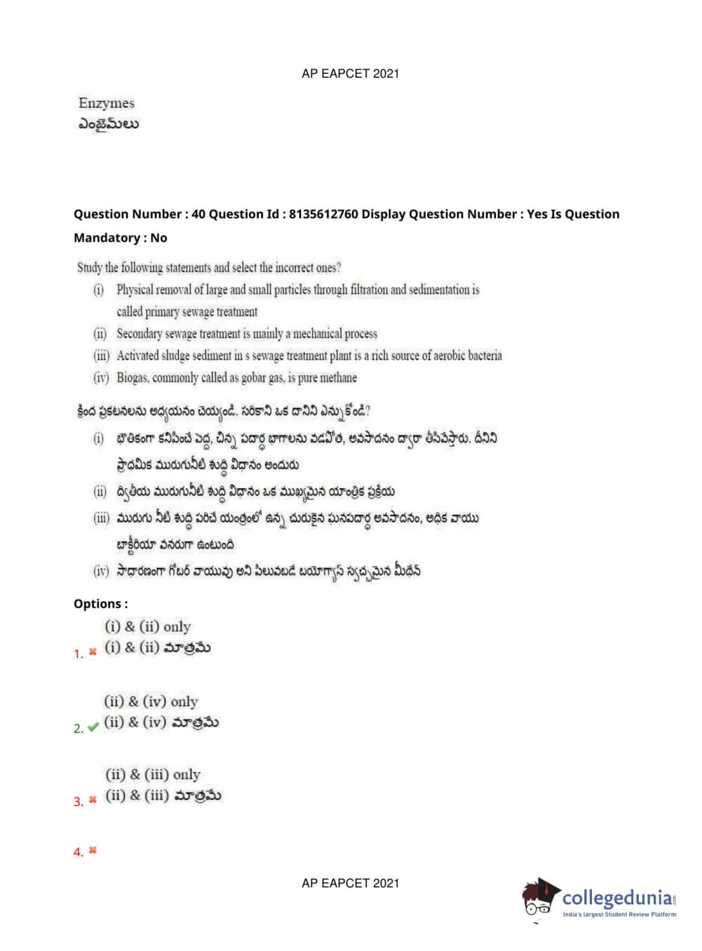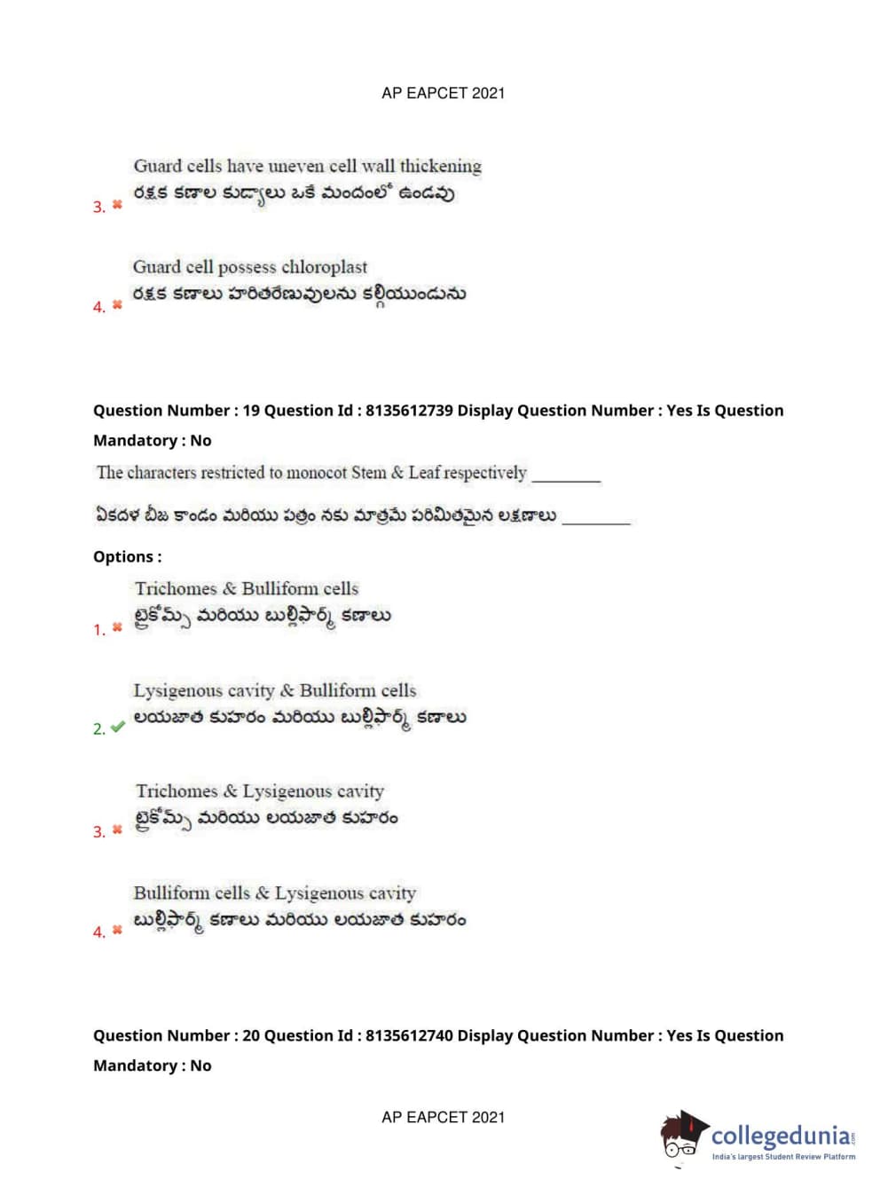AP EAPCET 2021 Agriculture and Pharmacy Question Paper with Answer Key PDFs Afternoon Session