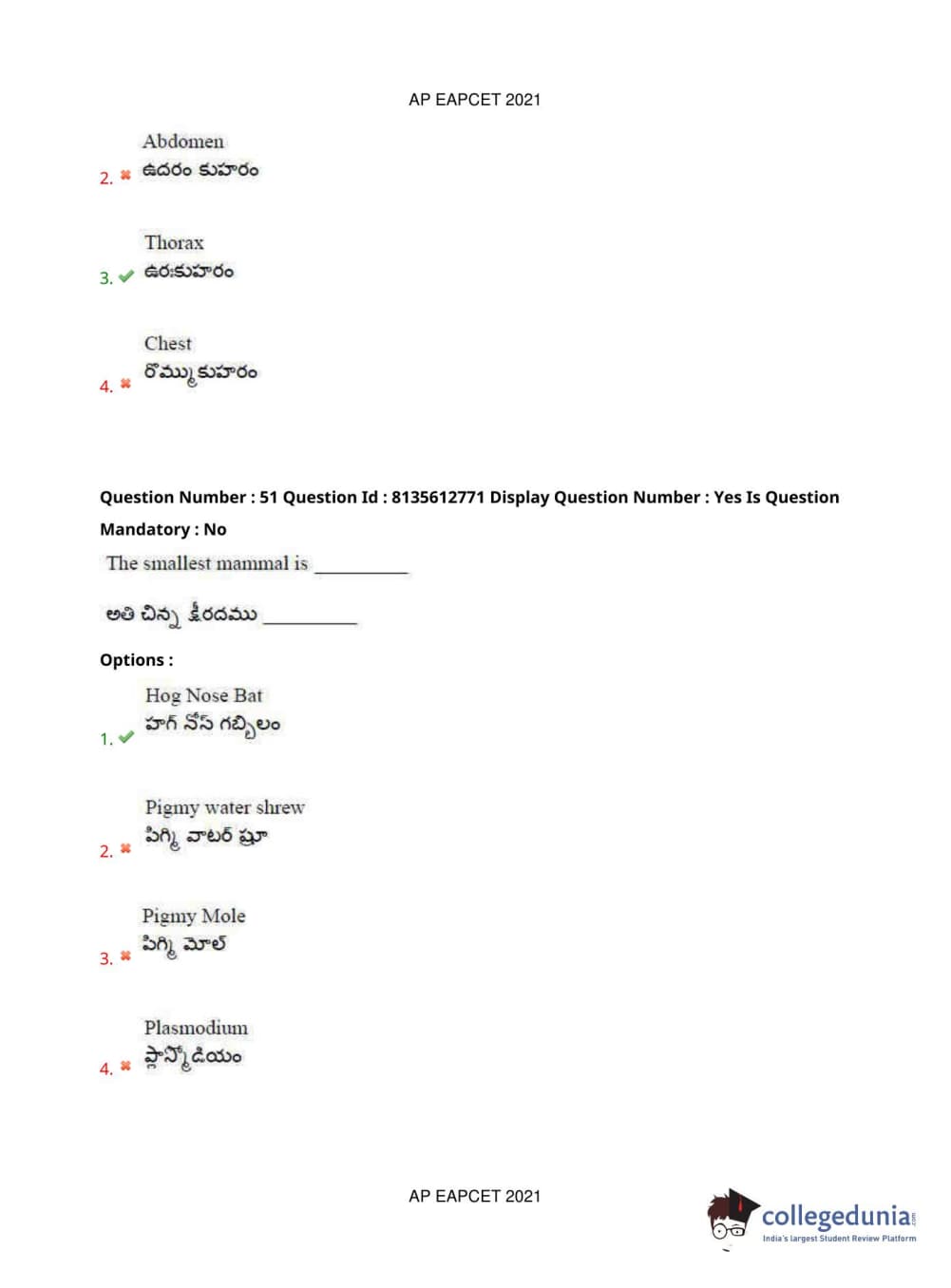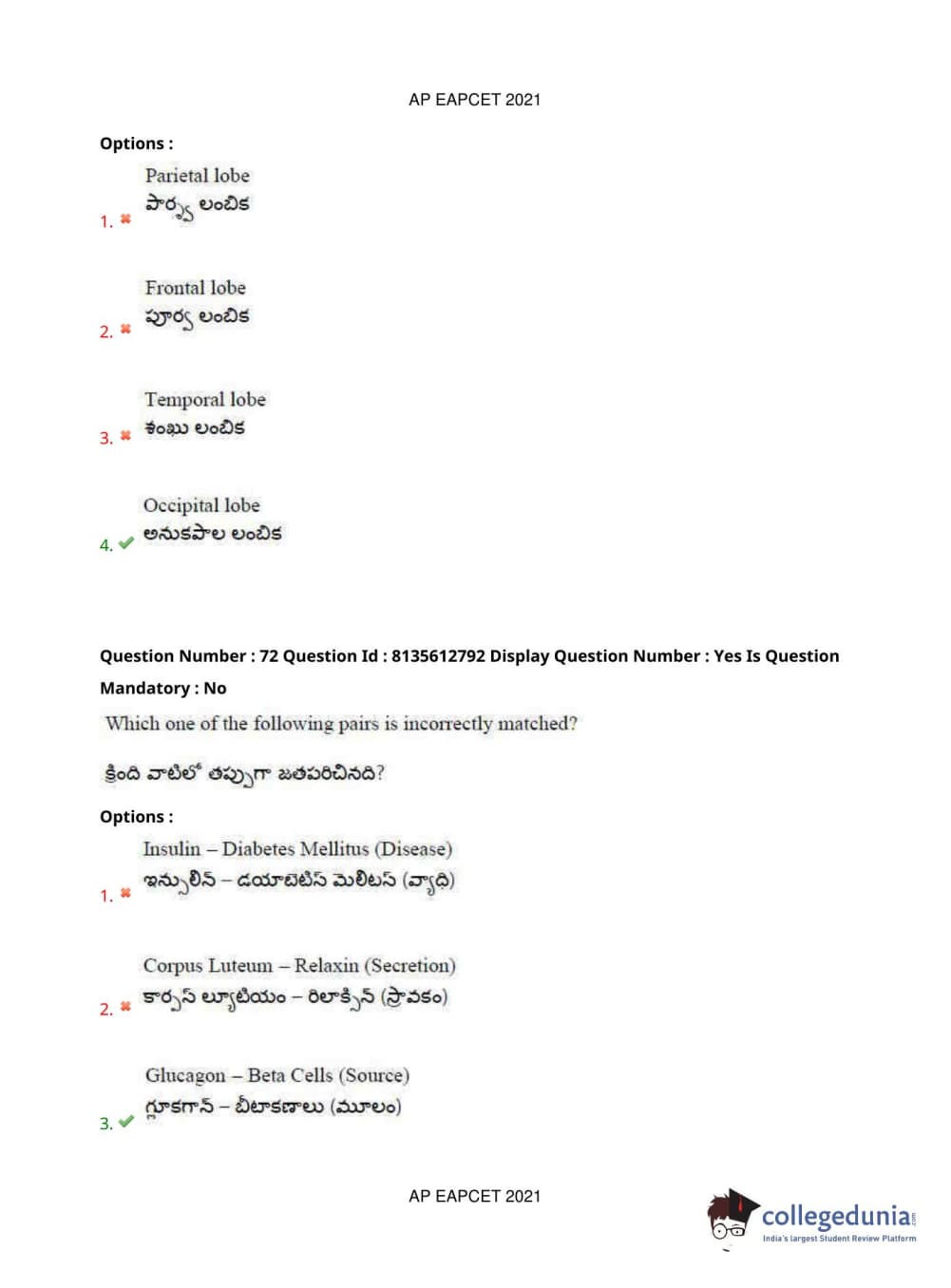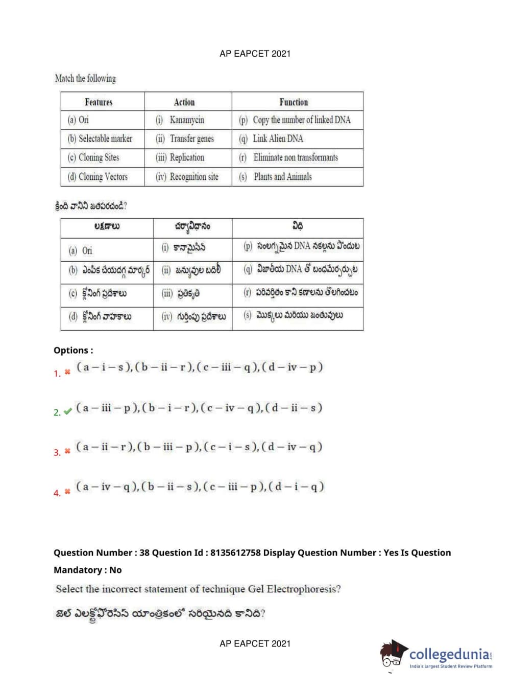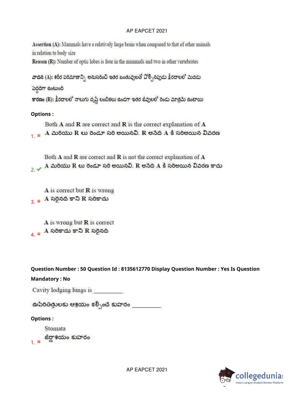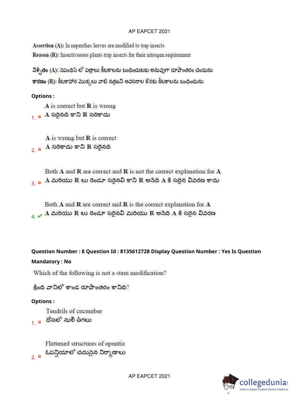 AP EAPCET 2021 Agriculture and Pharmacy Question Paper with Answer Key PDFs Afternoon Session