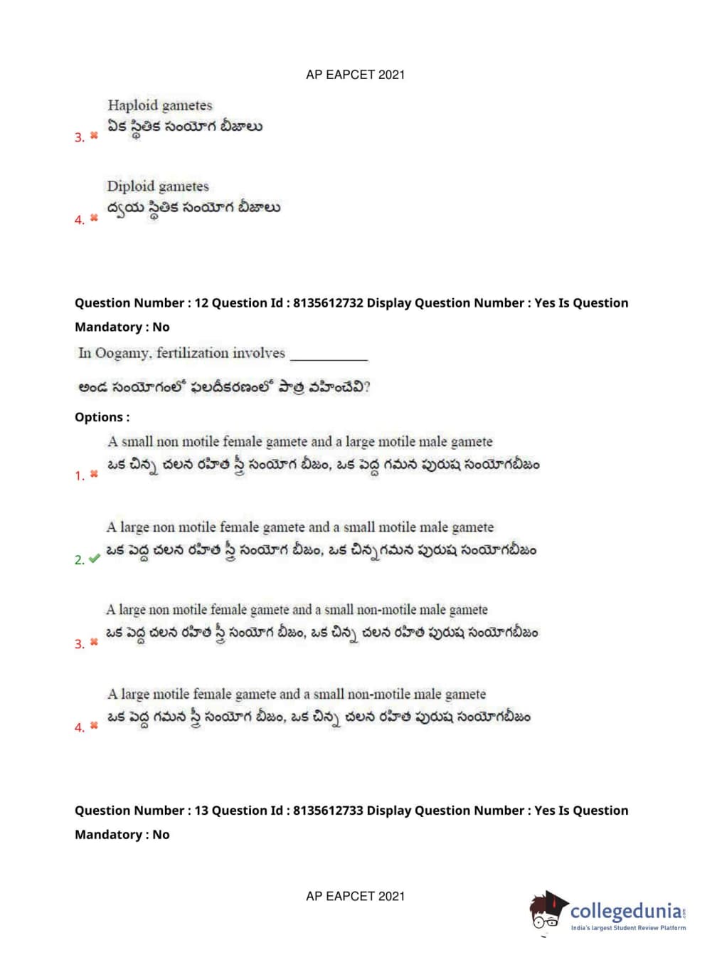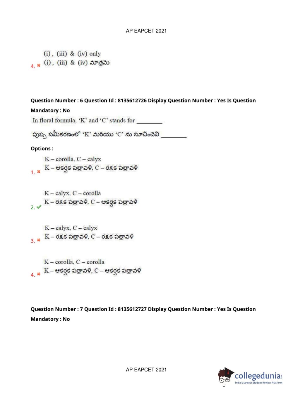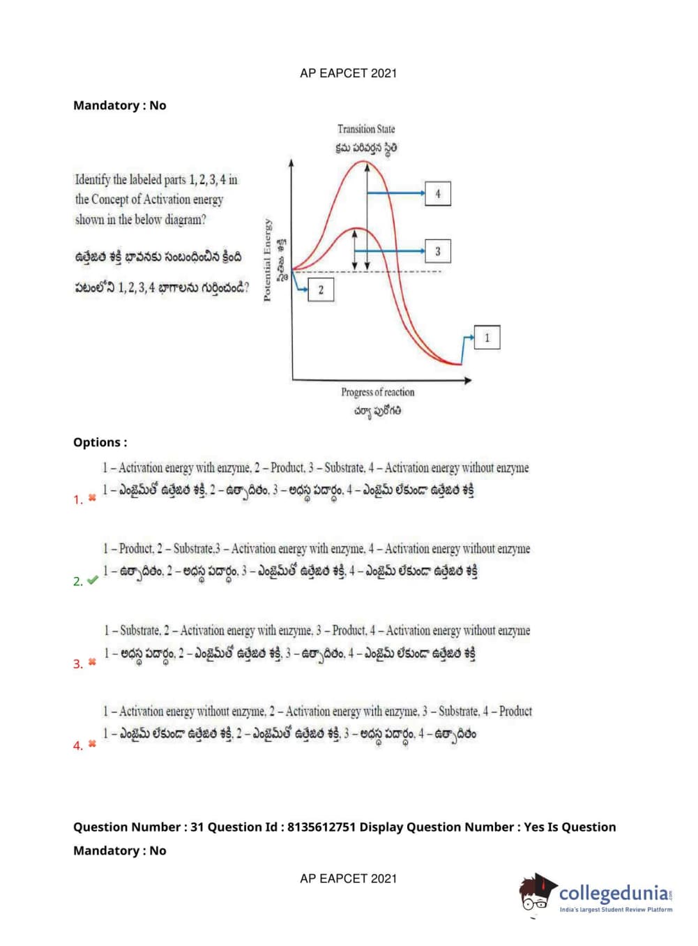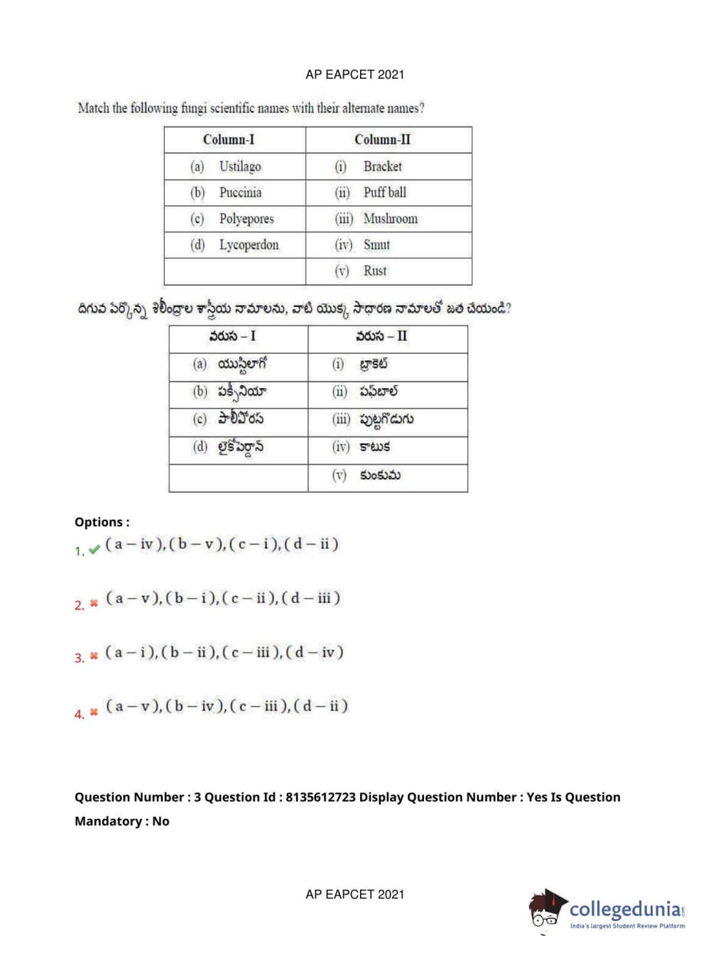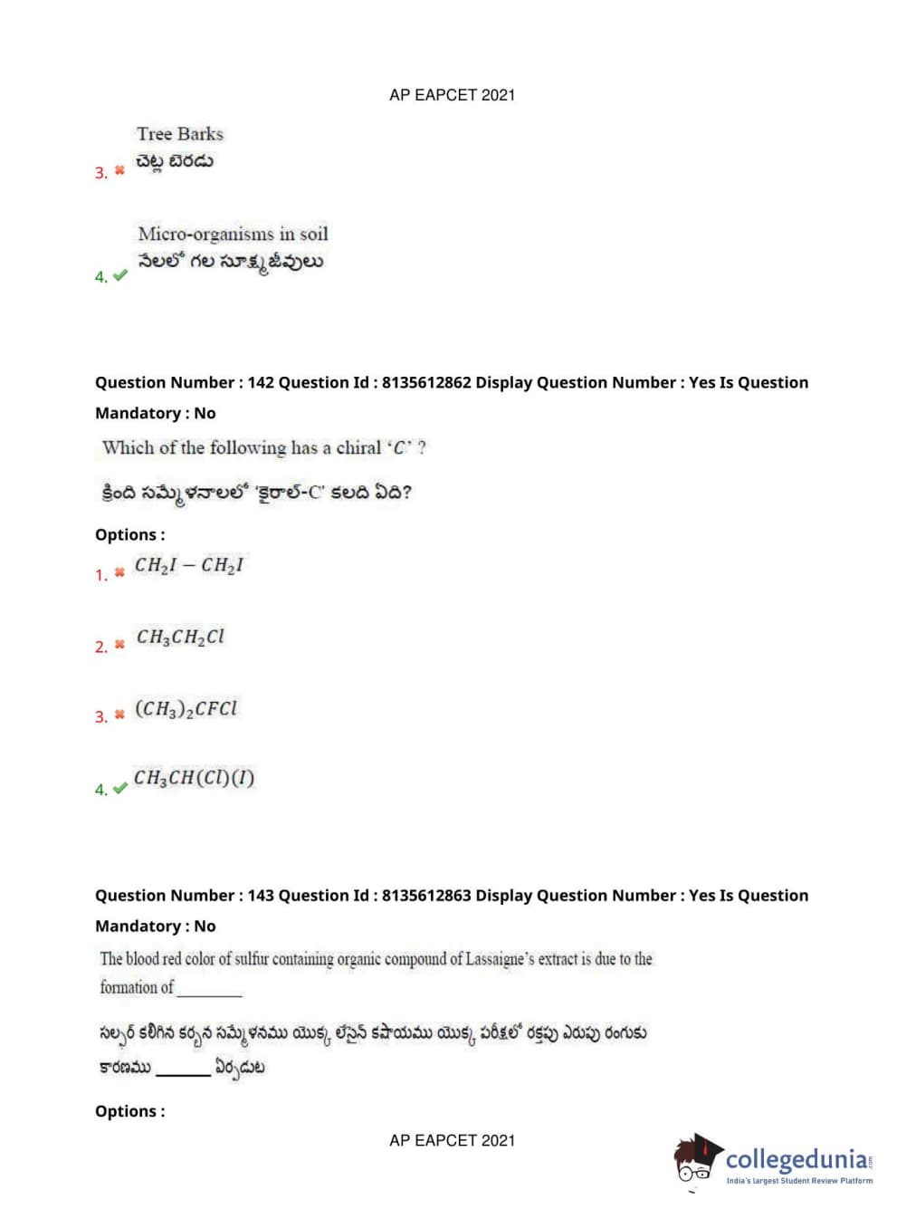 AP EAPCET 2021 Agriculture and Pharmacy Question Paper with Answer Key PDFs Afternoon Session