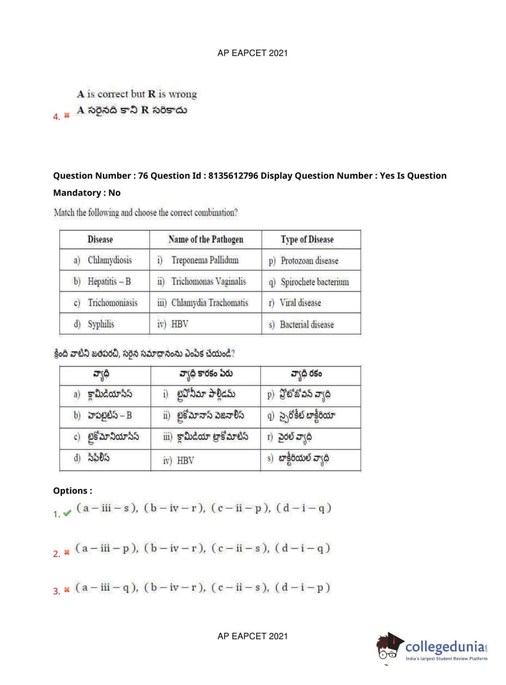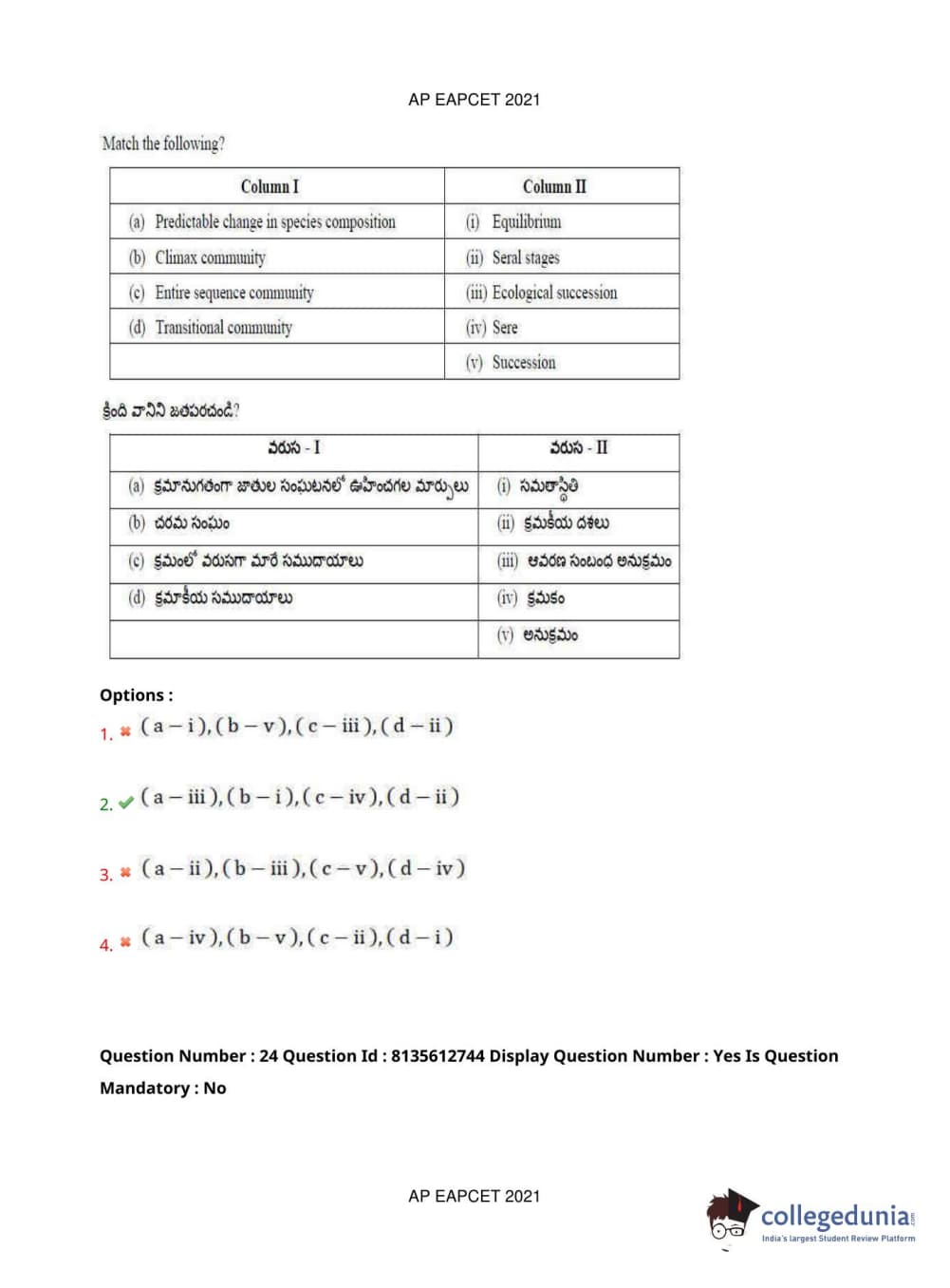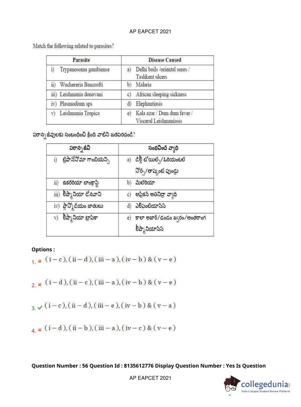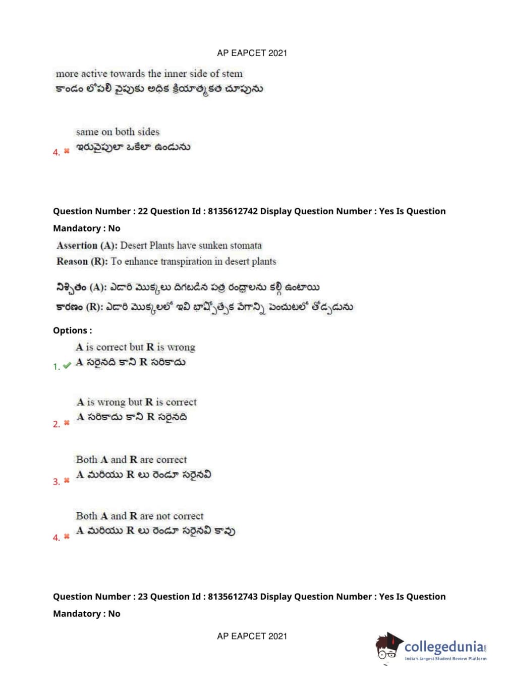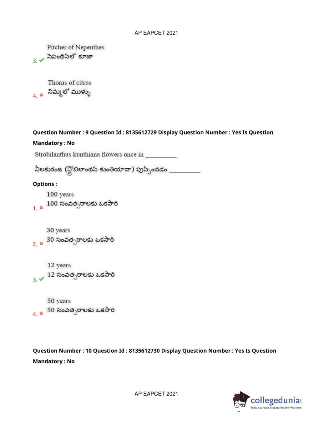 AP EAPCET 2021 Agriculture and Pharmacy Question Paper with Answer Key PDFs Afternoon Session