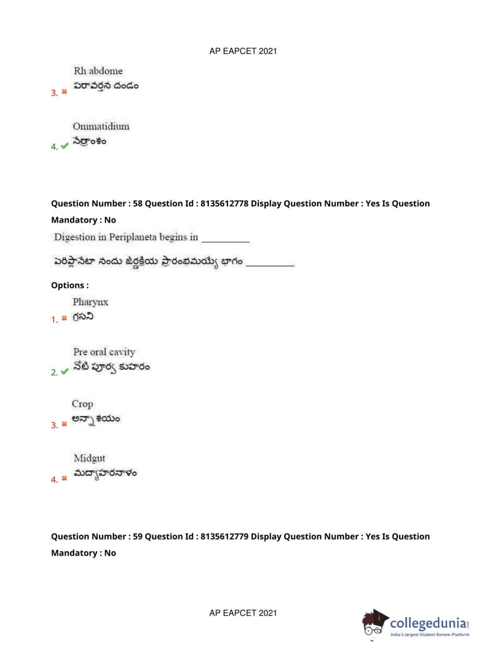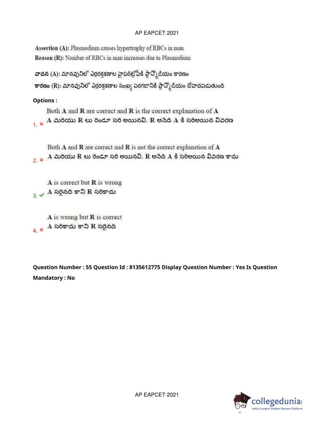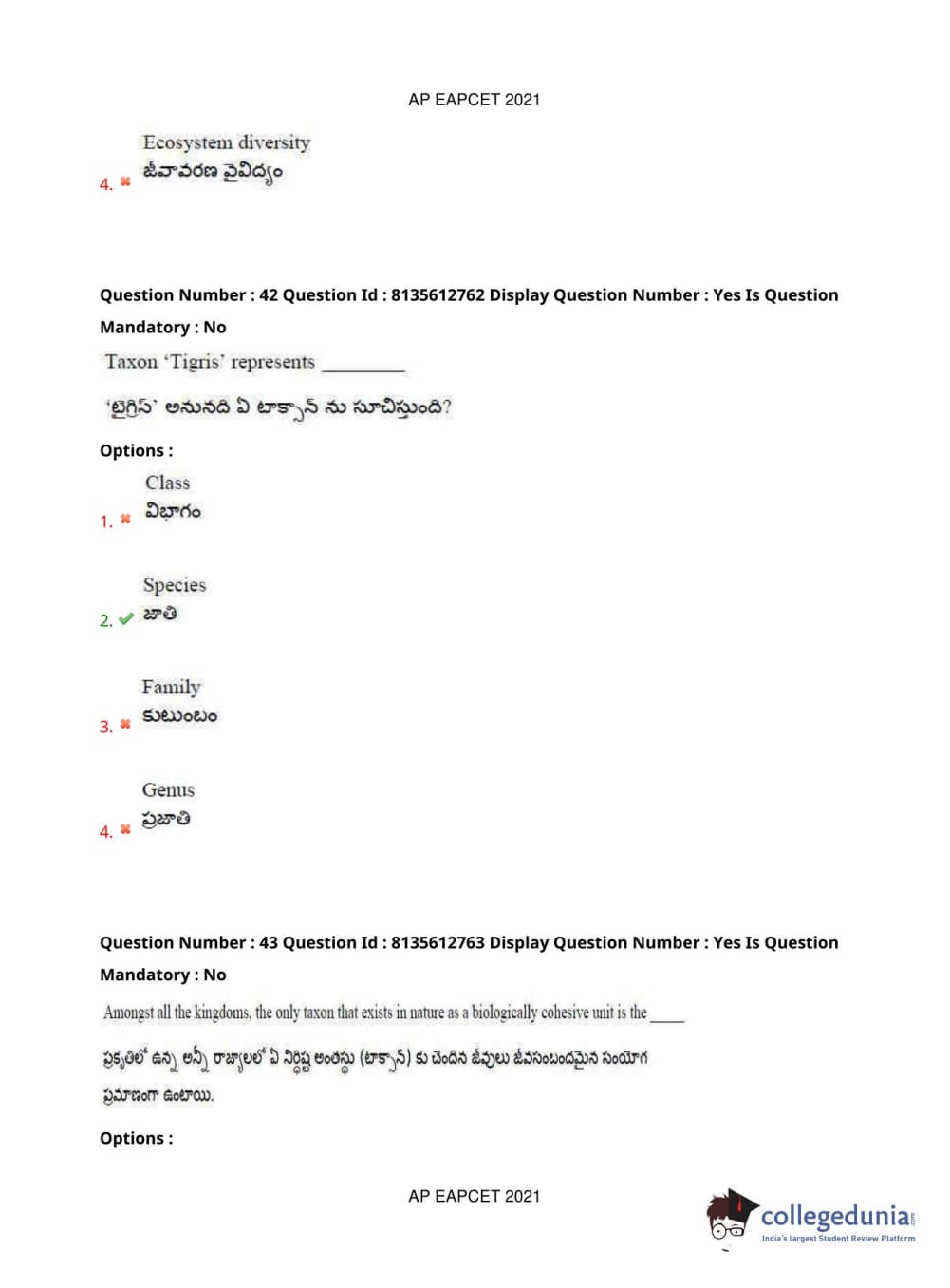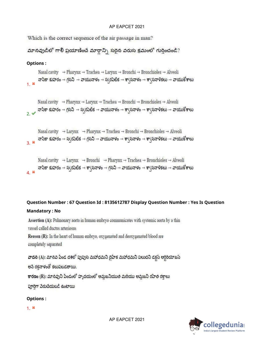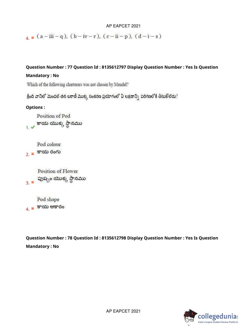 AP EAPCET 2021 Agriculture and Pharmacy Question Paper with Answer Key PDFs Afternoon Session