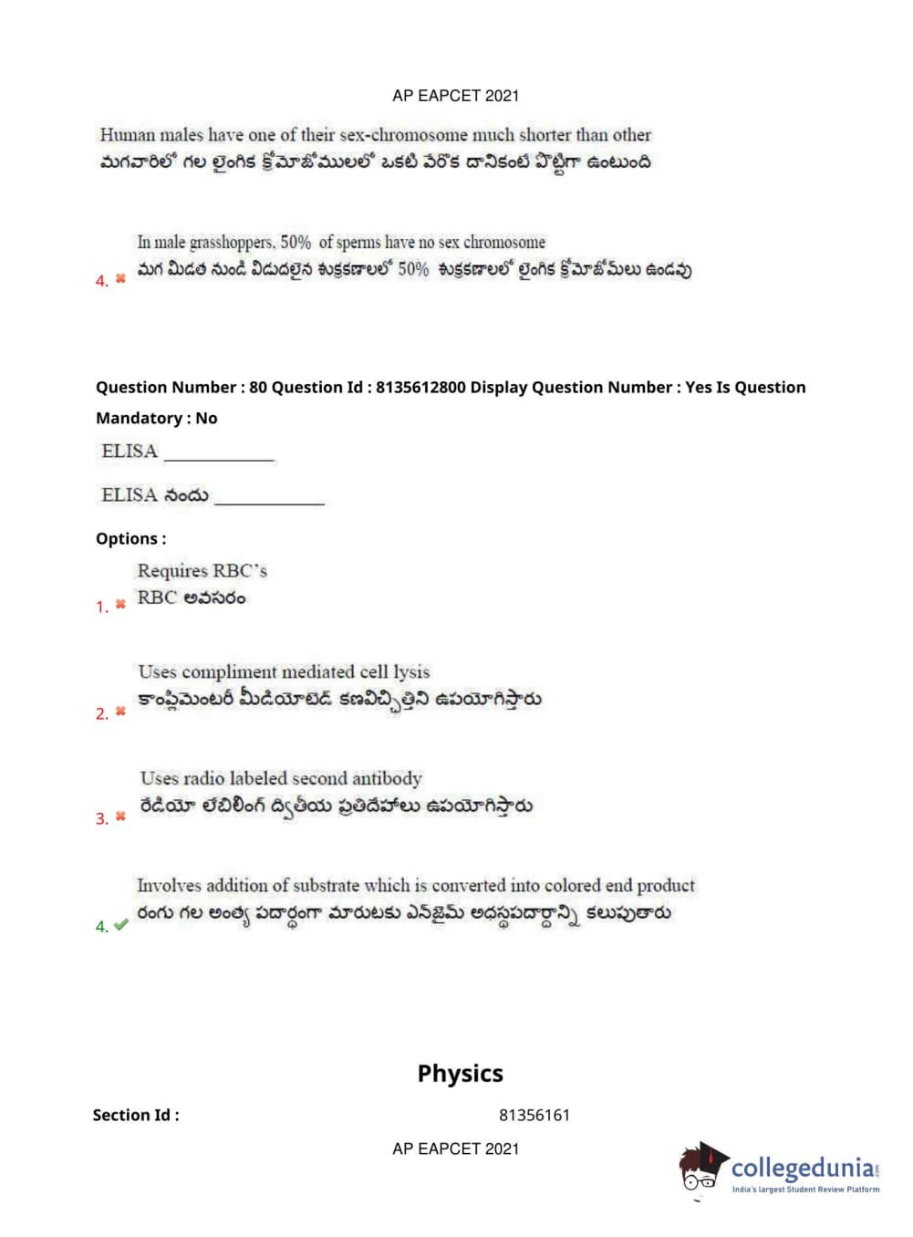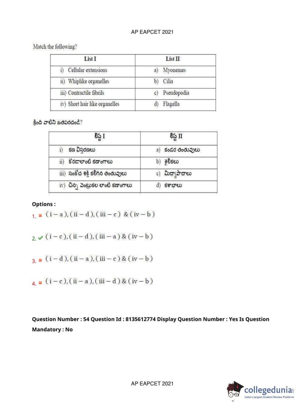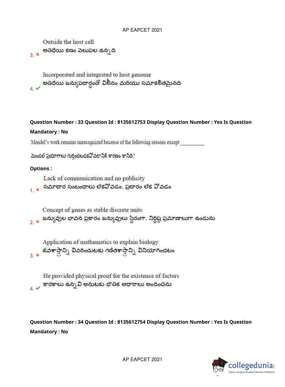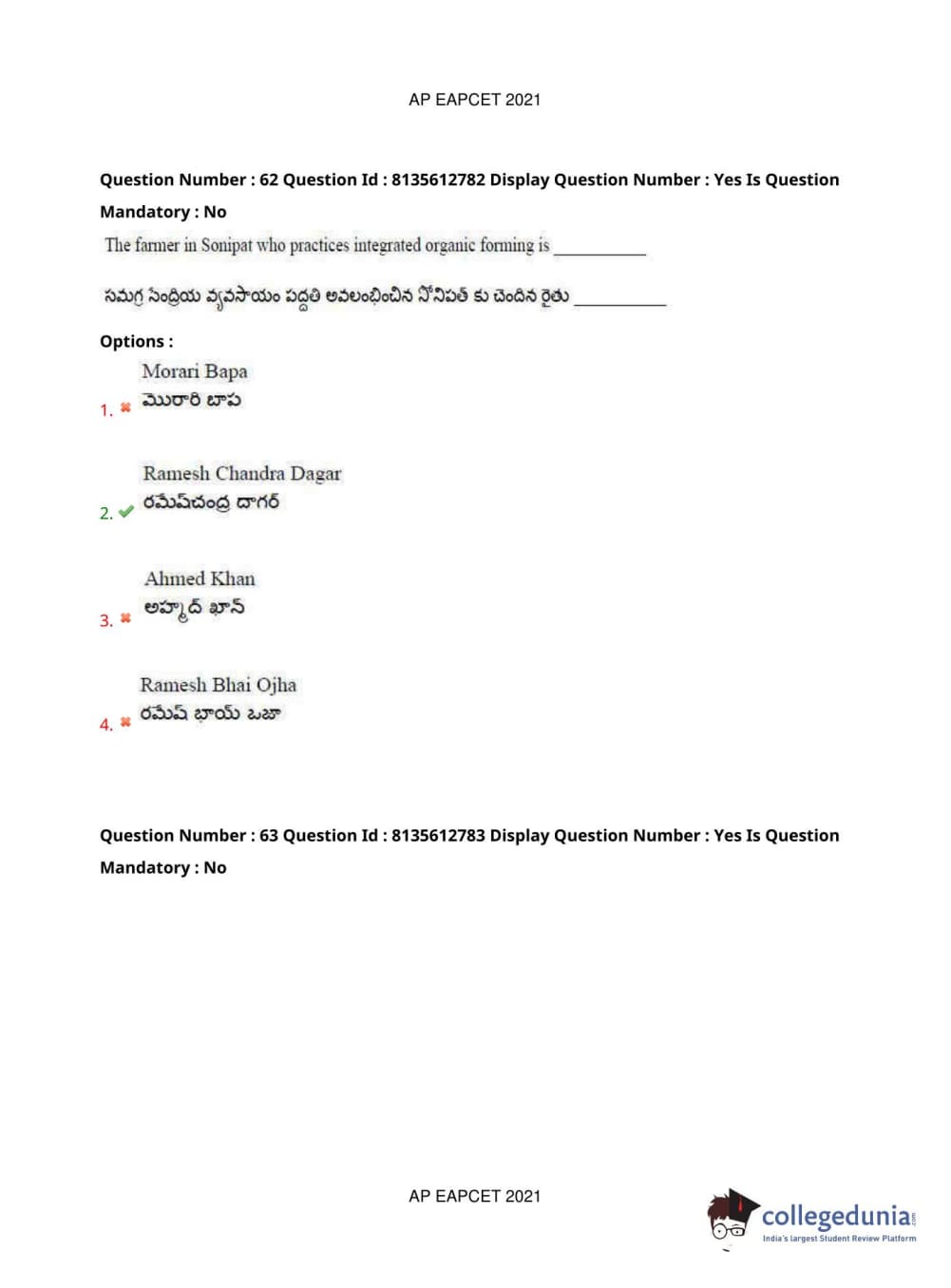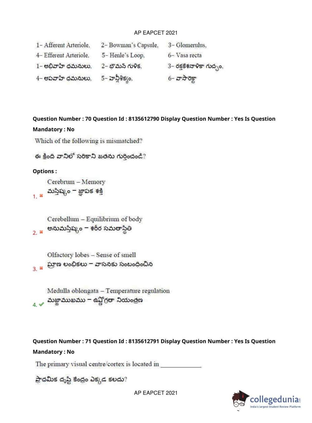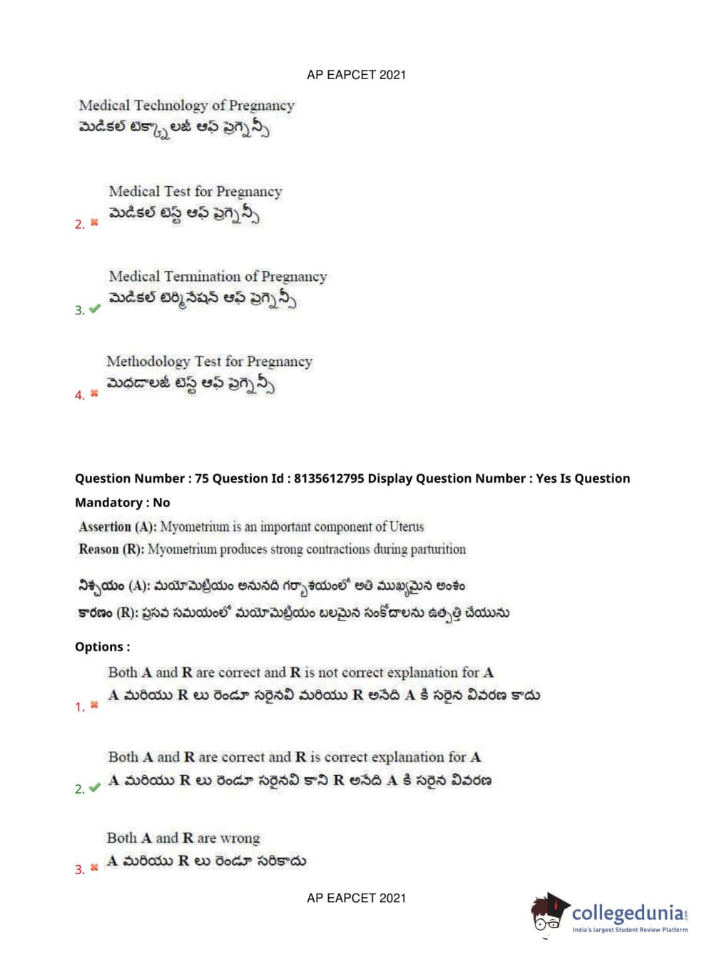 AP EAPCET 2021 Agriculture and Pharmacy Question Paper with Answer Key PDFs Afternoon Session